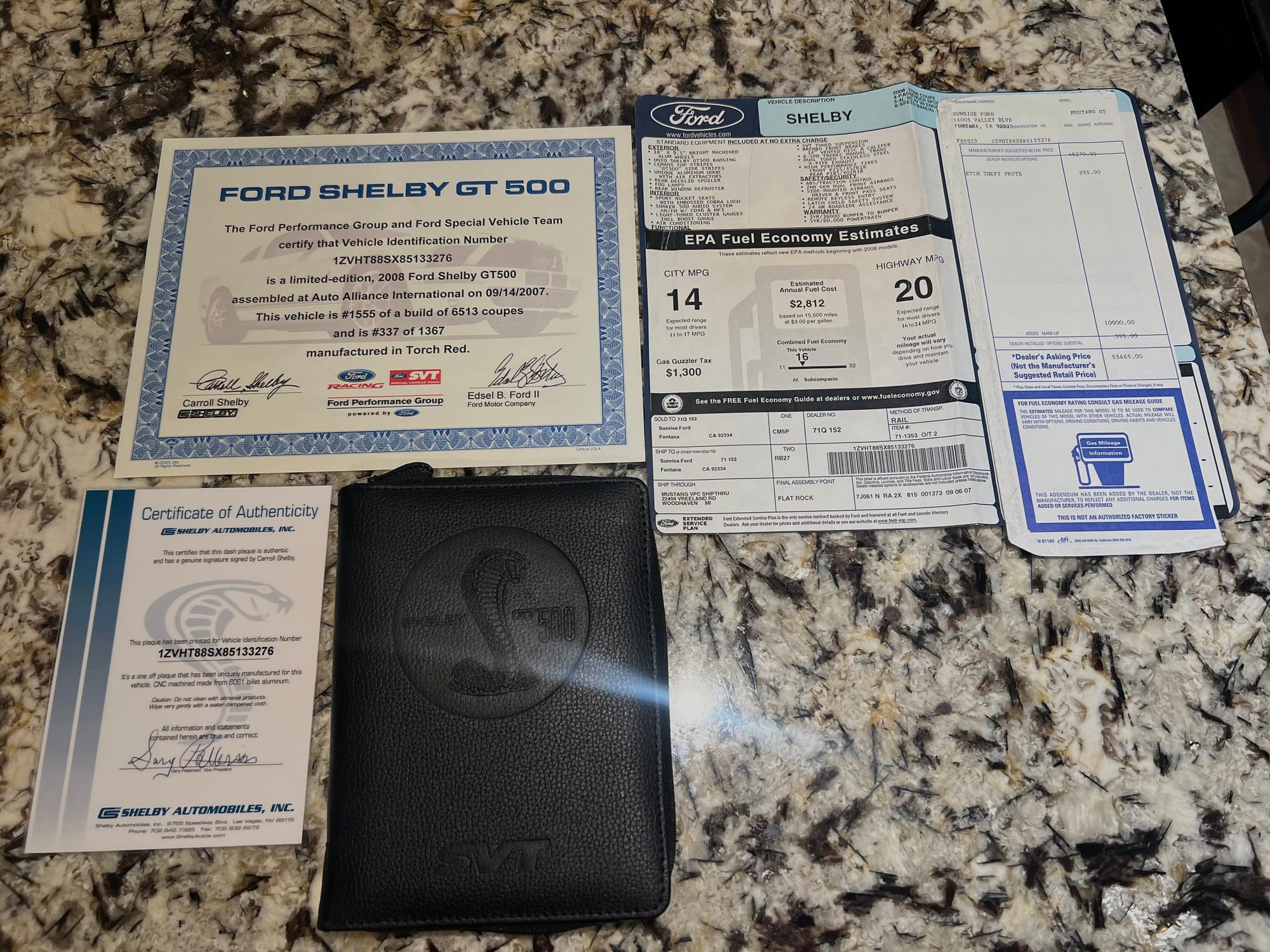 915whp 2008 Ford Mustang Shelby GT500 in Torch Red with 20,077 miles for sale! This GT500 packs a built 5.8L all aluminum 351ci engine with a 3.6L Kenne Bell supercharger atop, this combination is backed by a Tremec TR-6060 6-speed manual transmission. The engine was built by JDM Engineering in New Jersey, featuring Mahle rods and pistons with stock compression ratio/cylinder heads. The fuel system was upgraded to a Fore Innovations triple pump fuel system with teflon lines for E85, followed by a set of Injector Dynamics ID1300 fuel injectors. Drivetrain upgrades include a McLeod RXT clutch along with a Driveshaft Shop 1-piece aluminum driveshaft. Further equipped with an ATI harmonic balancer, Kooks long tube headers, h-pipe, Bassani mufflers, 4-core radiator with bigger cooling fans, heavy duty intercooler with bigger pump/fans, heavy duty HX, Alky Control methanol injection system, and more. Modifications were installed by Earl’s Automotive, and tuning was handled by Jon Lund at Lund Racing with an output of 915whp. One owner car, and always garage kept! The owner doesn’t drive it much anymore, it’s time for someone else to enjoy it! Only 6K miles on the build! Clean title!