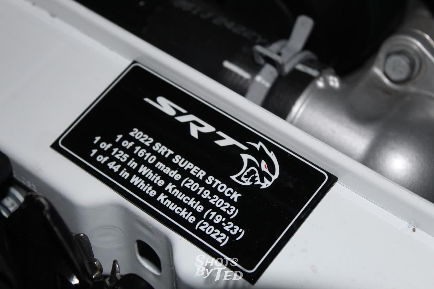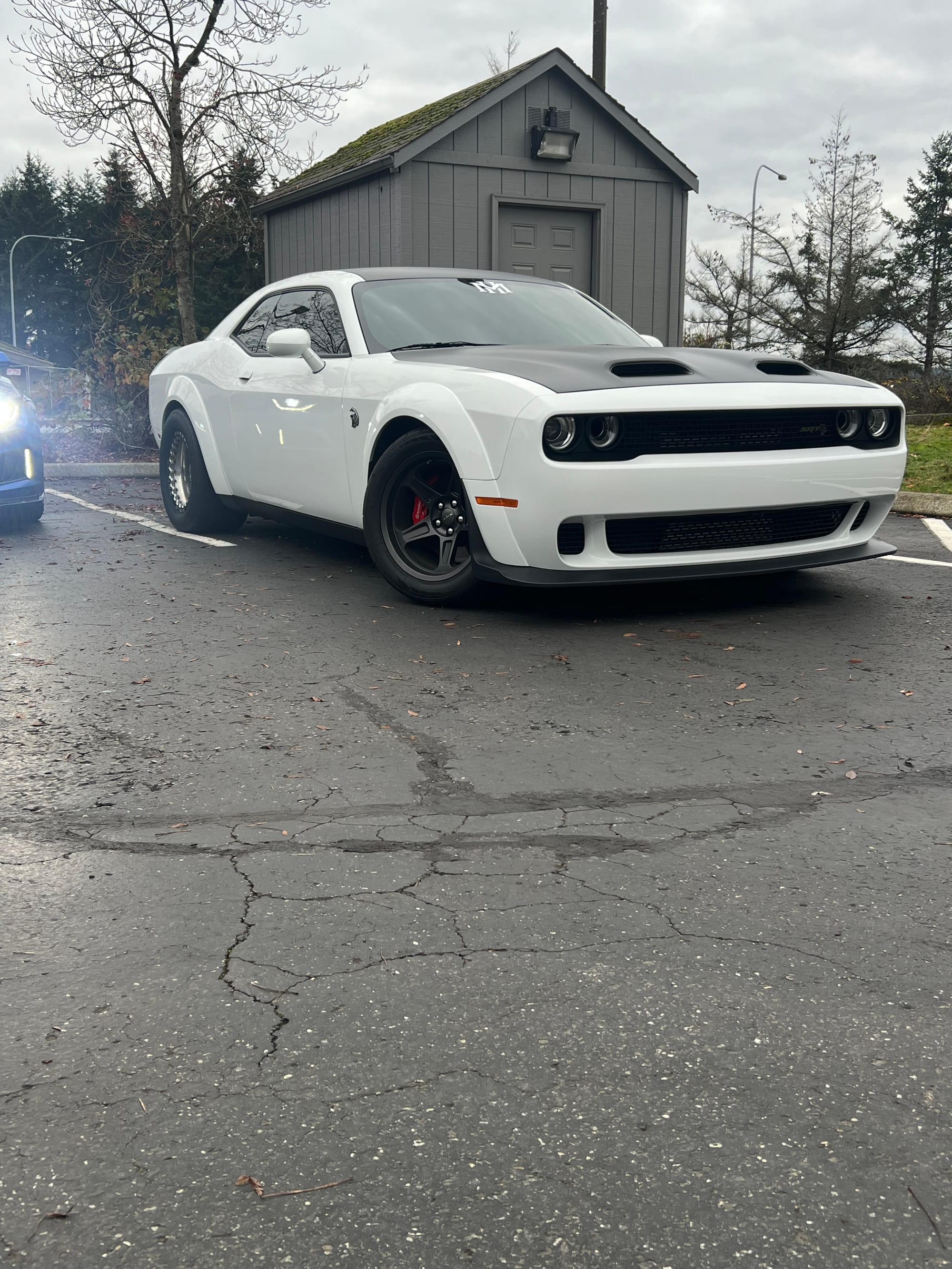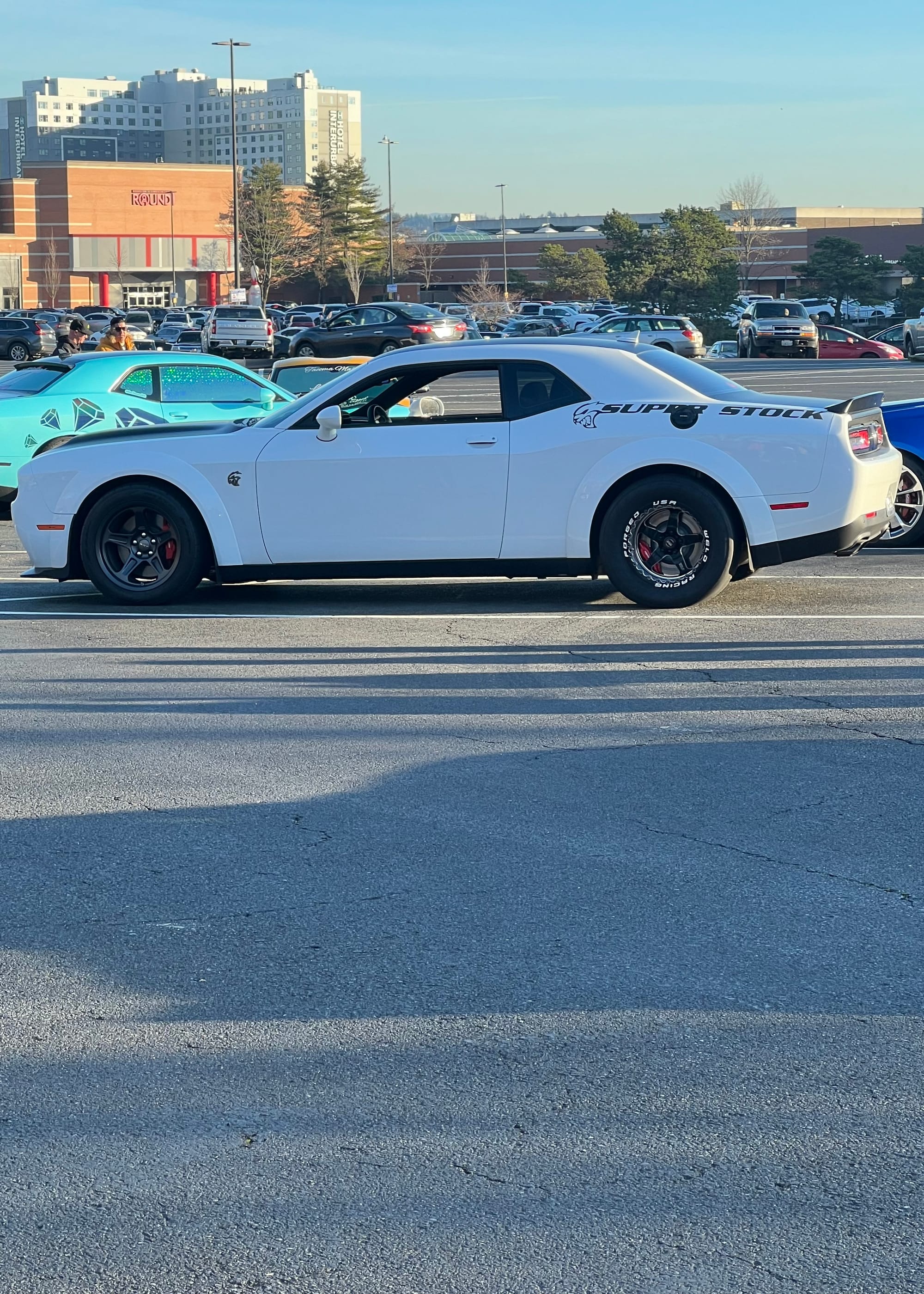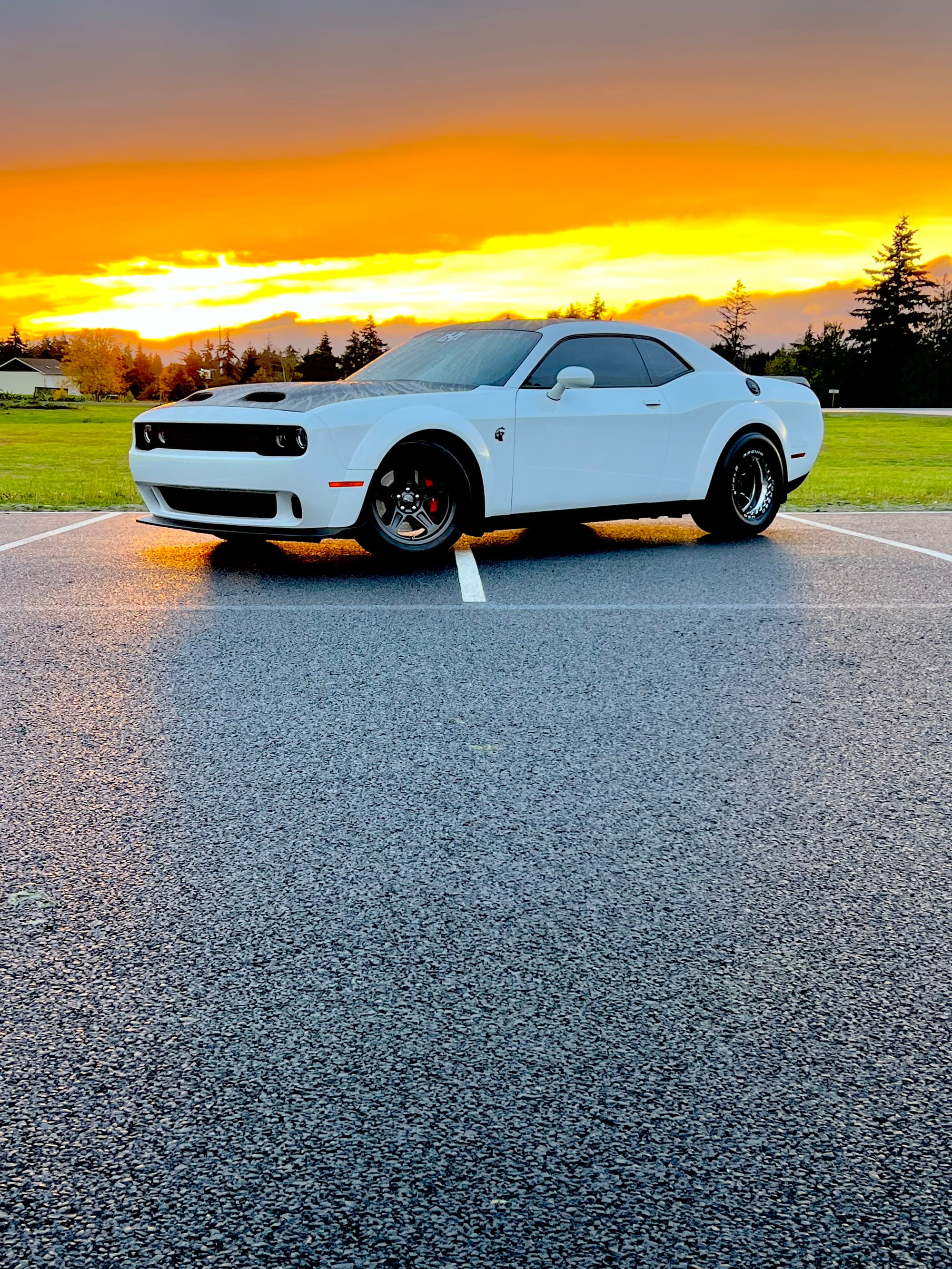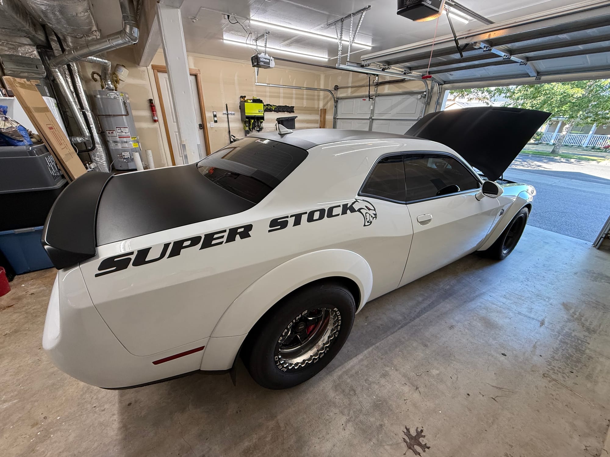 1130whp 2022 Dodge Challenger SRT Super Stock in White Knuckle with 5,840 miles for sale! This Super Stock was modified by Valencia Motorsports in Richland, WA, featuring a well documented setup with over $25K in modifications alone. Powered by a 6.2L HEMI that’s topped with a Kong CNC ported 2.7L IHI supercharger, and mated to an 8HP90 8-speed automatic transmission. The supercharger system utilizes a 2.75” Griptec upper/10% IW overdrive lower pulley combination, followed by a Gates green belt, Kong 108mm throttle body, and Legmaker carbon fiber cold air intake. The fuel system consists of twin Walbro 525lph pumps with a Kenne Bell Boost-A-Pump (BAP), FIC 1650cc fuel injectors, and a flex fuel kit to run E85. Further equipped with a DSS 4” 1-piece aluminum driveshaft, Per4mance Development DIRS differential brace, HHP Demon Killer springs, rear cradle lockout bushings, Kirkey Series 55 seats with red covers, and more. Tuning was completed via HP Tuners by Valencia Motorsports with an output of ~1000whp on pump 92 octane, and 1130whp on E85. As for performance metrics, the car went 60-130mph in 5.15s at 4600Ibs with the driver, and 100-150mph in 4.92s. The car can be sold with a rear pair of 17x11 WELD Racing RT-S S71 beadlock wheels wrapped in 315/50/17 Mickey Thompson ET Street R drag radials (pictured) for an additional $3700, otherwise it’ll come with OEM 18x11 Super Stock wheels all around with OEM Nitto NT555 G2 tires. Both sets of seats will be included with the sale (OEM seats and Kirkey seats). The custom “Super Stock” decals can be removed upon request and confirmation of sale. There are currently 750 miles on the setup! All receipts of maintenance and modifications are available upon request! Financing is available! Clean title!