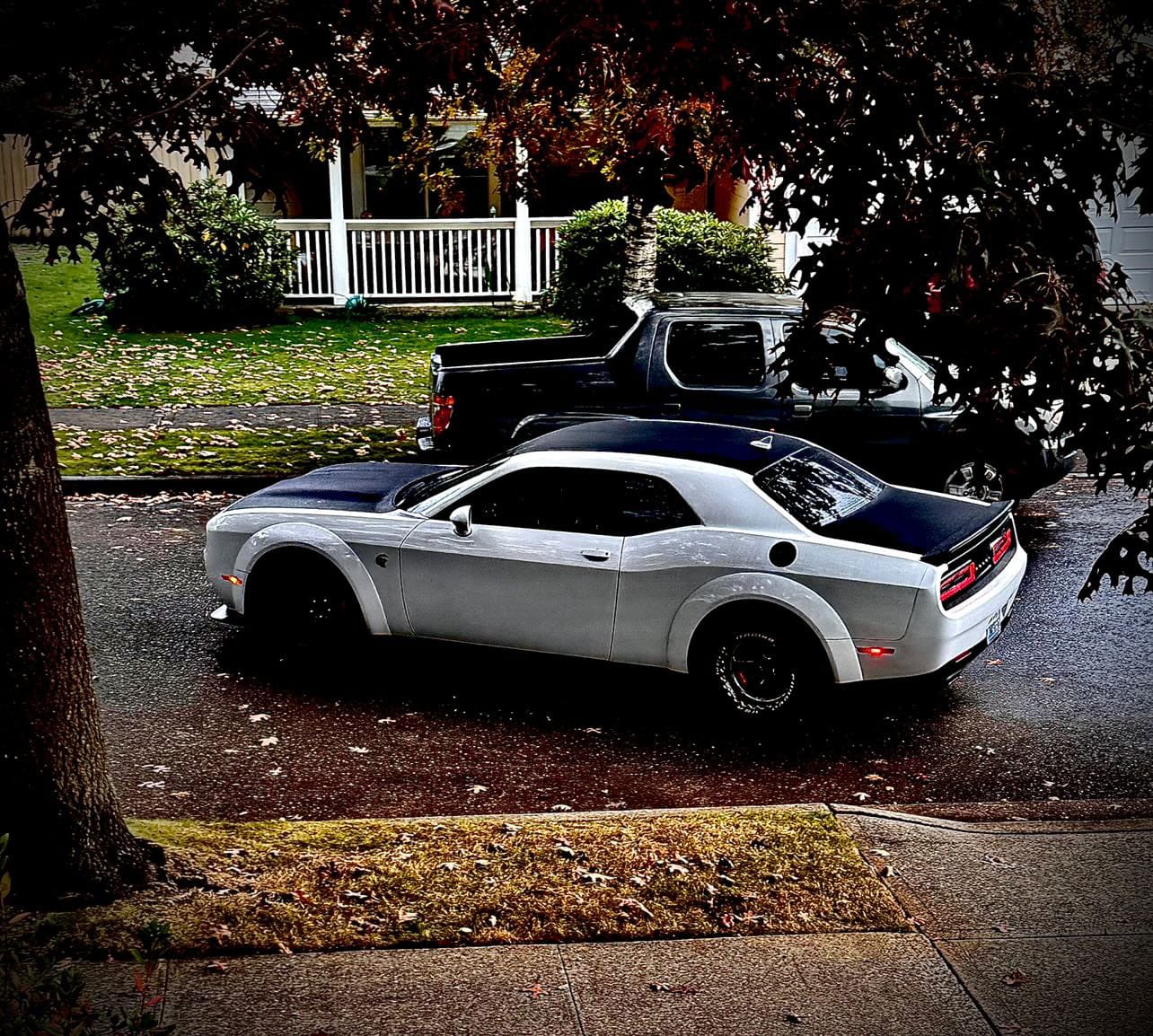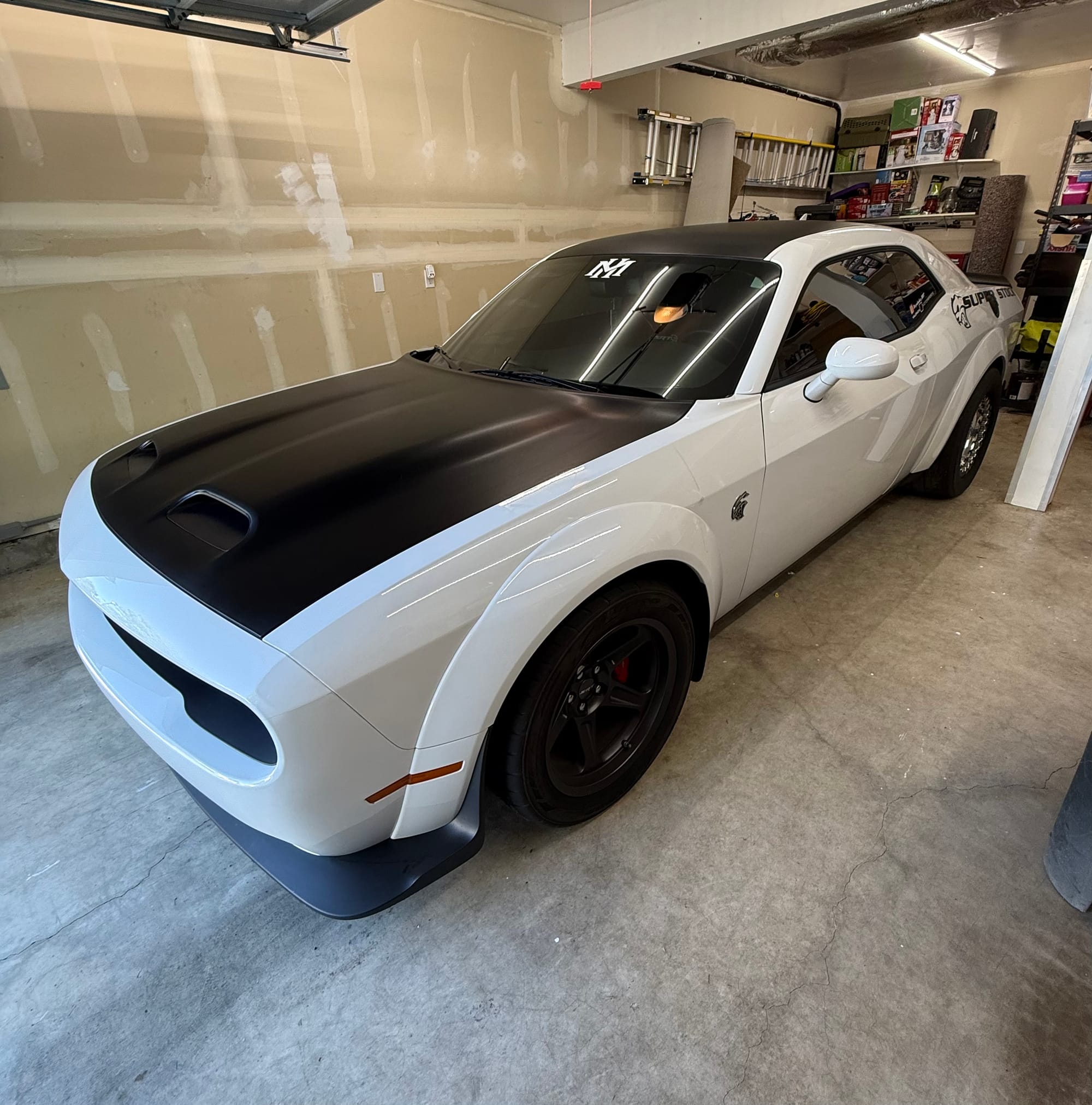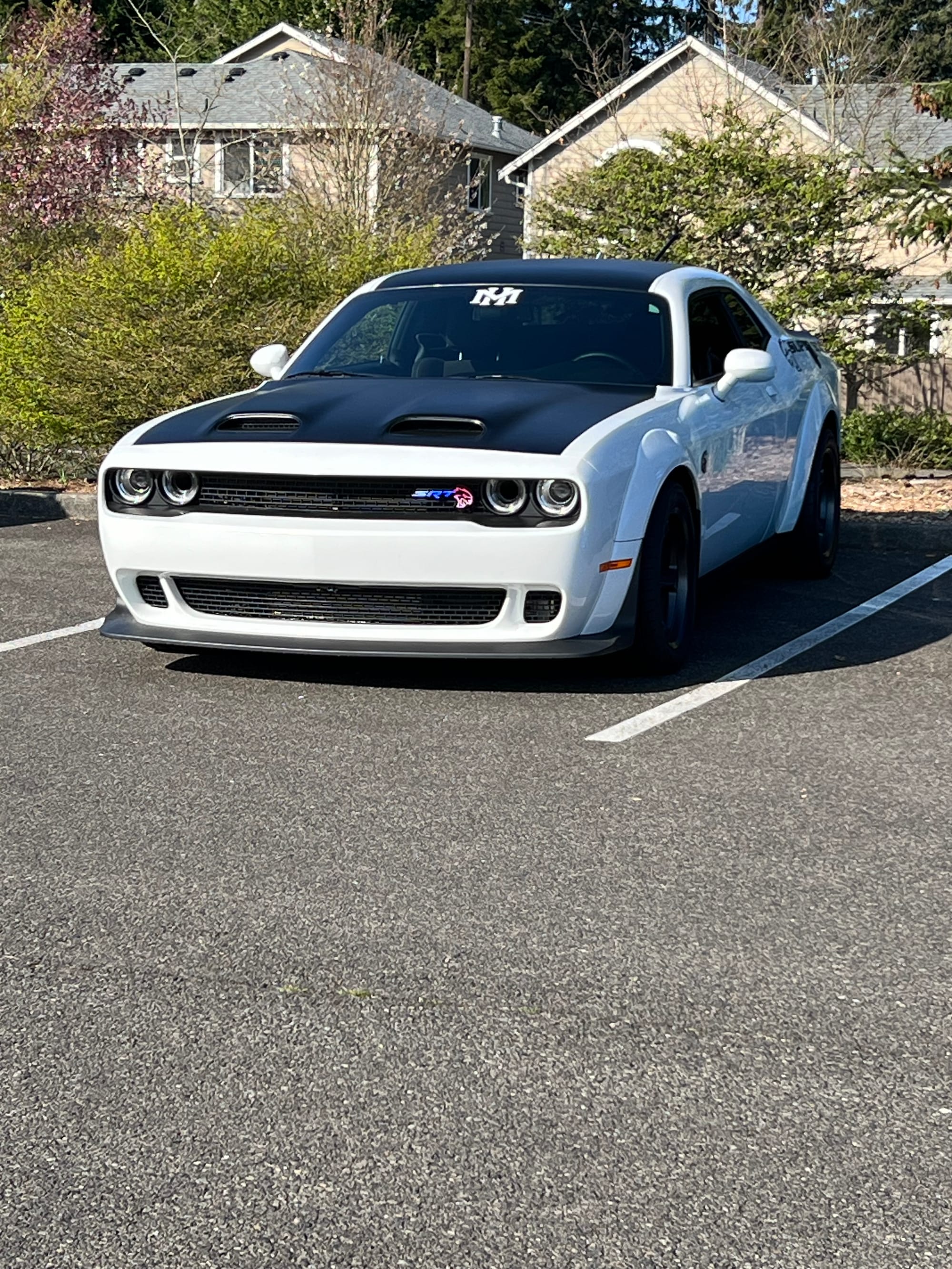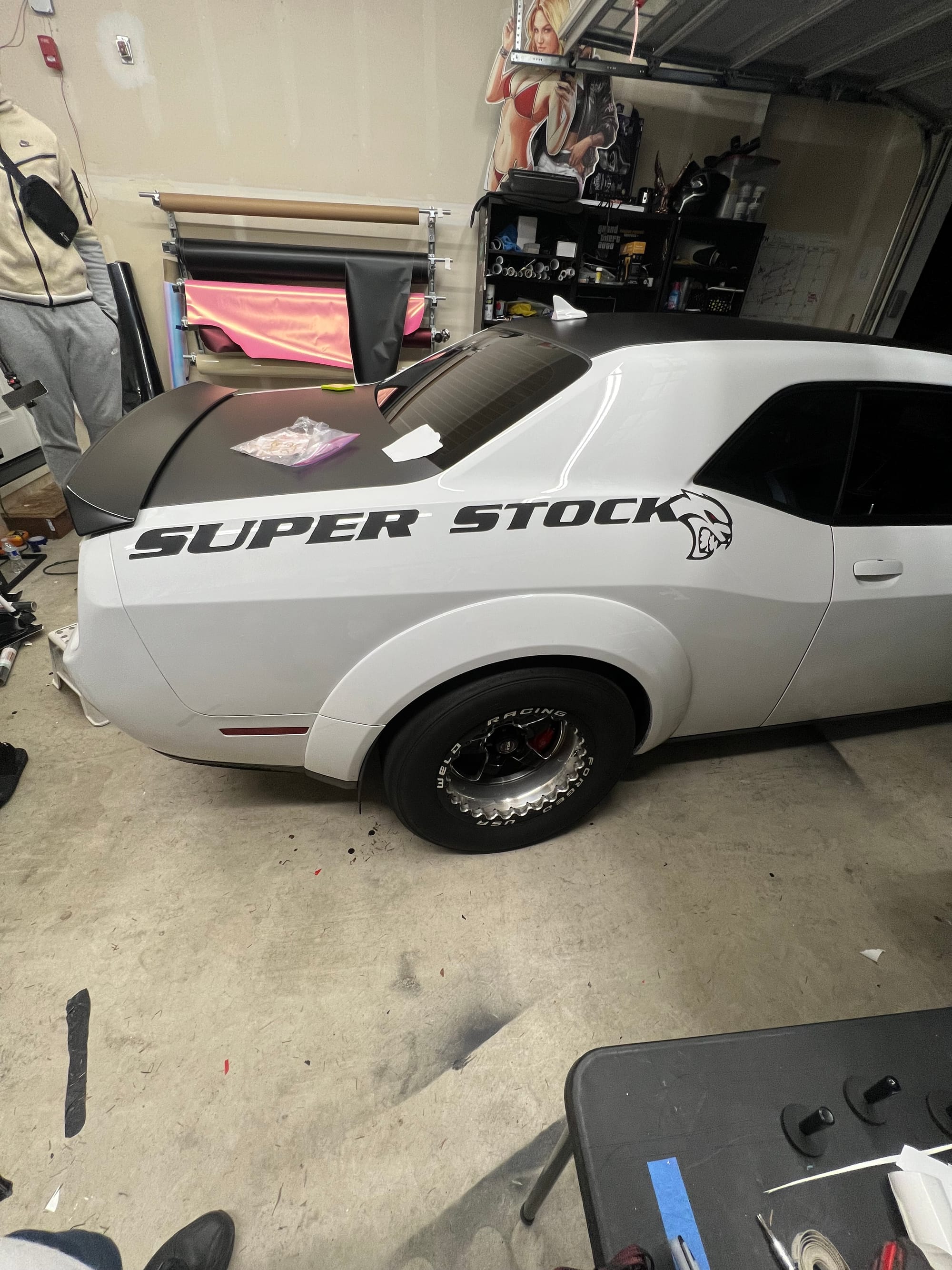 1130whp 2022 Dodge Challenger SRT Super Stock in White Knuckle with 5,840 miles for sale! This Super Stock was modified by Valencia Motorsports in Richland, WA, featuring a well documented setup with over $25K in modifications alone. Powered by a 6.2L HEMI that’s topped with a Kong CNC ported 2.7L IHI supercharger, and mated to an 8HP90 8-speed automatic transmission. The supercharger system utilizes a 2.75” Griptec upper/10% IW overdrive lower pulley combination, followed by a Gates green belt, Kong 108mm throttle body, and Legmaker carbon fiber cold air intake. The fuel system consists of twin Walbro 525lph pumps with a Kenne Bell Boost-A-Pump (BAP), FIC 1650cc fuel injectors, and a flex fuel kit to run E85. Further equipped with a DSS 4” 1-piece aluminum driveshaft, Per4mance Development DIRS differential brace, HHP Demon Killer springs, rear cradle lockout bushings, Kirkey Series 55 seats with red covers, and more. Tuning was completed via HP Tuners by Valencia Motorsports with an output of ~1000whp on pump 92 octane, and 1130whp on E85. As for performance metrics, the car went 60-130mph in 5.15s at 4600Ibs with the driver, and 100-150mph in 4.92s. The car can be sold with a rear pair of 17x11 WELD Racing RT-S S71 beadlock wheels wrapped in 315/50/17 Mickey Thompson ET Street R drag radials (pictured) for an additional $3700, otherwise it’ll come with OEM 18x11 Super Stock wheels all around with OEM Nitto NT555 G2 tires. Both sets of seats will be included with the sale (OEM seats and Kirkey seats). The custom “Super Stock” decals can be removed upon request and confirmation of sale. There are currently 750 miles on the setup! All receipts of maintenance and modifications are available upon request! Financing is available! Clean title!