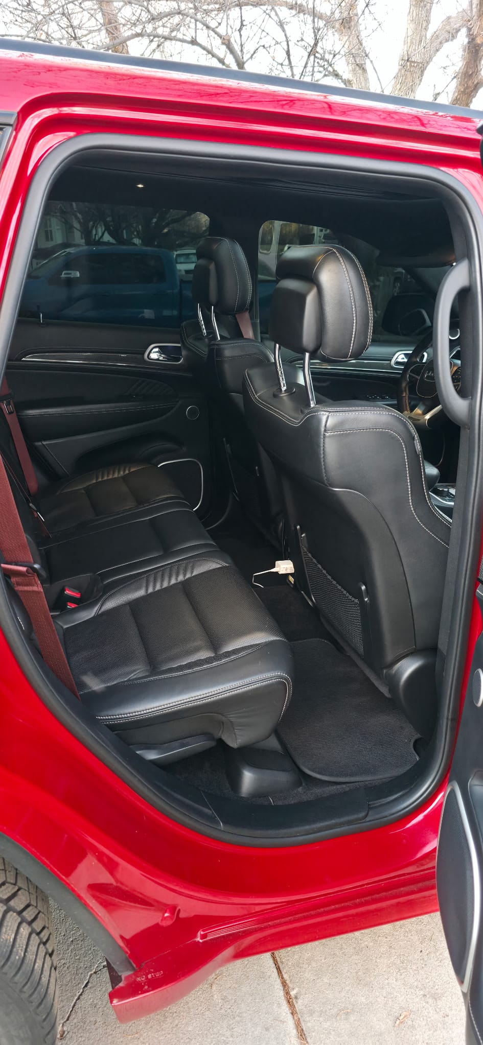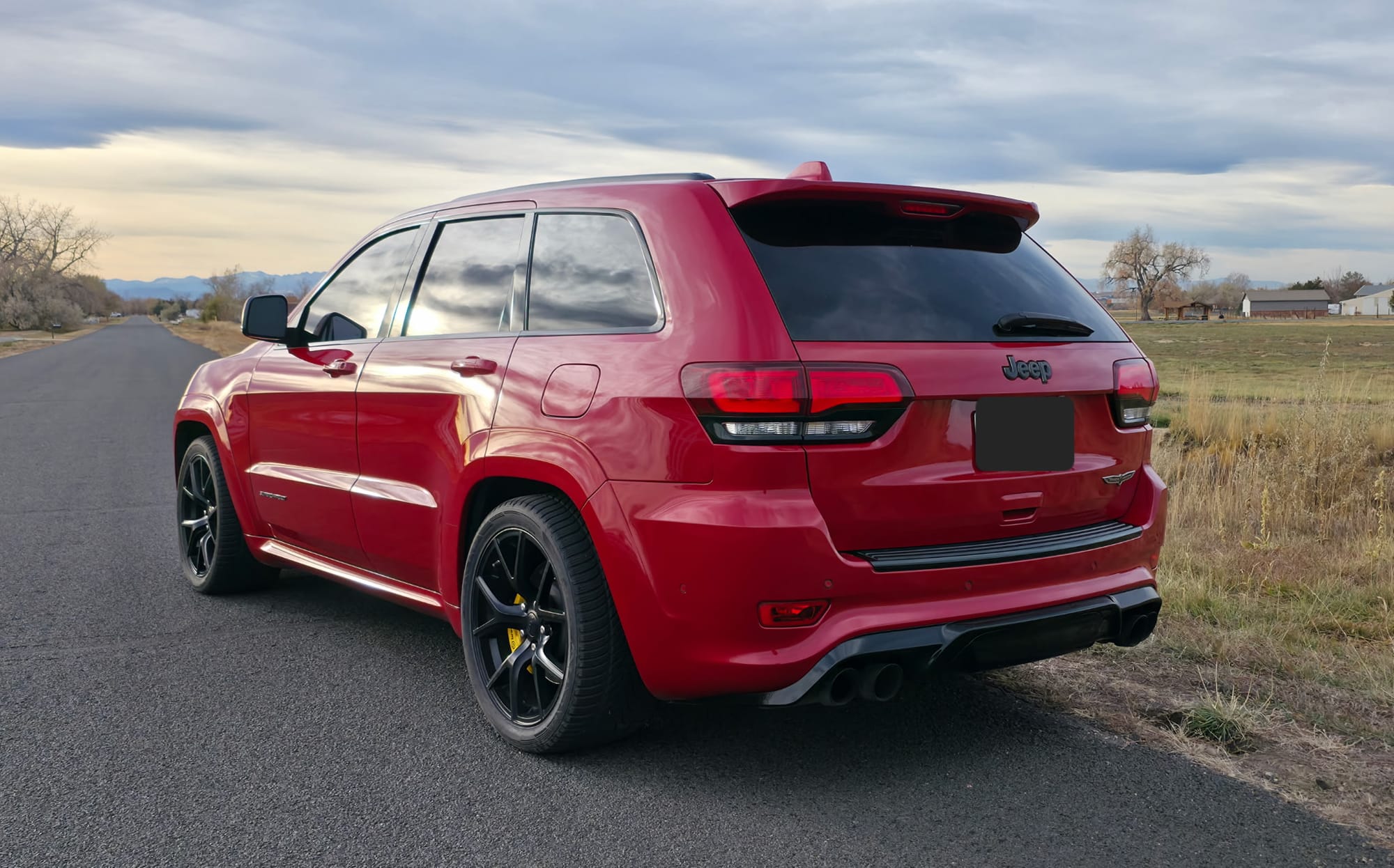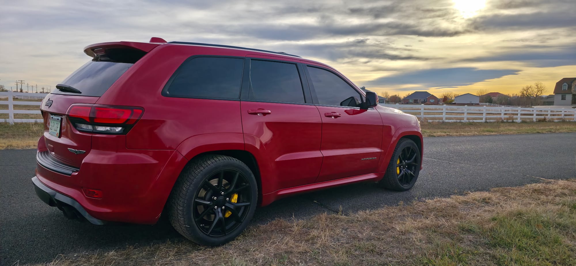 1136whp 2018 Jeep Grand Cherokee Trackhawk in Redline with 77,000 (Chassis) miles for sale! The heart of this Trackhawk consists of a 411ci stroker with a ported/race built 2.4L IHI supercharger on top, power generated from this combination is transferred to all 4 wheels through a Southern Hotrod built 8HP95 8-speed automatic transmission. The engine build begins with a Mopar block, which was fitted with an MMX 411 1500hp rotating assembly, MMX 411 blower camshaft, Edelbrock heads, new Hellcat lifters, custom pushrods, and rocker shaft braces. Additional key components include a Kong throttle body, K&N cold air intake, Fi Interchiller stage 1/1” spacer and blanket, front and rear differential braces, lowering springs, and more. The owner did the engine work, RPM did the upgrades, and tuning work was completed by ZHtunes with an output of 1136whp/1109wtq on the dyno. There are no track times with the current configuration, however before this engine/transmission combination, it ran a 10.55 with 940whp. There are currently 10K miles on the engine build, and 20K miles on the transmission build.