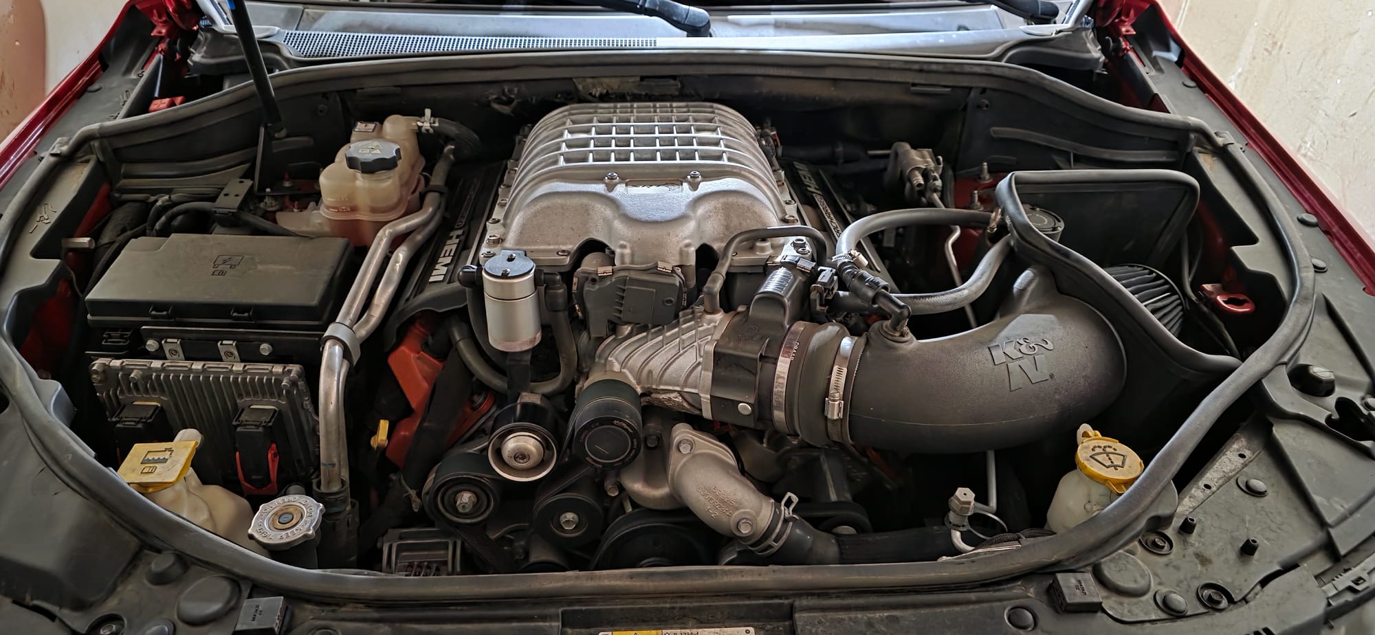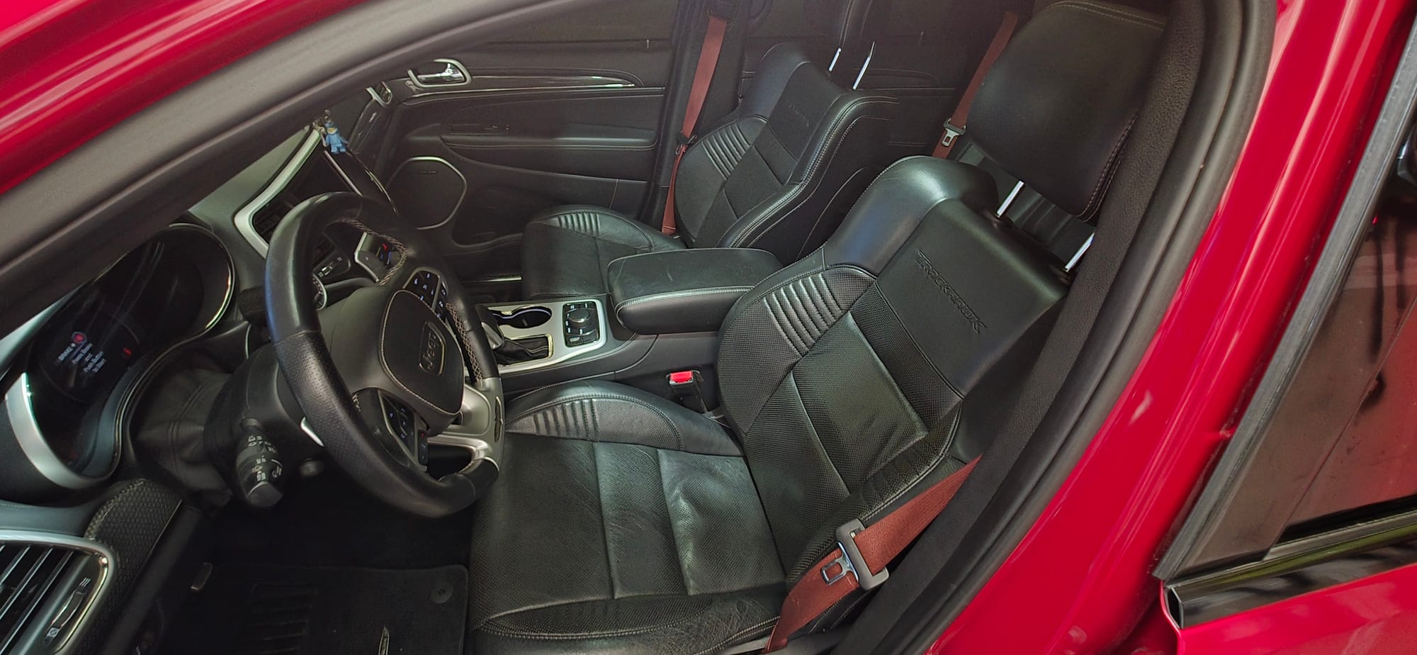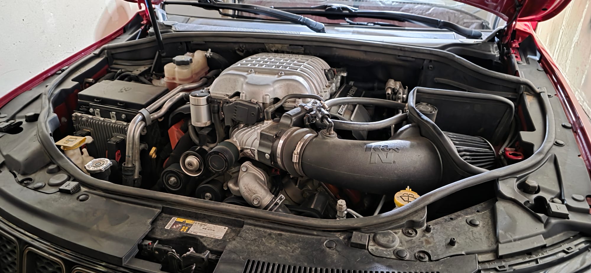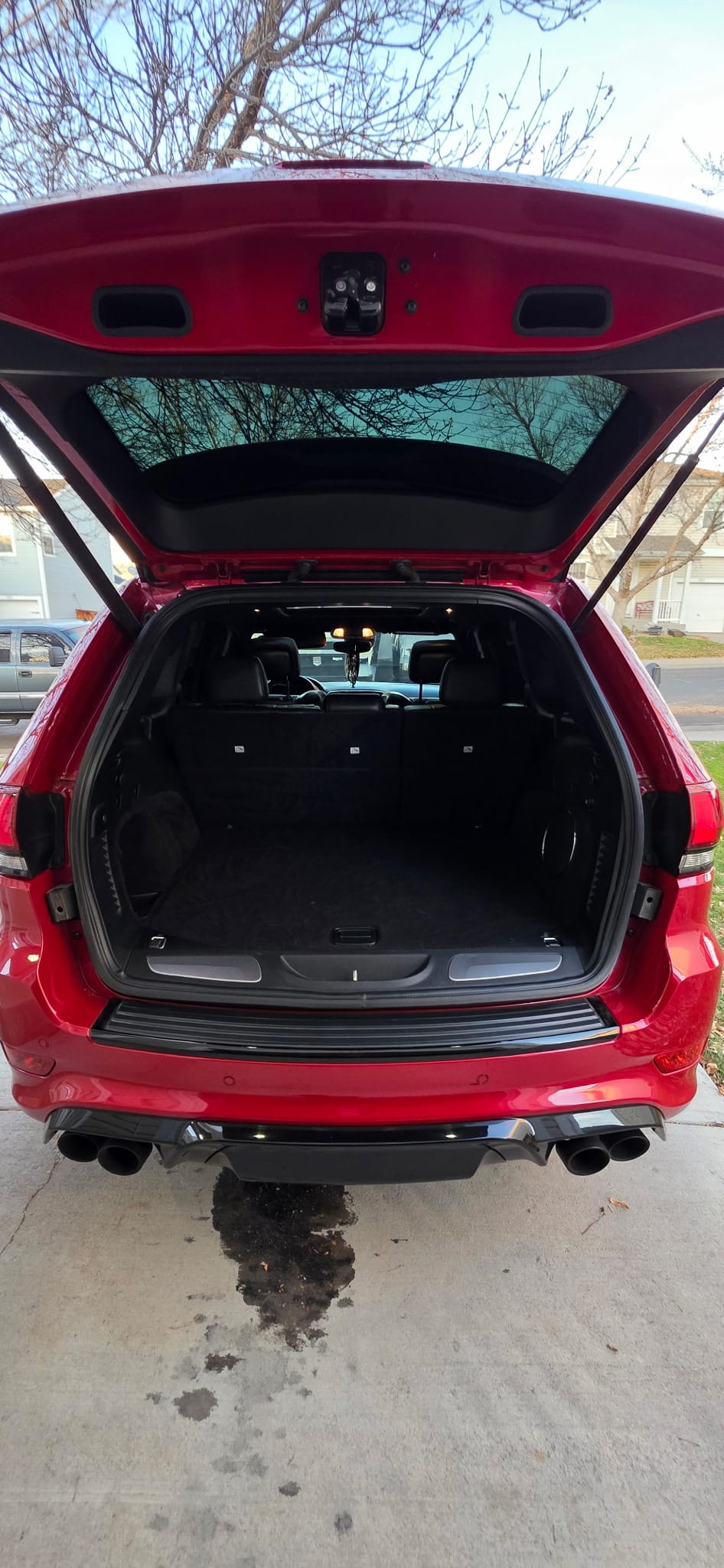 1136whp 2018 Jeep Grand Cherokee Trackhawk in Redline with 77,000 (Chassis) miles for sale! The heart of this Trackhawk consists of a 411ci stroker with a ported/race built 2.4L IHI supercharger on top, power generated from this combination is transferred to all 4 wheels through a Southern Hotrod built 8HP95 8-speed automatic transmission. The engine build begins with a Mopar block, which was fitted with an MMX 411 1500hp rotating assembly, MMX 411 blower camshaft, Edelbrock heads, new Hellcat lifters, custom pushrods, and rocker shaft braces. Additional key components include a Kong throttle body, K&N cold air intake, Fi Interchiller stage 1/1” spacer and blanket, front and rear differential braces, lowering springs, and more. The owner did the engine work, RPM did the upgrades, and tuning work was completed by ZHtunes with an output of 1136whp/1109wtq on the dyno. There are no track times with the current configuration, however before this engine/transmission combination, it ran a 10.55 with 940whp. There are currently 10K miles on the engine build, and 20K miles on the transmission build.