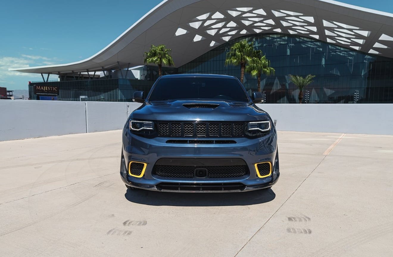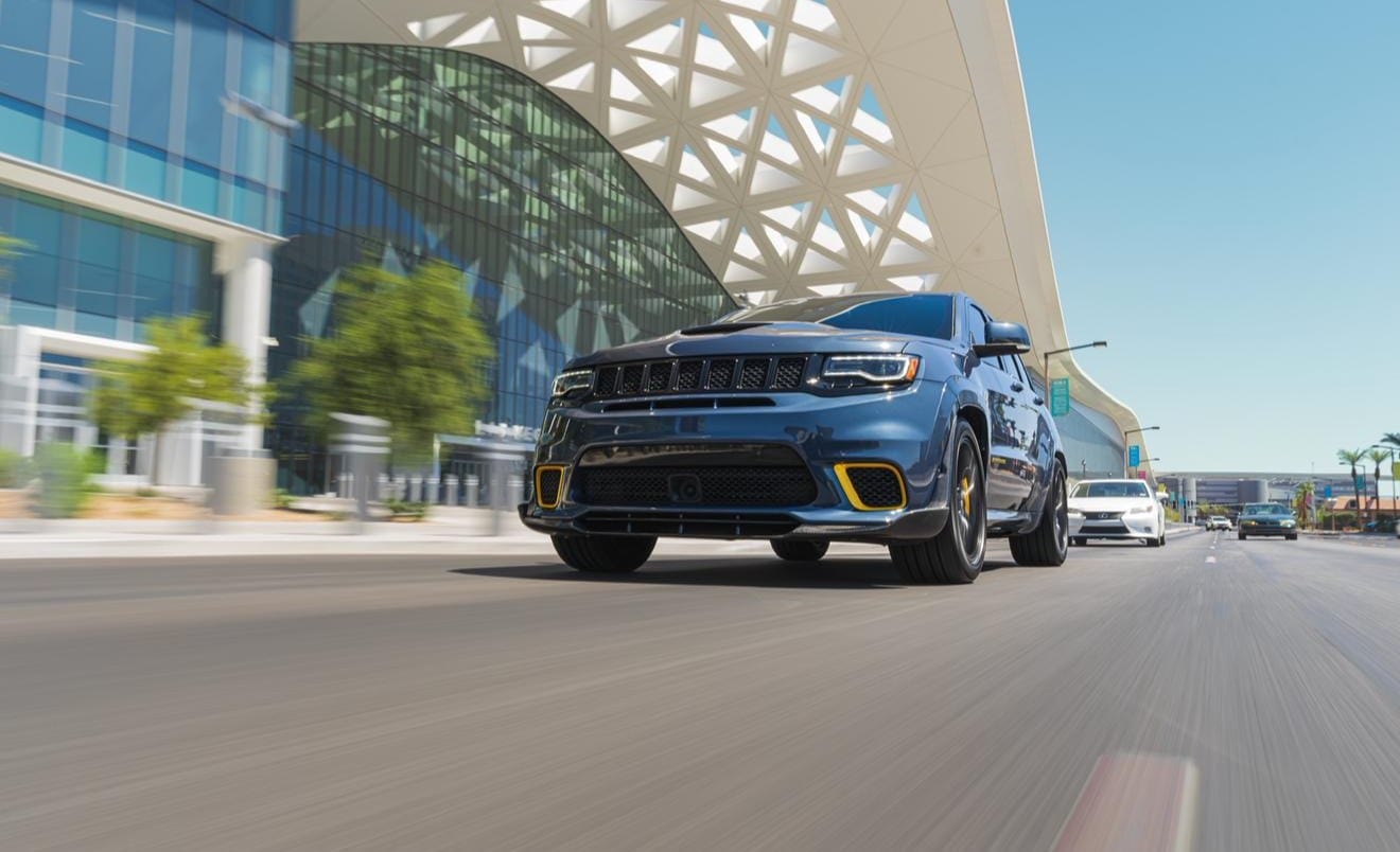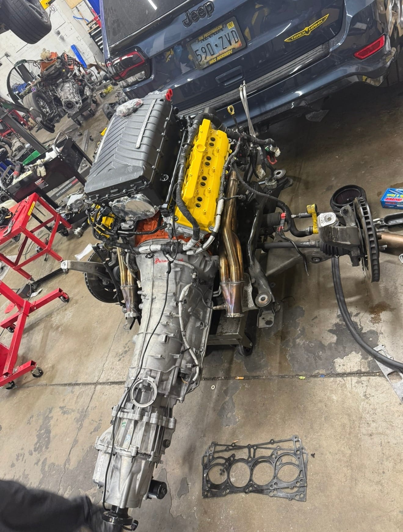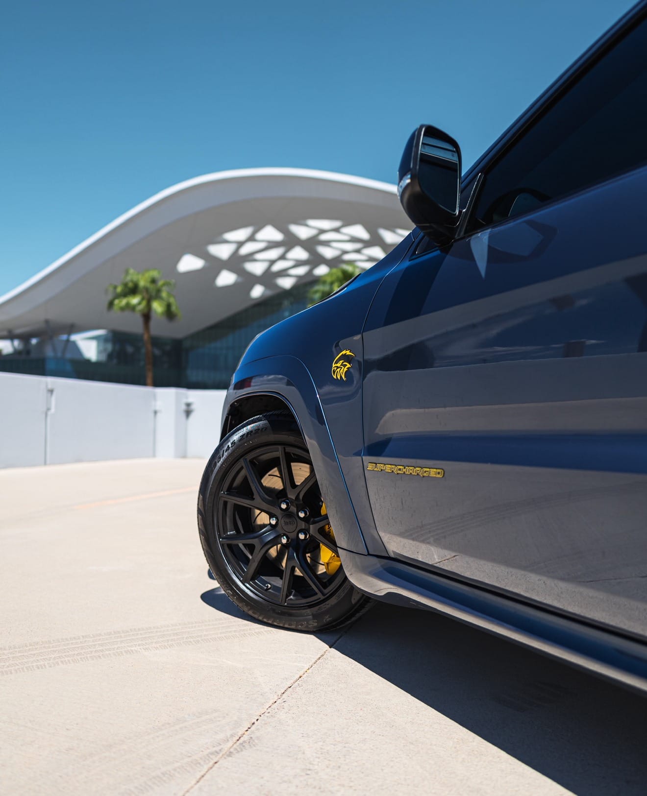 1300+awhp 2019 Jeep Grand Cherokee Trackhawk in Slate Blue with 27,000 (Chassis) miles for sale! This incredibly fast 8-second Trackhawk was built and tuned by RSPDMV, the entire build was well documented with over $150K in invoices showcasing every single thing done to the vehicle. Not only is this Trackhawk heavily modified, but it’s also a very rare spec with it being 1 of only 20 Slate Blue Trackhawks produced for the USA market in 2019. Sporting a monstrous Demon Performance 426ci engine with a 3.8L Whipple Stage 2 supercharger kit, this beast churned out over 1300awhp on the biggest pulley. Diving deeper into the engine build, the 426ci was fitted with billet mains, a forged crankshaft, AFR high flow racing heads, upgraded camshaft (matched for Whipple setup), and a pair of billet valve covers (powder coated yellow), just to name a few. The drivetrain features a Sipple built 8HP95 8-speed automatic transmission along with a Sipple built transfer case. Additional upgrades include a Big Gun air intake, 2100cc fuel injectors, Stage 3+ I/C Interchiller, and more. As for track times, this Trackhawk previously ran an 8.9 in the 1/4-mile with the old engine (same setup). There are currently only 100 miles on the new engine build! Clean title!