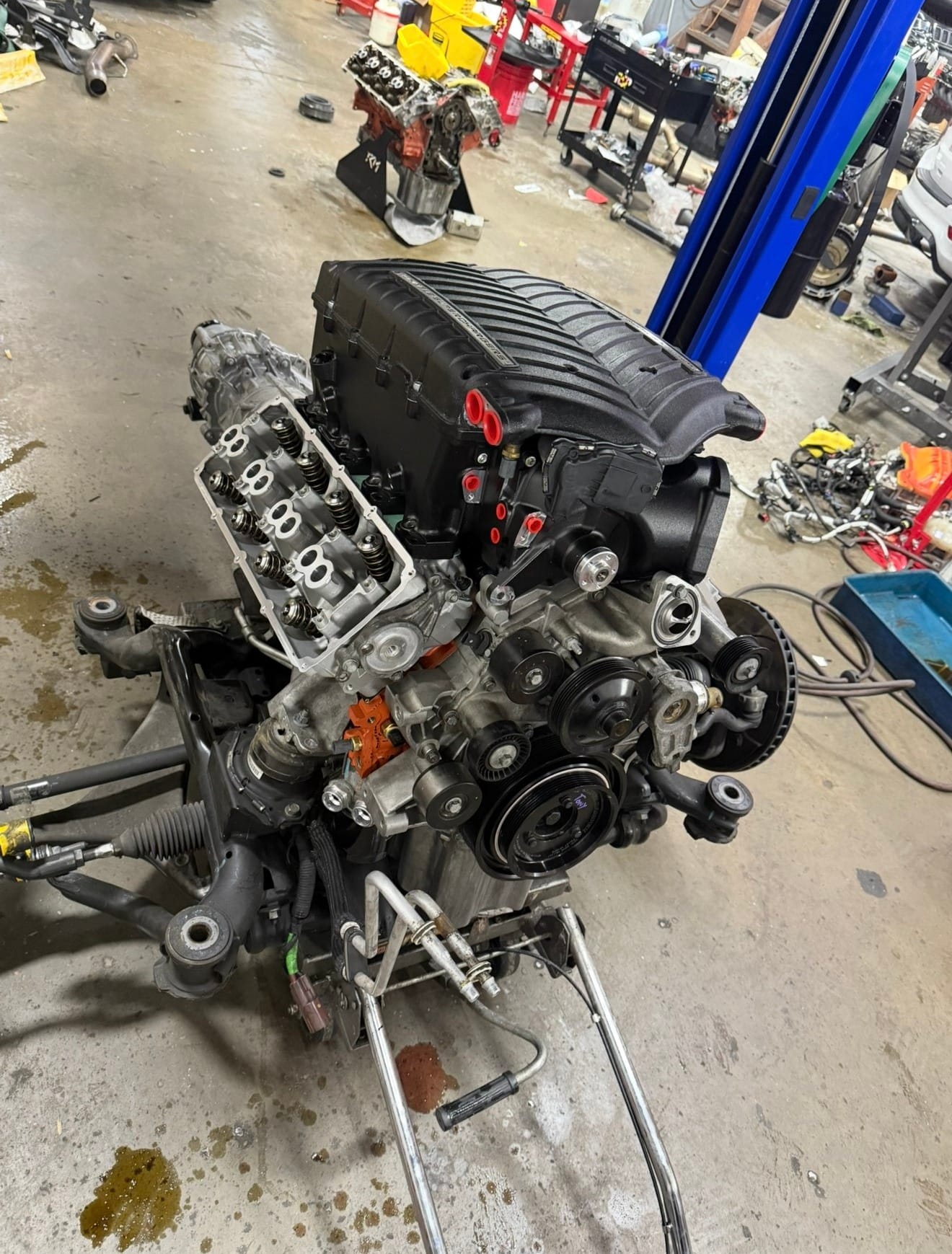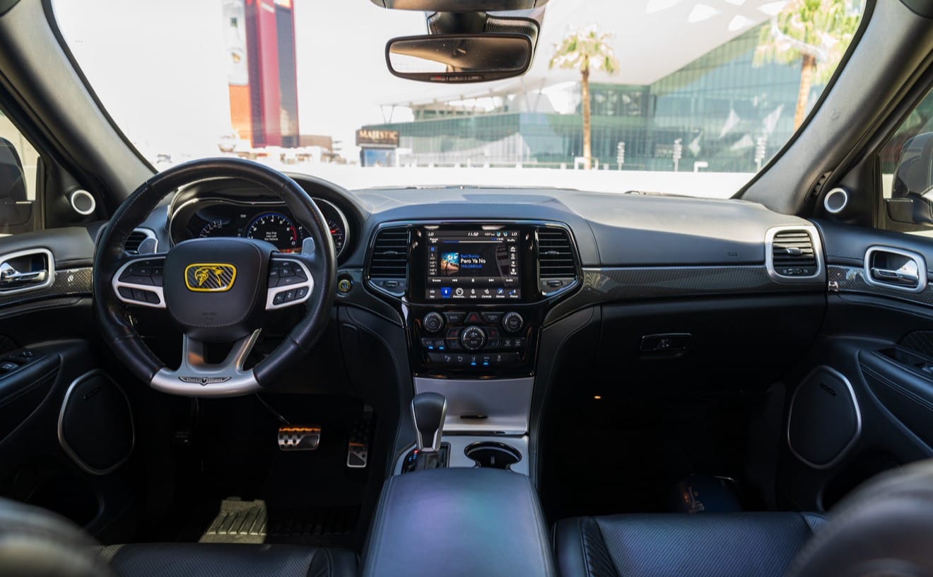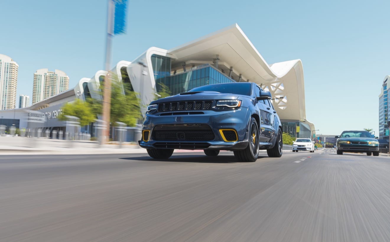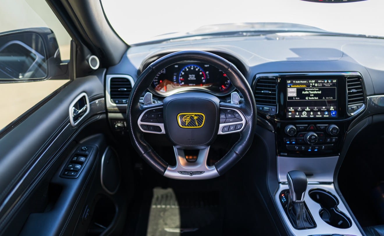 1300+awhp 2019 Jeep Grand Cherokee Trackhawk in Slate Blue with 27,000 (Chassis) miles for sale! This incredibly fast 8-second Trackhawk was built and tuned by RSPDMV, the entire build was well documented with over $150K in invoices showcasing every single thing done to the vehicle. Not only is this Trackhawk heavily modified, but it’s also a very rare spec with it being 1 of only 20 Slate Blue Trackhawks produced for the USA market in 2019. Sporting a monstrous Demon Performance 426ci engine with a 3.8L Whipple Stage 2 supercharger kit, this beast churned out over 1300awhp on the biggest pulley. Diving deeper into the engine build, the 426ci was fitted with billet mains, a forged crankshaft, AFR high flow racing heads, upgraded camshaft (matched for Whipple setup), and a pair of billet valve covers (powder coated yellow), just to name a few. The drivetrain features a Sipple built 8HP95 8-speed automatic transmission along with a Sipple built transfer case. Additional upgrades include a Big Gun air intake, 2100cc fuel injectors, Stage 3+ I/C Interchiller, and more. As for track times, this Trackhawk previously ran an 8.9 in the 1/4-mile with the old engine (same setup). There are currently only 100 miles on the new engine build! Clean title!