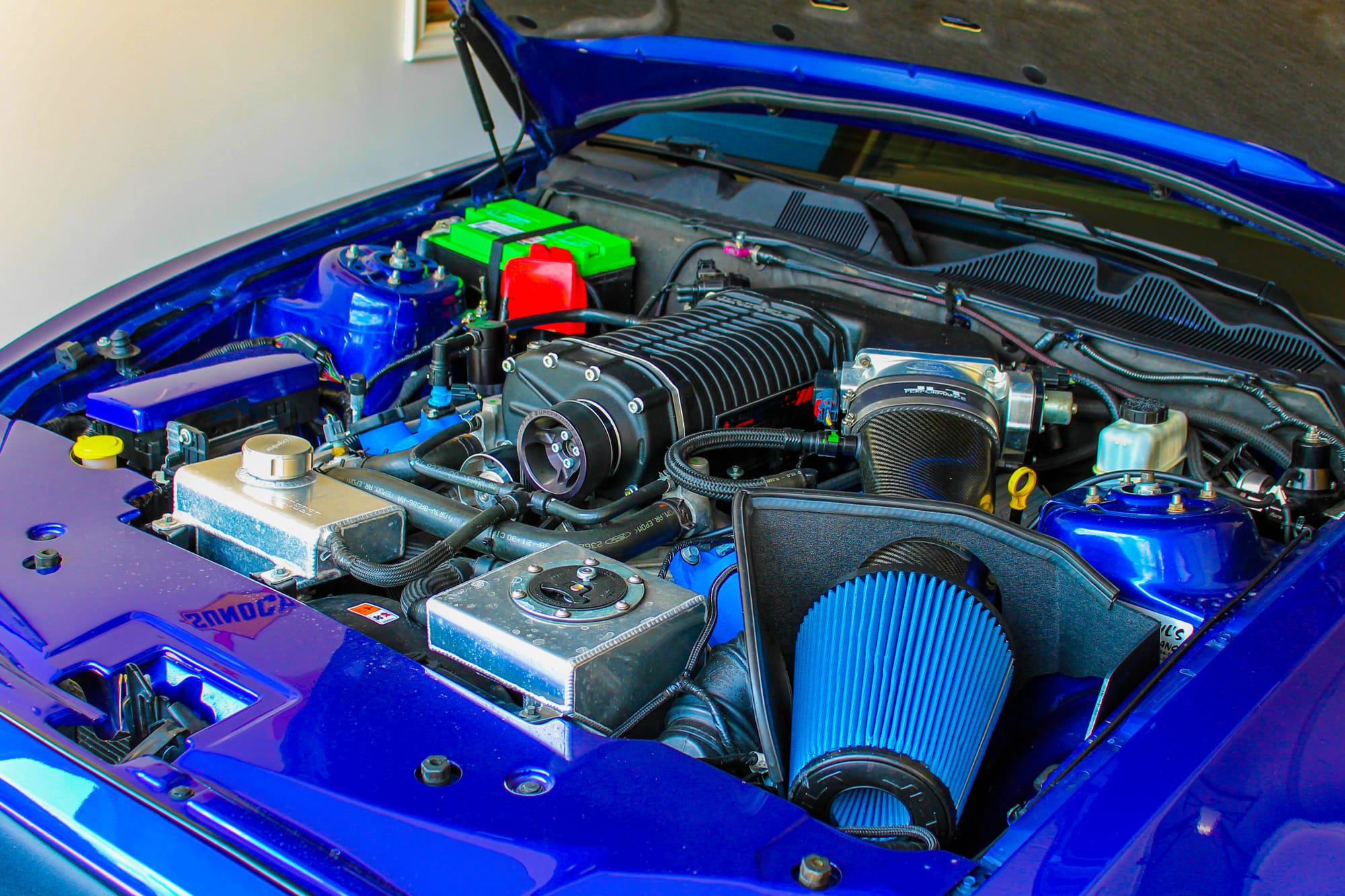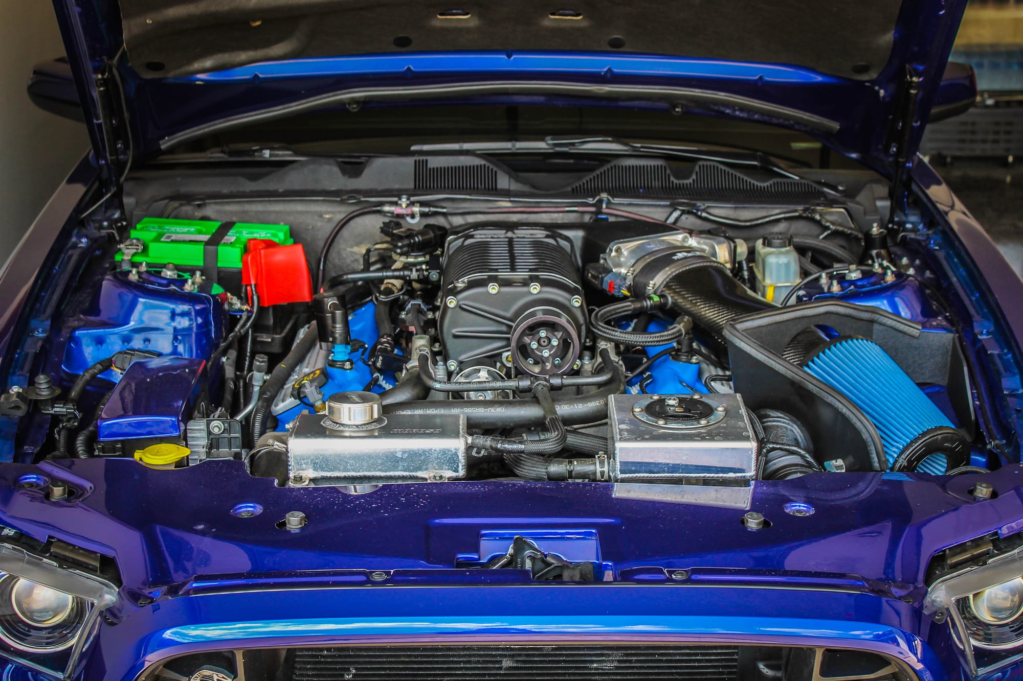 2013 Ford Mustang Shelby GT500 in Deep Impact Blue with 25,660 miles for sale! The engine was topped with a 3.4L Whipple supercharger system, power generated from this setup is transferred to the rear through a Tremec Magnum XL 6-speed manual transmission with a McLeod RXT street twin disc clutch. The fuel system utilizes a set of ID1300 fuel injectors along with an Aeromotive fuel pump speed controller. Following the Tremec Magnum XL, the drivetrain also features an MCL steel SFI racing flywheel, QT blow Proof bellhousing, Driveshaft Shop driveshaft, Strange 35 spline alloy axles with a 5/8” stud kit, and a Motive Gear Performance 3.73 gear set. Additional upgrades include a Kenne Bell Mammoth intake intercooler, brushless intercooler pump, C&R high capacity radiator, WELD Racing RT-S S71 drag pack, QA1 coilovers, Steeda billet lower control arms/adjustable 3rd link, and more. Modifications were installed by Paul’s High Performance Inc., and tuning was handled by them as well. Full build sheet available for serious buyers. Only 500 miles on the build with invoices for the work performed! Clean title!