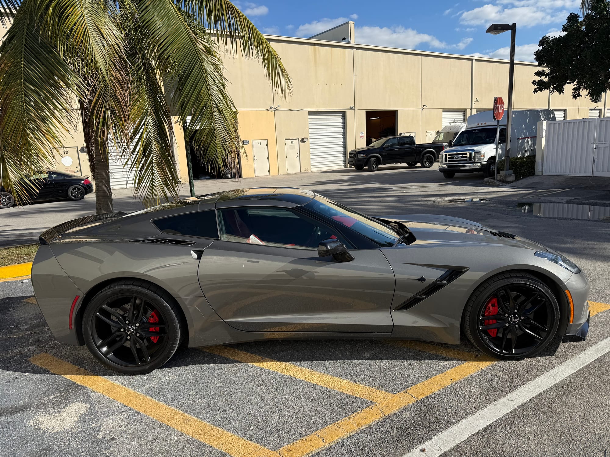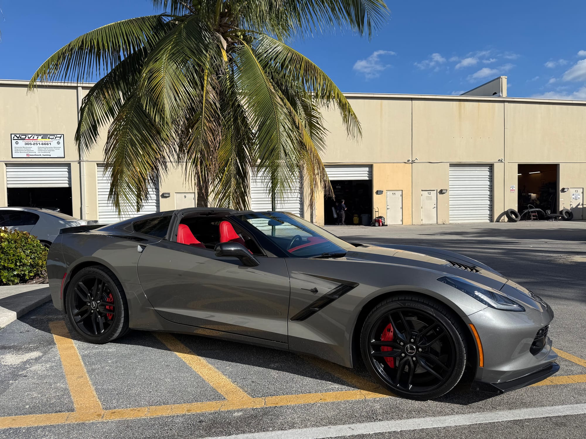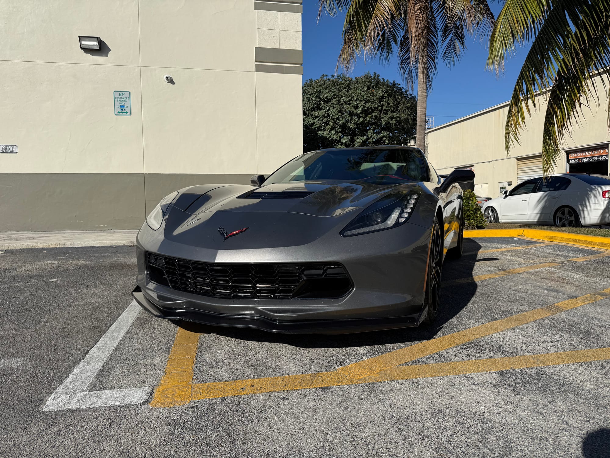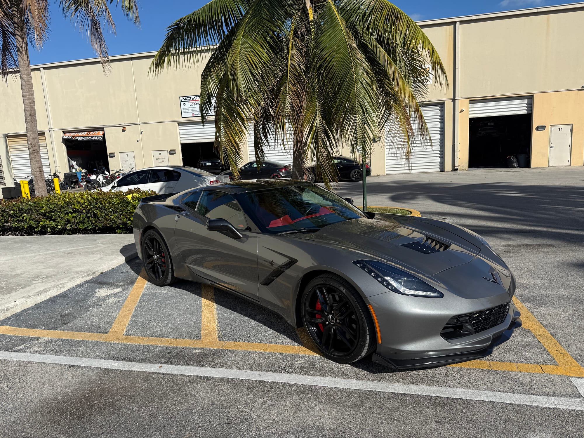 2015 Chevrolet Corvette Stingray Z51 in Shark Gray with 77,500 miles for sale! This C7 is powered by a cammed 6.2L LT1 that’s paired with an A&A supercharger (Vortech V-3 SI head unit), and linked to a Tremec TR-6070 7-speed manual transmission with a Tilton racing clutch. The LT1 was fitted with a Texas Speed Stage 2 camshaft along with an oil catch can. Further equipped with a DSX auxiliary fuel pump, Corsa headers, off-road x-pipe, AEM boost gauge, and an AEM air/fuel ratio (AFR) gauge. The owner purchased the vehicle with the modifications already installed, it was later revised by a local performance shop, and the car was street tuned by Max Effort Tuning. Everything is in perfect mechanical condition, however there are a few areas that need to be addressed in terms of aesthetics. The vehicle does have the common dash peel by the windshield, the exterior needs a paint correction, and the carbon roof needs to be re-cleared. Clean title!