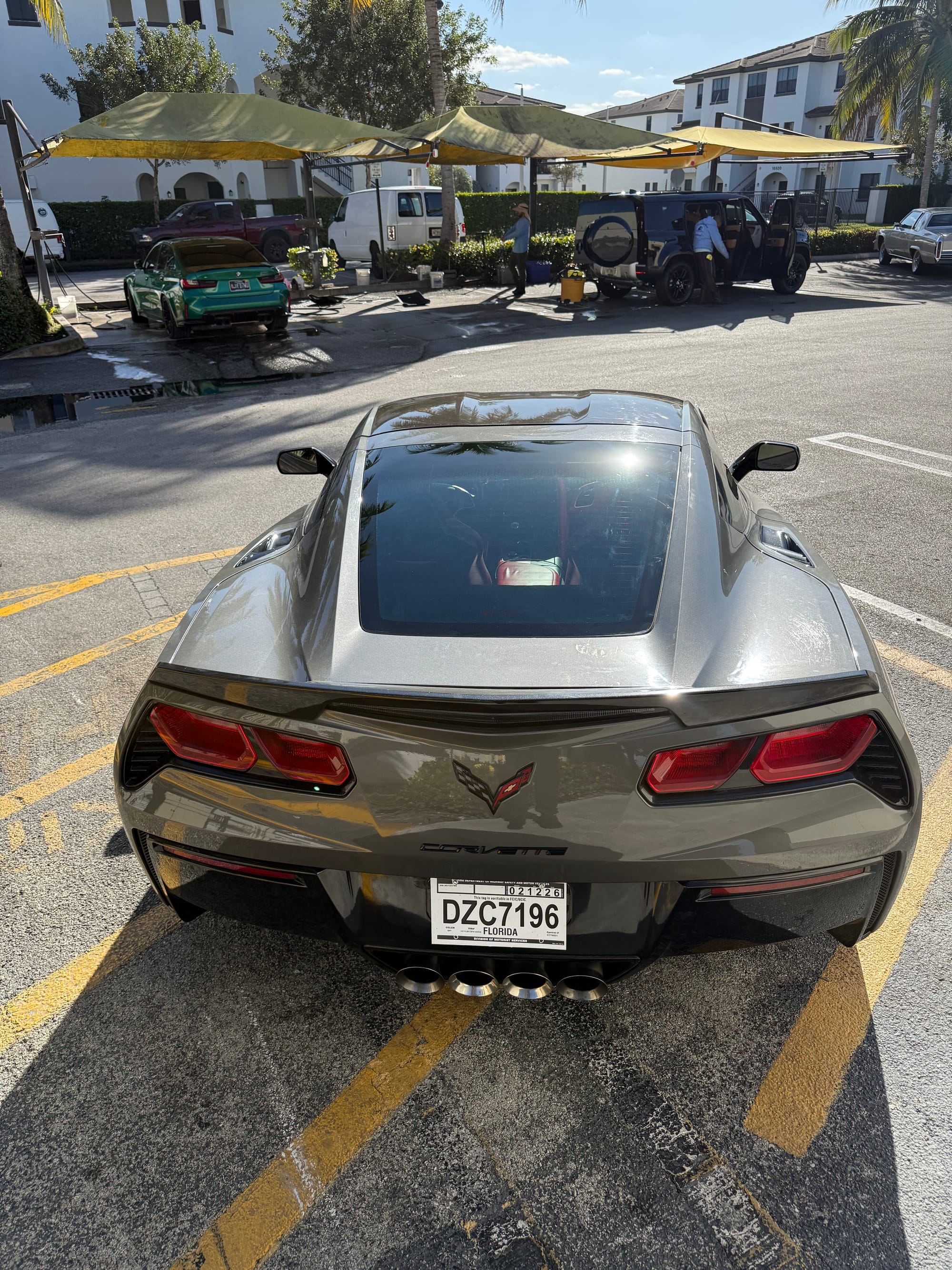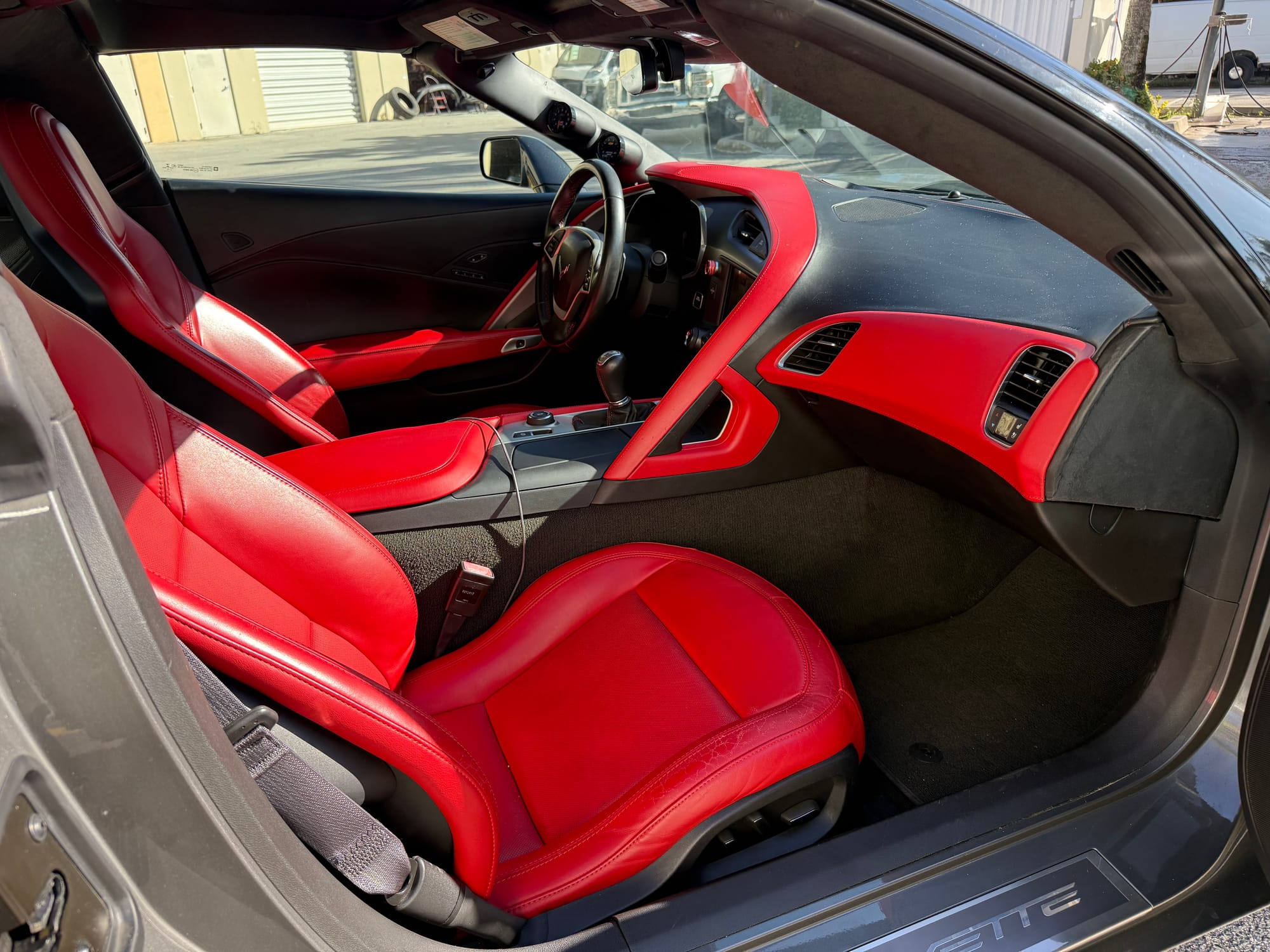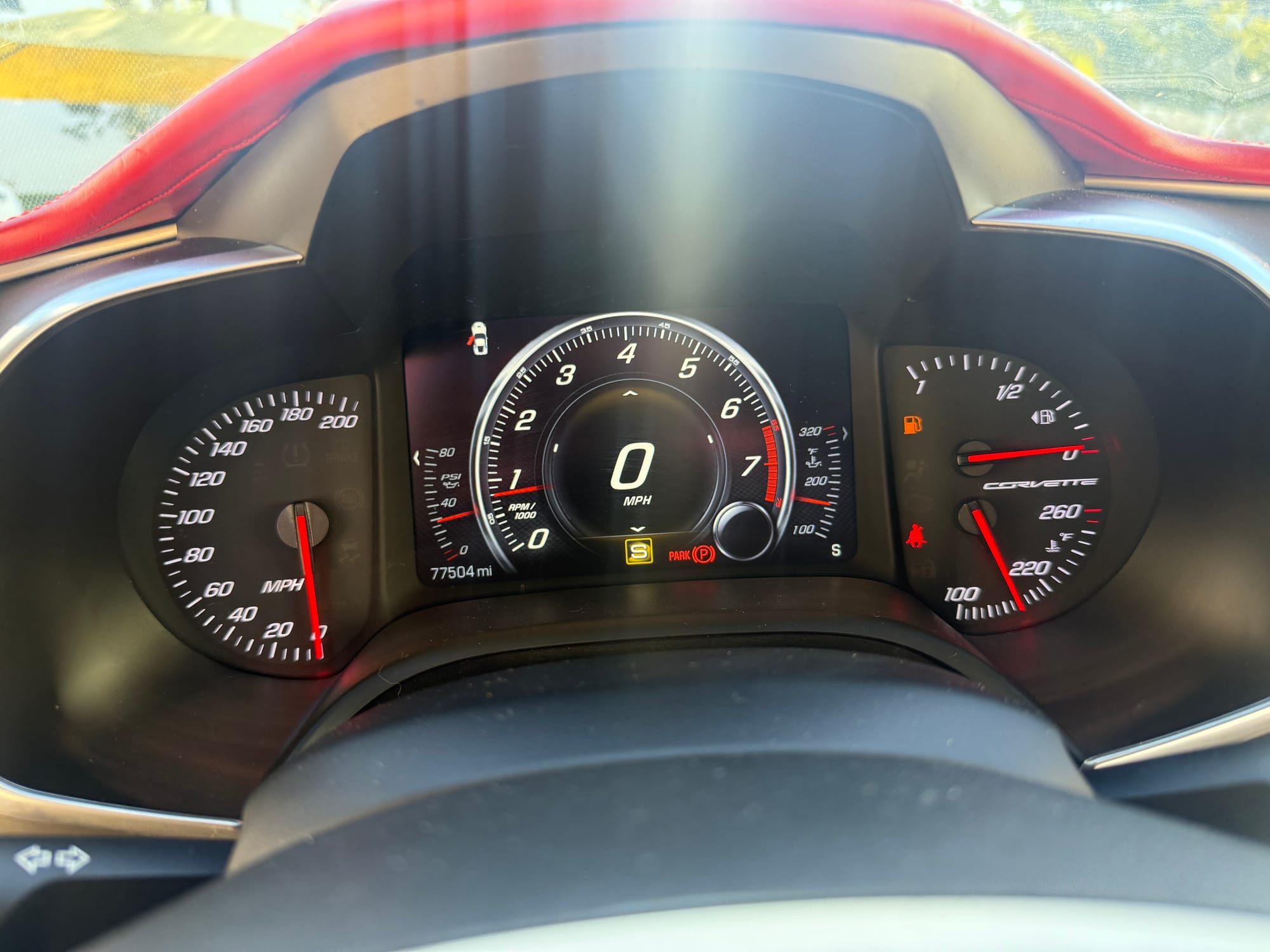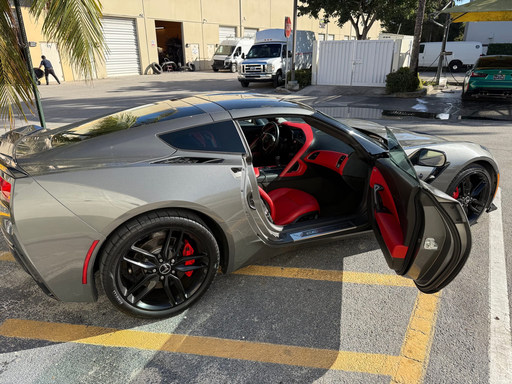 2015 Chevrolet Corvette Stingray Z51 in Shark Gray with 77,500 miles for sale! This C7 is powered by a cammed 6.2L LT1 that’s paired with an A&A supercharger (Vortech V-3 SI head unit), and linked to a Tremec TR-6070 7-speed manual transmission with a Tilton racing clutch. The LT1 was fitted with a Texas Speed Stage 2 camshaft along with an oil catch can. Further equipped with a DSX auxiliary fuel pump, Corsa headers, off-road x-pipe, AEM boost gauge, and an AEM air/fuel ratio (AFR) gauge. The owner purchased the vehicle with the modifications already installed, it was later revised by a local performance shop, and the car was street tuned by Max Effort Tuning. Everything is in perfect mechanical condition, however there are a few areas that need to be addressed in terms of aesthetics. The vehicle does have the common dash peel by the windshield, the exterior needs a paint correction, and the carbon roof needs to be re-cleared. Clean title!
