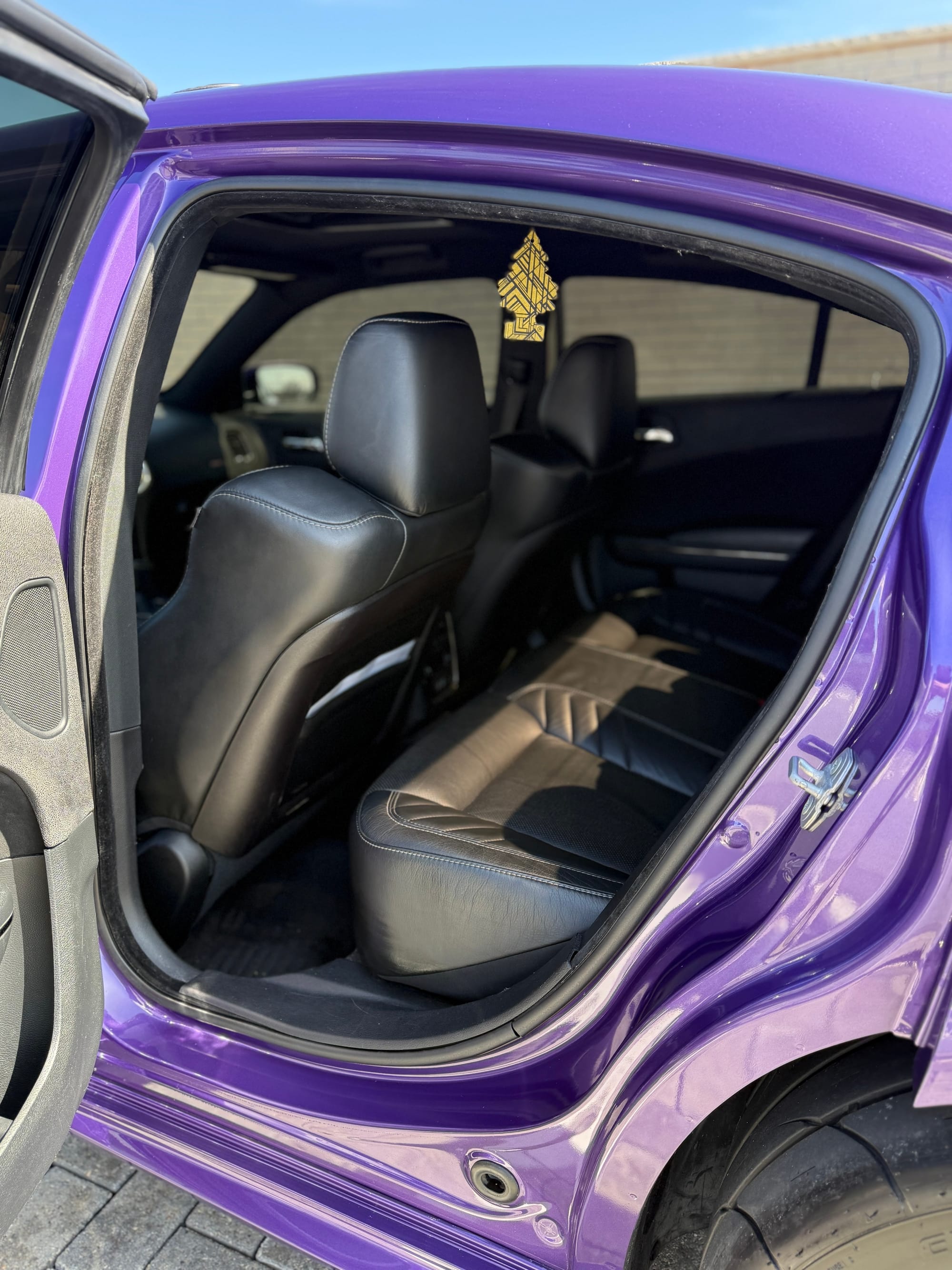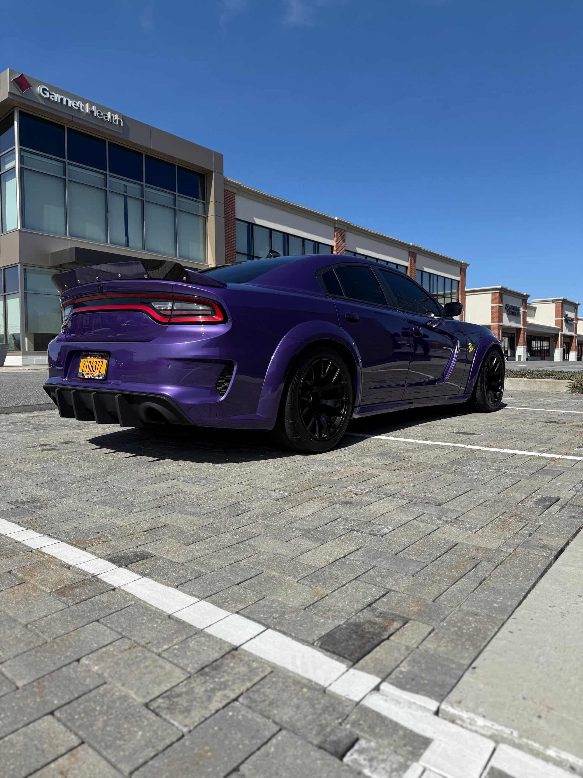 2015 Dodge Charger SRT Hellcat in Plum Crazy with 115,000 (Chassis) miles for sale! This highly modified Hellcat is powered by an EMP built engine with a Demon Performance billet intake manifold on top, and Hell Bent Race Cars custom twin turbo kit. The fuel system was upgraded to a Fore Innovations L4 fuel system to ensure fuel demands are met. Power is delivered to the rear wheels through a Suncoast built 8HP90 8-speed automatic transmission that’s trailed by a carbon fiber driveshaft, and G-Force axles. Modifications were installed by EMP, and tuning was handled by Team Hellcat, there are currently no dyno numbers as the car was street tuned. As for aesthetics, the car was professionally re-sprayed in Plum Crazy, and outfitted with an OEM widebody conversion. There are currently only 1,500 miles on the build! Clean title!