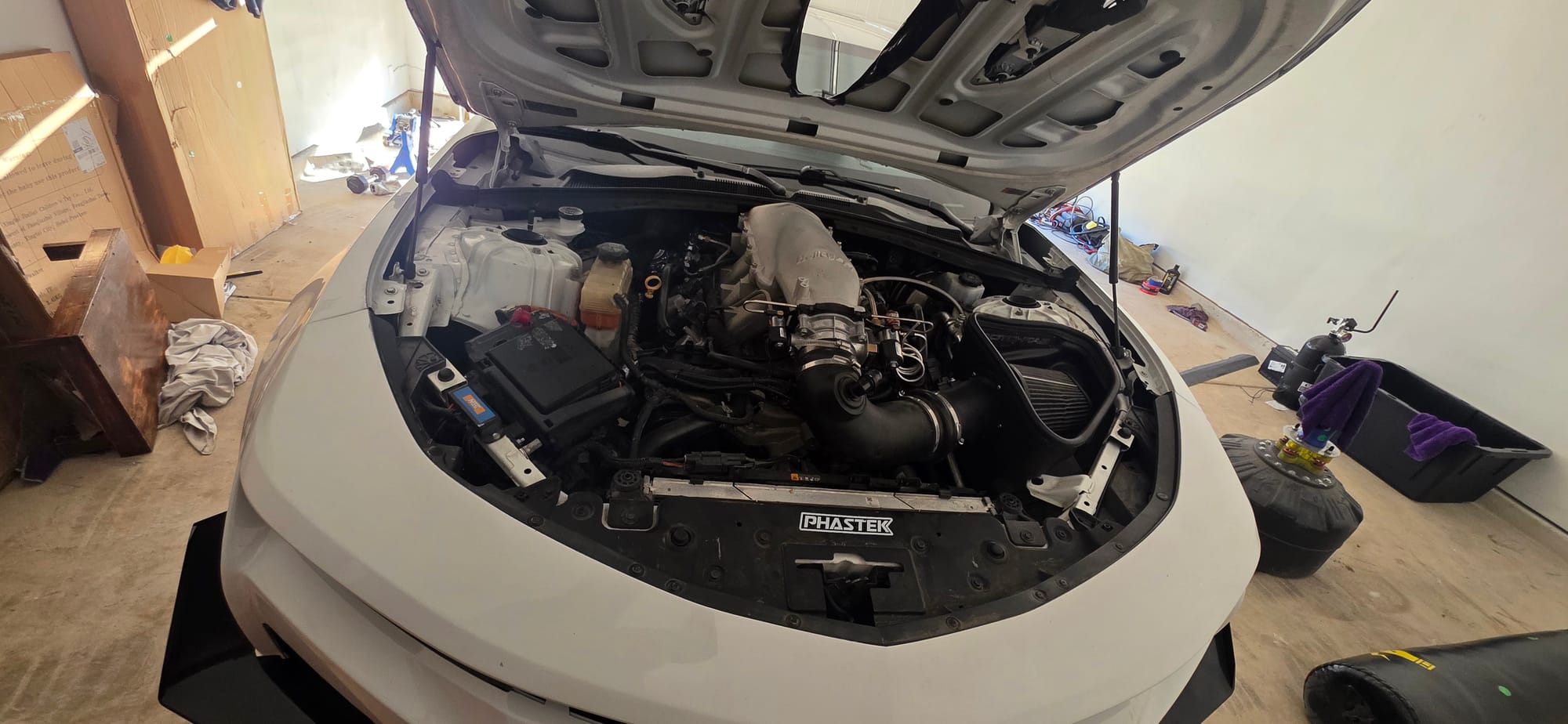 2016 Chevrolet Camaro 2SS in Summit White with 86,200 (Chassis) miles for sale! This 6th-gen Camaro was modified by American Intense Racing in Denver, CO, and is powered by a cammed 6.2L LT1 (new engine w/ receipt) that's paired with a recently installed 150-shot nitrous system (never used). The LT1 was fitted with a GPI Stage 3 camshaft along with 7.850 pushrods, .660 lift platinum spring kit kit with titanium retainers, and a Holley hi-ram intake manifold. The fuel system features an LT4 high pressure fuel pump (HPFP), LT4 fuel injectors, and a DSX flex fuel sensor (E85 ready). Further equipped with a pair of long tube headers, VMS Racing wheels wrapped in Hoosier drag tires, and a set of brand new Power Stop Z26 rotors and pads. The car was recently street tuned at Nelson Performance in San Antonio, TX on March 23rd, they also made sure the car is running perfectly and dialed in for the next owner before it leaves the shop. The only time the car saw a dyno was when it was initially tuned in Denver, it made 540whp at the time without nitrous (no dyno sheet available). Since then, the only thing that’s changed was the installation of the LT4 fuel injectors and LT4 HPFP. The exterior does have some flaws, but nothing crazy, and the interior is in really good shape with no tears or stains. The owner is only looking to sell due to not having time for the car anymore as he now has a 6-month old. There are currently around 3K miles on the modifications, and 7K miles on the new engine! Clean title!
