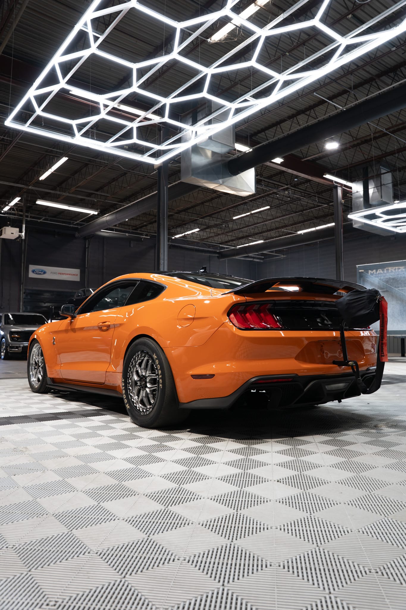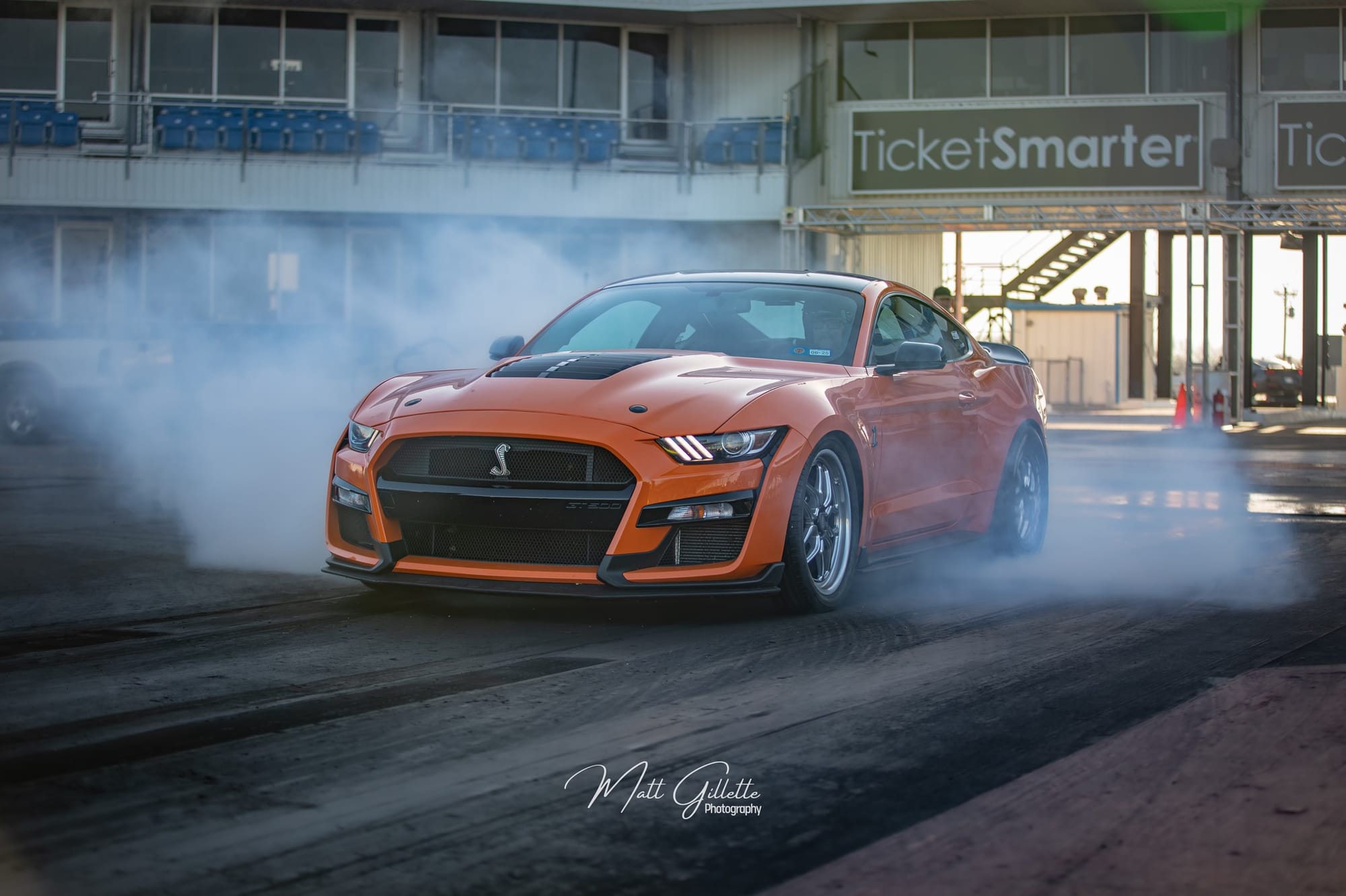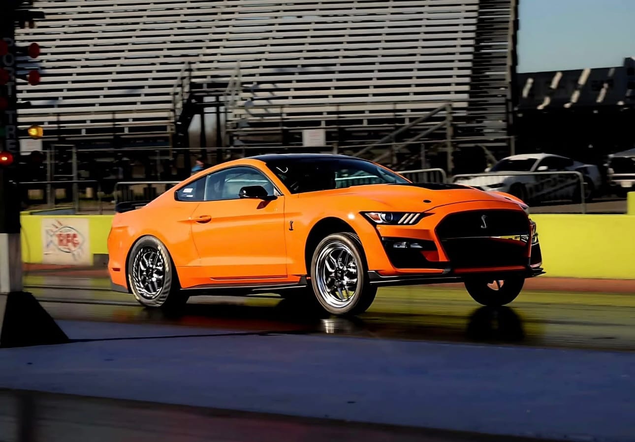 ~1150whp 2021 Ford Mustang Shelby GT500 in Twister Orange with 8,700 miles for sale! This vibrant GT500 was modified by Speed Syndicate out of Forth Worth, TX, it currently holds the un-ported blower ET and MPH record for GT500’s with an 8.96 pass in the 1/4-mile at 158mph. Powered by a 5.2L Predator V8 that’s topped with an Eaton TVS R2650 supercharger, and linked to a Tremec TR-9070 7-speed dual-clutch transmission. The supercharger system utilizes a VMP Apex Predator lid, 2.35” 8-rib upper pulley, 20% overdrive crank pulley, Kong 108mm throttle body, and JLT cold air intake. This setup is supported by a Fore Innovations triple pump fuel system along with a set of Injector Dynamics ID1650X fuel injectors. Additional upgrades include a pair of long tube headers, trunk mounted 7-gallon ice tank, Livernois heat exchanger, full KellTrac suspension, Viking rear shocks, WELD Racing Laguna drag pack, Aerospace brakes and rotors, half cage, and more. All brought together with tuning from Coastal Dyno (tuned for E98, E85 & 93 octane), the car has not been on a dyno with this setup, however it should be in the 1150-1200whp range considering the 1/4-mile time/weight/trap speed. The car has excellent street manners, and can be driven like a completely normal GT500 with full interior. The car is extremely healthy, and ready for a new owner to enjoy! Clean title!