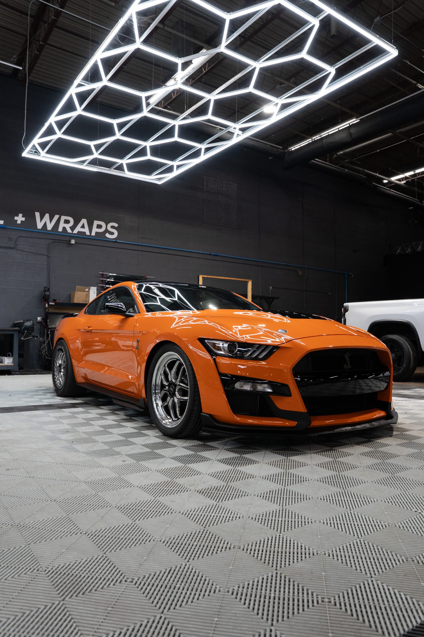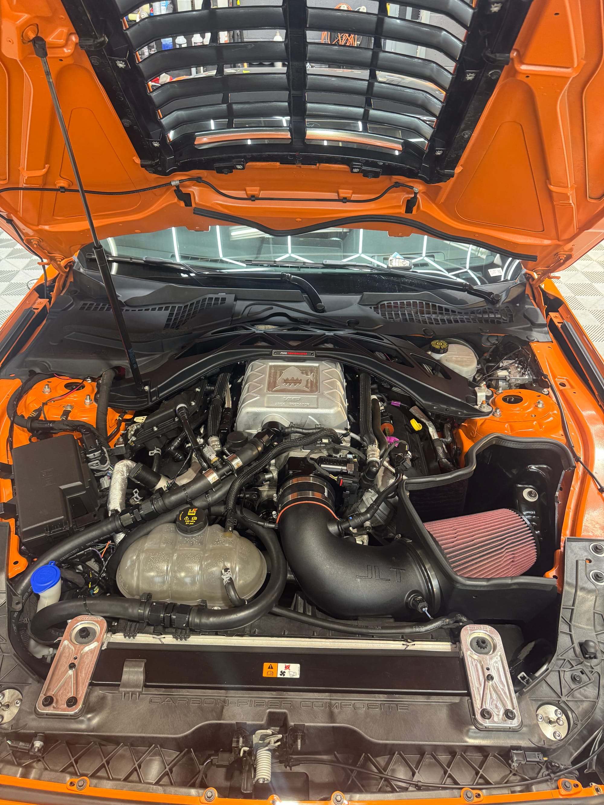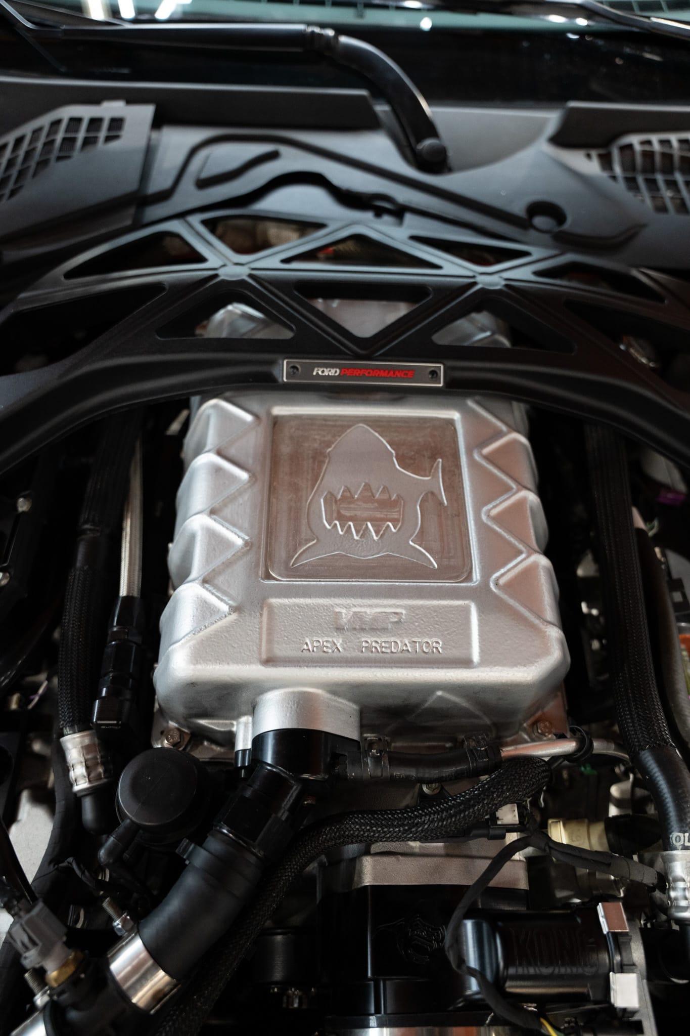 ~1150whp 2021 Ford Mustang Shelby GT500 in Twister Orange with 8,700 miles for sale! This vibrant GT500 was modified by Speed Syndicate out of Forth Worth, TX, it currently holds the un-ported blower ET and MPH record for GT500’s with an 8.96 pass in the 1/4-mile at 158mph. Powered by a 5.2L Predator V8 that’s topped with an Eaton TVS R2650 supercharger, and linked to a Tremec TR-9070 7-speed dual-clutch transmission. The supercharger system utilizes a VMP Apex Predator lid, 2.35” 8-rib upper pulley, 20% overdrive crank pulley, Kong 108mm throttle body, and JLT cold air intake. This setup is supported by a Fore Innovations triple pump fuel system along with a set of Injector Dynamics ID1650X fuel injectors. Additional upgrades include a pair of long tube headers, trunk mounted 7-gallon ice tank, Livernois heat exchanger, full KellTrac suspension, Viking rear shocks, WELD Racing Laguna drag pack, Aerospace brakes and rotors, half cage, and more. All brought together with tuning from Coastal Dyno (tuned for E98, E85 & 93 octane), the car has not been on a dyno with this setup, however it should be in the 1150-1200whp range considering the 1/4-mile time/weight/trap speed. The car has excellent street manners, and can be driven like a completely normal GT500 with full interior. The car is extremely healthy, and ready for a new owner to enjoy! Clean title!