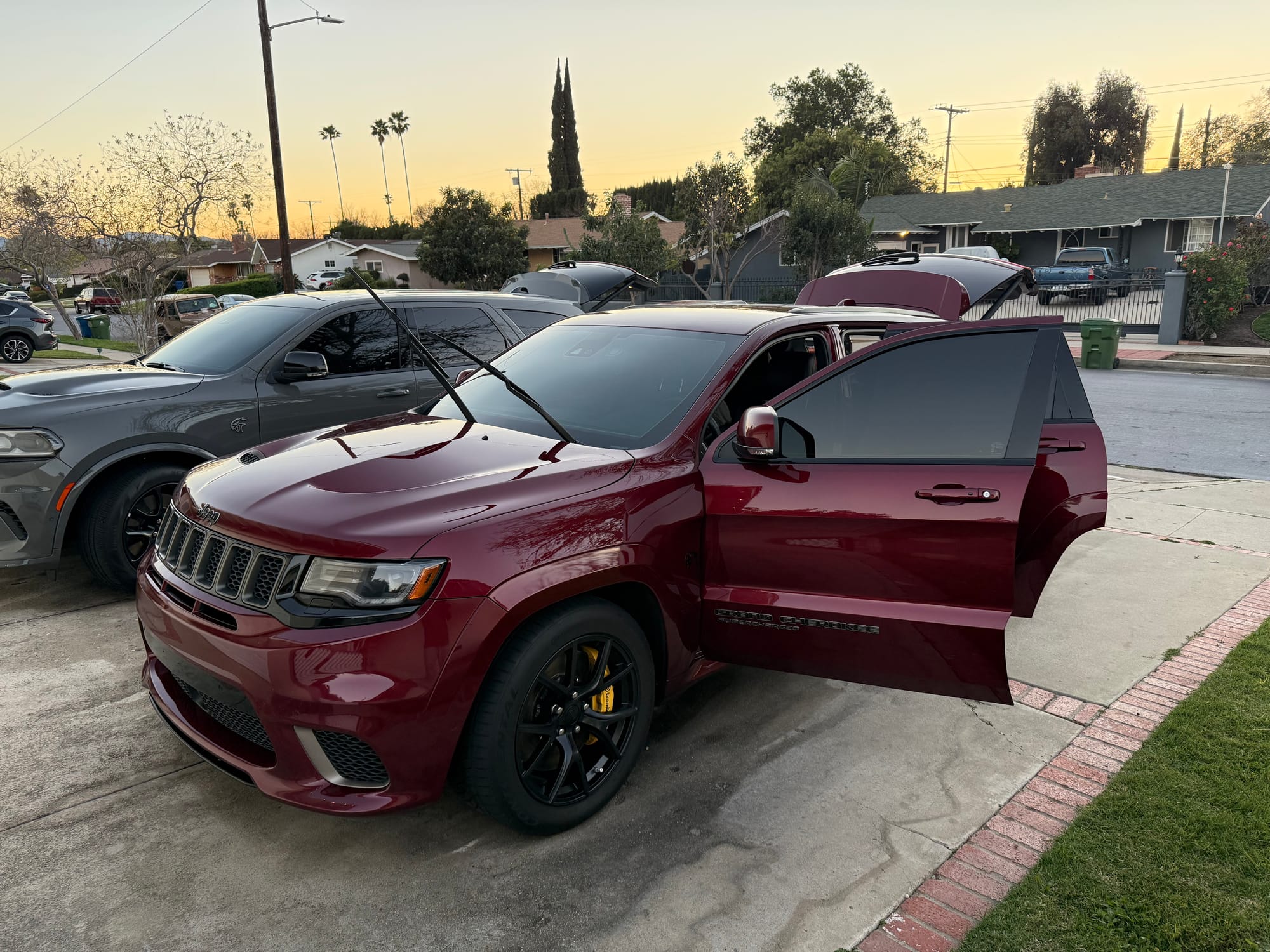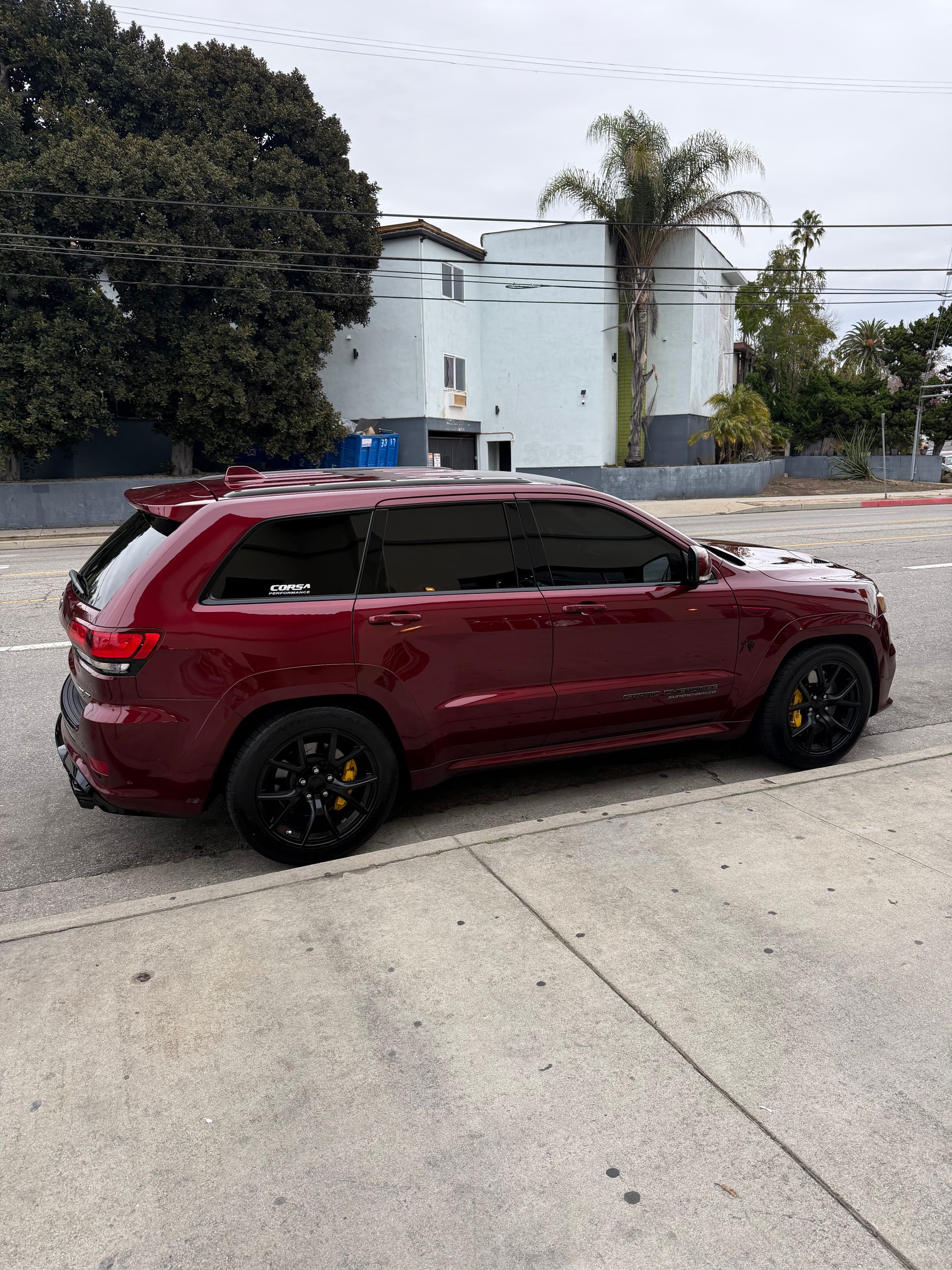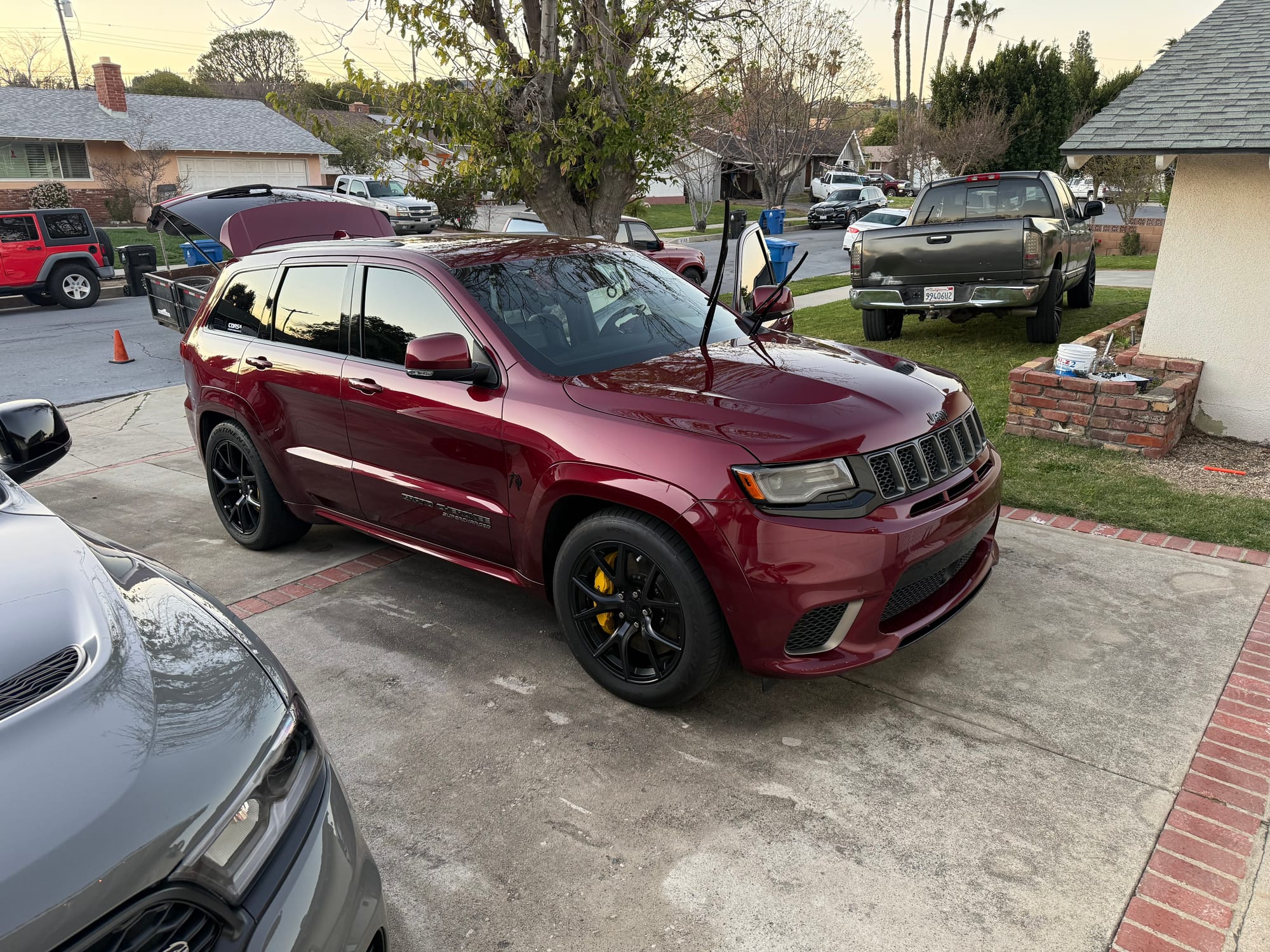 2021 Jeep Grand Cherokee Trackhawk in Velvet Red with 54,500 miles for sale! This Trackhawk packs a 6.2L HEMI that’s topped with a 2.4L IHI twin-screw supercharger, power generated from this combination is delivered to all four wheels through an 8HP95 8-speed automatic transmission. Modifications remain light with the installation of a Corsa carbon fiber cold air intake, and Corsa Performance cat-back exhaust. It’s ready to be enjoyed in its current configuration or ready for its first round of major performance upgrades! Clean title!