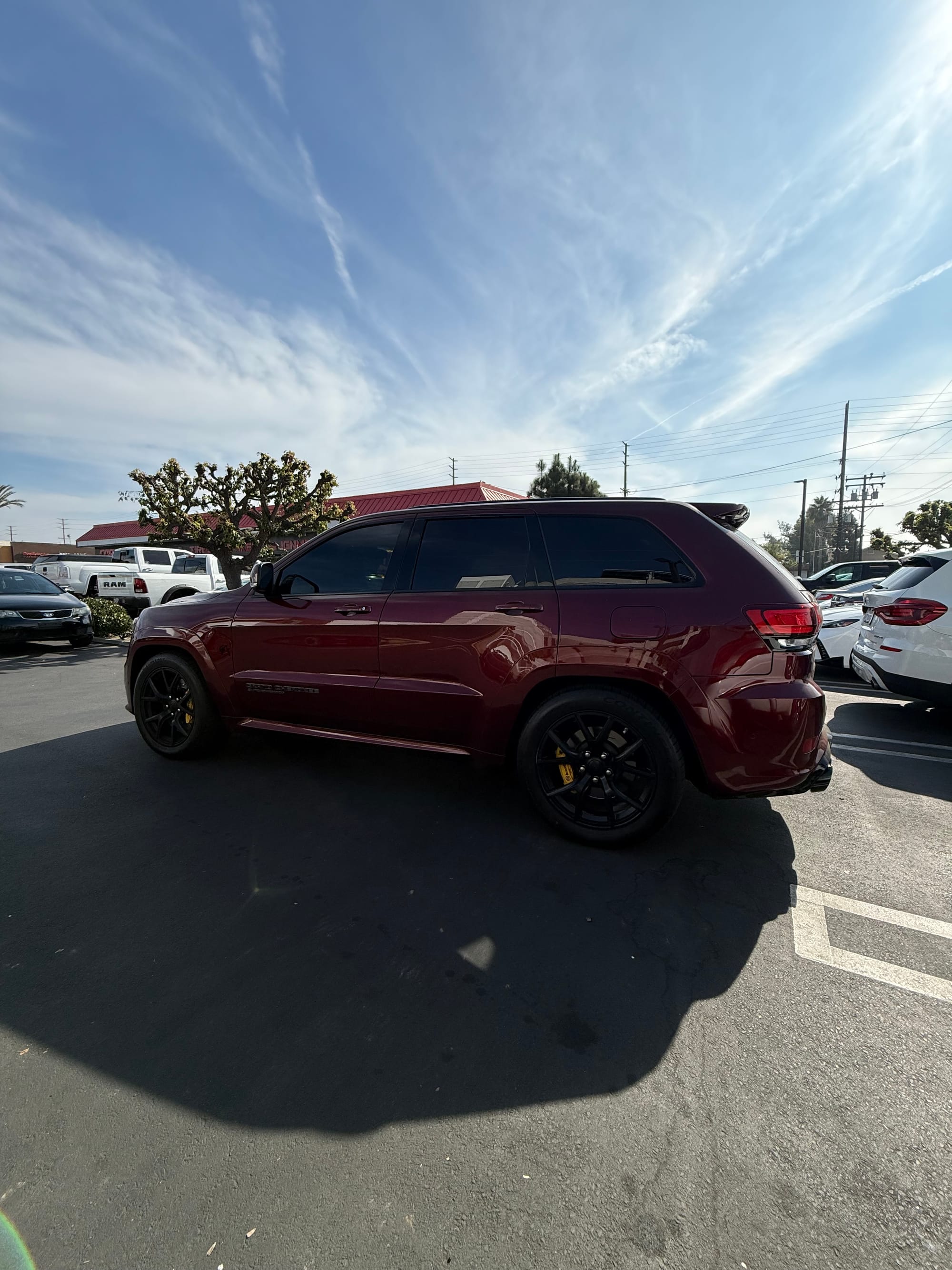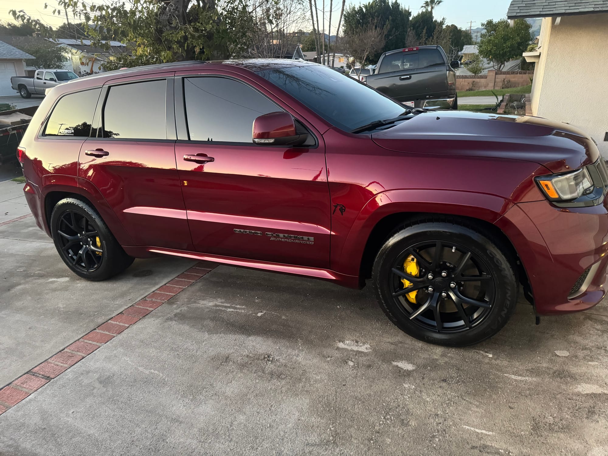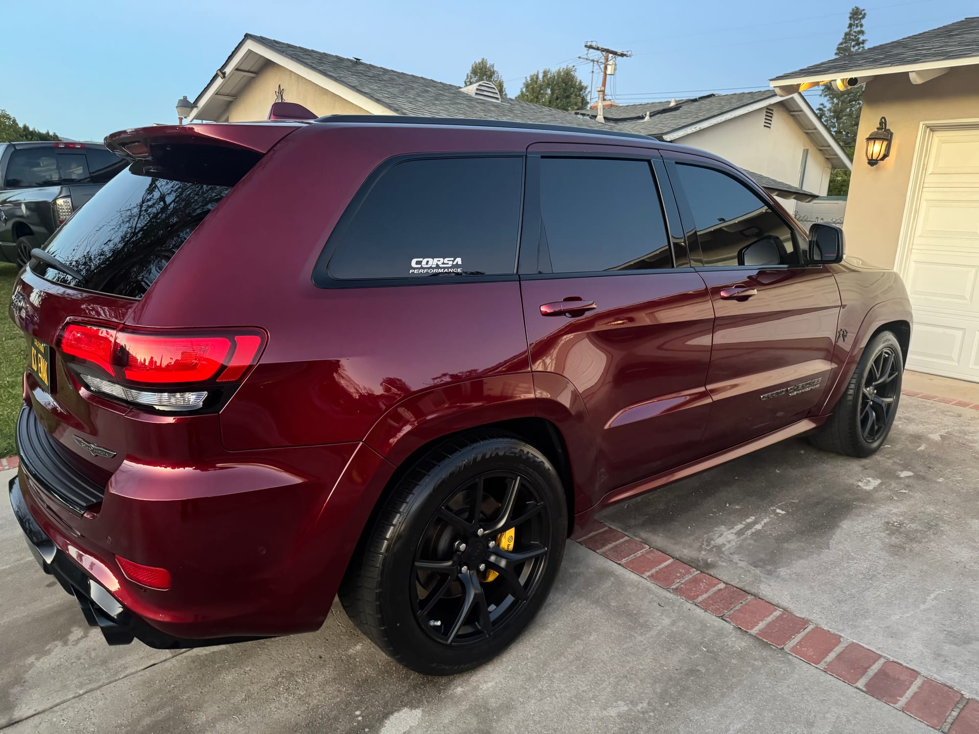 2021 Jeep Grand Cherokee Trackhawk in Velvet Red with 54,500 miles for sale! This Trackhawk packs a 6.2L HEMI that’s topped with a 2.4L IHI twin-screw supercharger, power generated from this combination is delivered to all four wheels through an 8HP95 8-speed automatic transmission. Modifications remain light with the installation of a Corsa carbon fiber cold air intake, and Corsa Performance cat-back exhaust. It’s ready to be enjoyed in its current configuration or ready for its first round of major performance upgrades! Clean title!