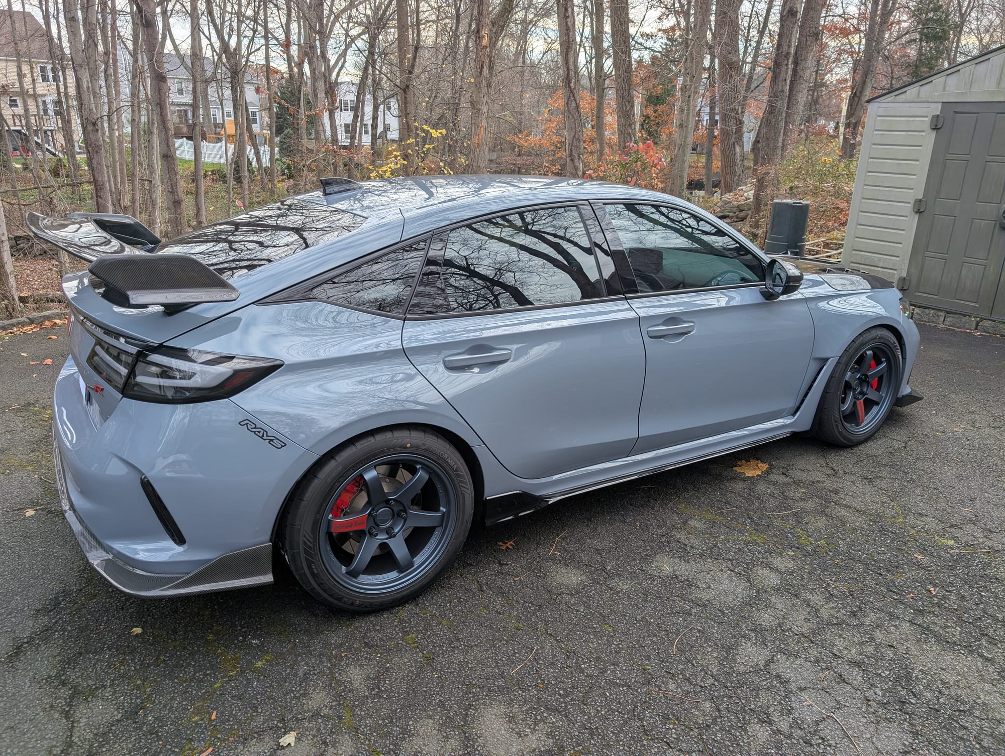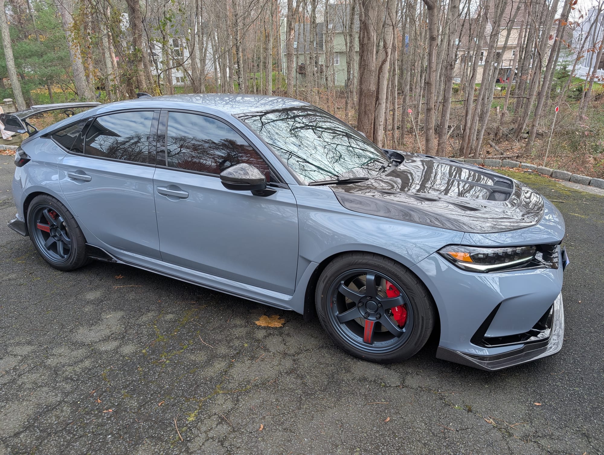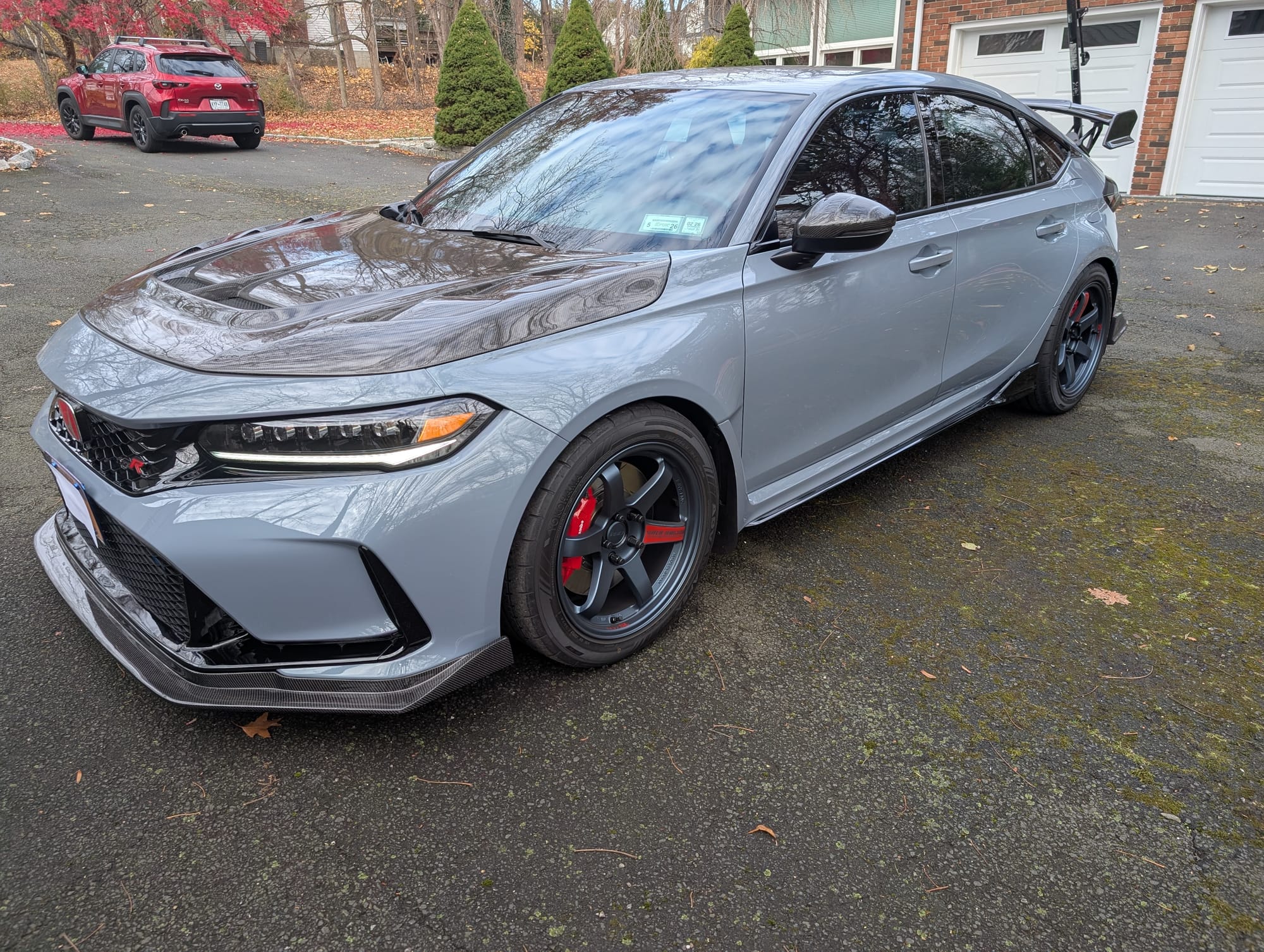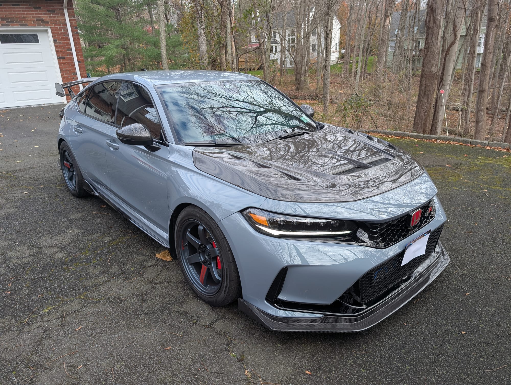 2024 Honda Civic Type R in Sonic Gray Pearl with 4,050 miles for sale! This incredibly clean FL5 Type R was dropped off with Greg at BuyYourBuild to receive several quality upgrades, most of the work performed was well documented by Greg with photo and thorough videos (BuyYourBuild YouTube channel) showcasing the install process for specific modifications. Power is derived from a 2.0L K20C1 engine that’s coupled with a Mitsubishi Heavy Industries (MHI) Stage 2 turbo, this combination is linked to a 6-speed manual transmission. Essentially, this is a full bolt on setup, armed with nearly everything you can imagine without going internally. All brought together with tuning from Jester Tuned, the car hasn’t seen a dyno, however it drives phenomenally with improved handling/braking/power delivery as a result of the modifications. Additional performance upgrades include a handful of PRL components (inlet pipe/intake/IC piping/charge pipes), RV6 FMIC, Boomba BPV, Hondata 1530 injectors, Full-Race HPFP, TSP catted downpipe, and a Remark titanium exhaust. In terms of aesthetics, the car was outfitted with a handful of carbon fiber components, along with Suntek Paint Protection Film (PPF), Alpha Rex headlights, and a nicely spec’d set of Volk Racing TE37SL wheels wrapped in Advan tires. Overall, this tastefully modified Type R is in mint condition, and it only gets driven on the weekends. There are currently 1,500 miles on the modifications! Invoices are available! Clean title!