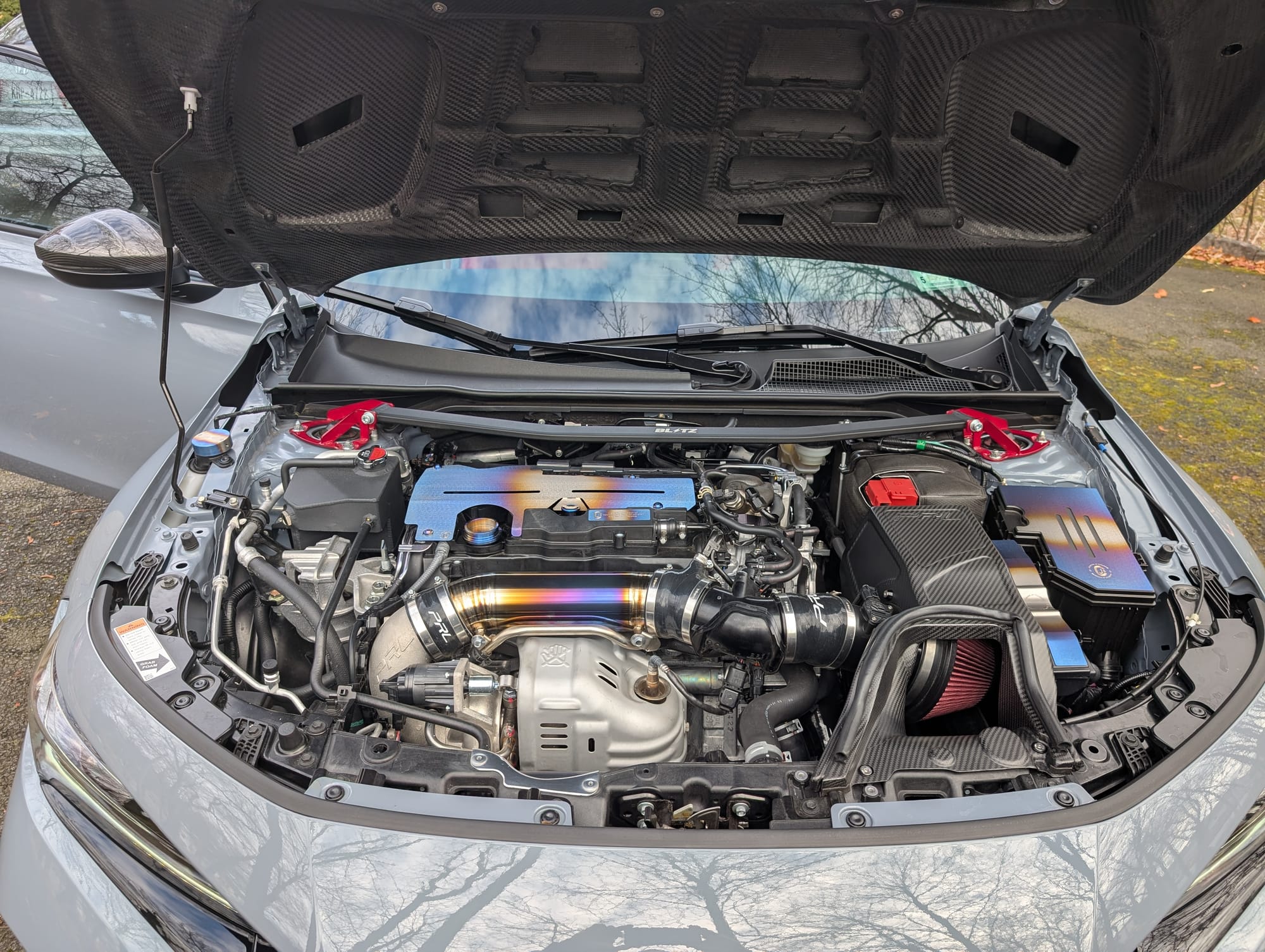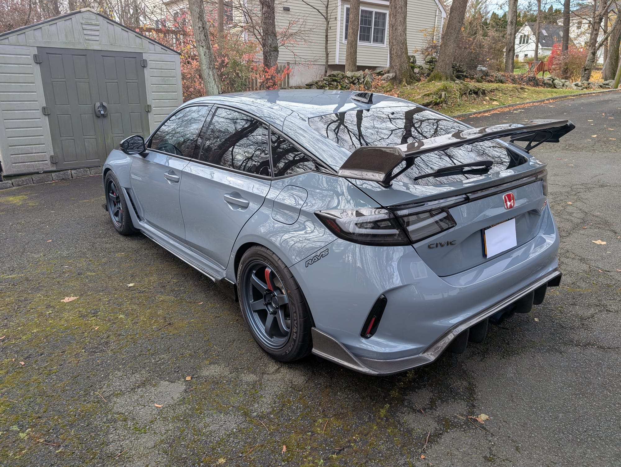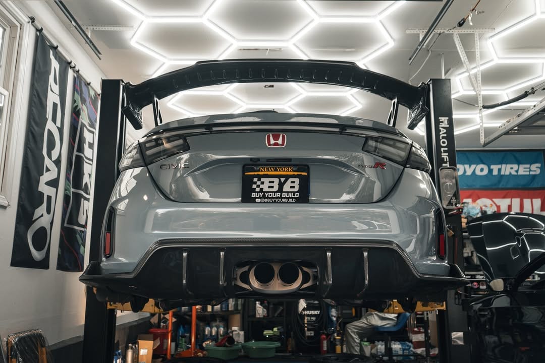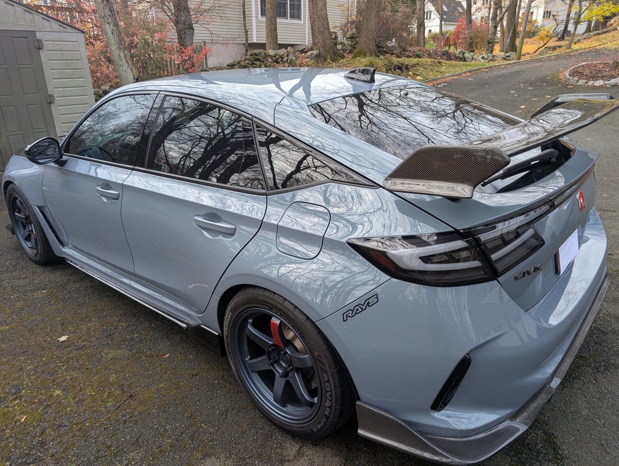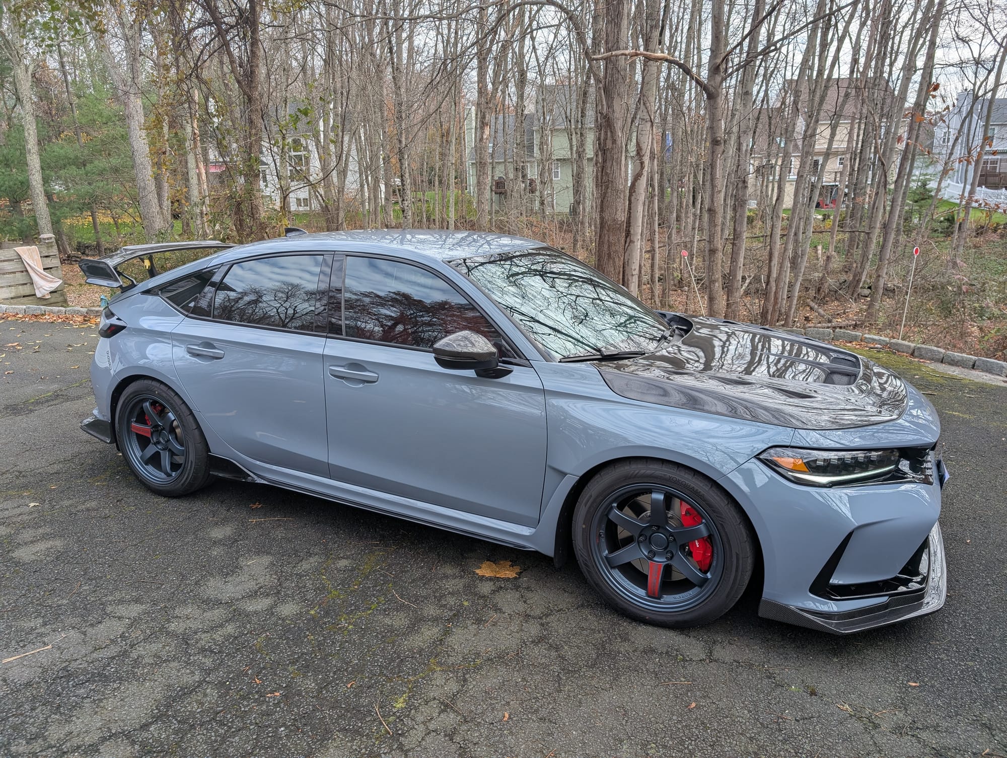 2024 Honda Civic Type R in Sonic Gray Pearl with 4,050 miles for sale! This incredibly clean FL5 Type R was dropped off with Greg at BuyYourBuild to receive several quality upgrades, most of the work performed was well documented by Greg with photo and thorough videos (BuyYourBuild YouTube channel) showcasing the install process for specific modifications. Power is derived from a 2.0L K20C1 engine that’s coupled with a Mitsubishi Heavy Industries (MHI) Stage 2 turbo, this combination is linked to a 6-speed manual transmission. Essentially, this is a full bolt on setup, armed with nearly everything you can imagine without going internally. All brought together with tuning from Jester Tuned, the car hasn’t seen a dyno, however it drives phenomenally with improved handling/braking/power delivery as a result of the modifications. Additional performance upgrades include a handful of PRL components (inlet pipe/intake/IC piping/charge pipes), RV6 FMIC, Boomba BPV, Hondata 1530 injectors, Full-Race HPFP, TSP catted downpipe, and a Remark titanium exhaust. In terms of aesthetics, the car was outfitted with a handful of carbon fiber components, along with Suntek Paint Protection Film (PPF), Alpha Rex headlights, and a nicely spec’d set of Volk Racing TE37SL wheels wrapped in Advan tires. Overall, this tastefully modified Type R is in mint condition, and it only gets driven on the weekends. There are currently 1,500 miles on the modifications! Invoices are available! Clean title!