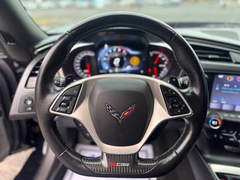 622whp 2017 Chevrolet Corvette Z06 2LZ in Black with 33,576 miles for sale! This C7Z is powered by a 6.2L LT4 that’s topped with a 1.7L Eaton R1740 supercharger, and linked to an 8L90 8-speed automatic transmission. The factory supercharger lid was removed and replaced with a DSX billet supercharger lid, followed by the installation of a 2.30”upper pulley with a smaller belt, and aFe Power Momentum cold air intake. The exhaust configuration features a pair of Kooks 1-7/8” x 2” cat-less headers along with their x-pipe. Further equipped with a DSX flex fuel kit, 2-piece chrome front wheels with rear beadlocks wrapped in Toyo Proxes R888R tires, Eibach lowering bolts, ZR1 wing, C8 style rear tail lights, and an extended diffuser. Modifications were installed by SSLSX, and tuning was handled by them as well with a very conservative tune, which yielded 622whp on 93 octane. The car also recently received a fresh set of spark plugs, and coil packs. It will be sold through the owner’s dealership. There is currently a lien on the vehicle, however the owner can have his dealership pay it off after the purchase is approved, they can facilitate transportation as well anywhere in the country. 2 Previous owners. Clean Carfax!