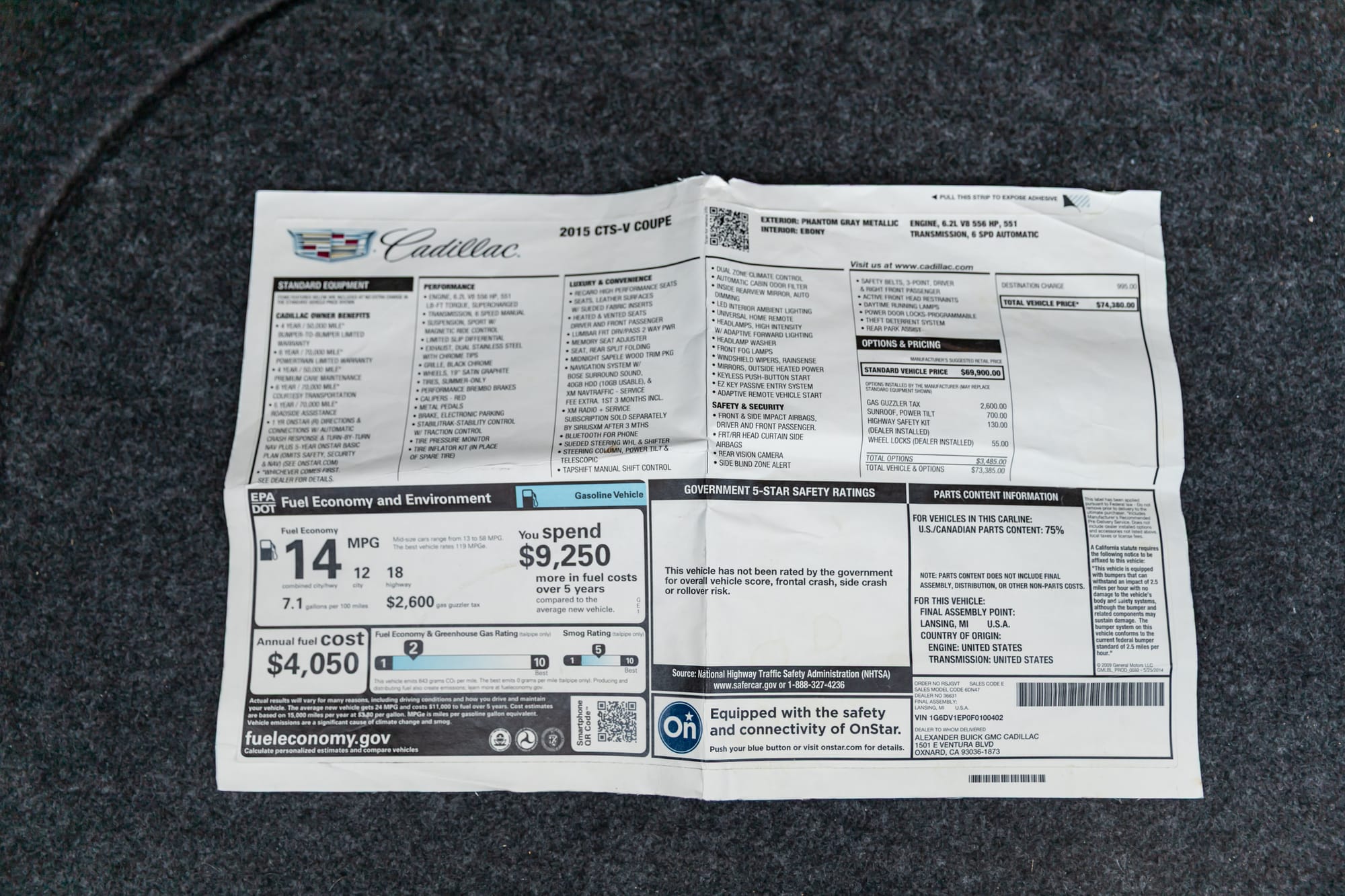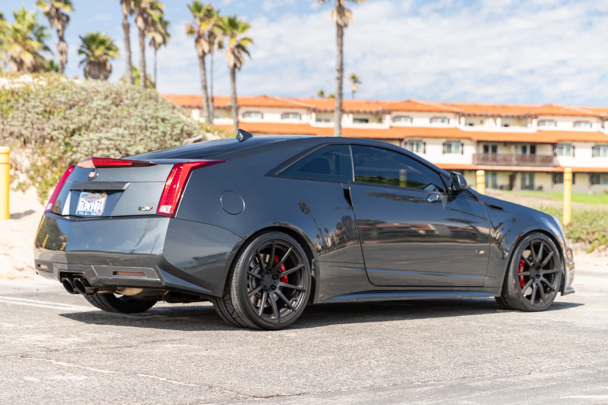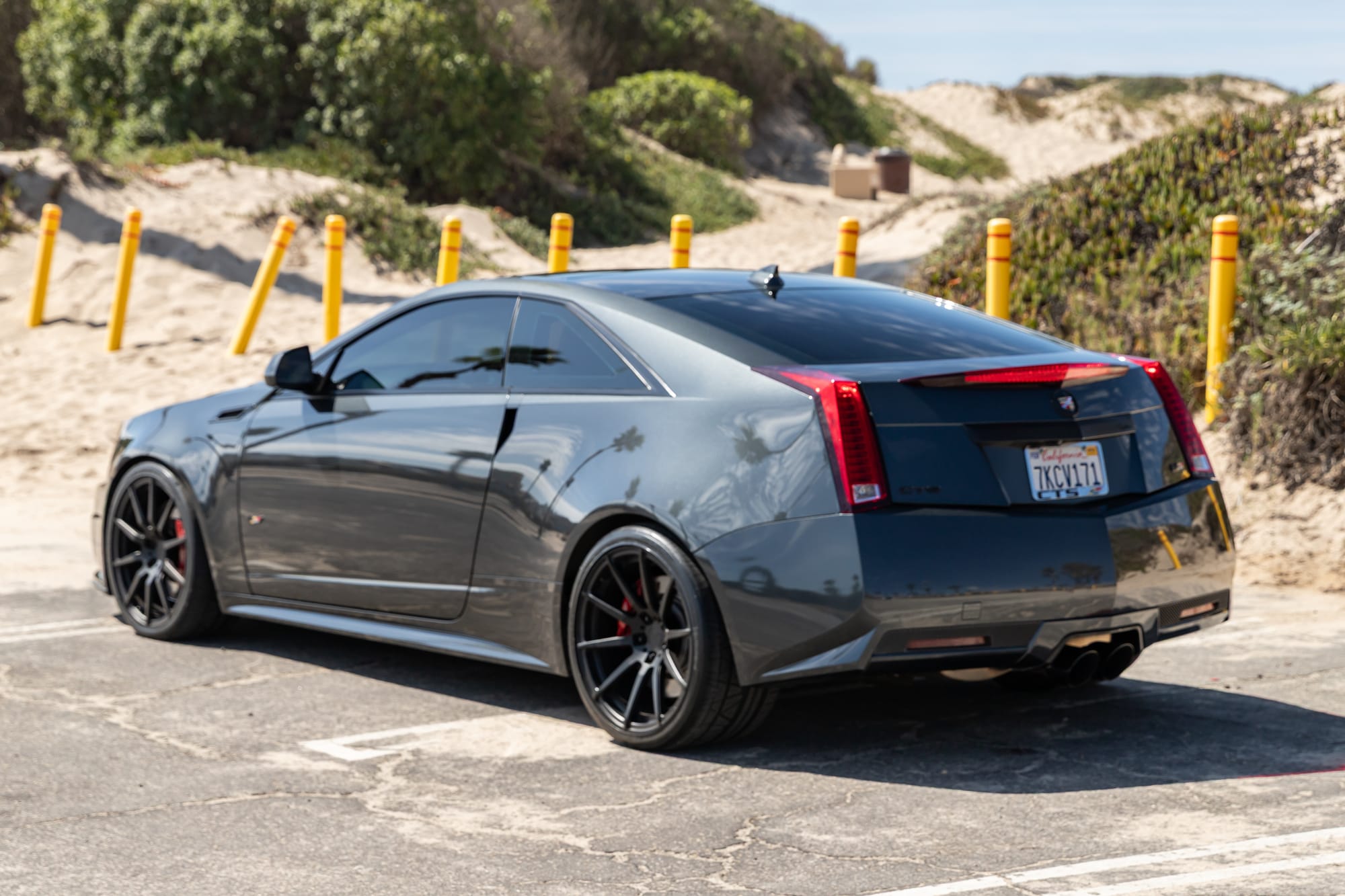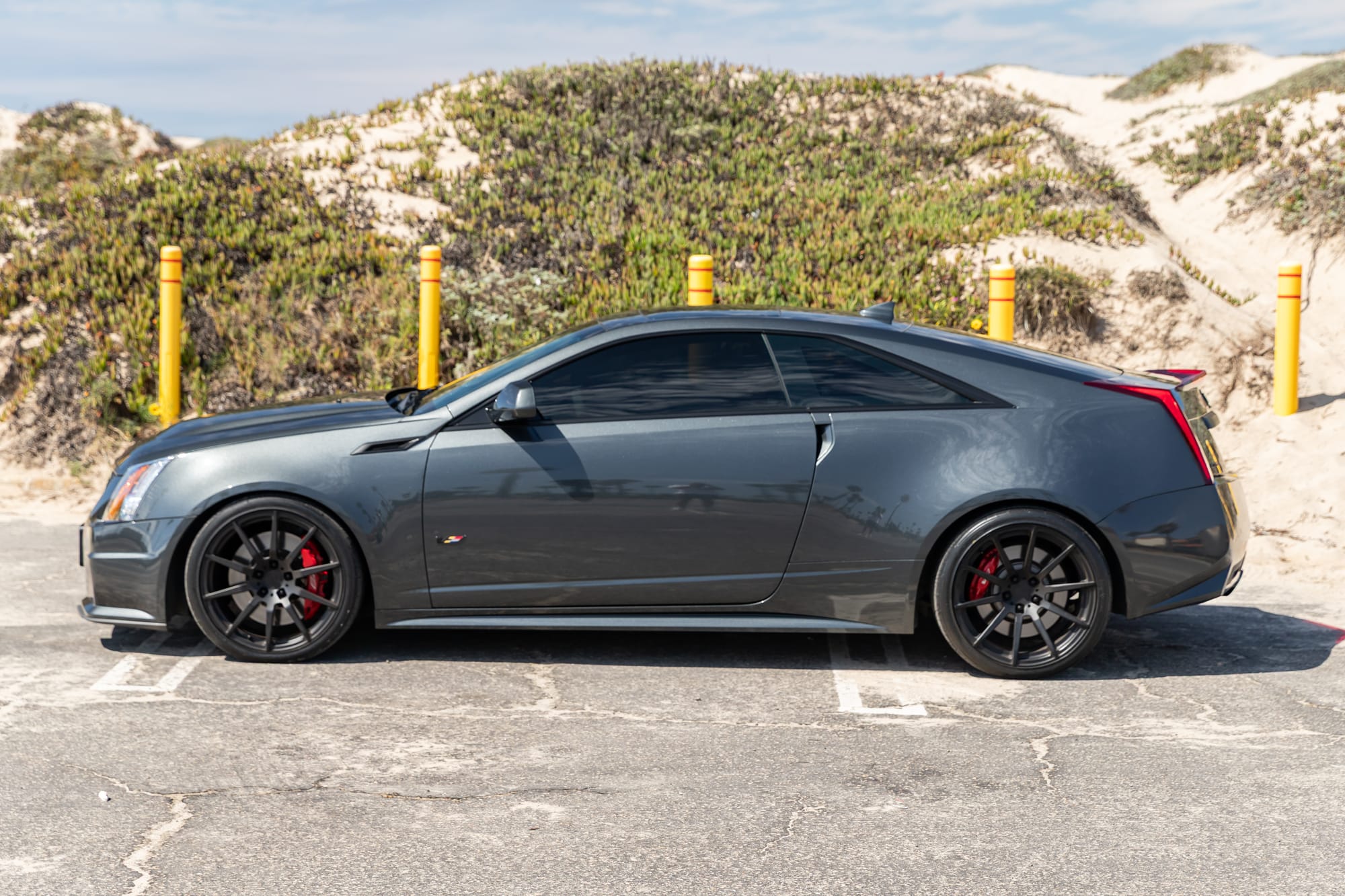 651whp 2015 Cadillac CTS-V Coupe in Phantom Gray with 25,100 miles for sale! For 2015, Cadillac marked the send-off of the second-generation CTS-V with a limited run of 500 special-edition CTS-V Coupes, only 113 of those were finished in the desirable Phantom Gray Metallic. Not only is this a rare spec, but it was also purchased new by the owner, who had the car modified and tuned by a very reputable performance shop in Simi Valley, California. Power comes courtesy of a H/C 6.2L LSA that’s topped with a CNC ported/rebuilt Camaro ZL1-Sourced 1.9L LSA supercharger, and linked to a 6L90E 6-speed automatic transmission. The engine was fitted with a custom camshaft package along with a pair of West Coast Cylinder Heads (WCCH) Stage 2 ported cylinder heads, ARP2000 head stud kit, Chevrolet Performance LS9 head gaskets, and a Melling oil pump. The supercharger system utilizes a Griptec 2.38” upper/10% lower pulley combination, followed by a milled/reinforced ZL1 lid with an LSA lid spacer, heavy duty isolator pulley kit, Gates belt, and a 102mm throttle body that’s connected to a New Era Performance cold air intake. Further equipped with a set of Injector Dynamics 850cc fuel injectors, long tube headers, x-pipe with cats, Corsa Performance exhaust, D3PE heat exchanger, Eibach lowering springs, and a custom set of Strasse Forged R10 deep concave wheels wrapped in new Nitto tires. This setup generated 651whp/593wtq after tuning was completed via HP Tuners on a Dynojet with 91 octane. 1-Owner, always garaged, the car is in immaculate shape! Invoices are available! Only 6K miles on the modifications! Clean title!