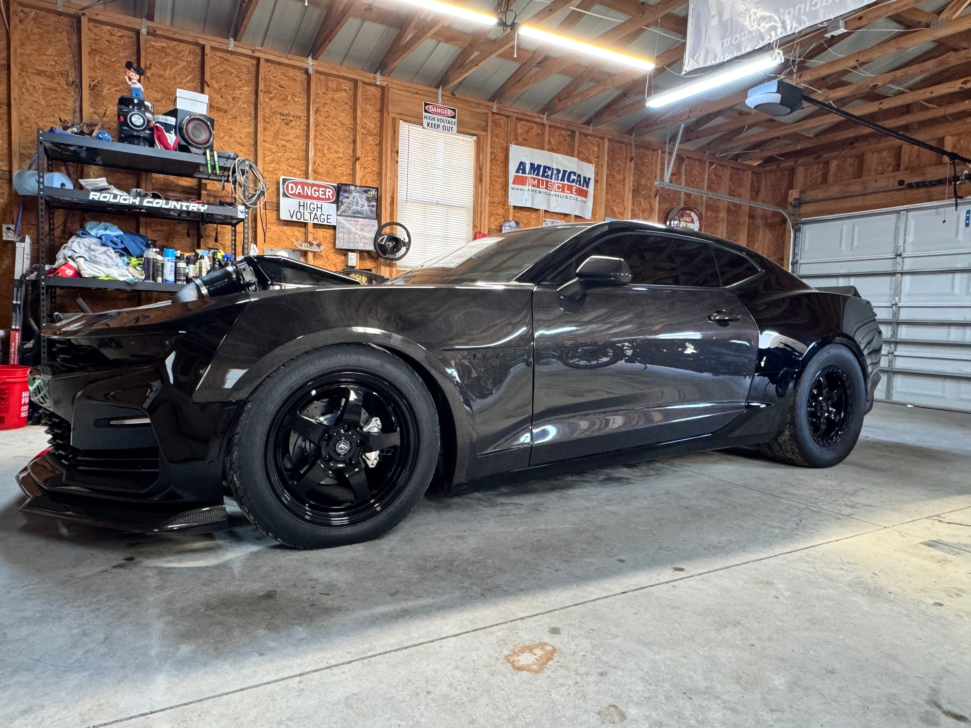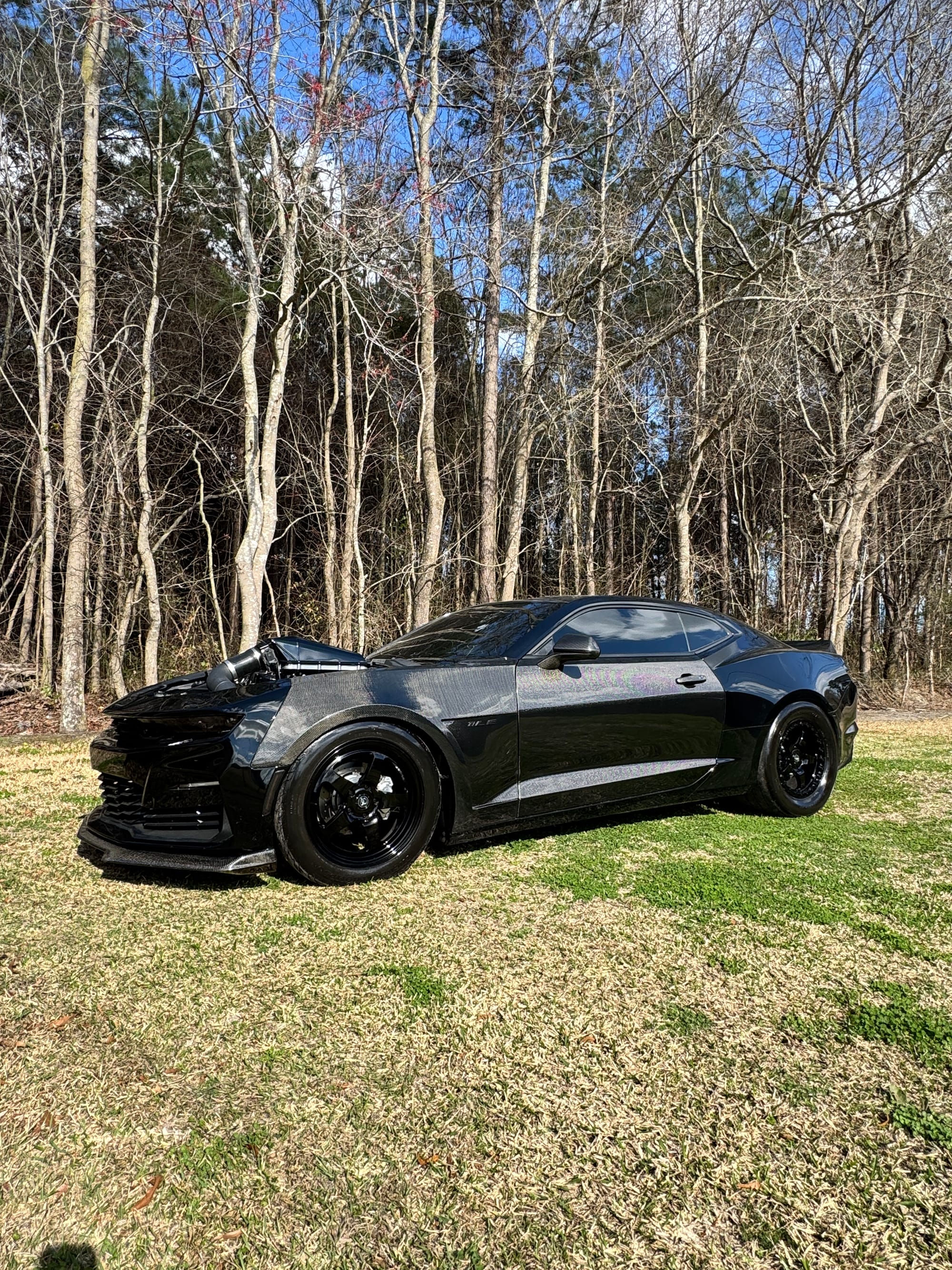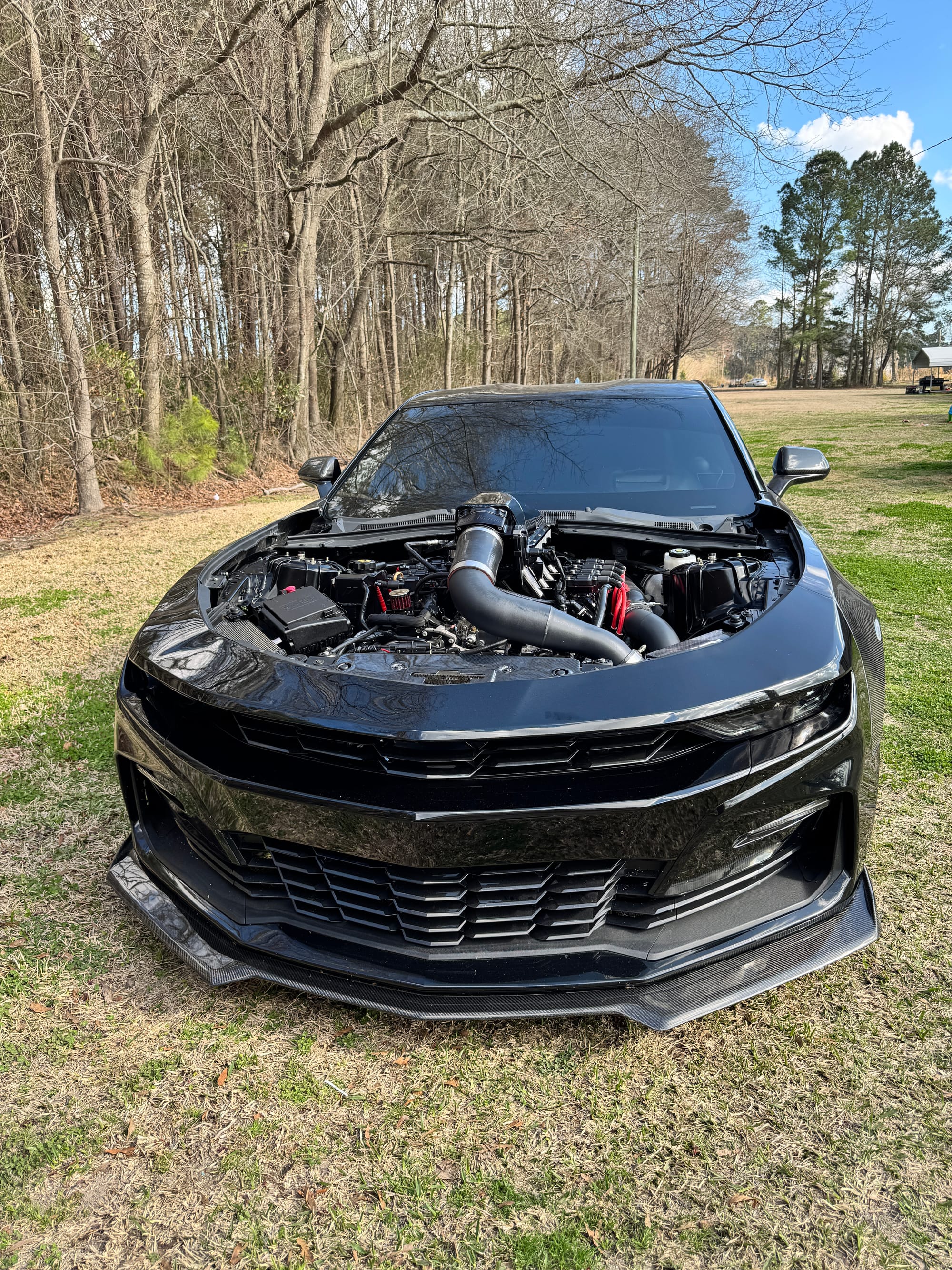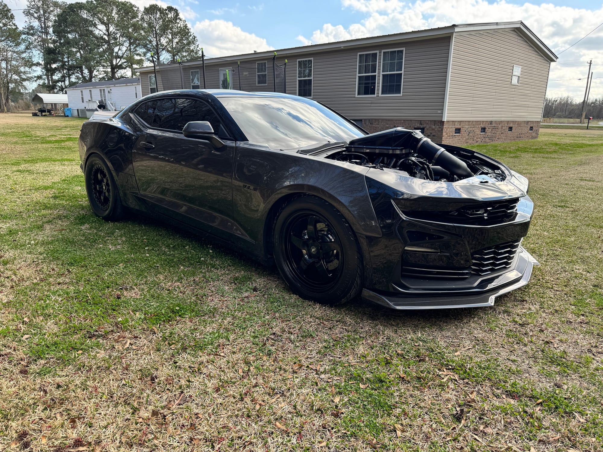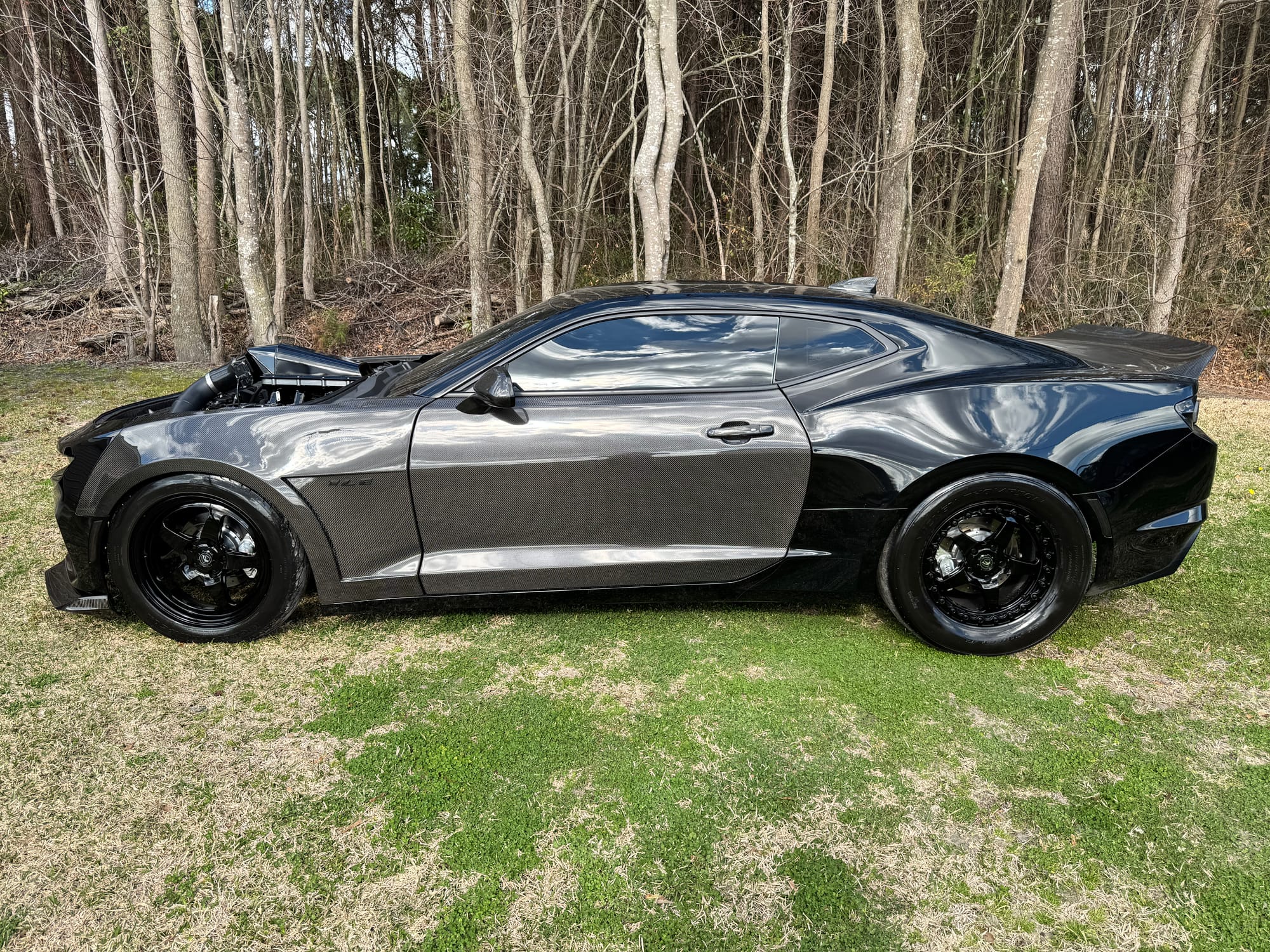 661whp 2019 Chevrolet Camaro SS 1LE in Black with 26,400 miles for sale! This 6th gen Camaro was modified by National Speed, it’s powered by a cammed SBE 6.2L LT1 that’s equipped with a Huron Speed twin turbo kit (Comp Turbo billet 6263 oil-less turbochargers), and linked to a Tremec TR-6060 6-speed manual transmission. More specifically, the LT1 utilizes the stock bottom end as its base along with a GPI VVT Stage 3 camshaft, Johnson 2110R lifters, Katech C5R timing chain, CHE trunnion kit, Manton pushrods, PRC titanium retainers, and PAC springs just to name a few. Capping it off is a ported Holley Hi-Ram lower intake manifold with a 1” lid spacer and a Shearer Fab Hi-Ram lid with a Katech 103mm throttle body attached. Following the Comp Turbos, the twin turbo kit also includes a 6” air-to-air intercooler, 3.5” dumps off the turbos, Huron Speed wastegates/BOVs with 6# springs in the current setup. Further equipped with an SMG flex fuel kit, DeWitts aluminum race radiator, BC coilovers, multiple BMR rear end components, Forgestar D5 drag pack, Aerospace Components brakes, carbon fiber components, and much more. Tuning was completed by GPI with an output of 661whp on 6bs of boost and 93 pump gas. The car is in immaculate condition. It doesn’t smoke, leak, run hot, or burn oil. The stock doors, front fenders, and hood brackets will be included with the sale. Only 2K miles on the setup! Clean title!
