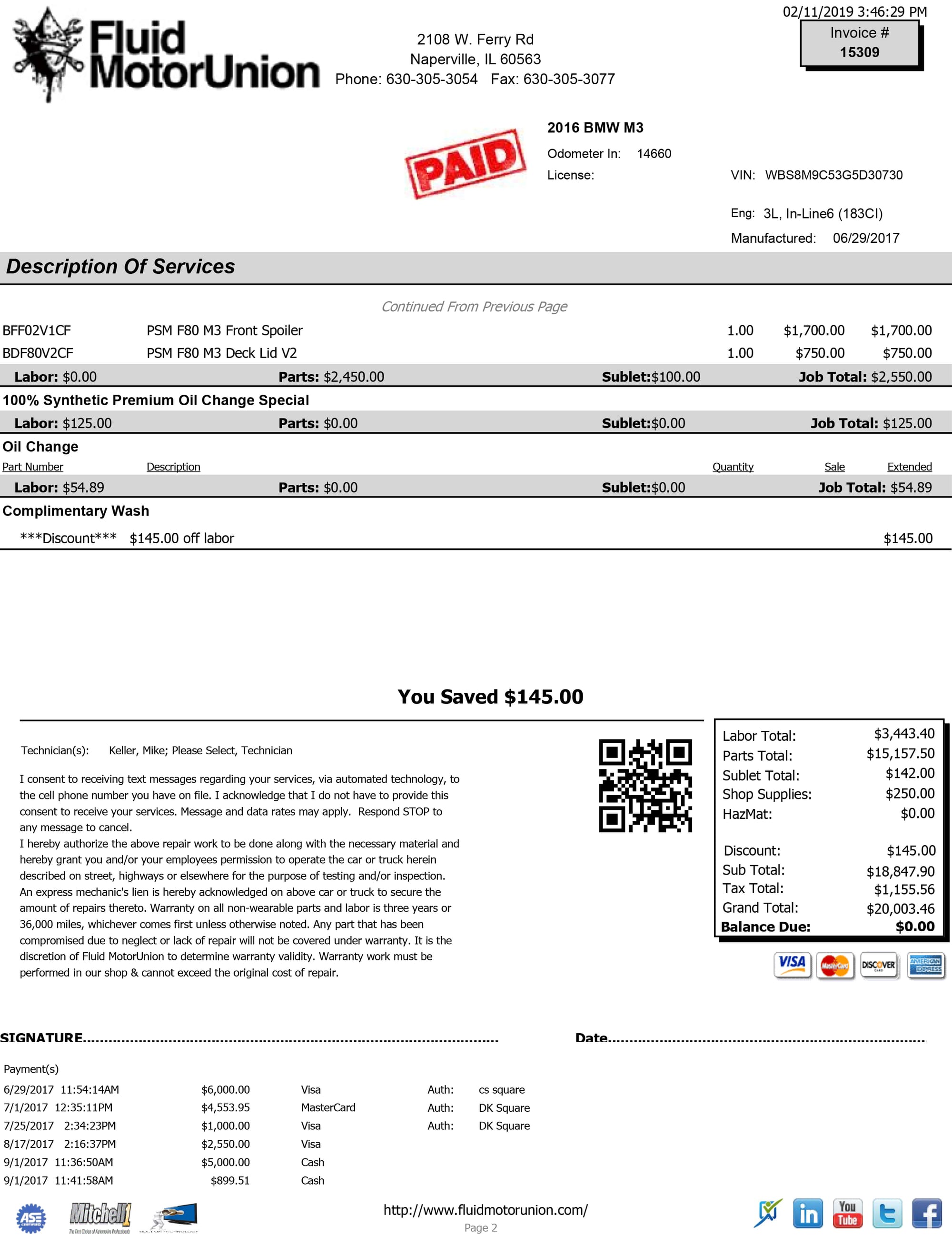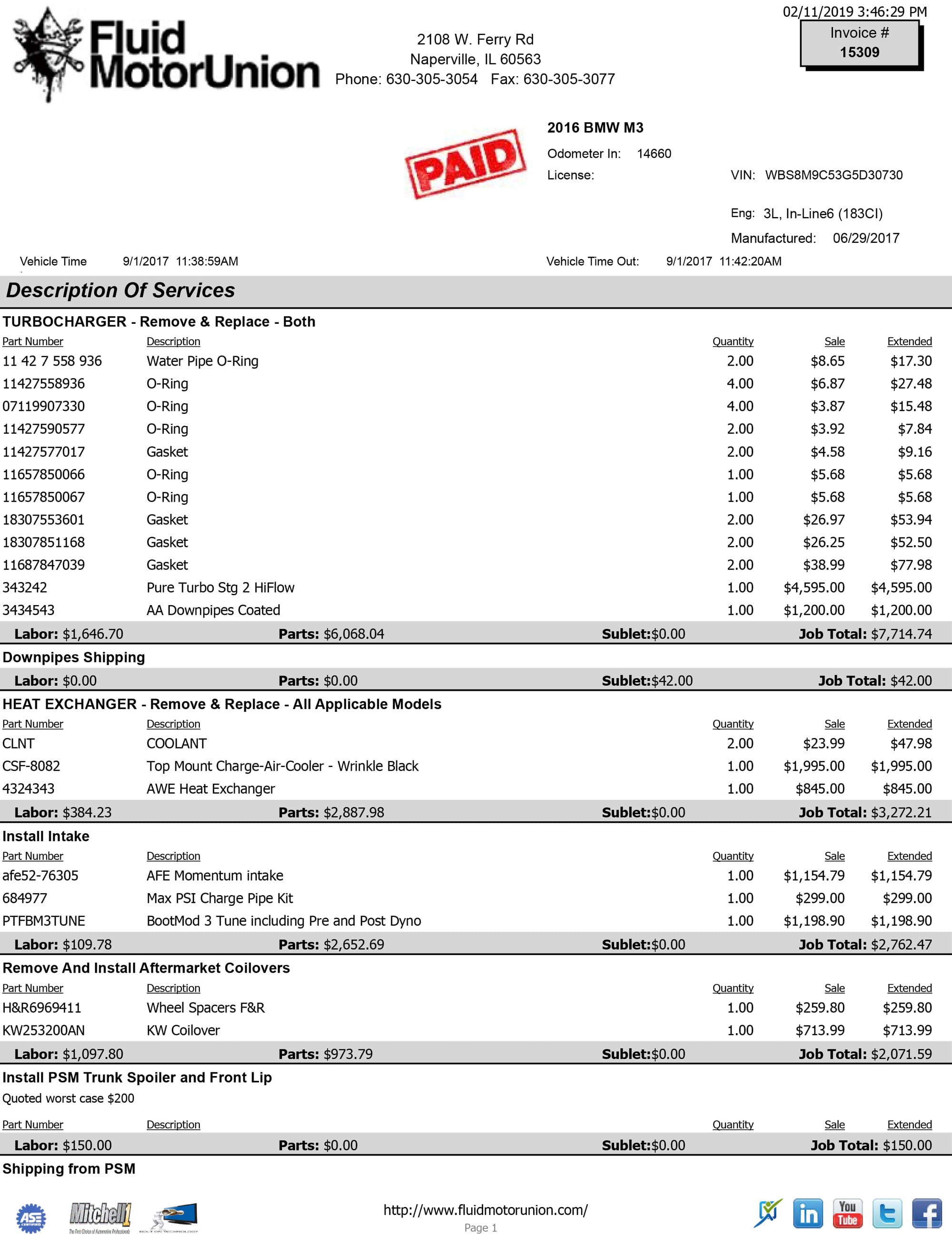 680whp 2016 BMW M3 in Black Sapphire with 63,000 miles for sale! This F80 M3 packs a 3.0L S55 inline-six that’s paired with Pure Stage 2 (HiFlow) turbochargers, and linked to a 7-speed M dual-clutch transmission. Performance upgrades include an aFe Momentum cold air intake system, AA coated downpipes, top mount charge-air-cooler, Max PSI charge pipe kit, AWE heat exchanger, and a set KW coilovers. Modifications were installed by Fluid Motor Union, and tuning was handled by them as well with an output of 680whp on the rollers. The car is very fast and fun to drive, especially with rolling anti-lag, it’s gapped multiple cars already with this setup. The stunning factory Black Sapphire Metallic paint shows incredibly well as it was ceramic coated with a 5-year guarantee back in 2022. Invoices are available, totaling over $20K! Clean title!
