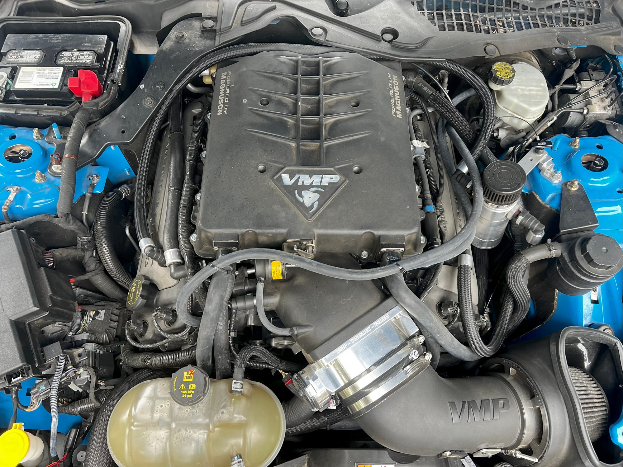 700+whp 2017 Ford Mustang GT Premium in Grabber Blue with 44,500 (Chassis) miles for sale! This S550 is propelled by an 11:1 RPG Racing Engines built engine (1000+whp rated) that’s coupled with a VMP Odin supercharger kit, and mated to a Getrag MT-82 6-speed manual transmission with a Mantic twin disc clutch kit. The engine build utilizes a Coyote block as its base with a set of Manley pistons/H-Tuff series connecting rods, polished crankshaft, Kings bearings, ARP hardware all throughout, and Boundary billet OPG’s/crank sprocket, just to name a few. The car sounds incredible with the Foster SC Mods Stage 4 inlet path sound tube kit, followed by a pair of Kooks 1-7/8” long tube headers, and full custom exhaust system. Additional upgrades include a UPR billet dual inlet breather tank, BC Racing BR series coilovers, SPC rear adjustable camber arms, SPC EZ cam XR 16mm camber adjustment bolts, drilled and slotted rotors, Project 6GR wheels, and more. The build was coordinated and supported by Simon at Aladdin Motorsports, and tuning was completed by Lund Racing. The car hasn’t been on the dyno, however it’s estimated to make over 700whp on pump gas (conservative estimate) with plenty more potential, if desired. The car was initially purchased with around 11K miles on the dash, it’s never seen a car wash machine (hand washed only), always garage kept or covered, and never taken to the track or drag strip. The only reason the owner is looking to part ways with the car is due to upcoming travel as he’s unable to bring the car with him. There are currently around 4K miles on the build with invoices for the work performed. Clean title!