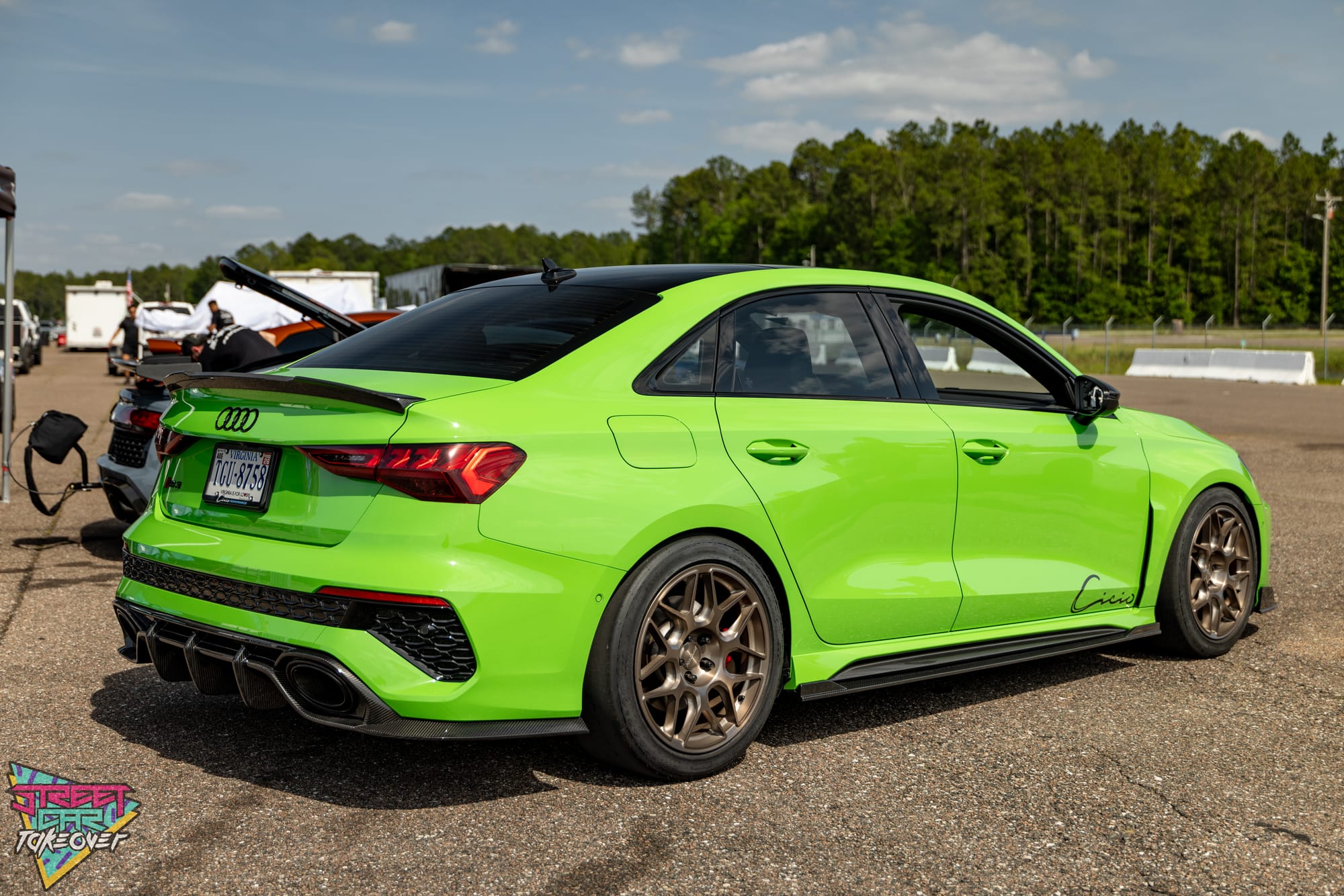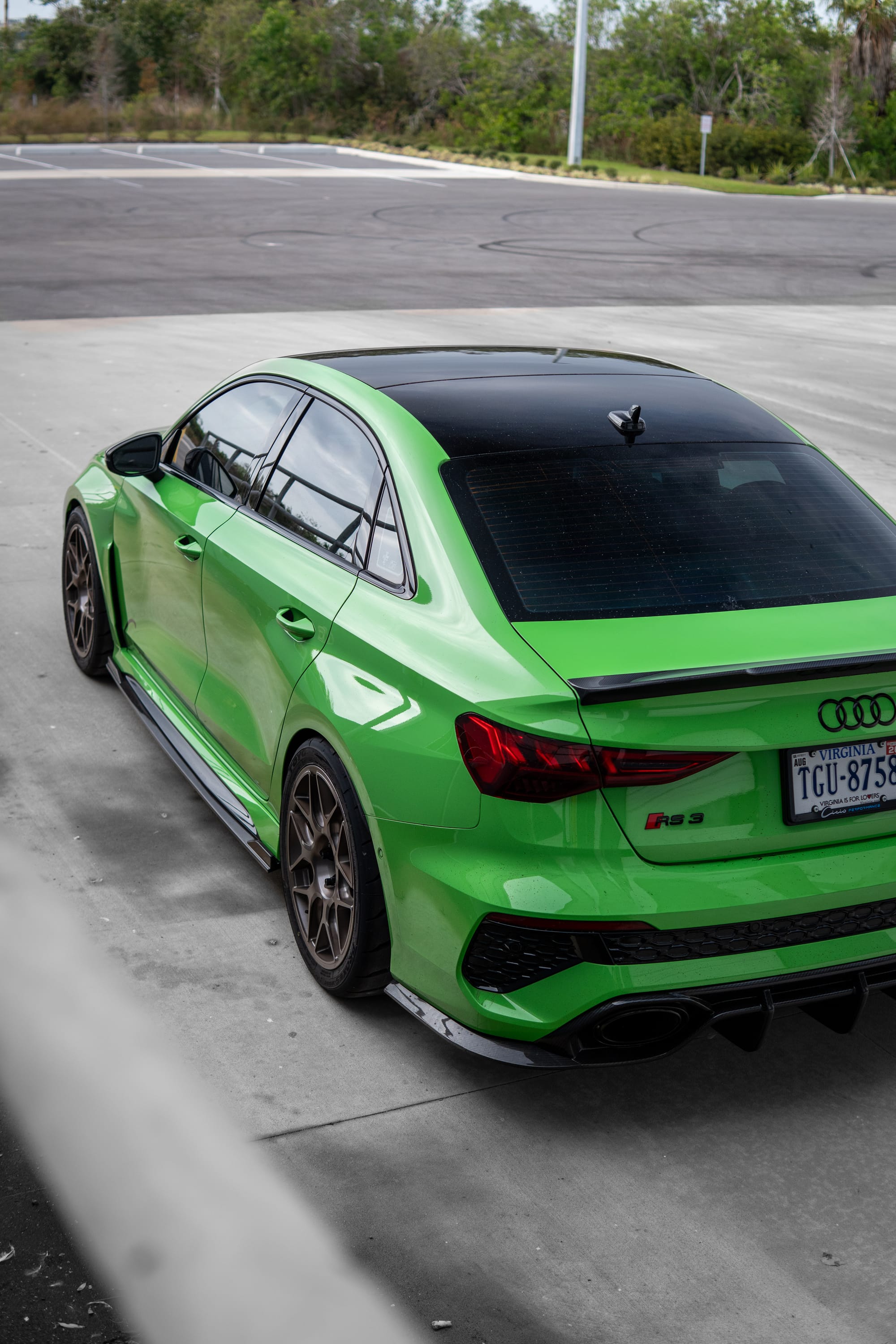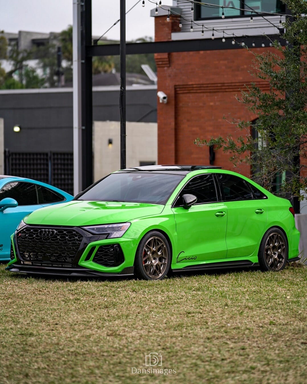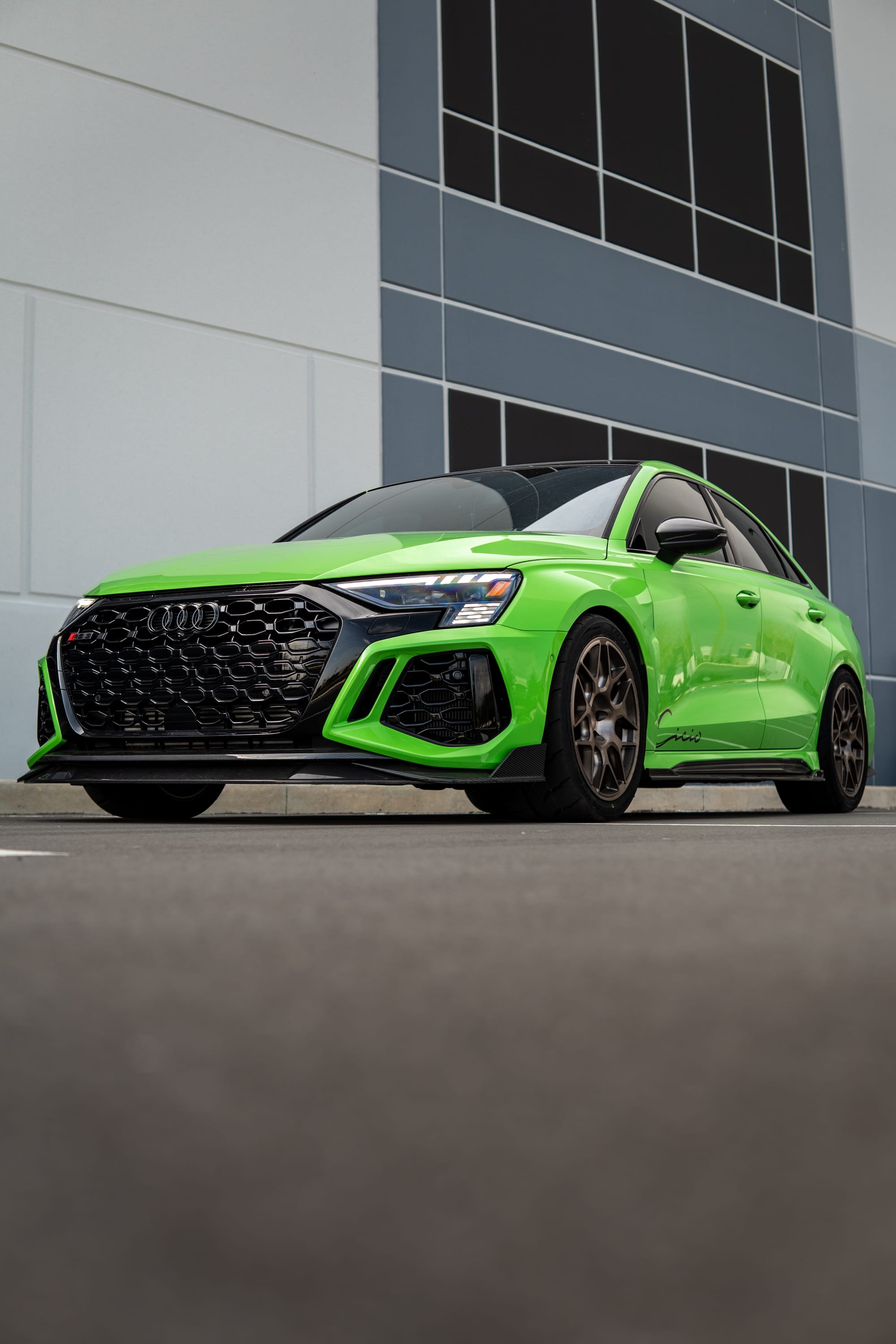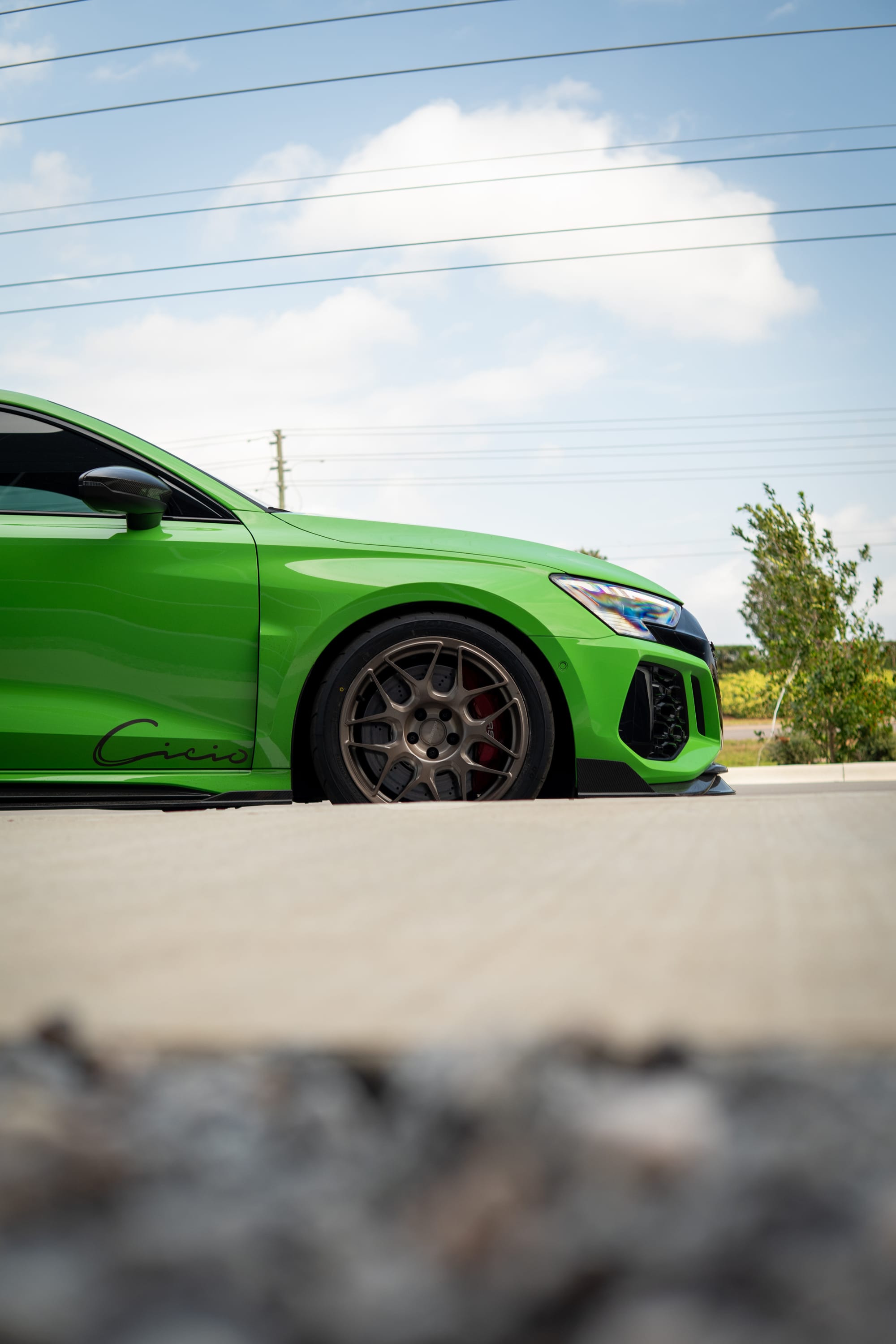 703whp 2024 Audi RS3 in Kyalami Green with 9,300 miles for sale! This 8Y RS3 was modified by Cicio Performance, armed with their C700 Package, which includes Cicio’s in house calibration along with all supporting modifications to push just over 700whp. Powered by a 2.5L TFSI 5-cylinder engine with a Hybrid turbo, power generated from this combo is delivered to the Quattro all-wheel-drive system through a 7-speed dual-clutch transmission. Key performance upgrades include a Unitronic turbo inlet, IROZ intake/FMIC/charge-pipe/downpipe, 1000cc fuel injectors, Unitronic dogbone mount, Cicio brushless pump controller, 485 stainless valved exhaust, upgraded MAP sensor, and a KW lowering sleeve kit. Tuning was completed via Syvecs standalone by Cicio Performance with an output of 703whp/540wtq. The exterior looks phenomenal as the front end/all high-impact areas were topped with Paint Protection Film (PPF), and the full-exterior was ceramic coated as well for additional protection, both professionally applied by Presidential Detail. There are currently only 1,500 miles on the setup with invoices for the work performed! Clean title!