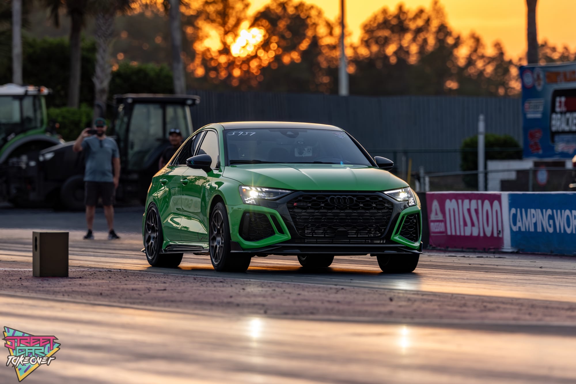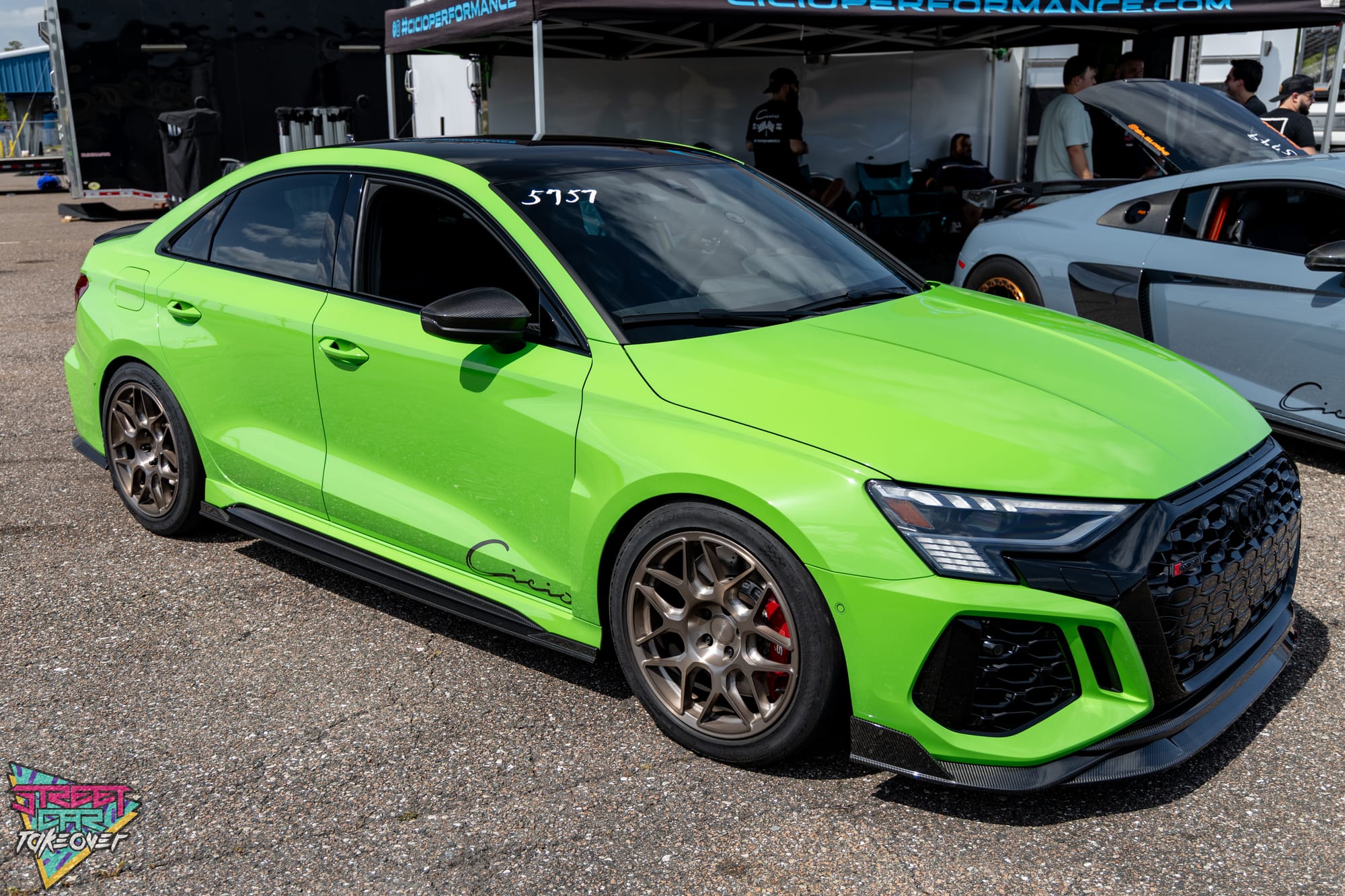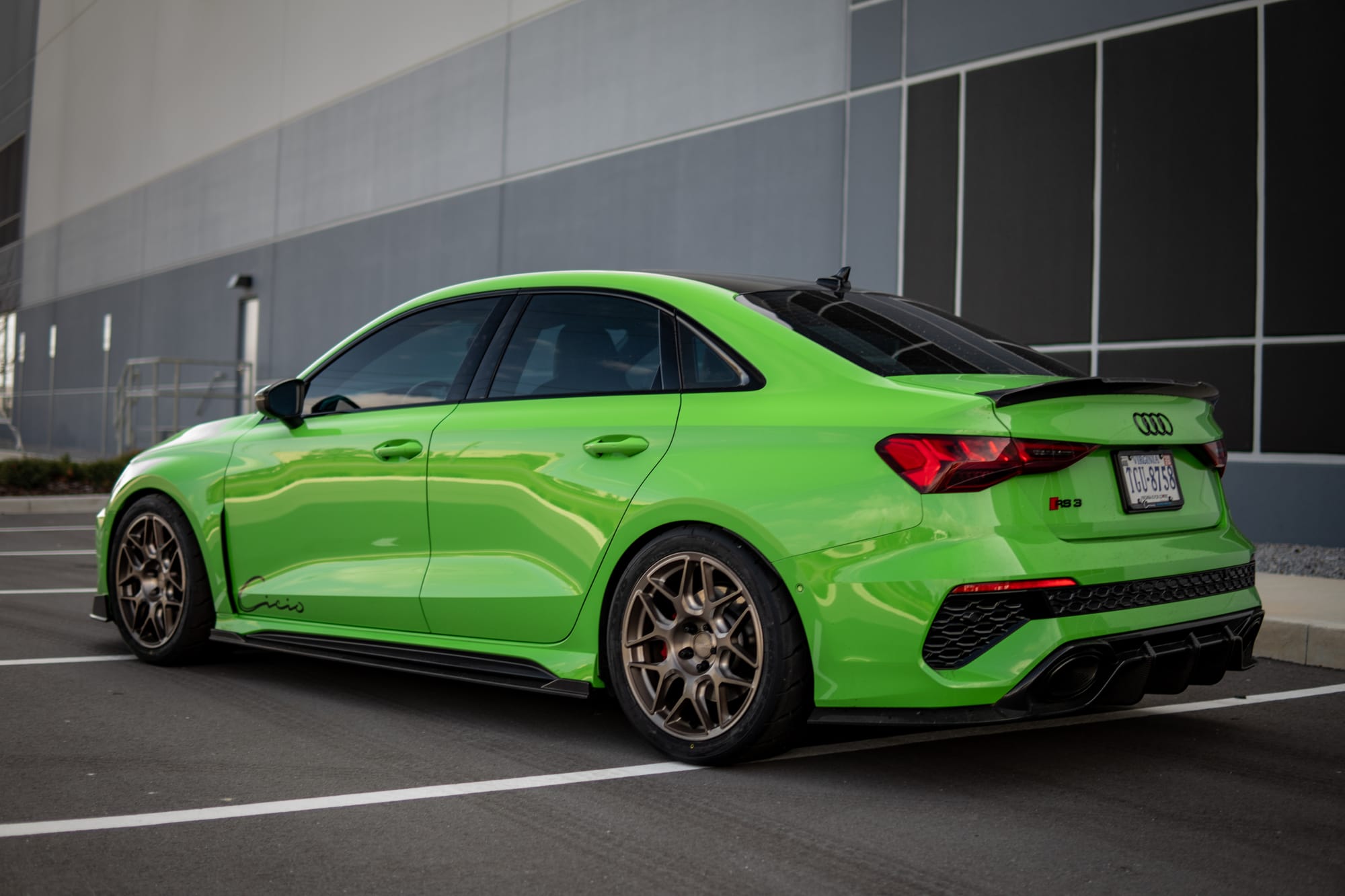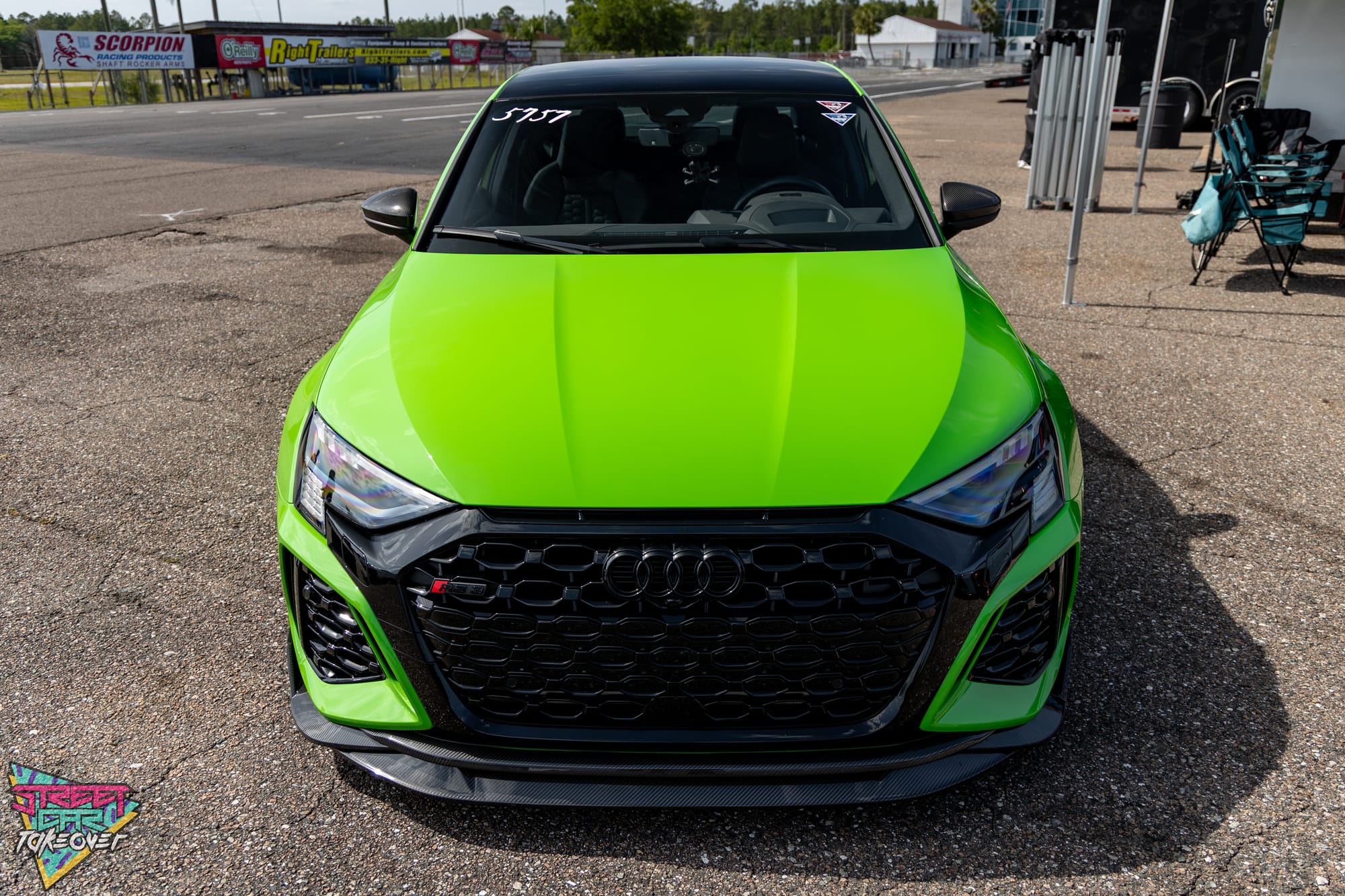 703whp 2024 Audi RS3 in Kyalami Green with 9,300 miles for sale! This 8Y RS3 was modified by Cicio Performance, armed with their C700 Package, which includes Cicio’s in house calibration along with all supporting modifications to push just over 700whp. Powered by a 2.5L TFSI 5-cylinder engine with a Hybrid turbo, power generated from this combo is delivered to the Quattro all-wheel-drive system through a 7-speed dual-clutch transmission. Key performance upgrades include a Unitronic turbo inlet, IROZ intake/FMIC/charge-pipe/downpipe, 1000cc fuel injectors, Unitronic dogbone mount, Cicio brushless pump controller, 485 stainless valved exhaust, upgraded MAP sensor, and a KW lowering sleeve kit. Tuning was completed via Syvecs standalone by Cicio Performance with an output of 703whp/540wtq. The exterior looks phenomenal as the front end/all high-impact areas were topped with Paint Protection Film (PPF), and the full-exterior was ceramic coated as well for additional protection, both professionally applied by Presidential Detail. There are currently only 1,500 miles on the setup with invoices for the work performed! Clean title!