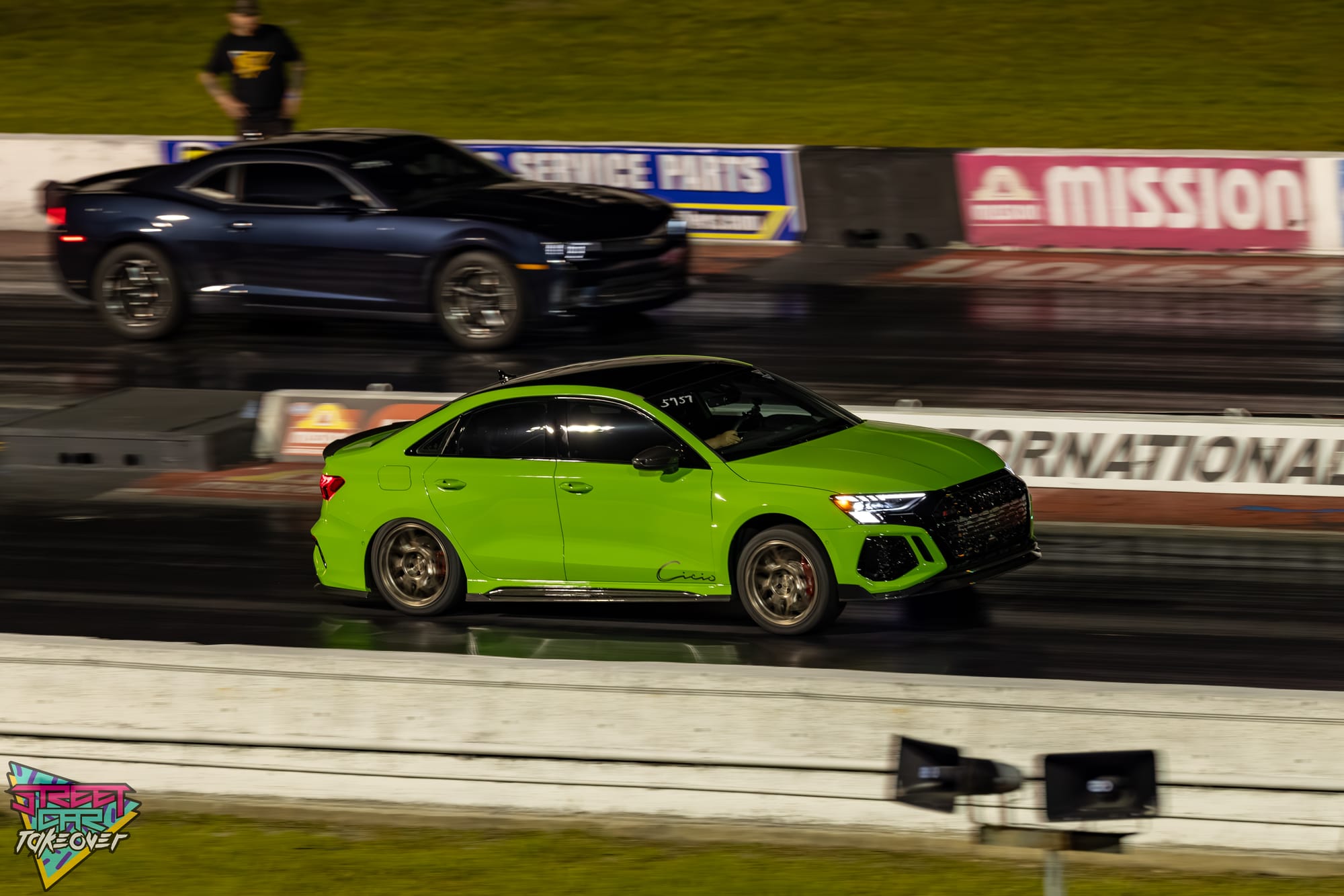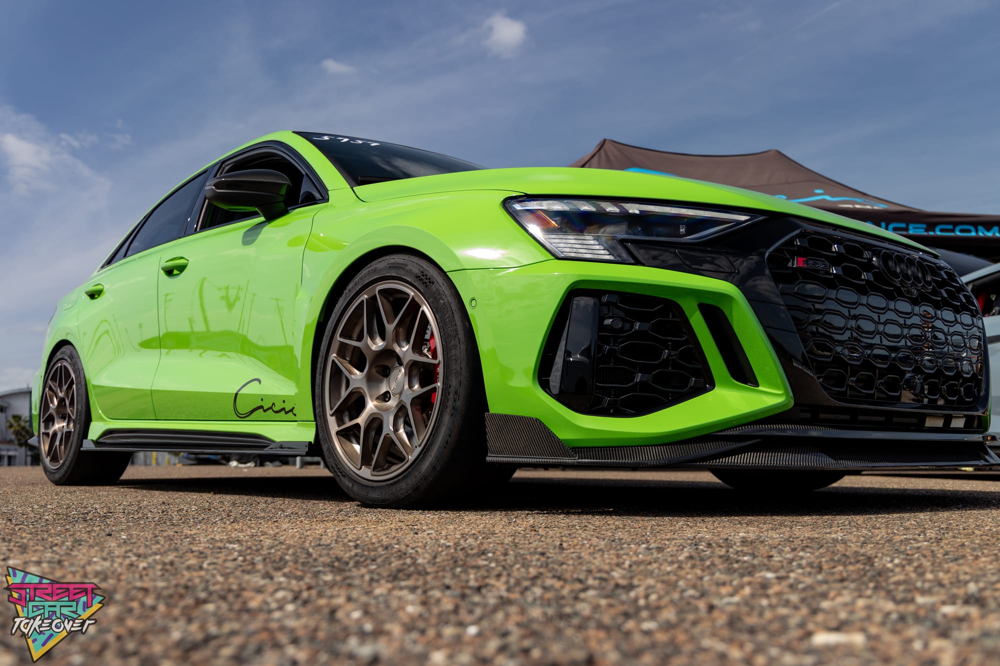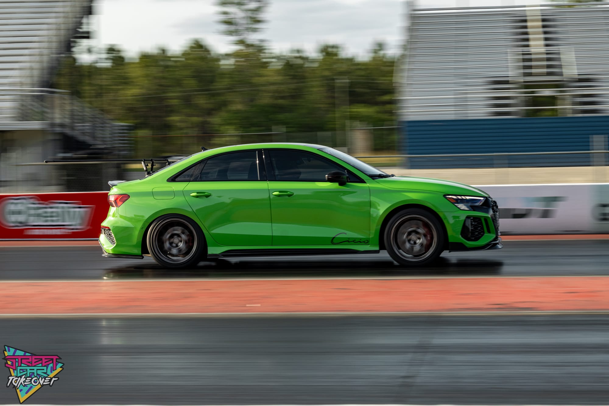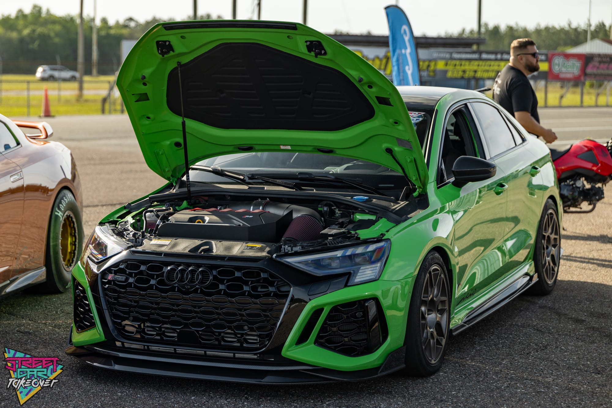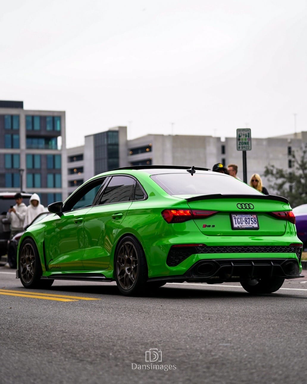703whp 2024 Audi RS3 in Kyalami Green with 9,300 miles for sale! This 8Y RS3 was modified by Cicio Performance, armed with their C700 Package, which includes Cicio’s in house calibration along with all supporting modifications to push just over 700whp. Powered by a 2.5L TFSI 5-cylinder engine with a Hybrid turbo, power generated from this combo is delivered to the Quattro all-wheel-drive system through a 7-speed dual-clutch transmission. Key performance upgrades include a Unitronic turbo inlet, IROZ intake/FMIC/charge-pipe/downpipe, 1000cc fuel injectors, Unitronic dogbone mount, Cicio brushless pump controller, 485 stainless valved exhaust, upgraded MAP sensor, and a KW lowering sleeve kit. Tuning was completed via Syvecs standalone by Cicio Performance with an output of 703whp/540wtq. The exterior looks phenomenal as the front end/all high-impact areas were topped with Paint Protection Film (PPF), and the full-exterior was ceramic coated as well for additional protection, both professionally applied by Presidential Detail. There are currently only 1,500 miles on the setup with invoices for the work performed! Clean title!