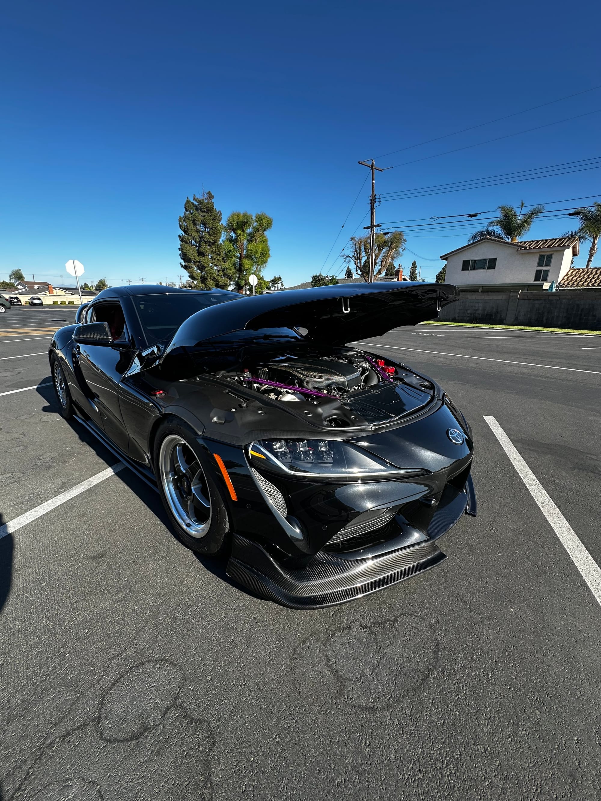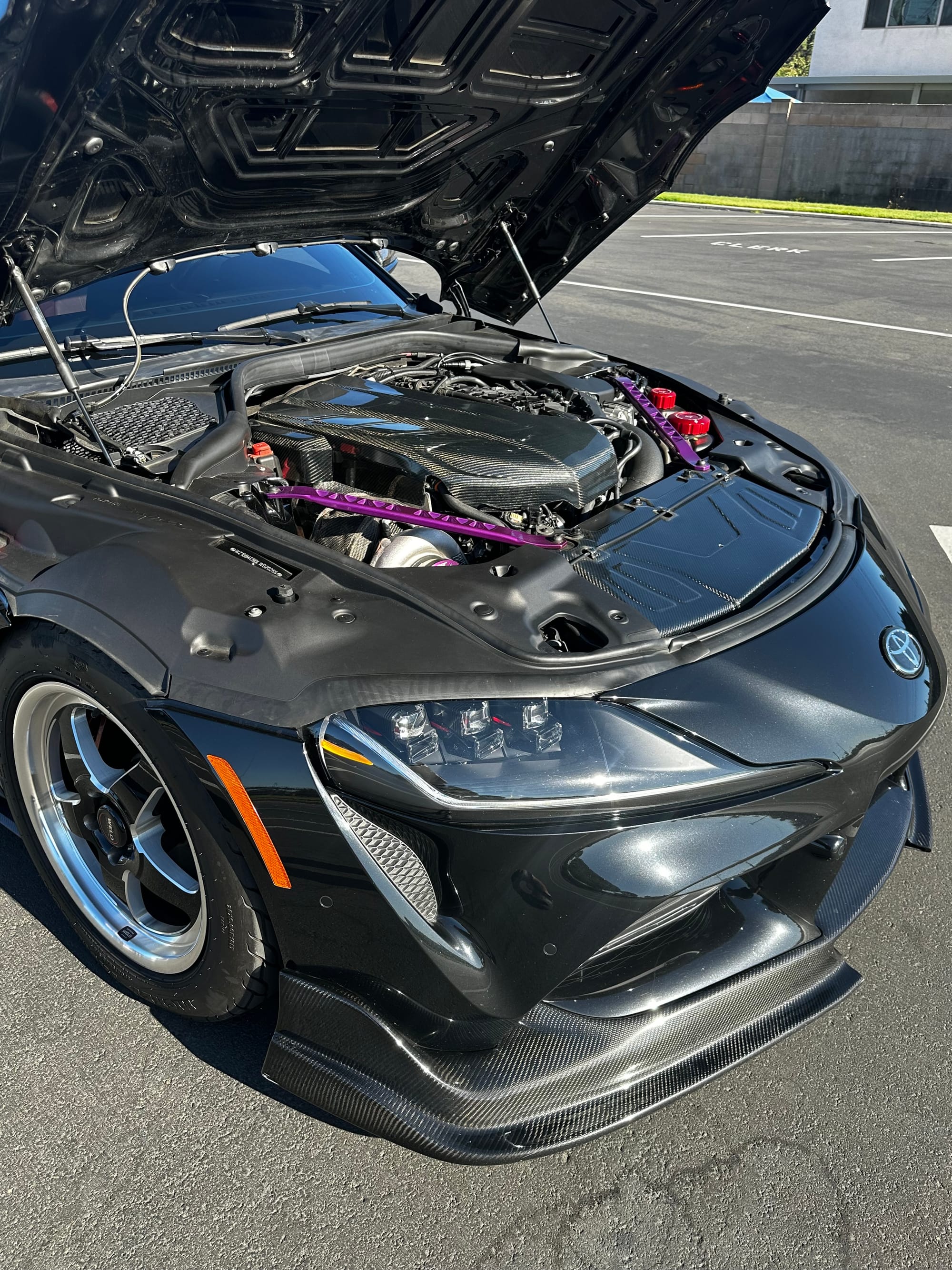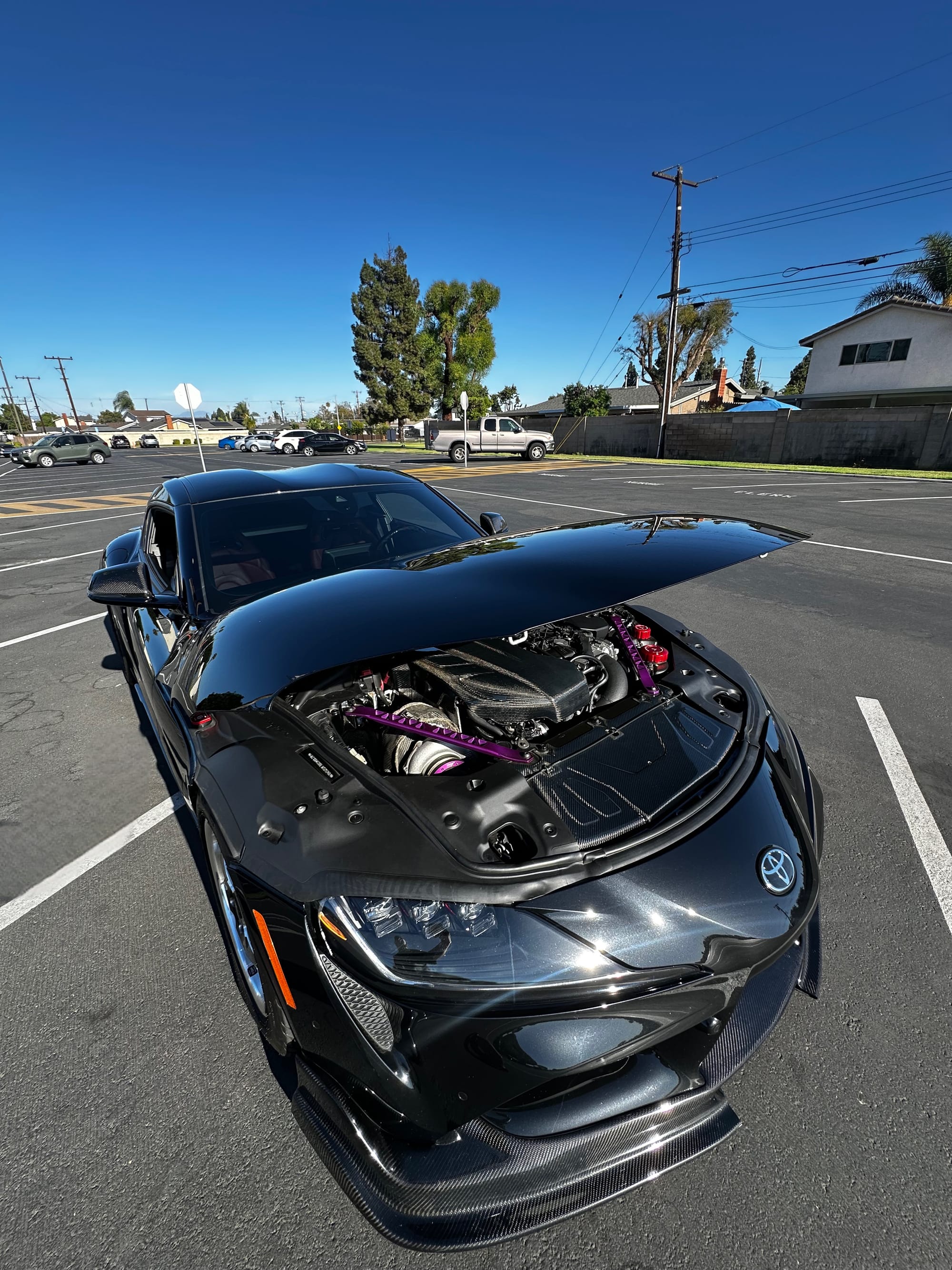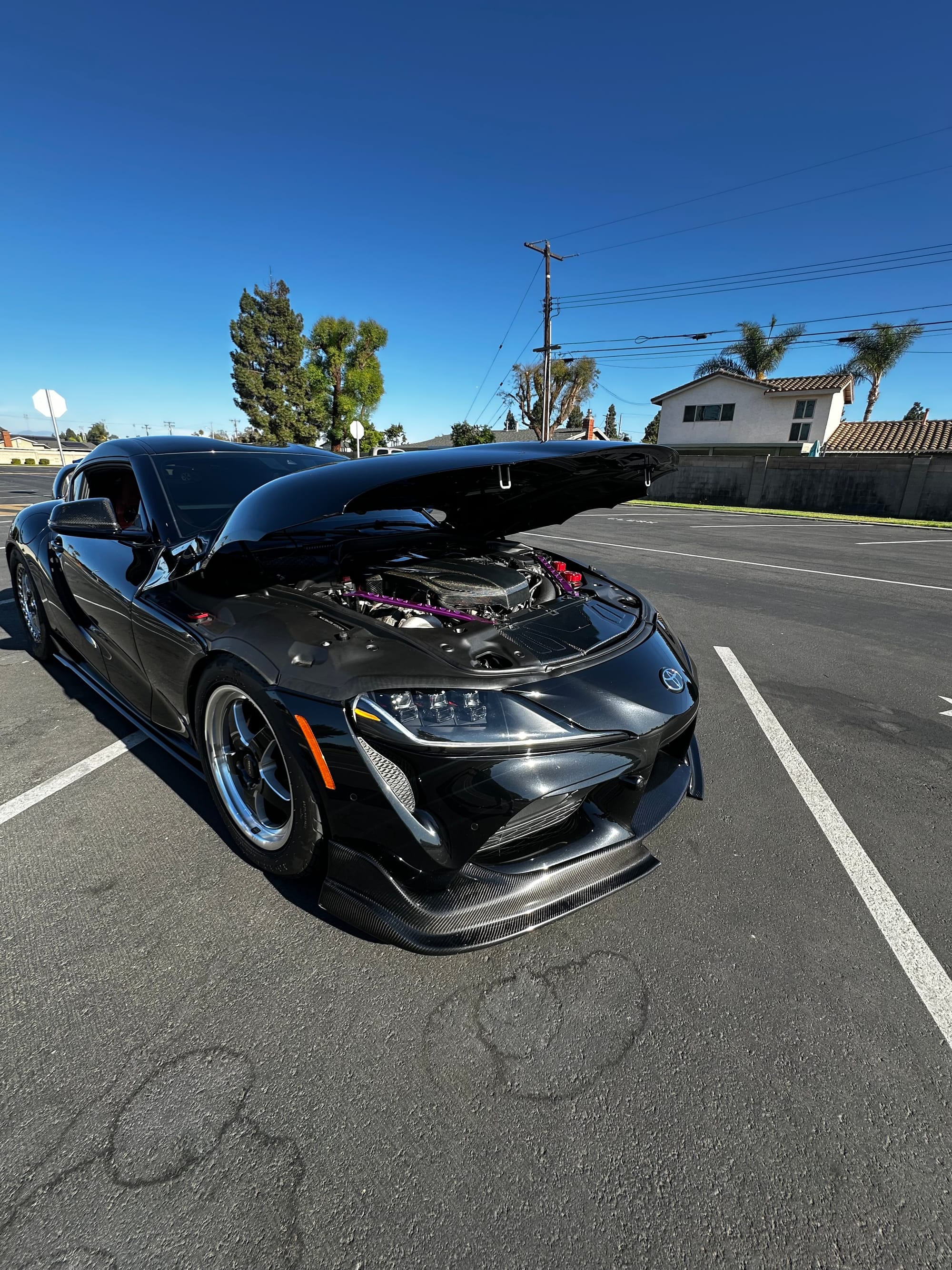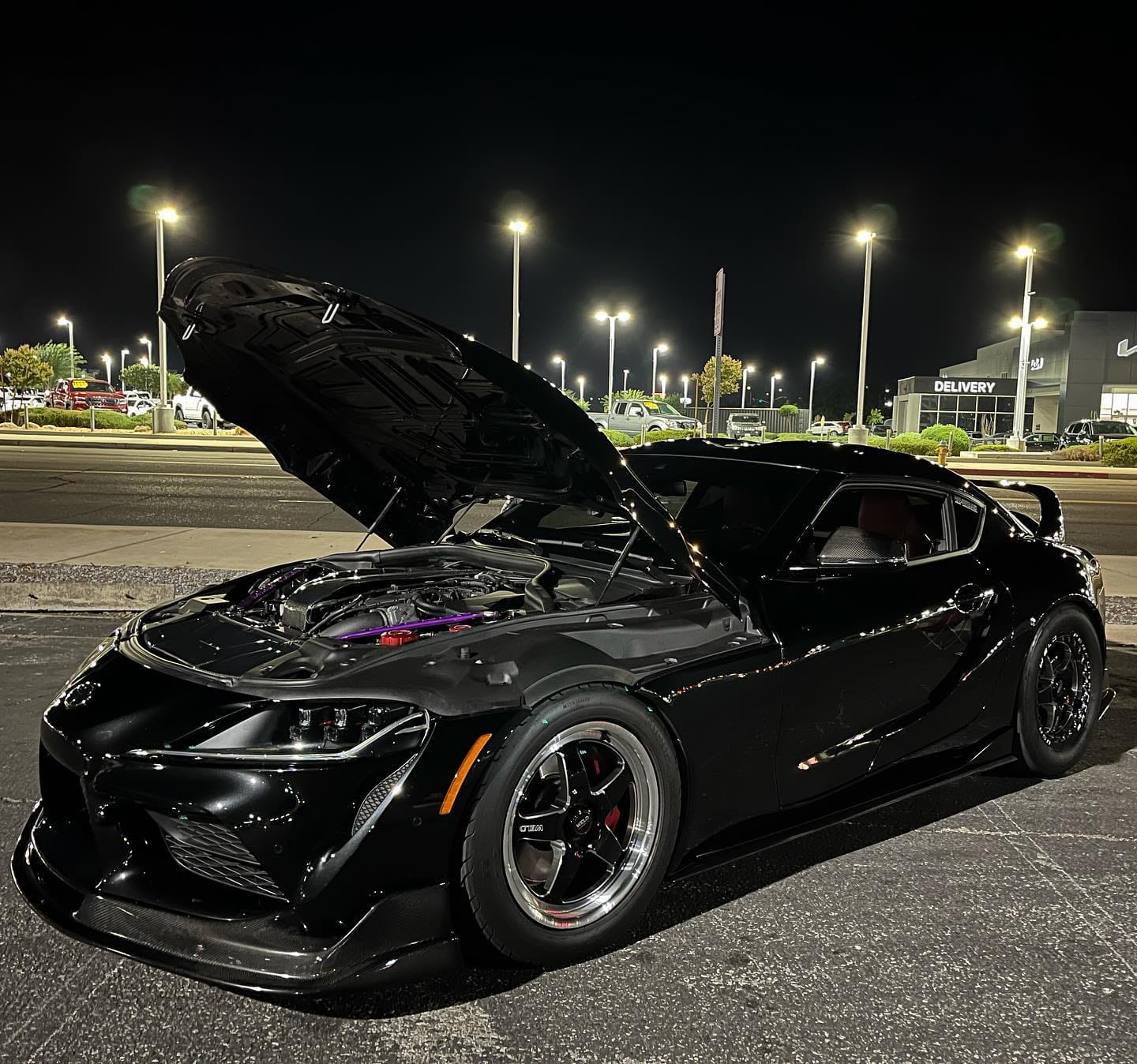 713whp 2020 Toyota Supra Launch Edition in Nocturnal Black with 28,700 miles for sale! Limited to only 1,500 units, the Launch Edition Supra features several visual changes, and they were all numbered with Morizo’s signature on the dashboard. This particular example is #319, and it’s also equipped with a wide variety of performance upgrades that were installed by AR Motorsports. Power is sourced from a turbocharged B58 3.0L inline-six that’s paired with an ETS 6466 PTE turbo kit, and mated to a Jack’s Stage 2 950 Drag 8HP51 8-speed automatic transmission. In regards to the fuel system, this setup utilizes EOSpeed port injection with 750cc injectors, Visconti LPFP, and a Visconti flex fuel kit. Additional upgrades include an SP1R titanium exhaust system with a 5” single exit, CSF heat exchanger, HKS adjustable springs, WELD Racing drag pack, and a handful of exterior components. Tuning was completed via Ecutek by Jeff Payne at Payn Performance Engineering with an output of 713whp (3 boost settings). The car is very fast in its current configuration at 33psi of boost, it runs on full E85, and gets great gas mileage even at this power level. Overall, it’s super clean and needs nothing at all, this Launch Edition Supra is ready to go for a long cruise or a night of racing! Clean title!