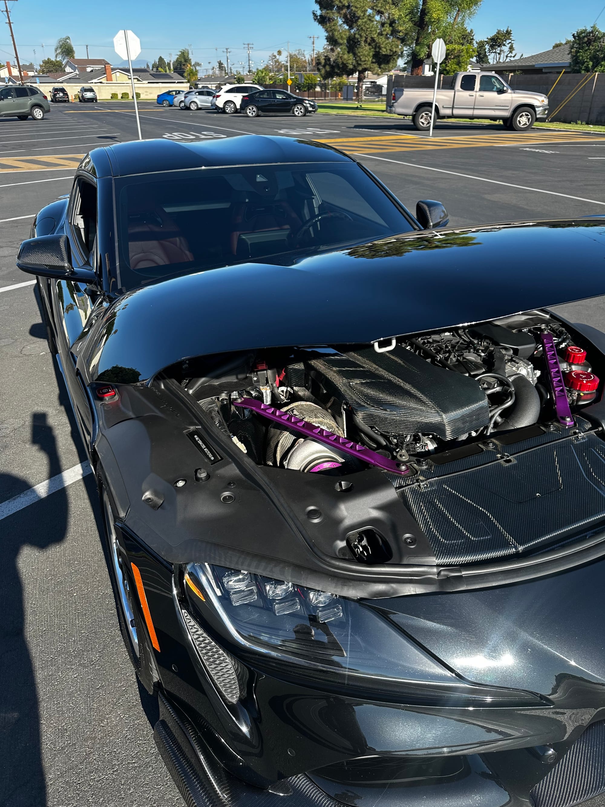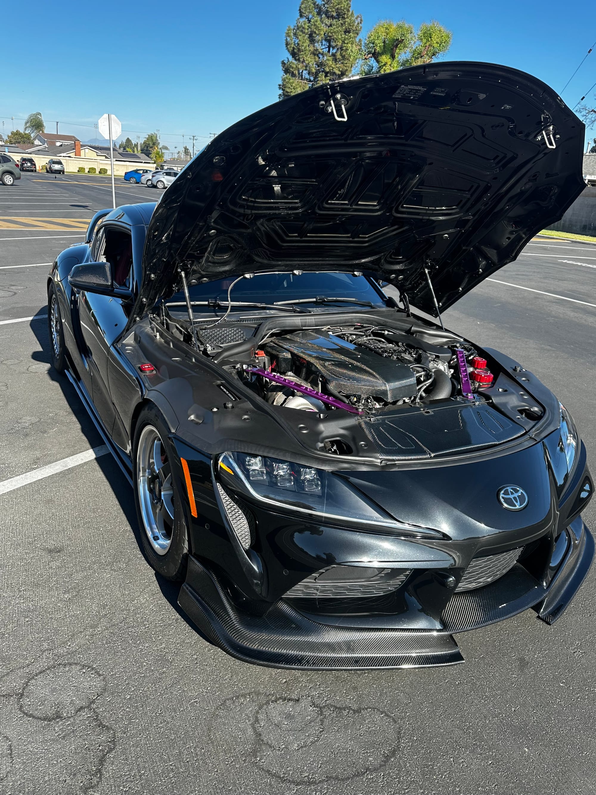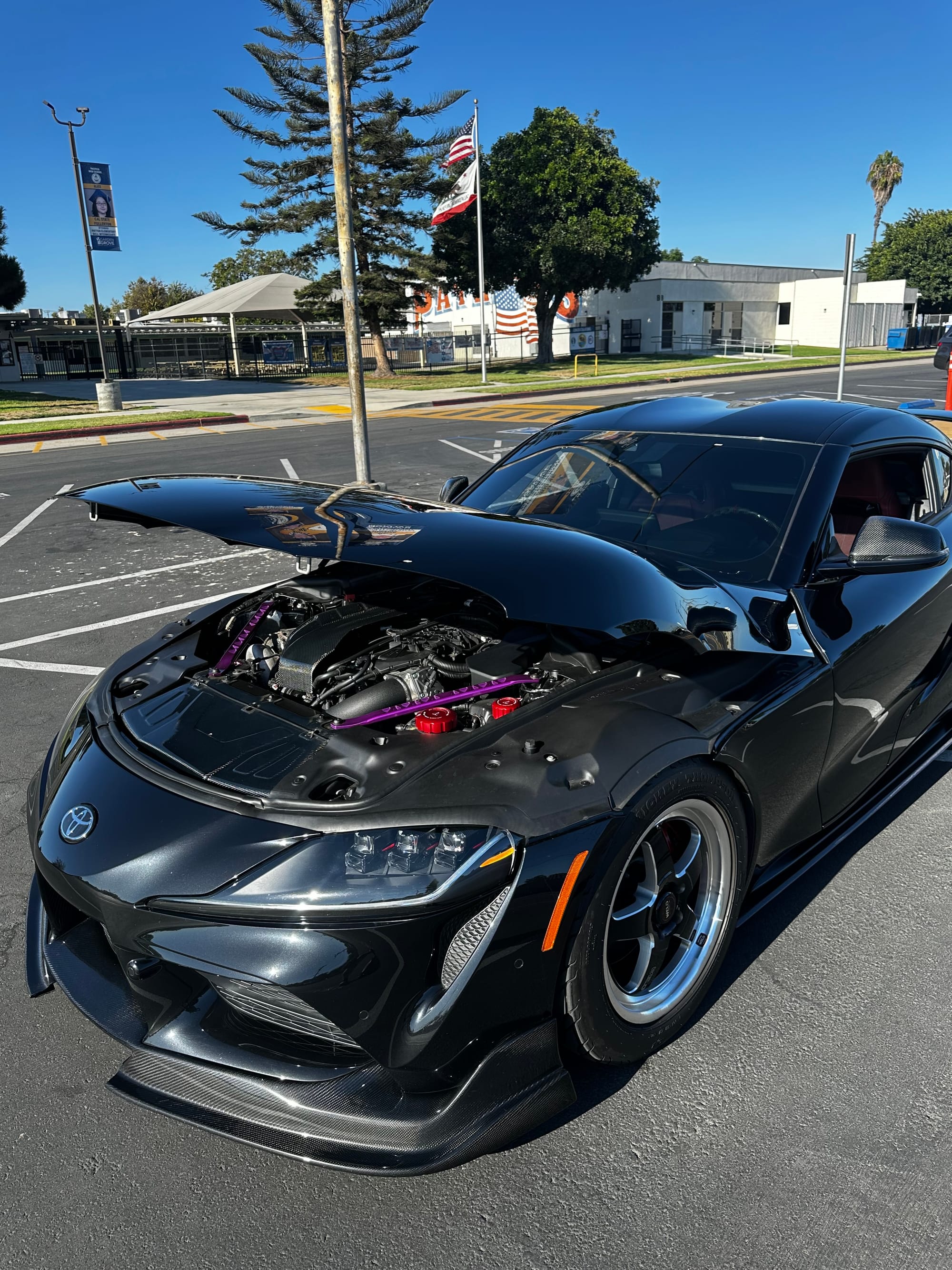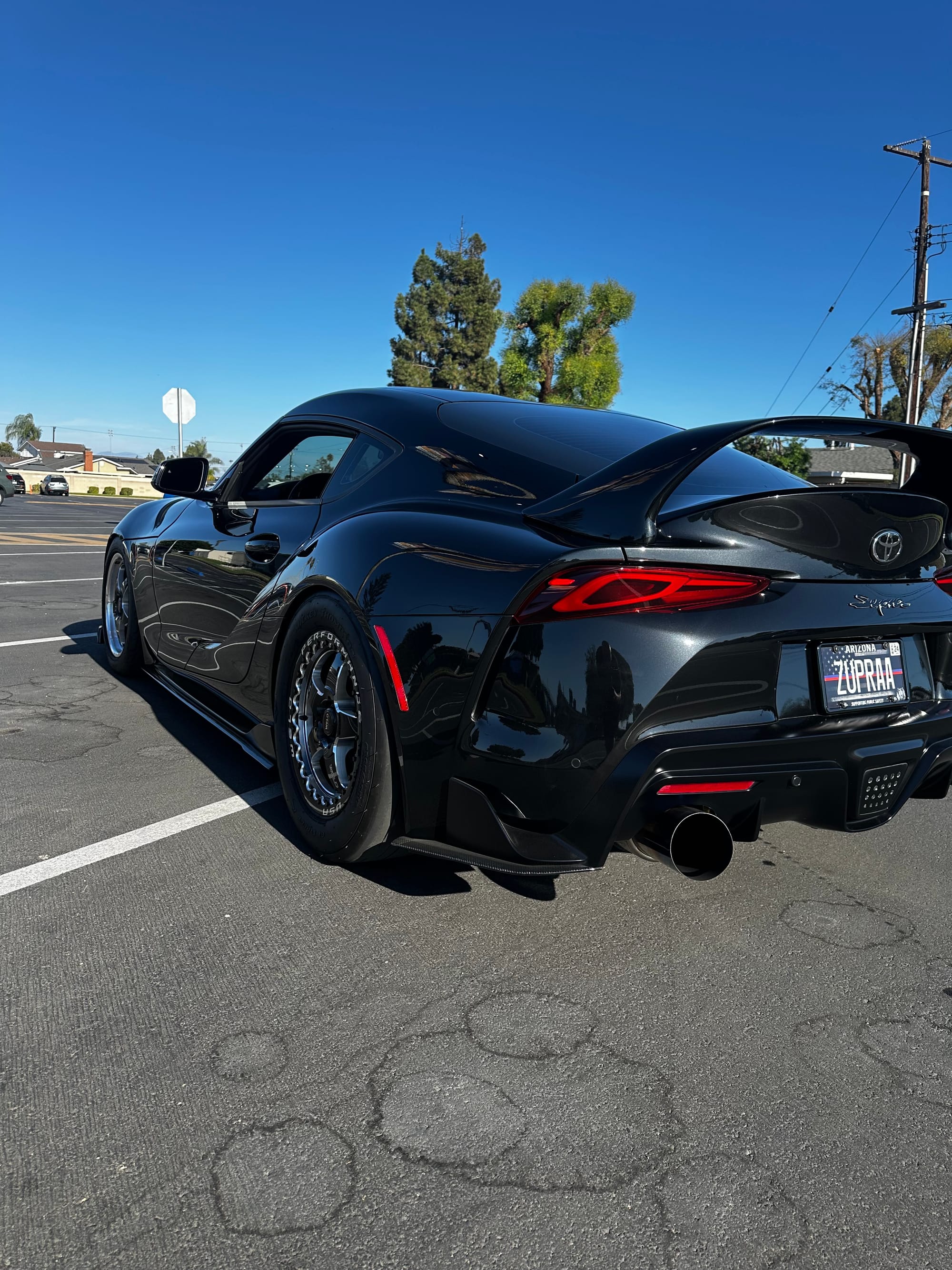 713whp 2020 Toyota Supra Launch Edition in Nocturnal Black with 28,700 miles for sale! Limited to only 1,500 units, the Launch Edition Supra features several visual changes, and they were all numbered with Morizo’s signature on the dashboard. This particular example is #319, and it’s also equipped with a wide variety of performance upgrades that were installed by AR Motorsports. Power is sourced from a turbocharged B58 3.0L inline-six that’s paired with an ETS 6466 PTE turbo kit, and mated to a Jack’s Stage 2 950 Drag 8HP51 8-speed automatic transmission. In regards to the fuel system, this setup utilizes EOSpeed port injection with 750cc injectors, Visconti LPFP, and a Visconti flex fuel kit. Additional upgrades include an SP1R titanium exhaust system with a 5” single exit, CSF heat exchanger, HKS adjustable springs, WELD Racing drag pack, and a handful of exterior components. Tuning was completed via Ecutek by Jeff Payne at Payn Performance Engineering with an output of 713whp (3 boost settings). The car is very fast in its current configuration at 33psi of boost, it runs on full E85, and gets great gas mileage even at this power level. Overall, it’s super clean and needs nothing at all, this Launch Edition Supra is ready to go for a long cruise or a night of racing! Clean title!