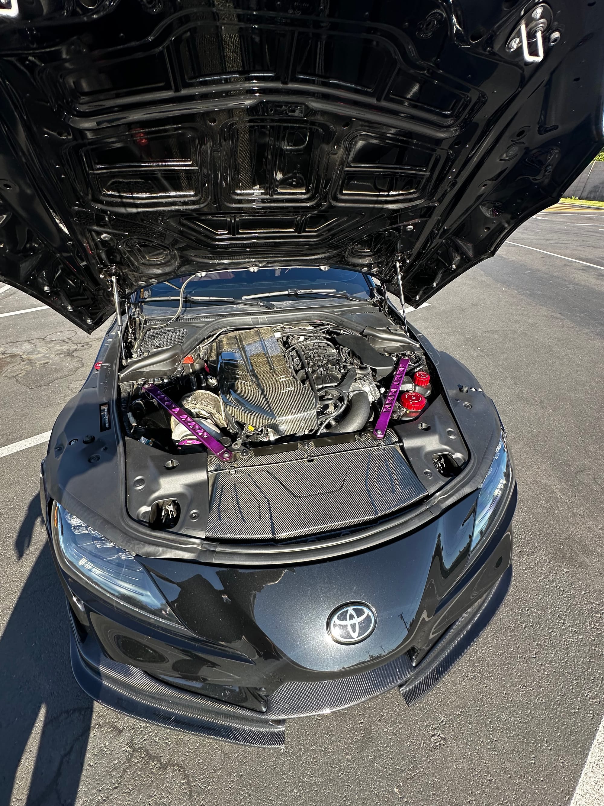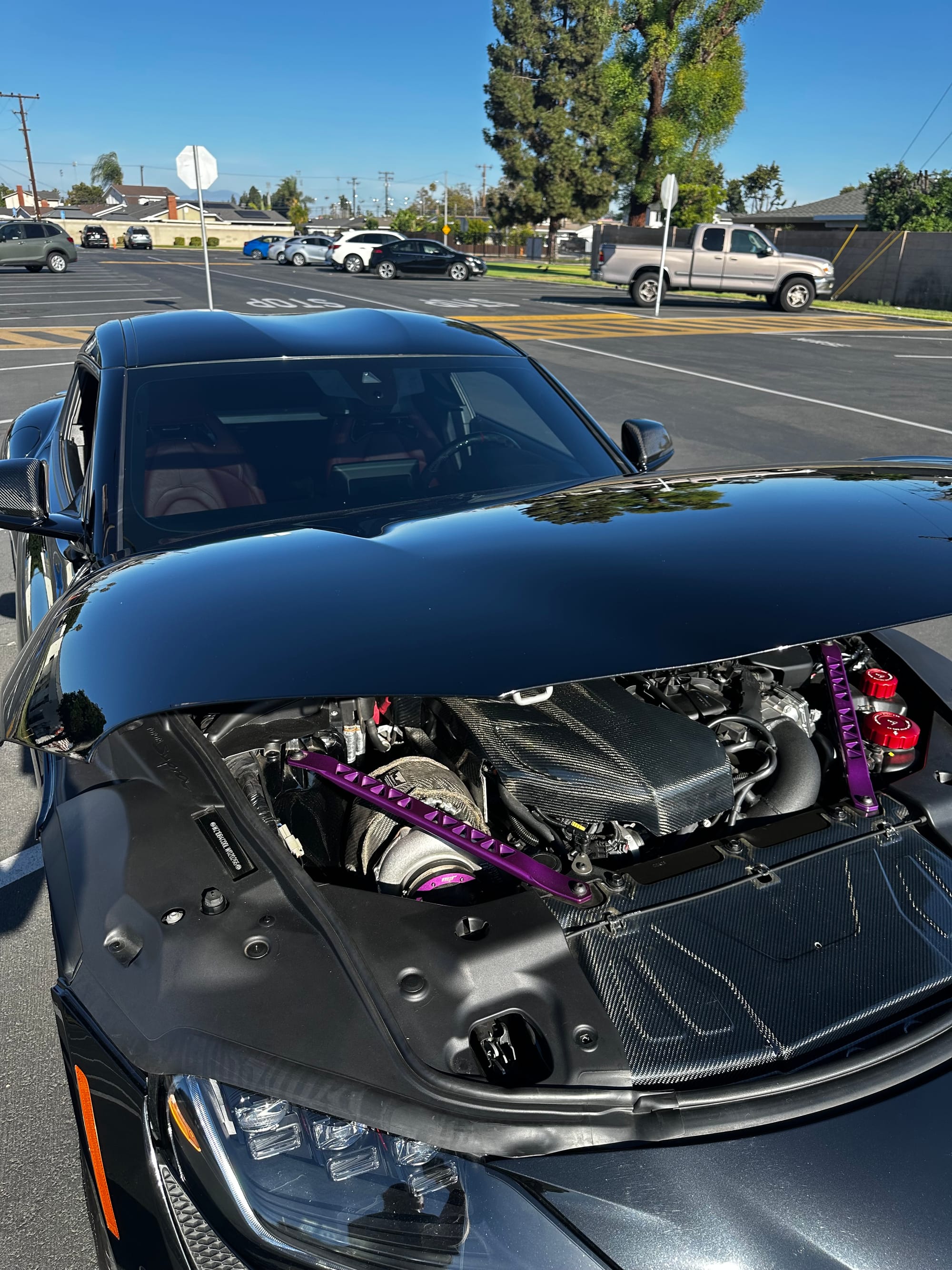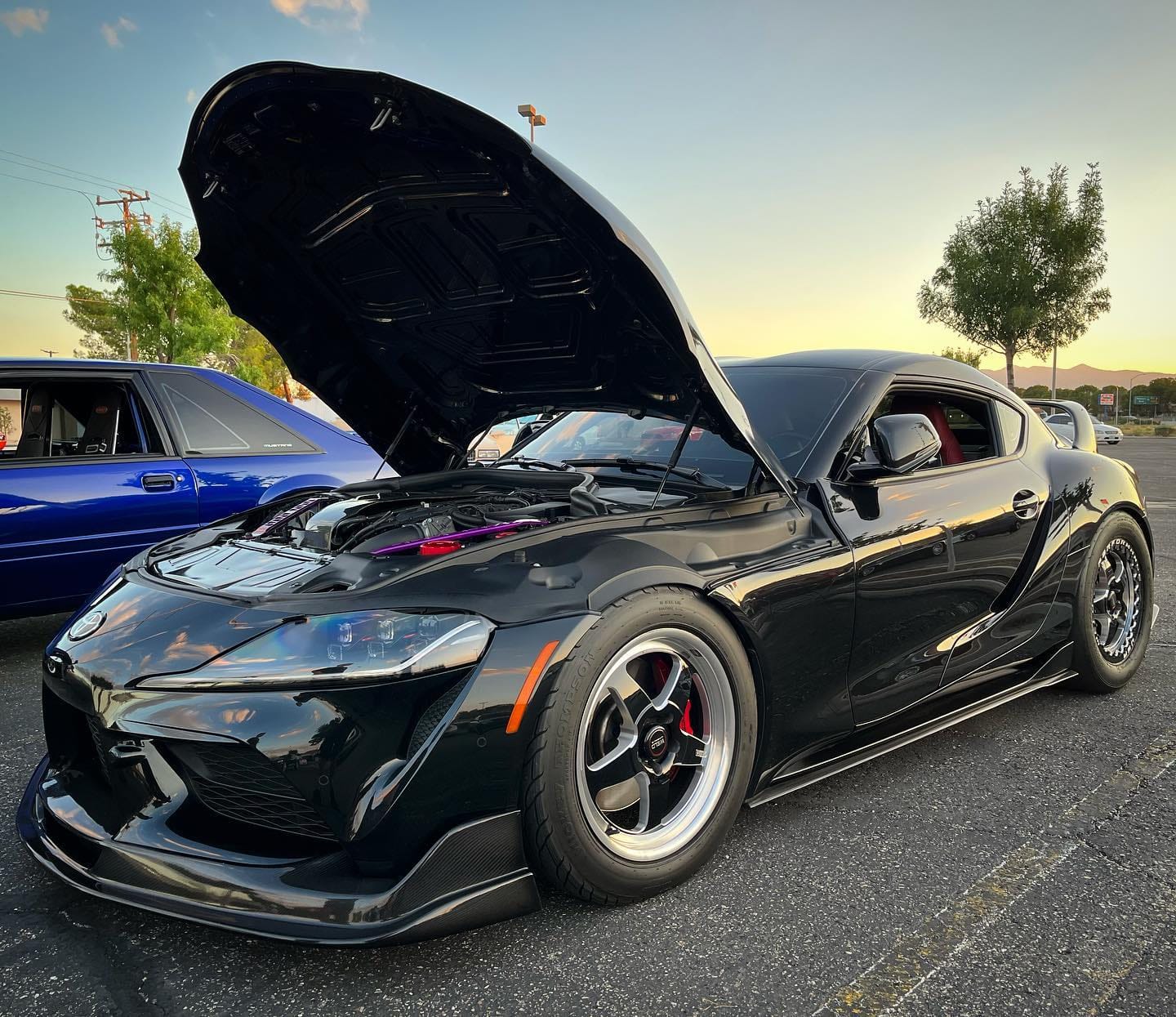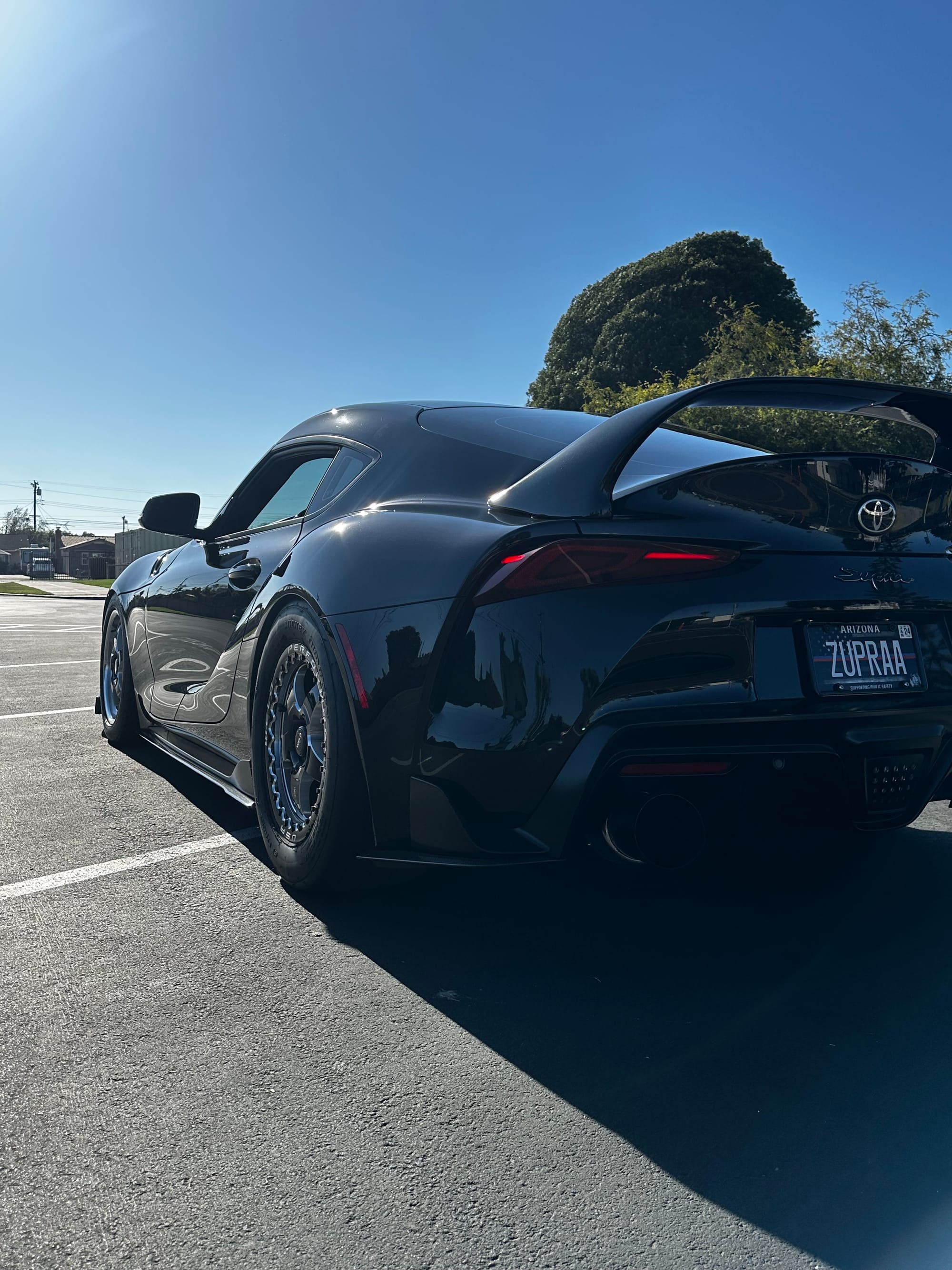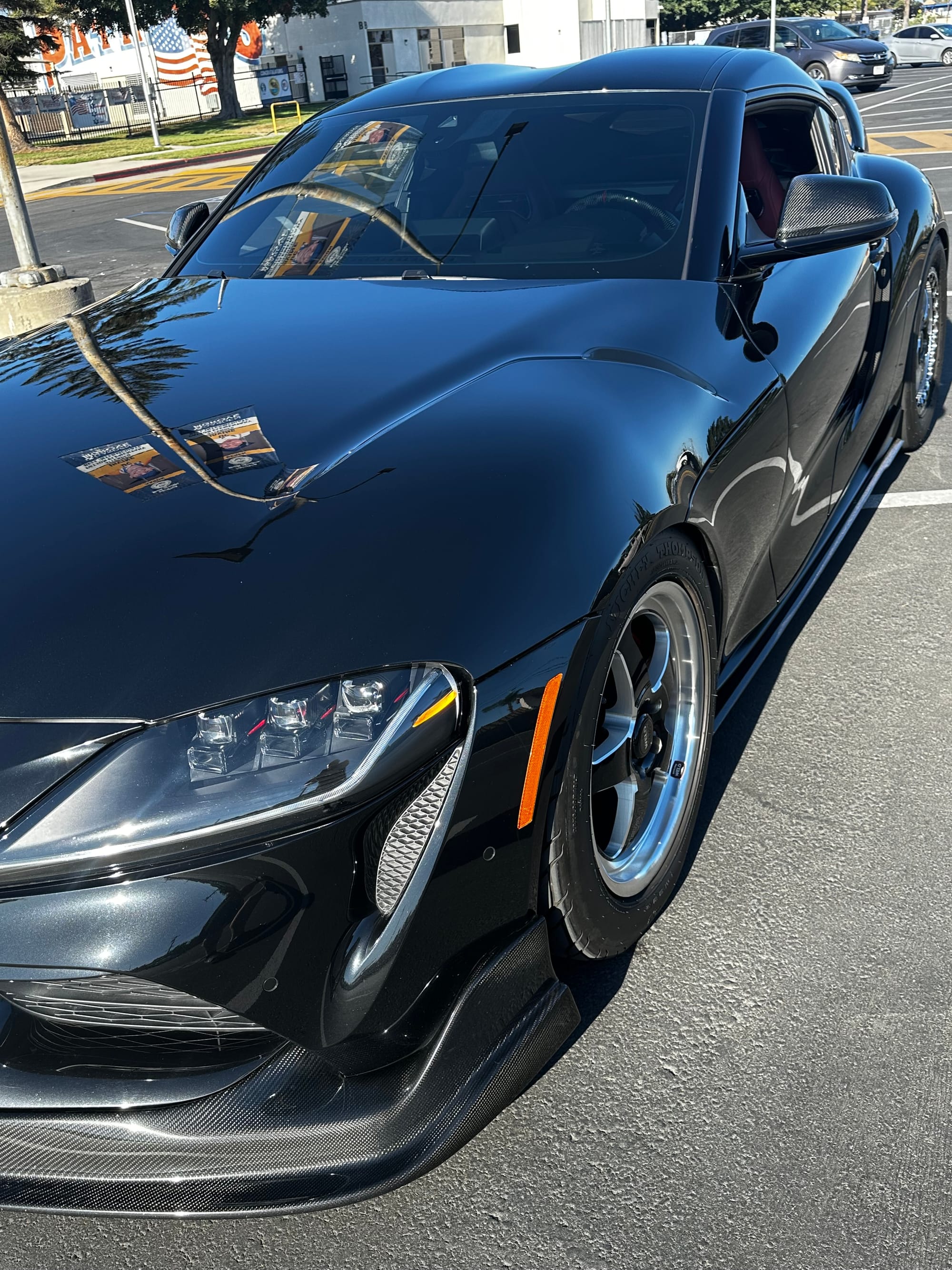 713whp 2020 Toyota Supra Launch Edition in Nocturnal Black with 28,700 miles for sale! Limited to only 1,500 units, the Launch Edition Supra features several visual changes, and they were all numbered with Morizo’s signature on the dashboard. This particular example is #319, and it’s also equipped with a wide variety of performance upgrades that were installed by AR Motorsports. Power is sourced from a turbocharged B58 3.0L inline-six that’s paired with an ETS 6466 PTE turbo kit, and mated to a Jack’s Stage 2 950 Drag 8HP51 8-speed automatic transmission. In regards to the fuel system, this setup utilizes EOSpeed port injection with 750cc injectors, Visconti LPFP, and a Visconti flex fuel kit. Additional upgrades include an SP1R titanium exhaust system with a 5” single exit, CSF heat exchanger, HKS adjustable springs, WELD Racing drag pack, and a handful of exterior components. Tuning was completed via Ecutek by Jeff Payne at Payn Performance Engineering with an output of 713whp (3 boost settings). The car is very fast in its current configuration at 33psi of boost, it runs on full E85, and gets great gas mileage even at this power level. Overall, it’s super clean and needs nothing at all, this Launch Edition Supra is ready to go for a long cruise or a night of racing! Clean title!