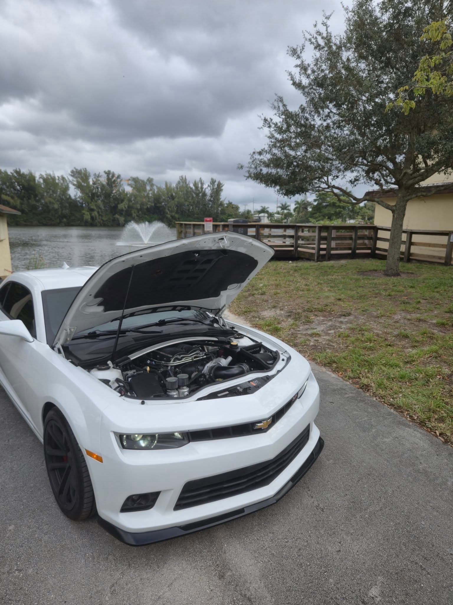 737whp 2014 Chevrolet Camaro SS 1LE in Summit White with 44,000 (Chassis) miles for sale! This 5th gen Camaro features a build that was spec’d, assembled, and tuned by Lashway Tuning. Beginning with a built LS3 that’s topped with a Magnuson Heartbeat supercharger system, and linked to a Tremec TR-6060 6-speed manual transmission with a Monster S-Series triple disc clutch (smooth as butter/no chatter). Diving deeper into the engine build, an LS3 block was used as the base, and it was fitted with Wiseco pistons and Callies connecting rods to strengthen the bottom end. The top end consists of a Brian Tooley Racing (BTR) PDS Stage 3 camshaft, Texas Speed ported heads, and Cometic gaskets, with ARP hardware used throughout. Additional performance upgrades include upgraded fuel injectors, Boost-A-Pump, American Racing Headers, dedicated 8-rib supercharger belt, Innovators West large ratio pulley, and a Roto-Fab cold air intake. This combination laid down 737whp/630wtq @ 14psi on the rollers with no methanol or E85, just good ole’ pump gas. The A/C compressor was recently replaced, so the air blows ice cold. There are currently 7,000 miles on the build! Clean title!