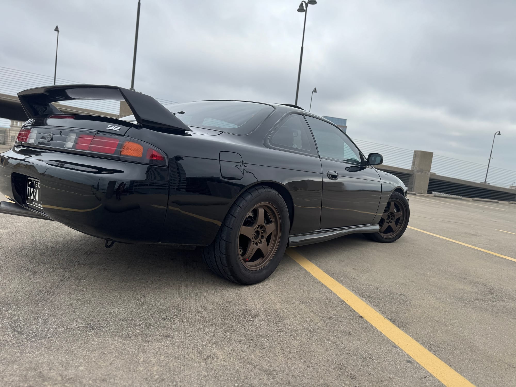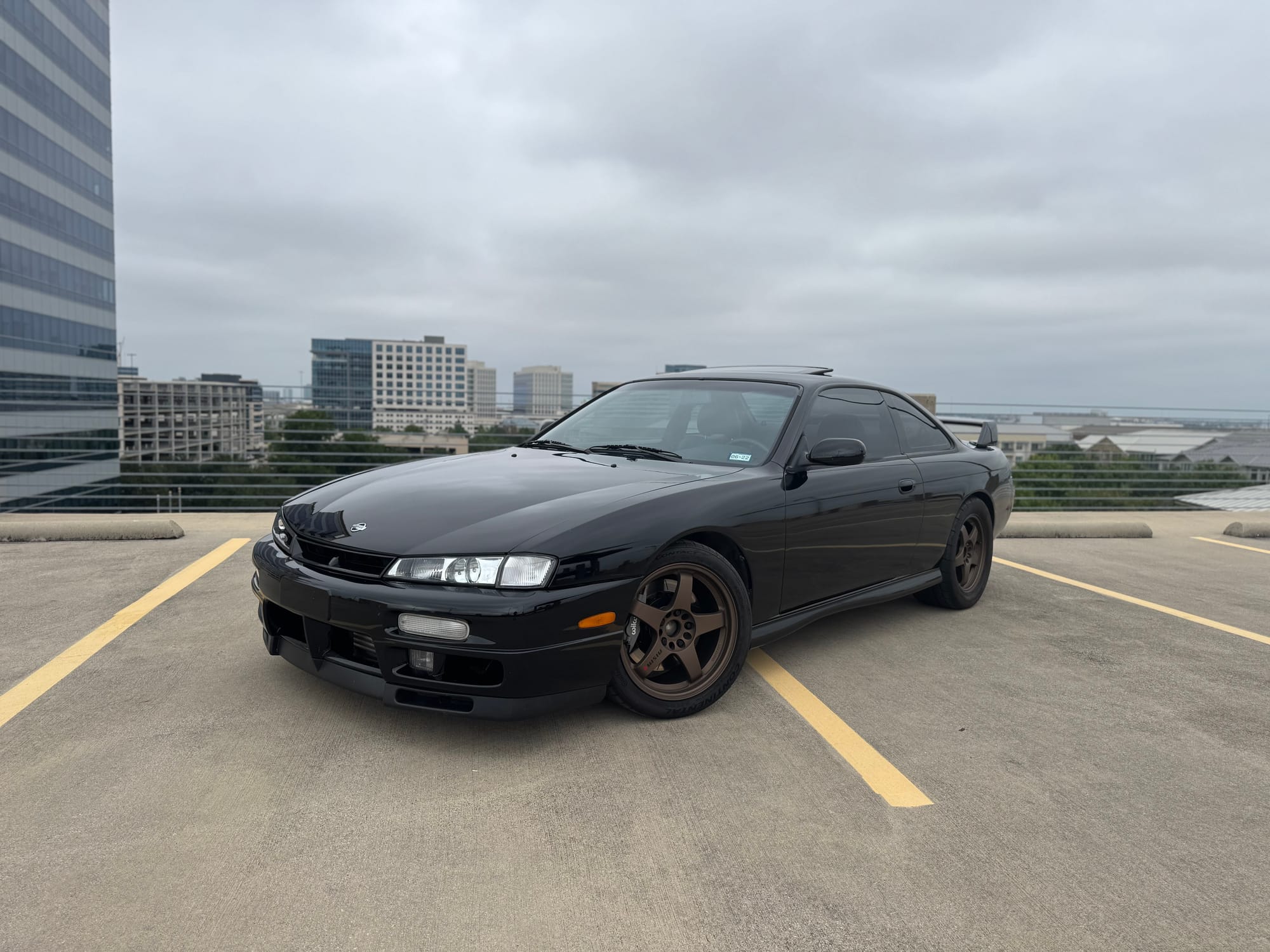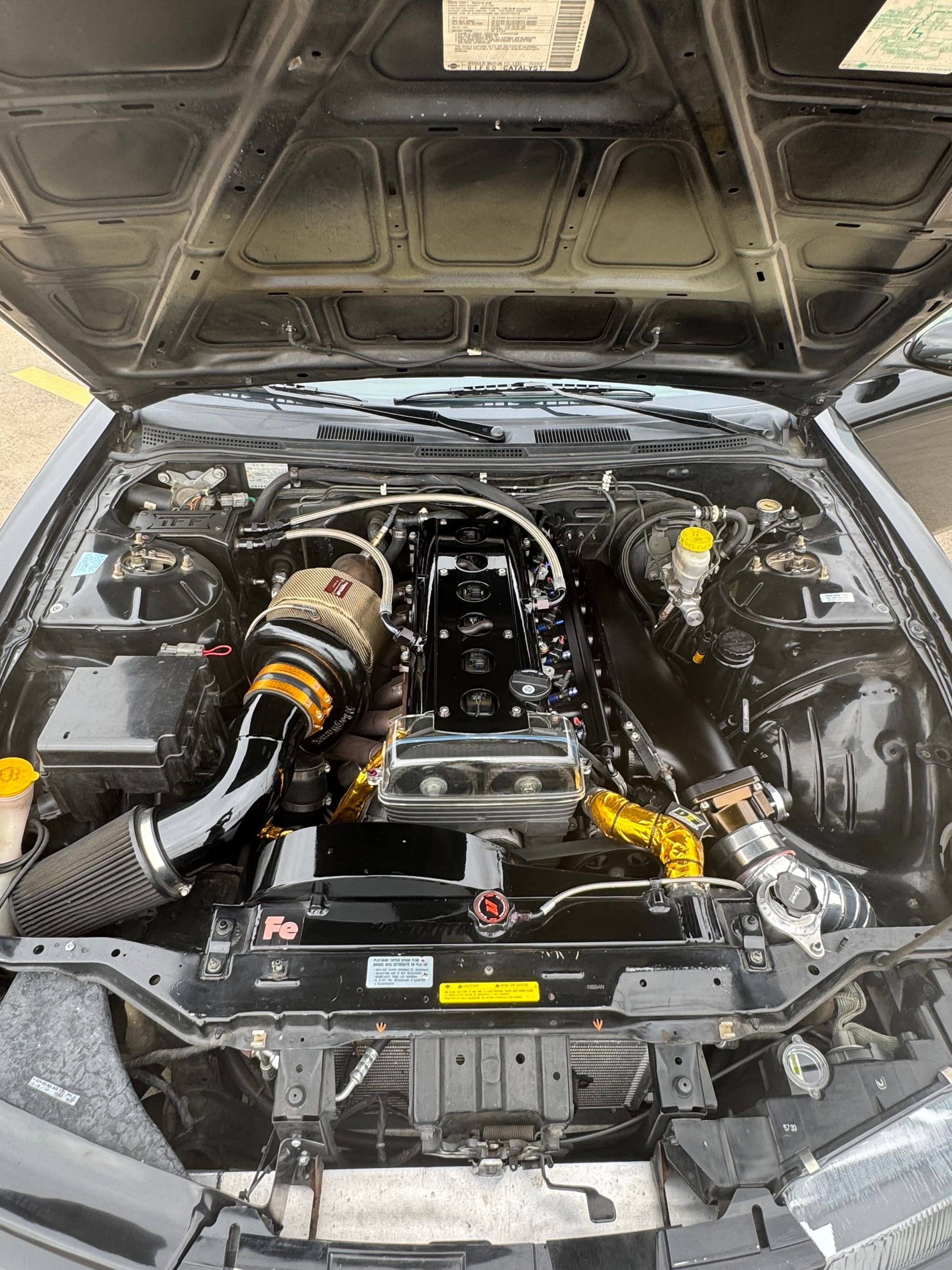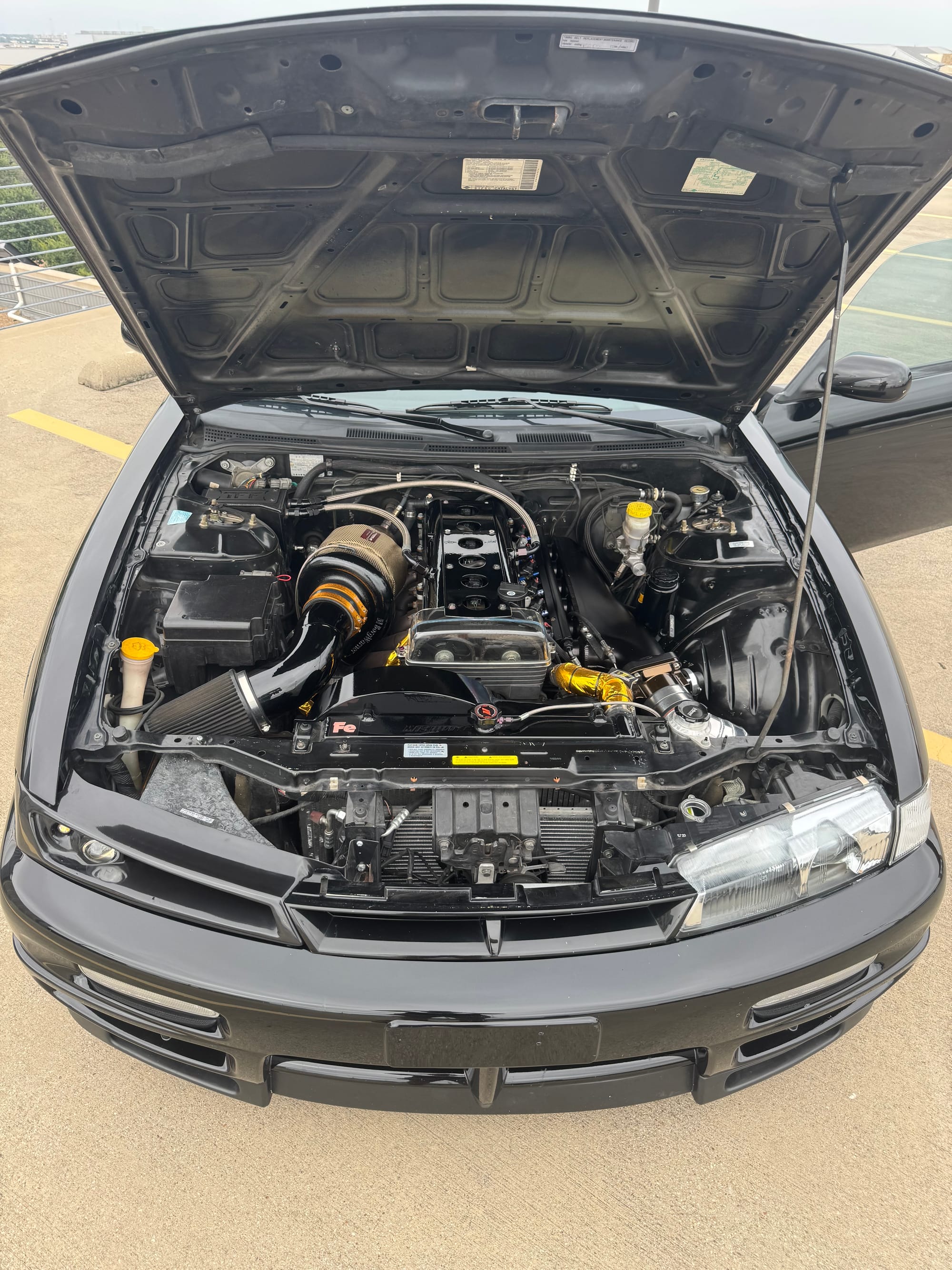 776whp 1998 Nissan 240SX in Black with 124,059 (Chassis) miles for sale! This clean S14 was built and tuned by Chris Nasvaderani back in 2020, transformed into a super reliable street car that generated 776whp/616wtq on the rollers. Powered by a 2JZ-GE that’s matched with a Borg Warner S366SXE turbo, and linked to T-56 Magnum 6-speed manual transmission. The engine build utilizes a 2JZ-GE block, which was fitted with GTE rods and pistons from a 60K mile TT Supra. The top end of the engine features Kelford 280 cams, BC springs/retainers, OE Toyota valves, ARP head studs, Supertech valve seals, and a 2JZ-GE head with the cam sensor mod, just to name a few. The fuel system consists of twin Walbro in-tank fuel pumps with a set of FIC fuel injectors, SS braided fuel lines, Aeromotive regulator, and a flex fuel sensor. As for the drivetrain, the T-56 Magnum was paired with a Tilton ST246 twin disc clutch, and trailed by a custom aluminum driveshaft, Q45 differential/axles with a differential brace, and 300ZX hubs. Additional key components include an AEM V2 standalone, Freed Engineering engine/transmission mounts, BC coilovers, powder coated rare Nismo LMGT4 wheels, Wilwood brakes, and more. The owner has taken the car on hour long cruises in the Texas heat without any issues on multiple occasions. The car retains all factory leather interior, power steering, heat, A/C, and fully functional factory gauges + BTI electronic info display. It’s currently missing a parking brake, however the owner has a full Hydro brake setup that hasn’t been installed (owner never got around to it). The dashboard is in amazing shape, the seats are worn out, but the owner has some replacements that will be included with the sale. Overall, the exterior is in good shape for an almost 30 year old car, there are some scratches here and there, and a couple of door dings. The owner has only put 2,700 miles on the car since the build was completed in 2020. Clean title!
