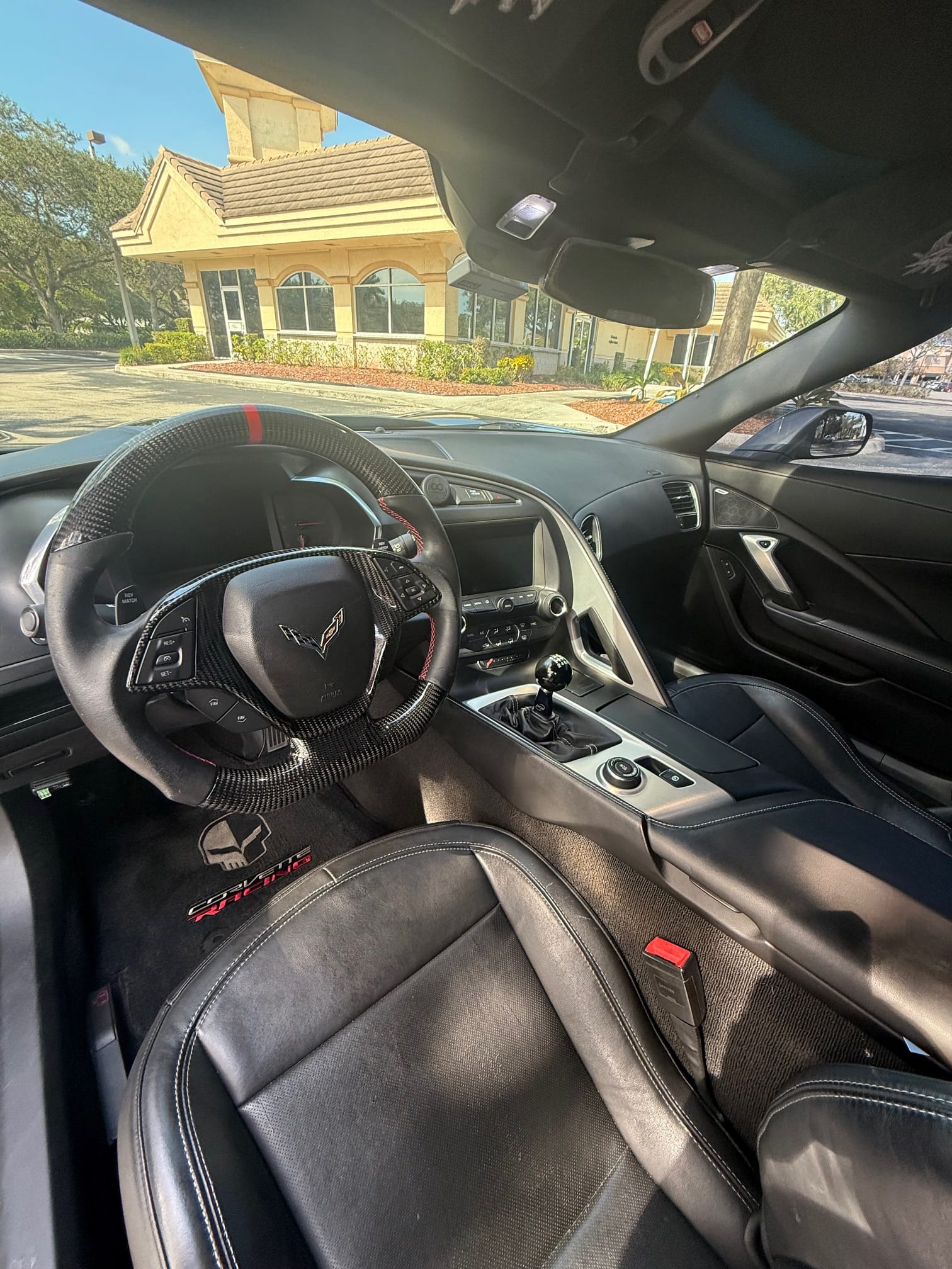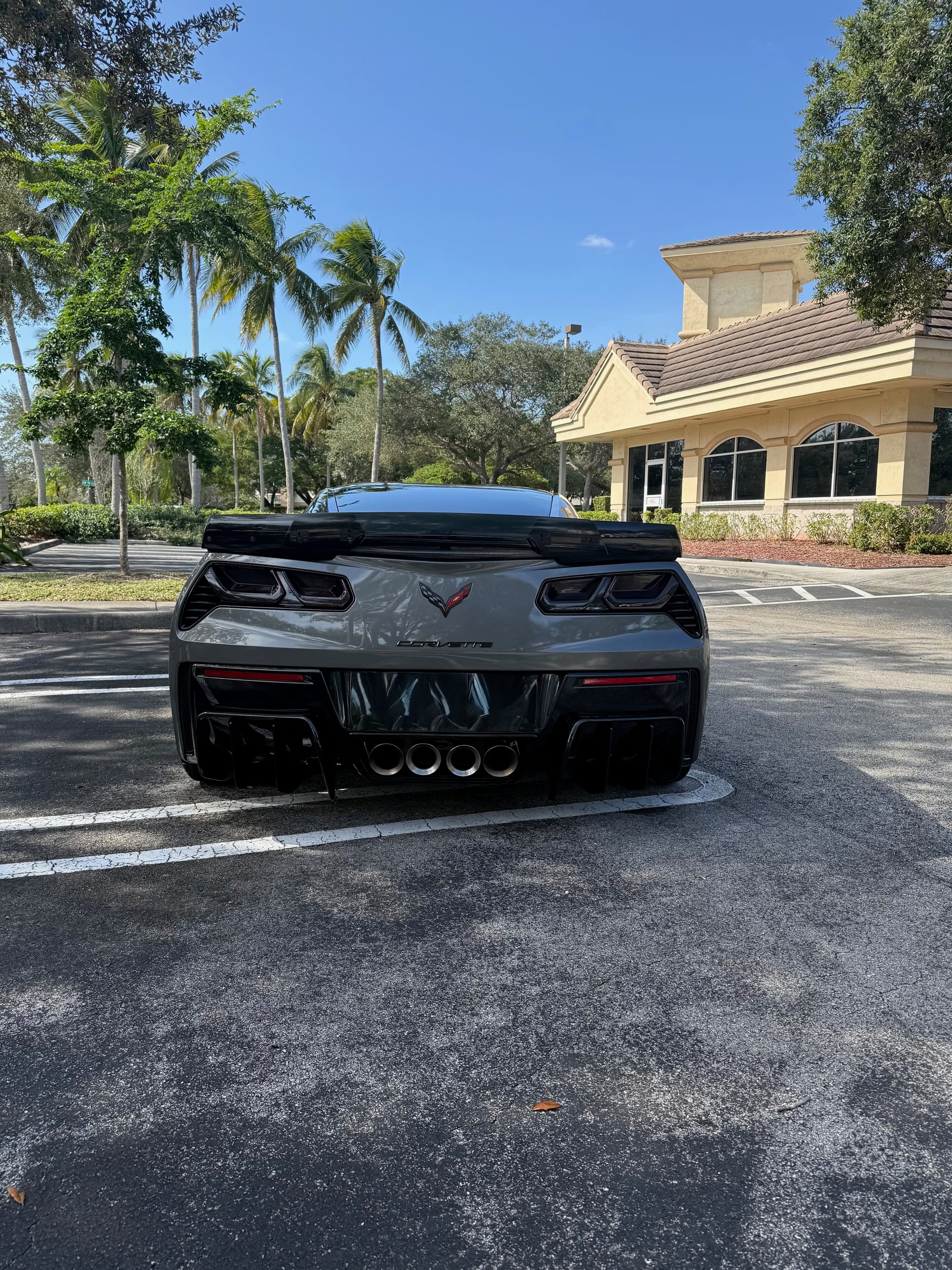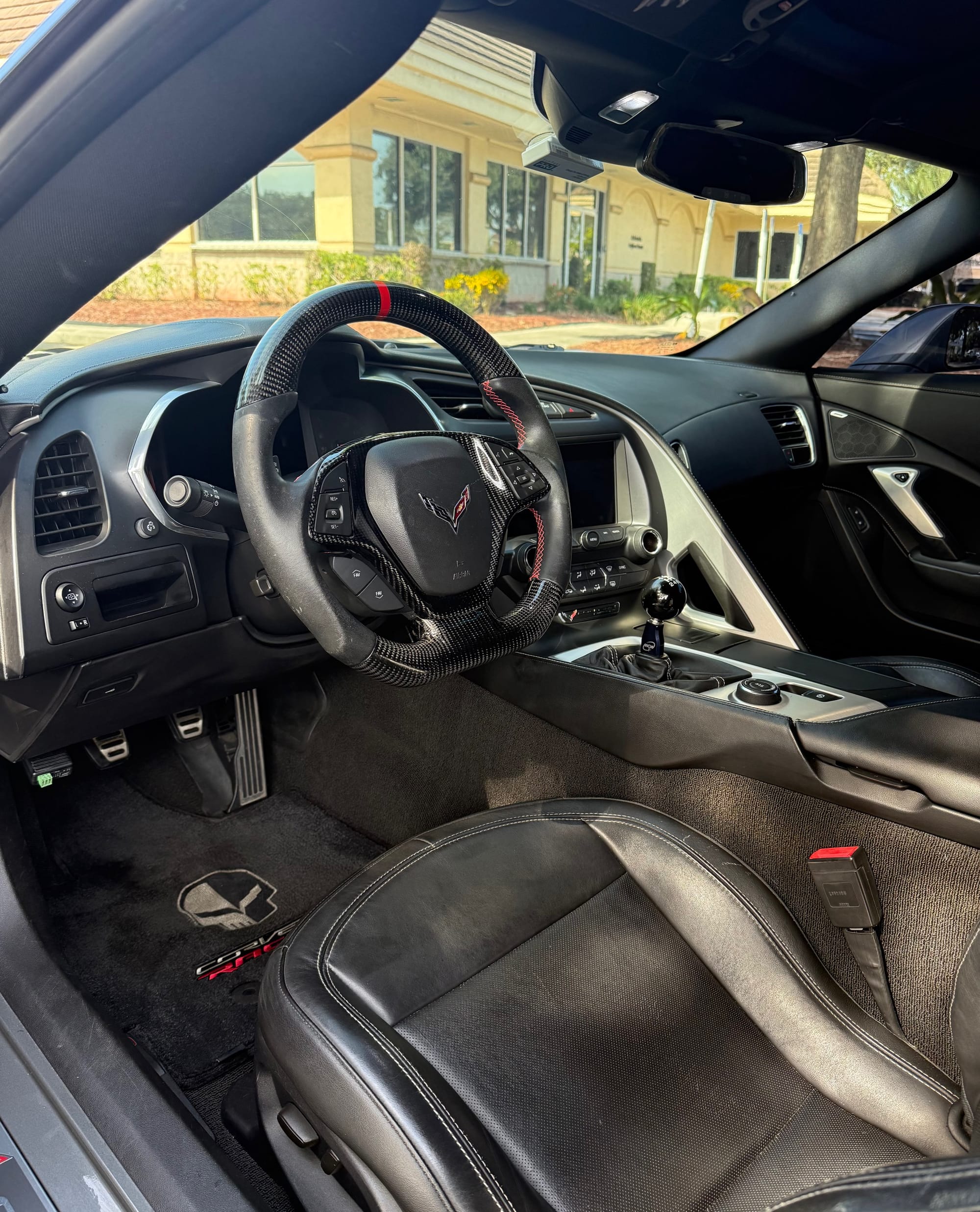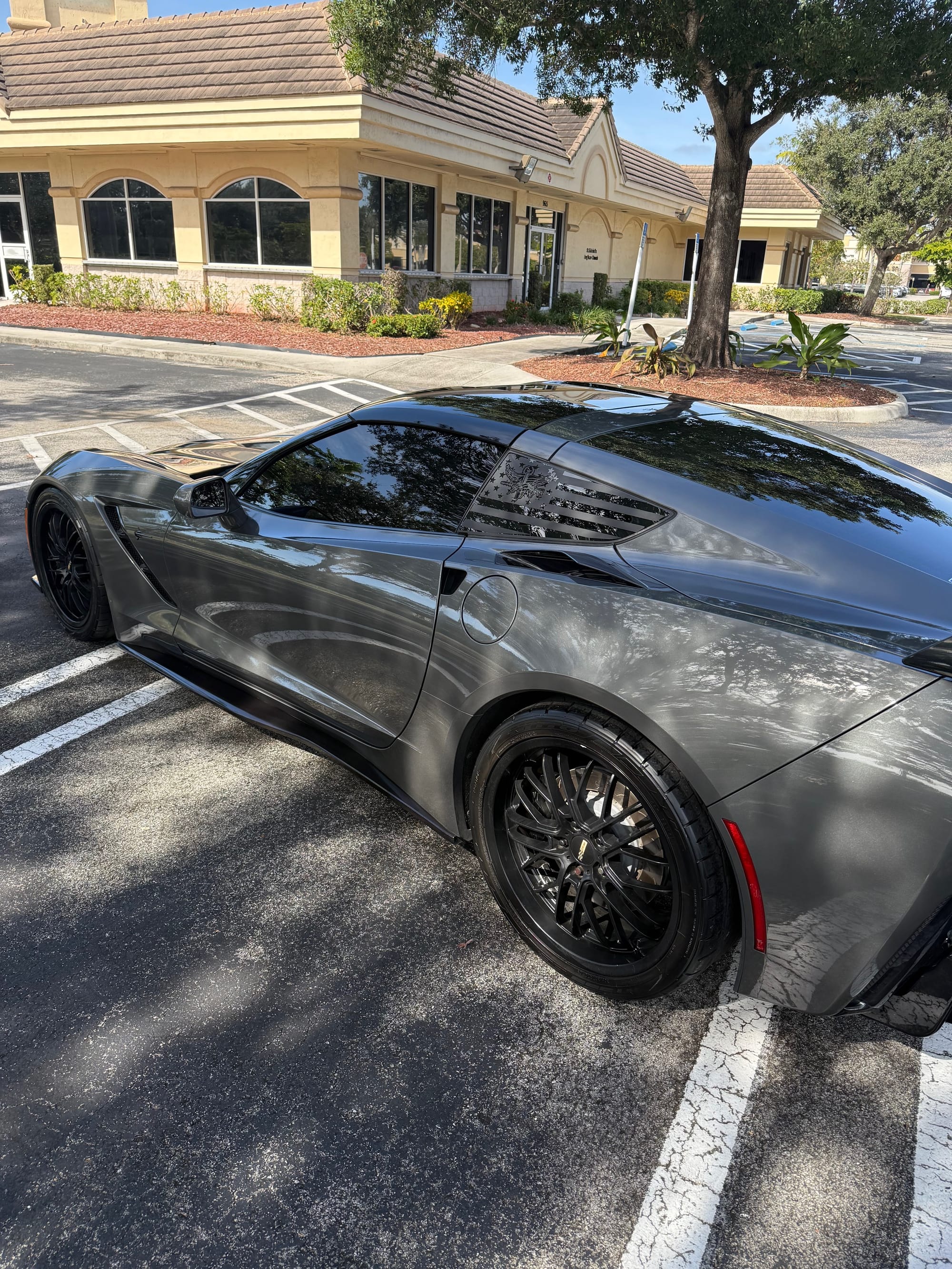 797whp 2015 Chevrolet Corvette Stingray 1LT Z51 in Shark Gray with 48,100 (Chassis) miles for sale! This C7 was built by Mera Motorsports, equipped with a solid setup that generated 797whp on E85 after tuning was finalized by Edgard of DSMlights Tuning. Beneath the hood lies an LT1 that’s fitted with a fully forged bottom end (pistons, rods, etc.) and P-1SC-1 ProCharger, this combination is trailed by the a Tremec TR-6070 7-speed manual transmission. Following the forged bottom end, the engine also features a set of ported and polished heads, upgraded camshaft, and DOD delete. The fuel system consists of a DSX auxiliary fuel pump along with a set of Z06 fuel injectors, and a flex fuel sensor. Additional modifications include a pair of American Racing headers, x-pipe, high flow cats, Alky Control methanol injection kit, MGW short throw shifter, and a handful of aesthetic components. The car will also come with a pair of Aventador style tail lights, which were never installed. There are currently 22K miles on the build. Clean title!
