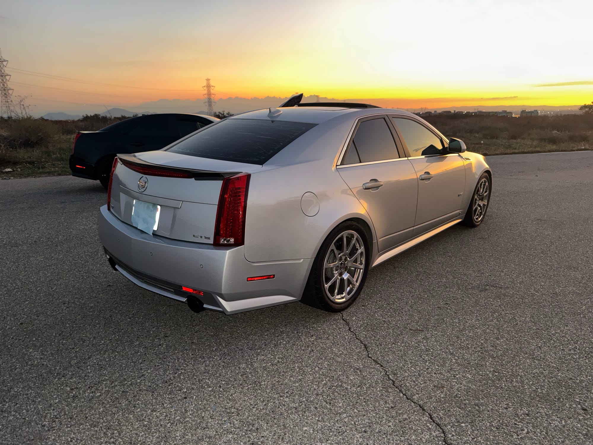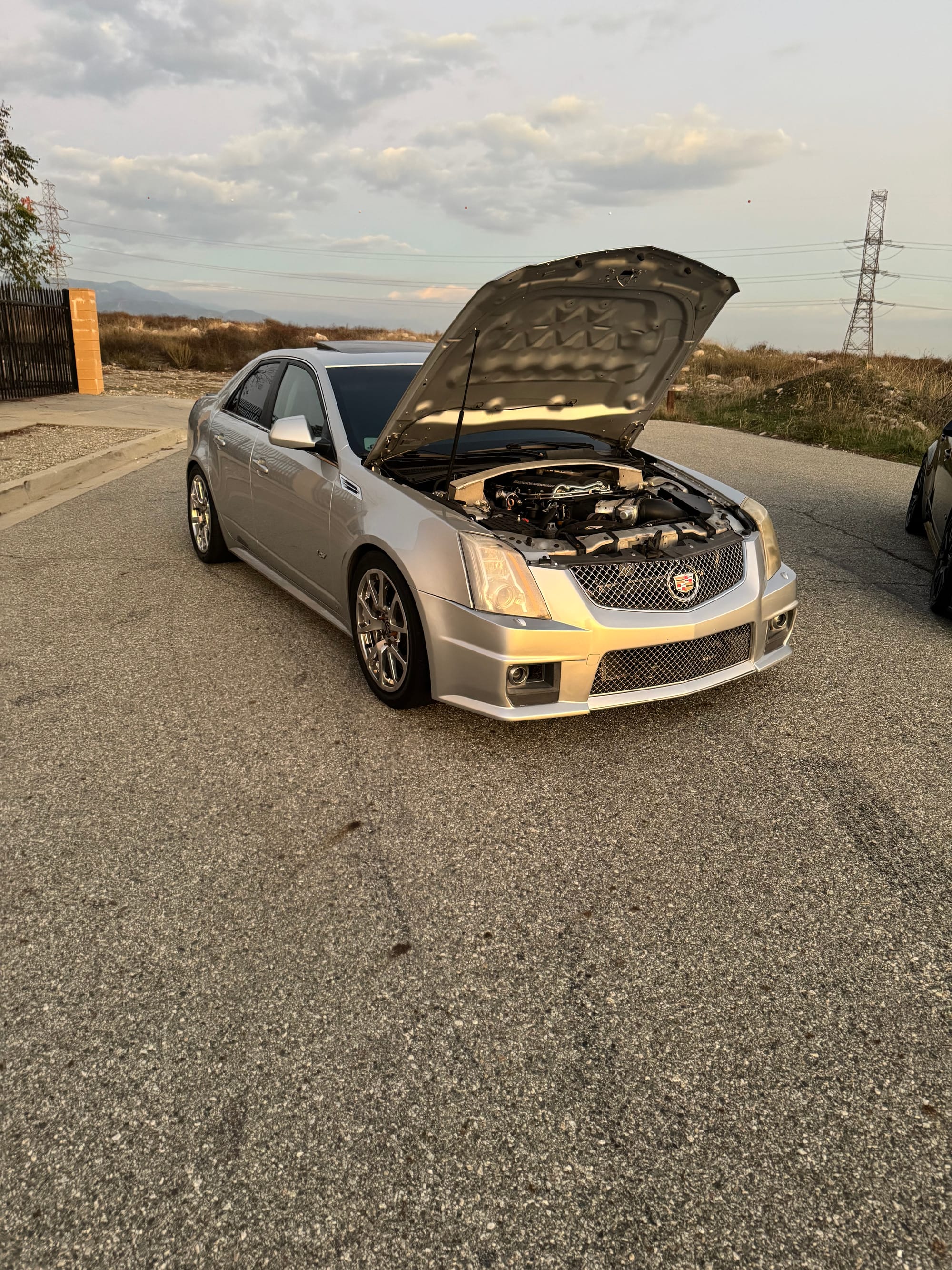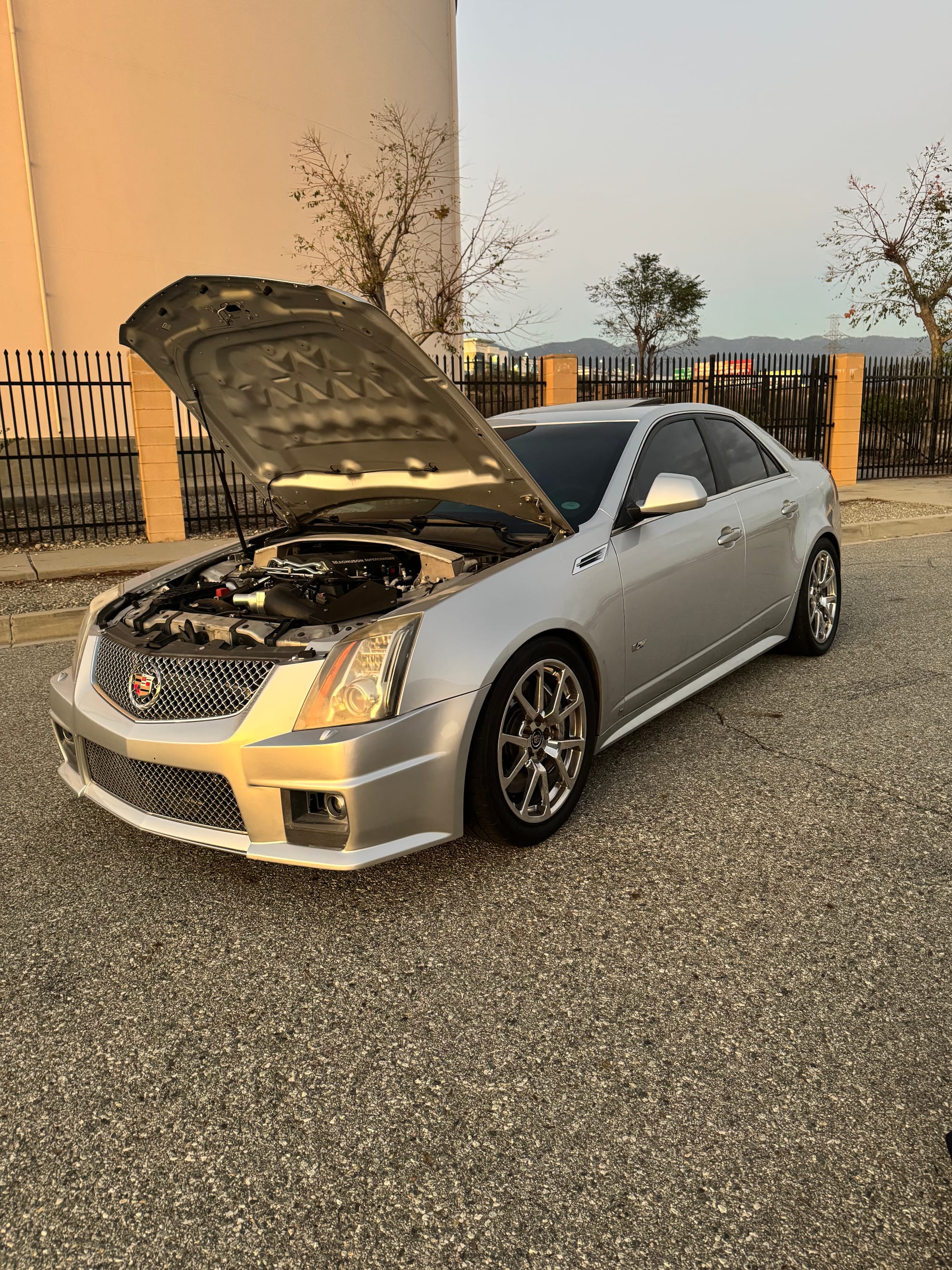 800+whp 2009 Cadillac CTS-V Sedan in Radiant Silver with 115,613 (Chassis) miles for sale! This V2 is powered by a fully built LSA that’s topped with a Magnuson supercharger, and linked to a new 6L90E 6-speed automatic transmission. Further equipped with full bolt ons (including headers), full pulleys from top to bottom, rear coilovers, rear 15” conversion, longer studs all around, differential cooler with a pump, Aeroforce Interceptor gauge, and a roll cage. An Interchiller was installed as well, however it needs to be refilled with Freon. Modifications were installed by Izzy Performance, and tuning was handled by them as well with an E85/91 octane flex fuel tune, which generated over 800whp on 16psi. An additional pulley will be included to make more power, it runs and drives like stock. The car was state reffed in California, so the owner is looking to sell the vehicle to an out of state buyer. There are currently 10,613 miles on the build! Clean title!
