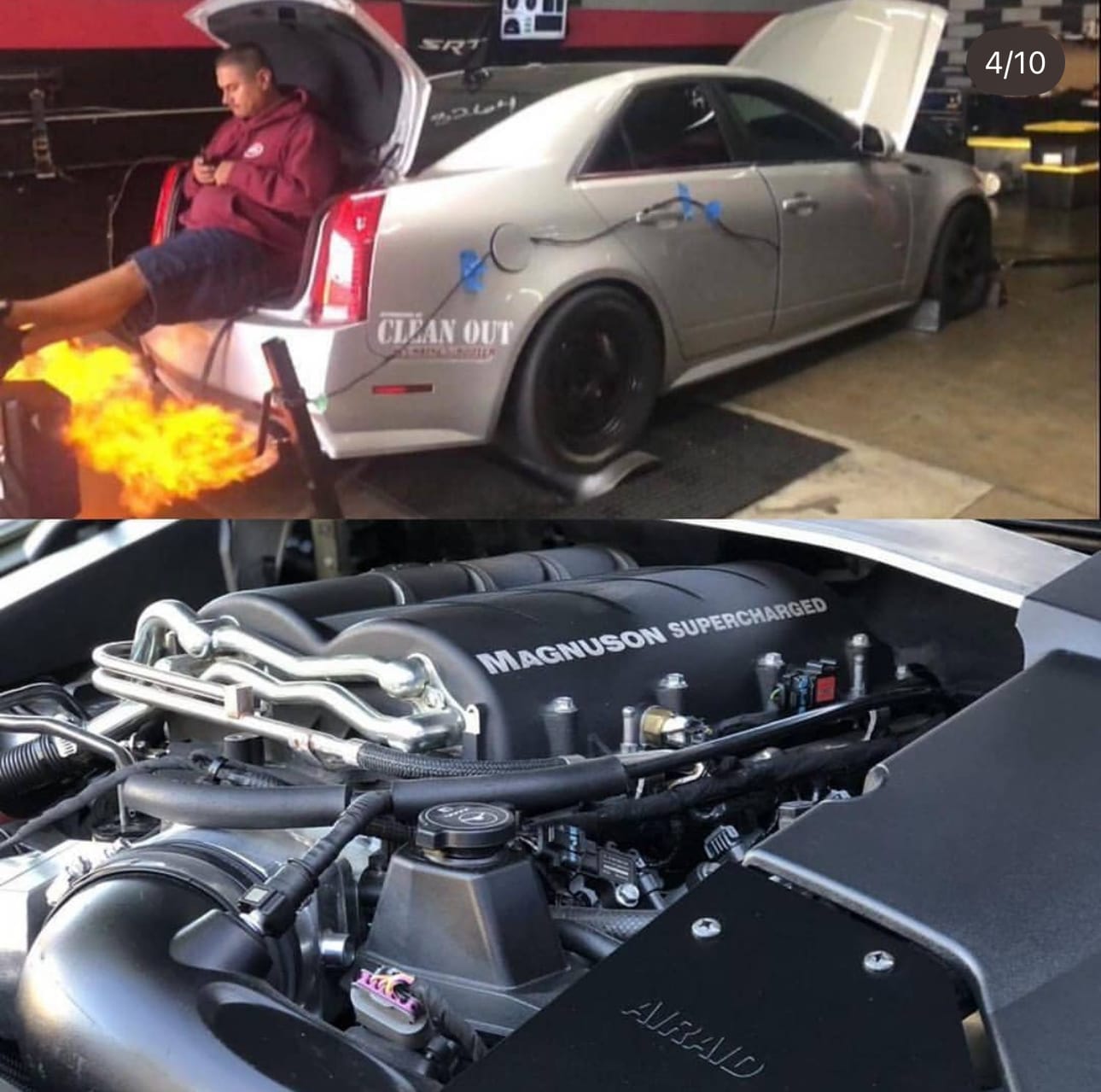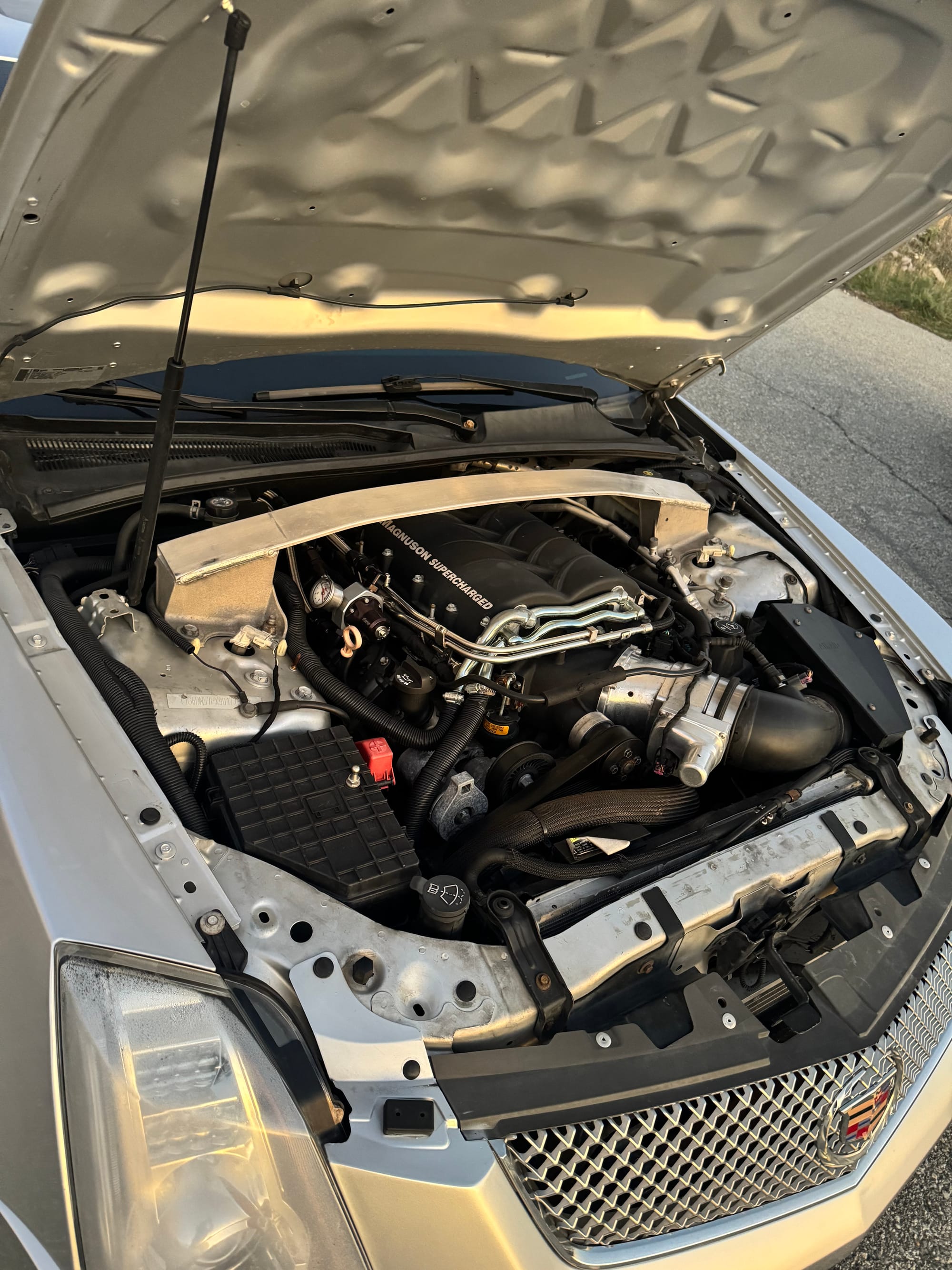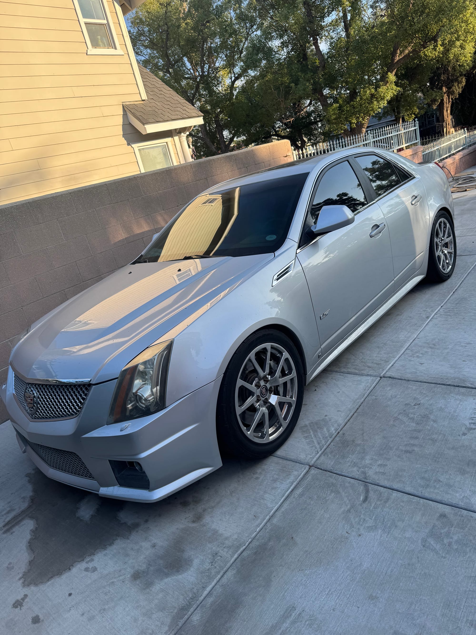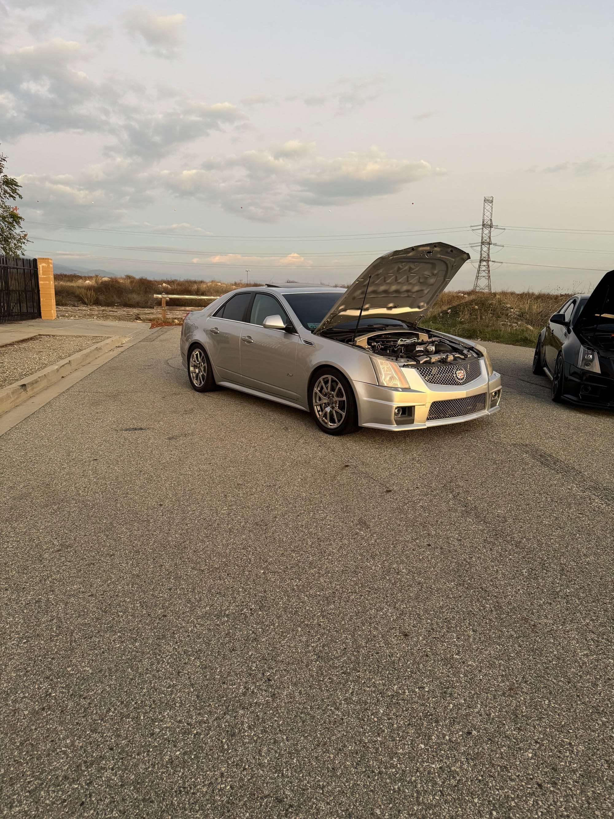 800+whp 2009 Cadillac CTS-V Sedan in Radiant Silver with 115,613 (Chassis) miles for sale! This V2 is powered by a fully built LSA that’s topped with a Magnuson supercharger, and linked to a new 6L90E 6-speed automatic transmission. Further equipped with full bolt ons (including headers), full pulleys from top to bottom, rear coilovers, rear 15” conversion, longer studs all around, differential cooler with a pump, Aeroforce Interceptor gauge, and a roll cage. An Interchiller was installed as well, however it needs to be refilled with Freon. Modifications were installed by Izzy Performance, and tuning was handled by them as well with an E85/91 octane flex fuel tune, which generated over 800whp on 16psi. An additional pulley will be included to make more power, it runs and drives like stock. The car was state reffed in California, so the owner is looking to sell the vehicle to an out of state buyer. There are currently 10,613 miles on the build! Clean title!