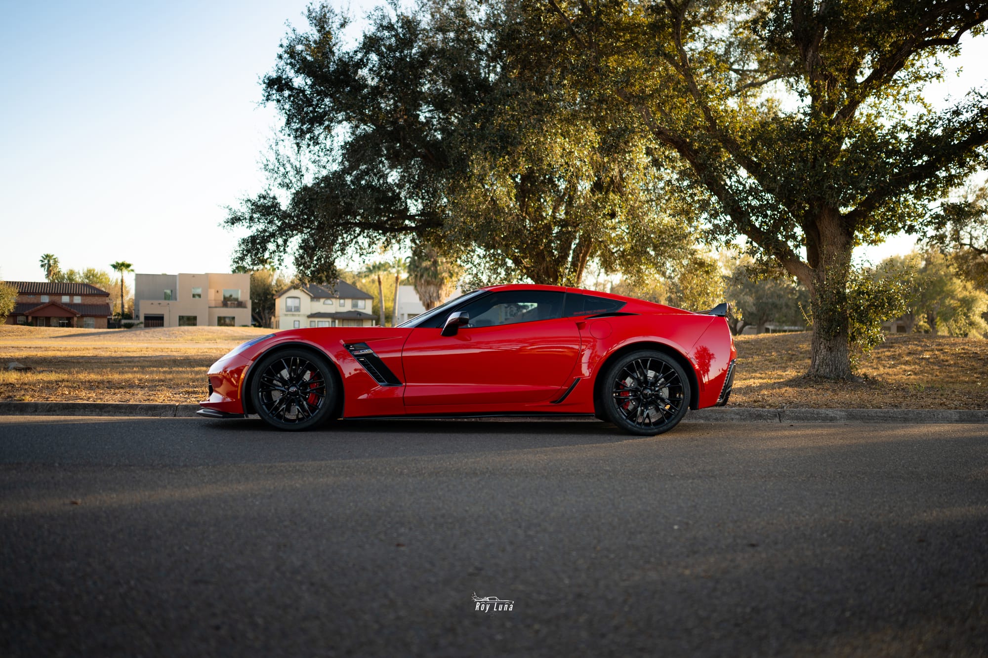 812whp 2017 Chevrolet Corvette Z06 1LZ in Torch Red with 18,300 miles for sale! The heart of this 9-second C7Z consists of a H/C 6.2L LT4 that’s topped with a 1.7L Eaton R1740 TVS supercharger, and linked to an 8L90 8-speed automatic transmission. More specifically, the LT4 was fitted with a Stage 3 camshaft along with a pair of Late Model Engines (LME) ported heads. The supercharger utilizes a 2.30” upper and 9.45” lower pulley combination, followed by an aFe Power Momentum cold air intake system. Further equipped with a Mighty Mouse catch can, flex fuel setup, American Racing headers, Alky Control stealth methanol kit, Cordes Performance expansion tank, and all supporting modifications. The owner will also include a 15" rear conversion kit that was removed from the car. Modifications were installed by J-Rod's Speed Shop (JRSS), and tuning was completed by Matt Sorian with an output of 812whp on the rollers. As for track times, the car covered the 1/4-mile in 9.6-seconds with a 141mph trap speed. It's in excellent condition with only 4,500 miles on the setup. 2-Owner. Clean title! The asking price is OBO (Or-Best-Offer).