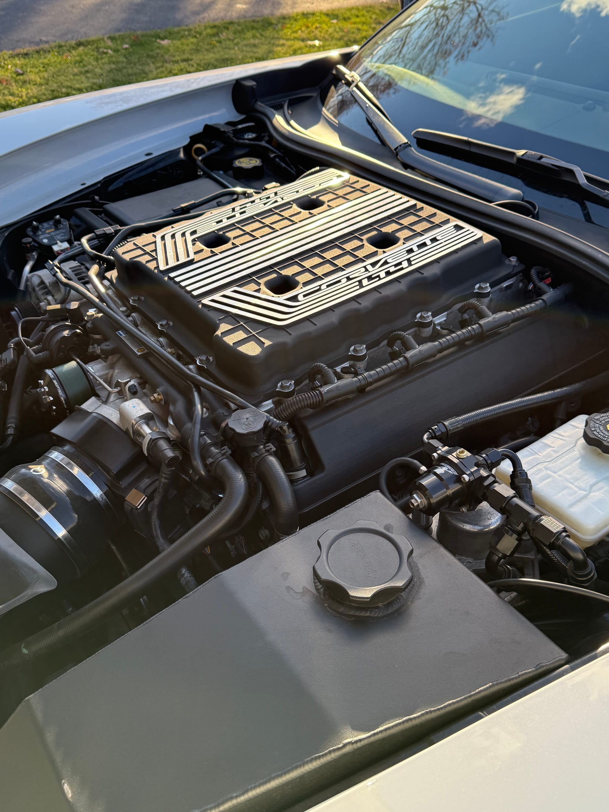 853whp 2019 Chevrolet Corvette Z06 2LZ in Ceramic Matrix Gray with 17,485 miles for sale! This stunning C7Z was purchased out of Greendale, IN 3 years ago, 3 months later the car received a solid bump in power with the installation of several performance upgrades. Race Proven Motorsports took charge of the build, the car was equipped with their Stage 4 Package with extensive build invoices, dyno sheets, and a feature on their YouTube channel, which showcases the install and dyno pulls. Powered by a cammed 6.2L LT4 that’s topped with a Kong Stage X ported LT4 supercharger, and linked to a Tremec TR-6070 7-speed manual transmission with a Monster LT1-S triple disc clutch. The LT4 was fitted with RPM’s custom AFM/DOD delete camshaft package, which includes a custom grind forced induction camshaft along with all supporting valvetrain upgrades. This setup utilizes an RPM low-side fuel system with a Holley fuel pump, Aeromotive fuel pressure regulator, and GM flex fuel sensor. Additional upgrades include a Nick Williams 103mm throttle body, Cordes Performance 5” intake, American Racing 2” long tube header system with a 3” off-road x-pipe, AFCO heat exchanger, ProMeth methanol system, P3 gauge, and more. Tuning was completed by Fran Schatz with an output of 805whp/714wtq on pump gas, and 853whp/758wtq on 53% ethanol. The car has been maintained by the owner, and has only seen a few highway runs to test its drive-ability. Only 3,130 miles on the setup! Clean title!