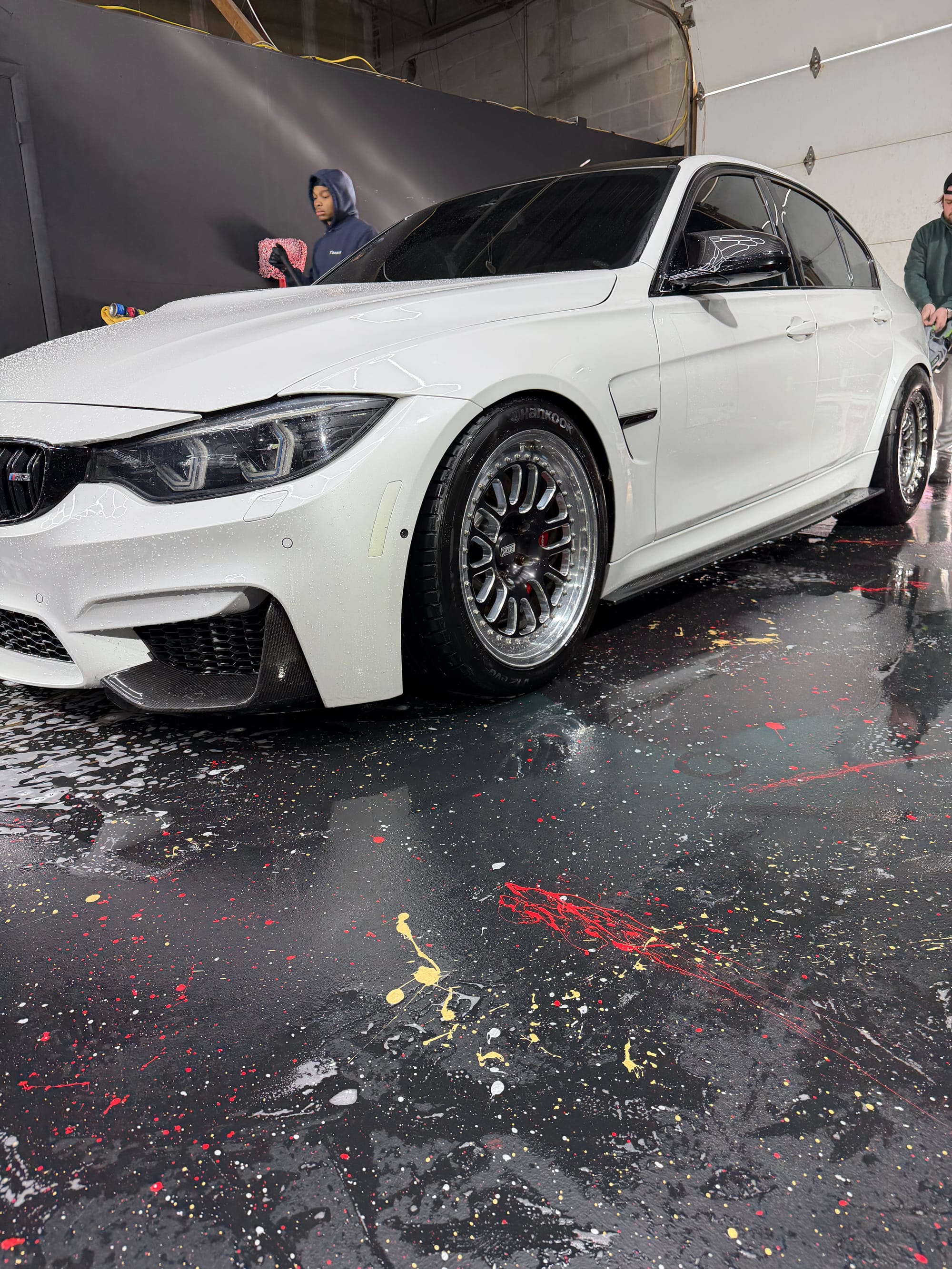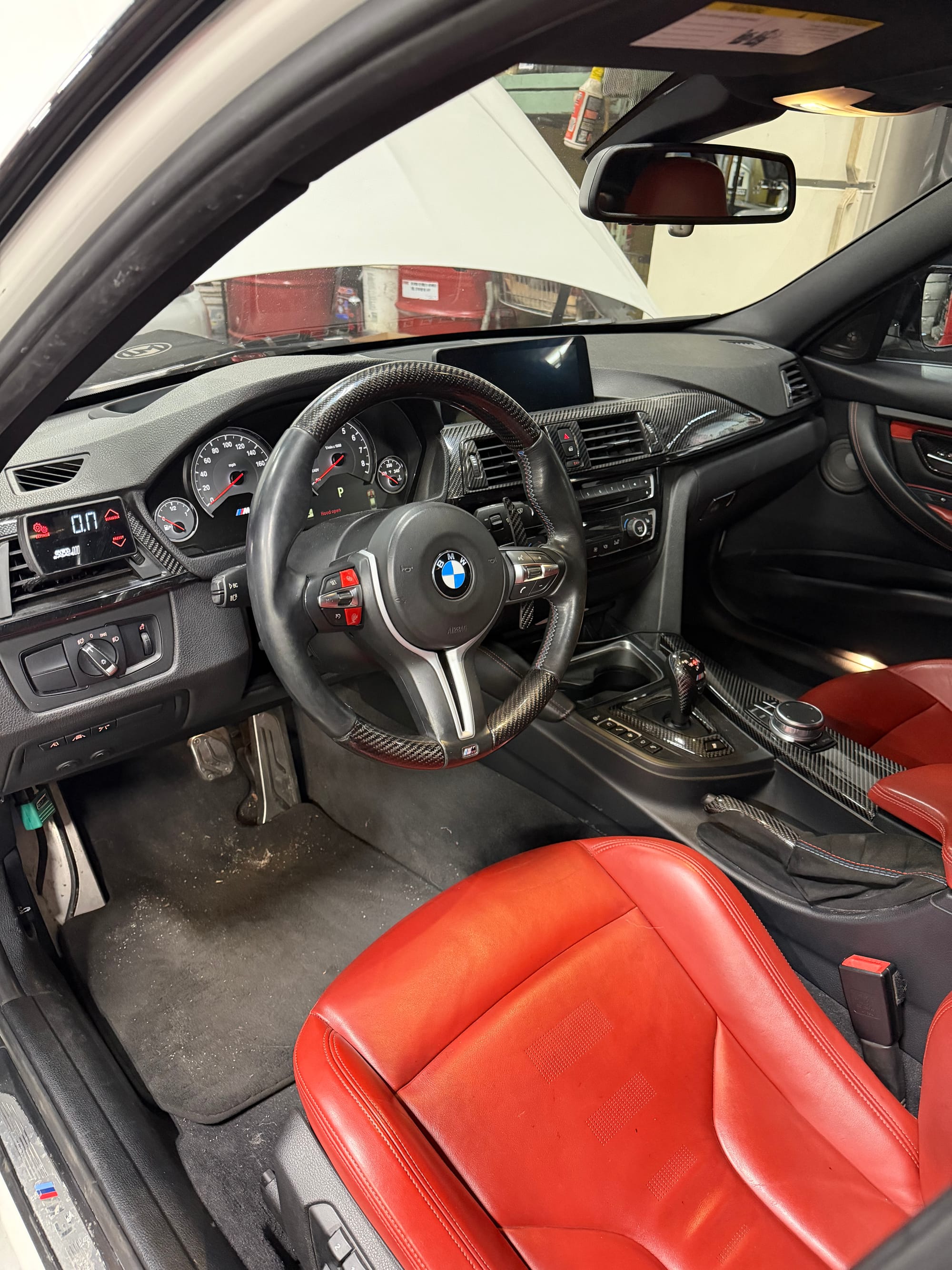 900whp 2015 BMW M3 in Mineral White with 79,000 (Chassis) miles for sale! This F80 M3 is powered by a BMP Performance built S55 that’s matched with a 4N Motorsport single turbo kit (Garrett G35-1050 turbo with the T51R mod), and linked to a 7-speed M dual-clutch transmission with DEKA Stage 3 DCT clutches. The engine build features several quality components, including a set of CP pistons with heavy duty wrist pins, Carrillo rods, Supertech valves/springs/retainers, ARP 625 head studs, and a CNC ported head. This setup makes use of a Fuel-It! Stage 4 fuel system with Injector Dynamics ID1050X port injectors, EU5 DI injectors, and a Motiv ReFlex controller. Additional upgrades include an AWE full exhaust system, FI interchiller, CSF heat exchanger, CSF DCT cooler, Wagner TMIC, Dinan sway bars, KW V3 coilovers, and more. Modifications were installed by Four B Performance, and tuning was handled via EcuTek by Bend Calibration, on pump gas the car generates 550whp, on ethanol there are 4 maps ranging from 775-900whp. The rear bumper is slightly shaved/cracked from rubbing the tire. There are currently 6500 miles on the build with invoices for the engine build and dyno time. Clean title!