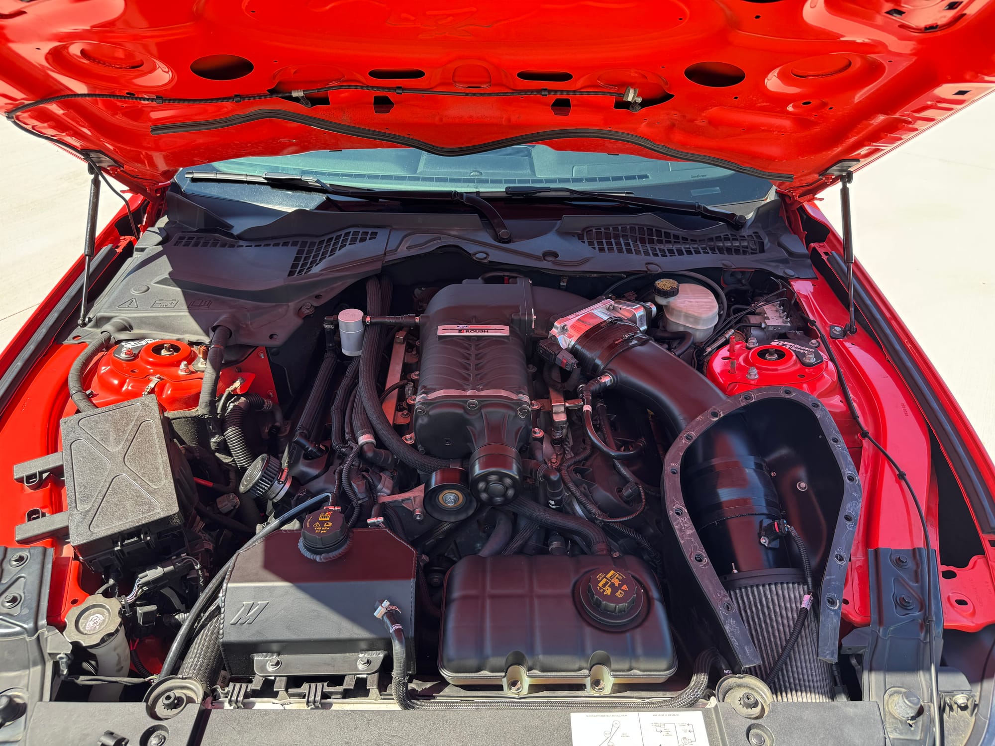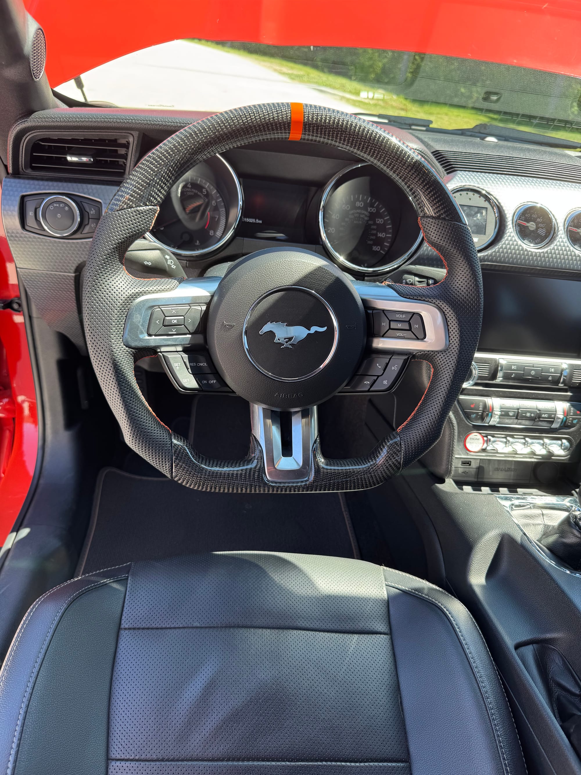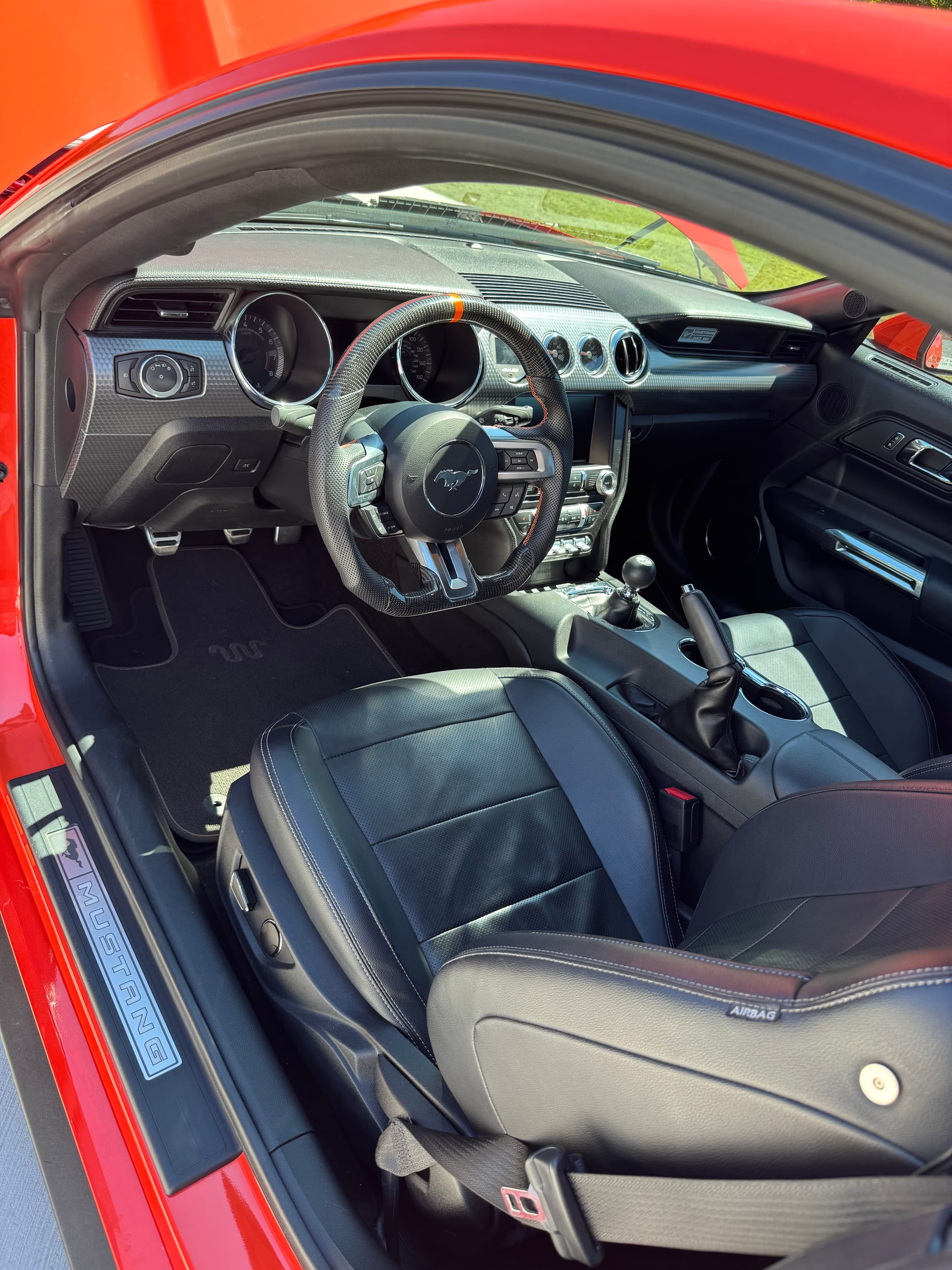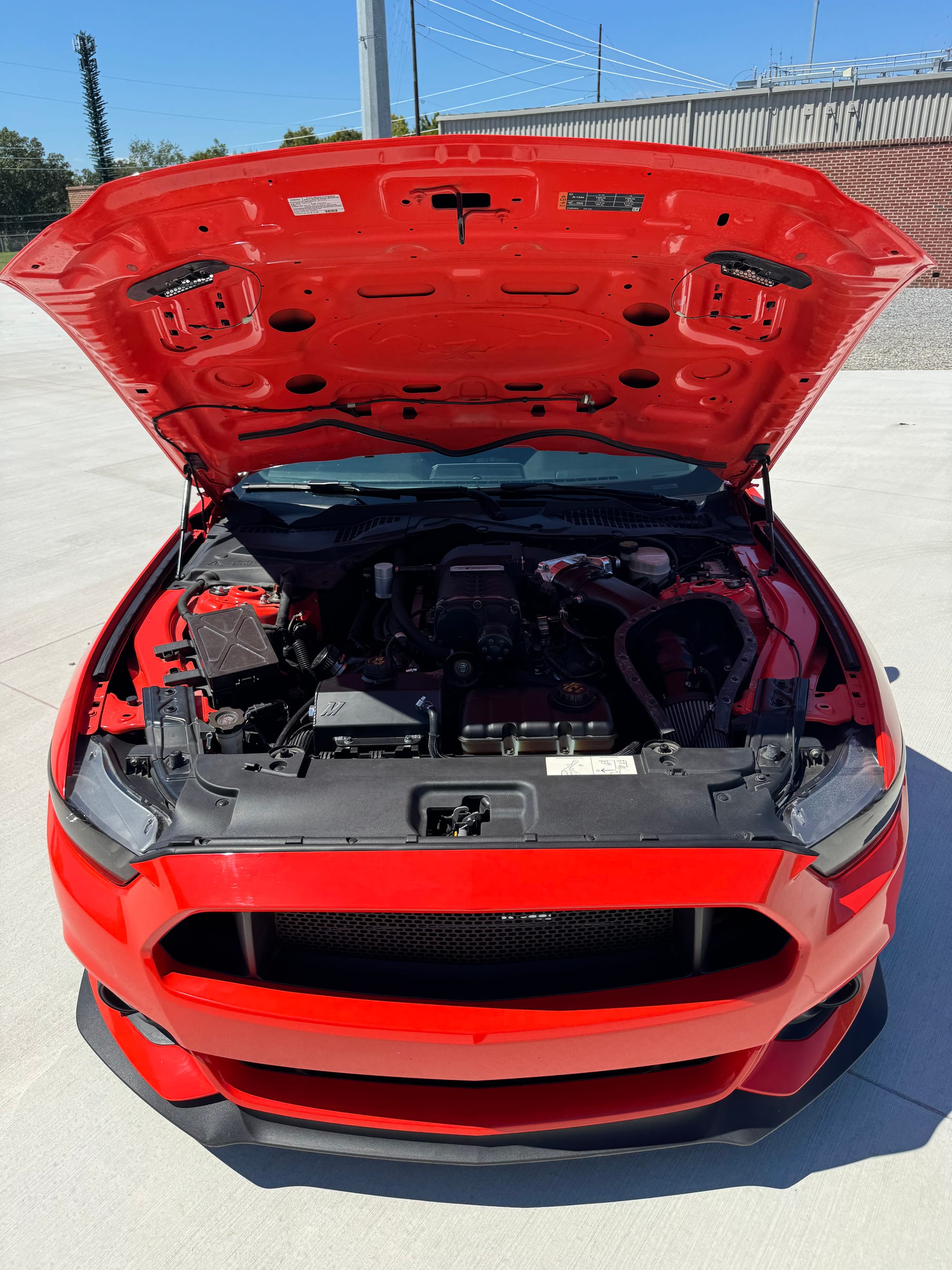 ~900whp 2015 Ford Mustang GT Premium in Competition Orange with 15,200 (Chassis) miles for sale! The heart of this Mustang consists of an RPG Racing Engines Level 2 built gen 2 Coyote (1100whp rated) that’s topped with a ROUSH 2.3L ported supercharger, and linked to a Getrag MT-82 6-speed manual transmission. The fuel system was upgraded to a Sai Li return style fuel system, which is followed by a set of Injector Dynamics ID1050X fuel injectors. As for the drivetrain, the MT-82 was paired with a McLeod RXT1200 twin disc clutch, which is trailed by a Driveshaft Shop carbon 1-piece driveshaft, and a set of upgraded half shafts. Additional key components include a pair of ARH 1-7/8” long tube headers, Corsa Xtreme cat-back, VMP triple pass heat exchanger, BMR Sway bars/vertical links/solid bushings, and more. The engine was installed by RPG Racing Engines, and all other modifications were installed at various shops under the previous owner with documentation for mostly everything. Tuning was completed via nGauge by Lund Racing, the car hasn’t seen a dyno, however the owner estimates it’s generating around 680whp with the 82mm pulley (biggest pulley) on 93 octane, and around 900whp on E85 with the 69mm pulley. This is a very clean car inside and out, the owner is only looking to part ways due to other investments he would like to capitalize on. Open to offers! There are currently only 5K miles on the build! Clean title!