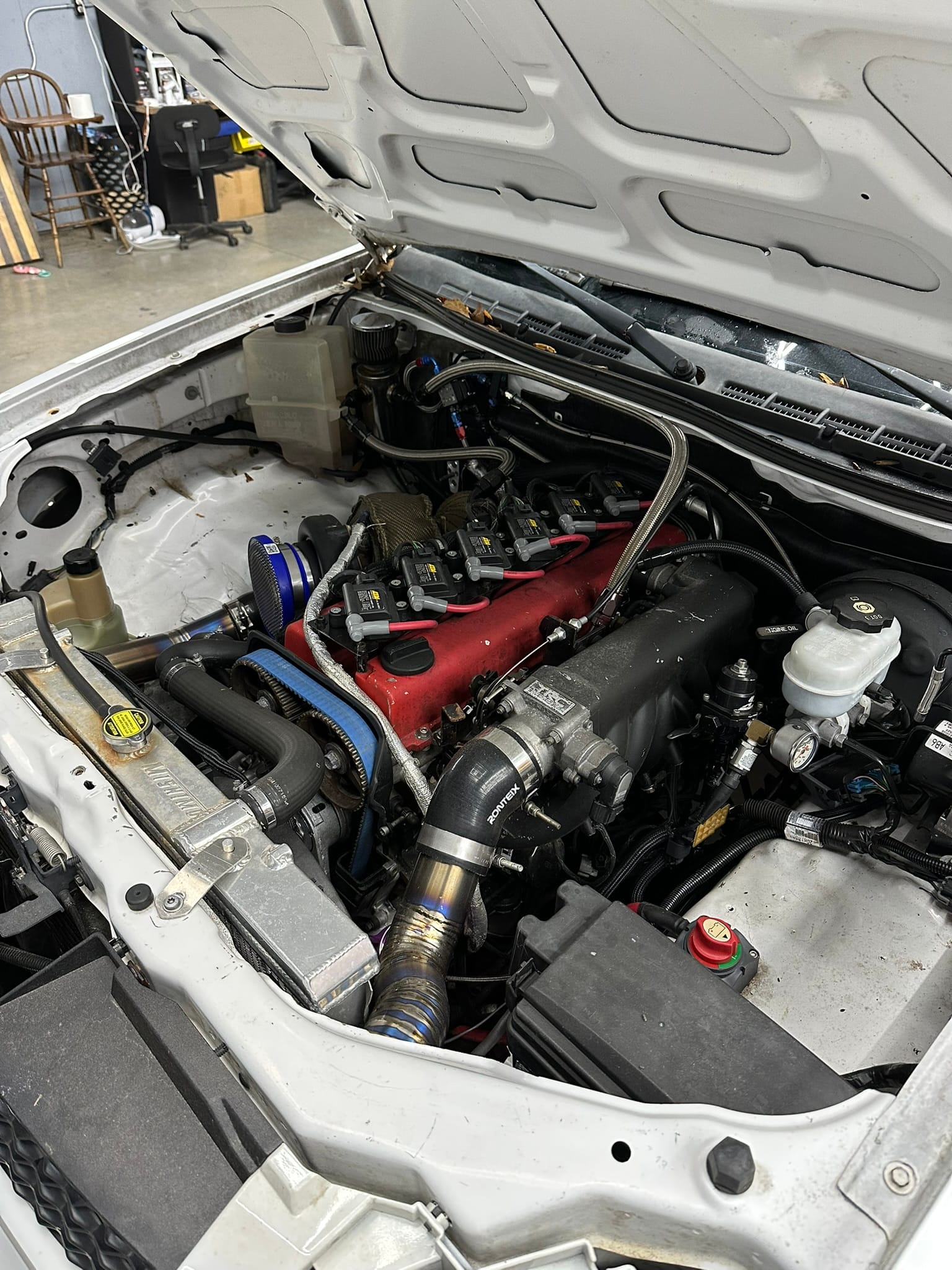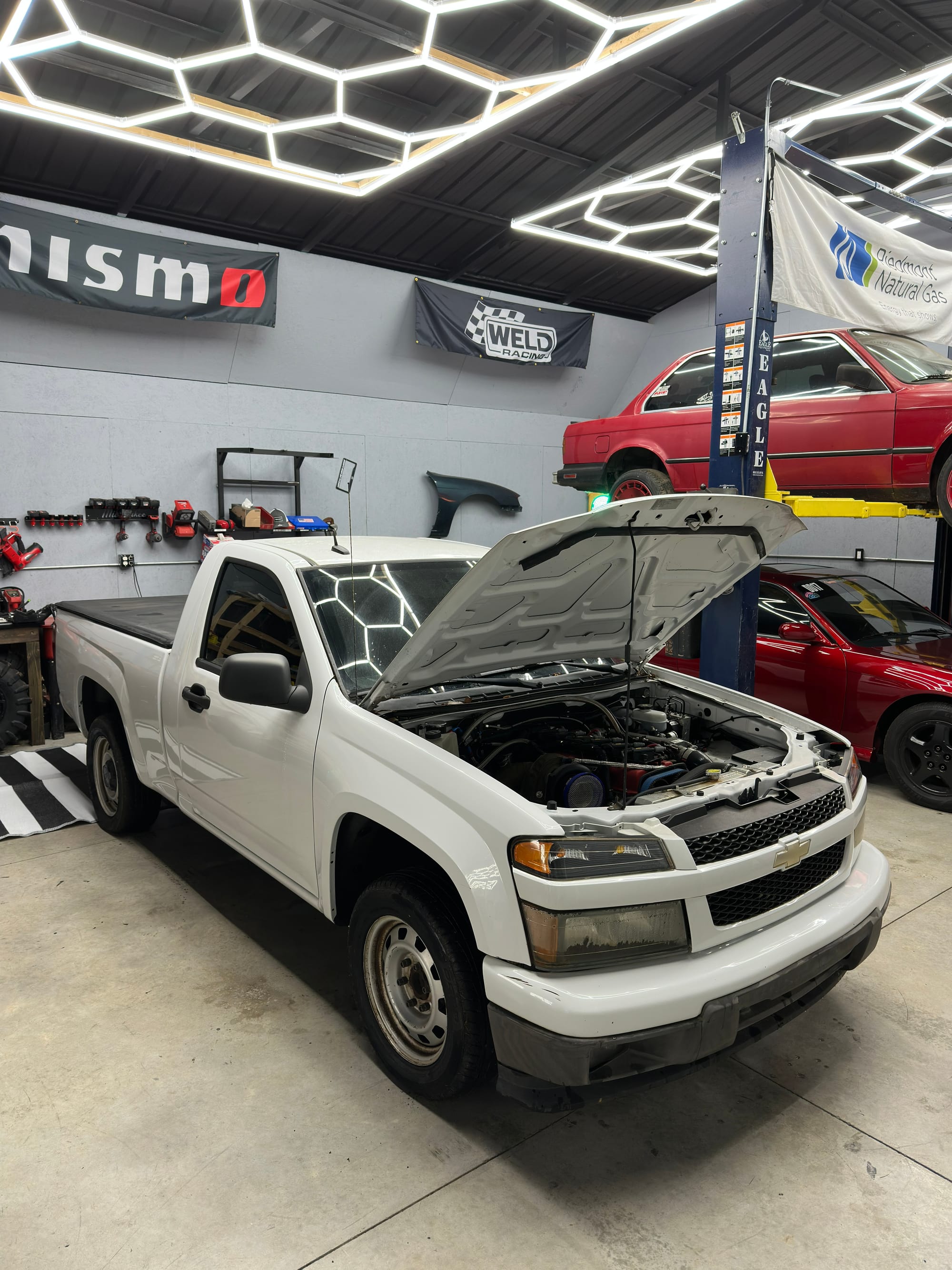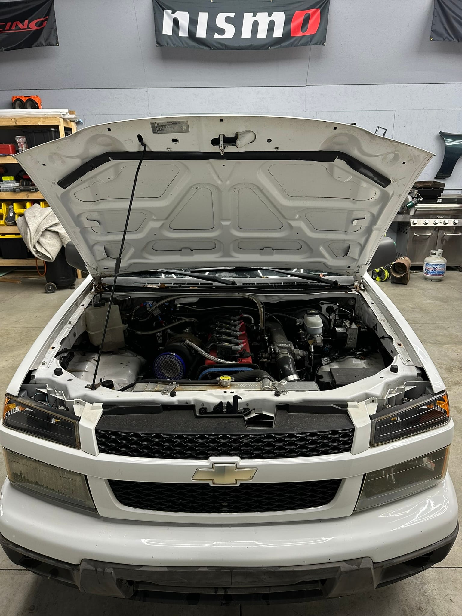 944whp 2010 Chevrolet Colorado WT in Summit White with 120,000 (Chassis) miles for sale! This Colorado is the ultimate sleeper with a relatively fresh setup that’s pushing some serious horsepower. The build revolves around a 1.5JZ hybrid combination, which consists of a Power Dynamix Stage 2 2JZ short block (1400hp rated) with a 1JZ non-VVTI head. The short block was configured with a set of Diamond Racing HD pistons, BC HD connecting rods with the HD .225 wrist pin upgrade, and upgraded billet main caps. The engine build also features a Driftmotion modified oil pump, BC 264 camshafts, BC titanium springs and retainers, and shimless buckets. Boost comes courtesy of a Precision gen 2 6466 turbo with the jet fighter mod, which provides a jet fighter spooling/whistling sound enhancement without sacrificing efficiency and power. As for the drivetrain, power is transferred to the rear through an R154 5-speed manual transmission that’s coupled with a Spec Stage 5 clutch, and trailed by a Driveshaft Shop 4” aluminum driveshaft. Additional modifications include 1GN1A coils, full 4” resonated exhaust with an electric actuated cutout for all the right noises, and more. The build was completed by the owner, and tuning was handled via MS3 Pro ECU by Hamiltuned (Felix Hamilton) with an output of 944whp/846wtq (strictly E85 as the lord intended). The truck still retains heat, power steering, fully functional radio, and that’s about it for commodities. It’s insanely raw and rowdy, there’s really no other description needed. There are currently less than 1K miles on the build! Invoices are available (short block was $9K alone)! Clean title!