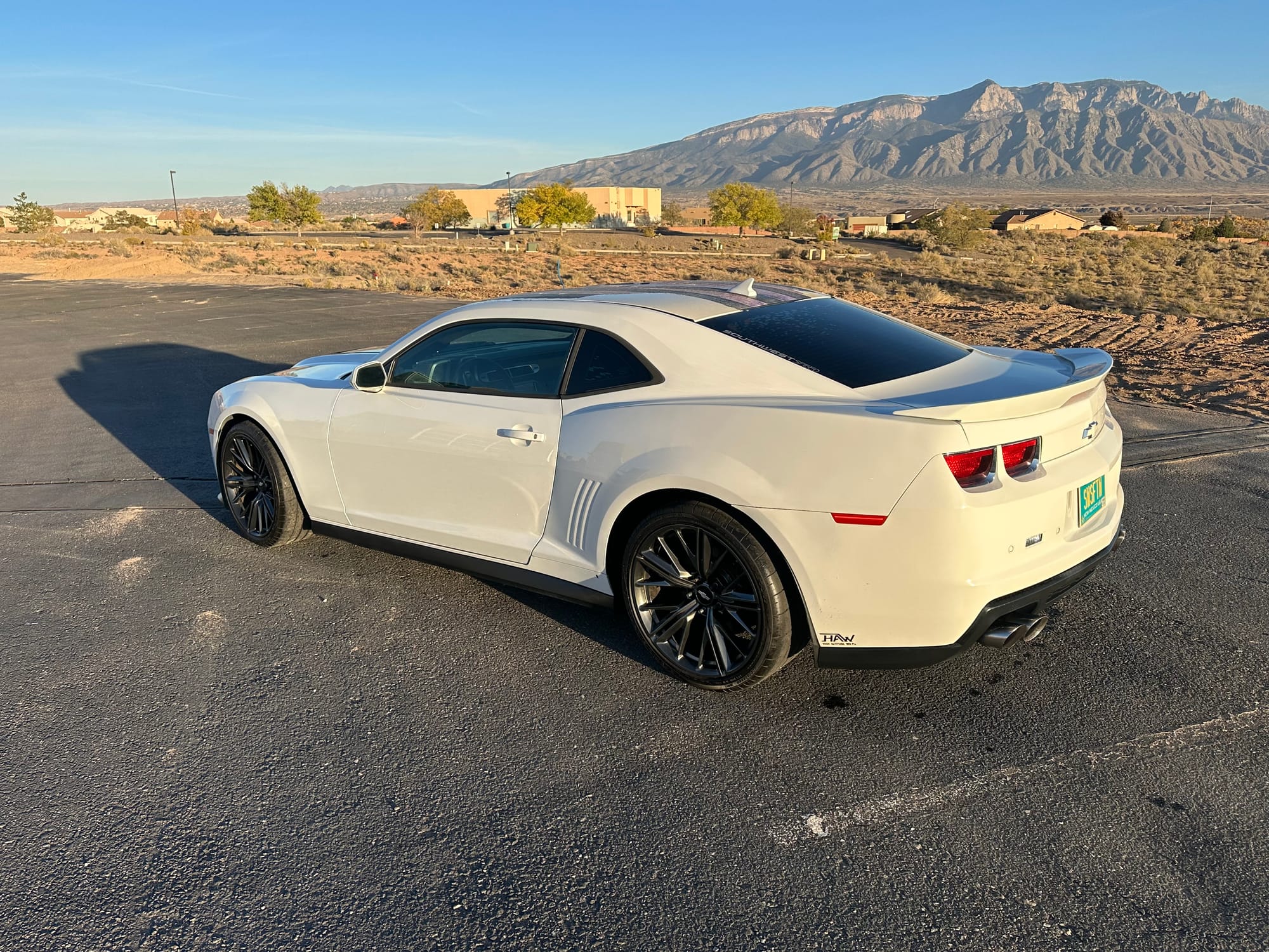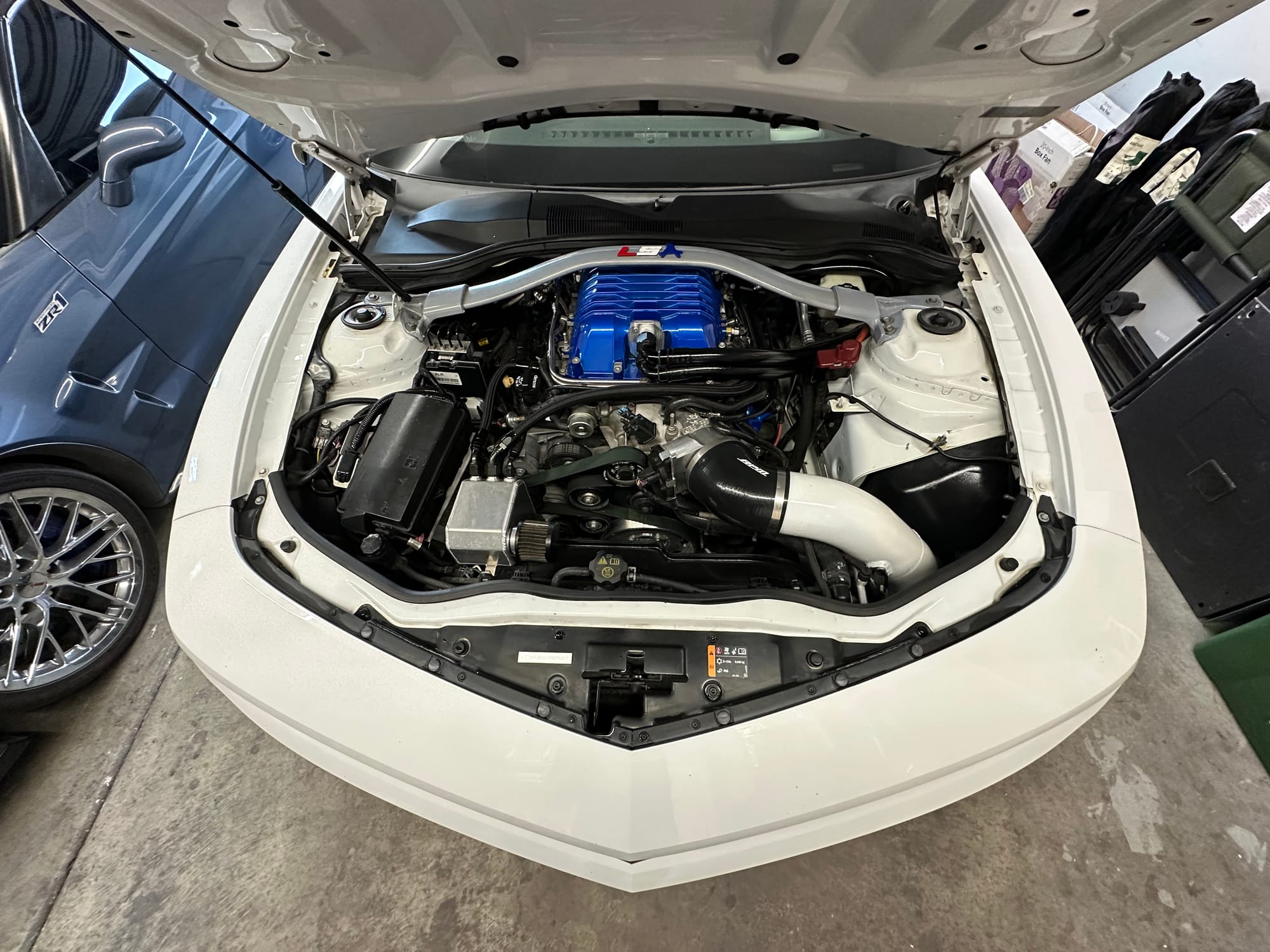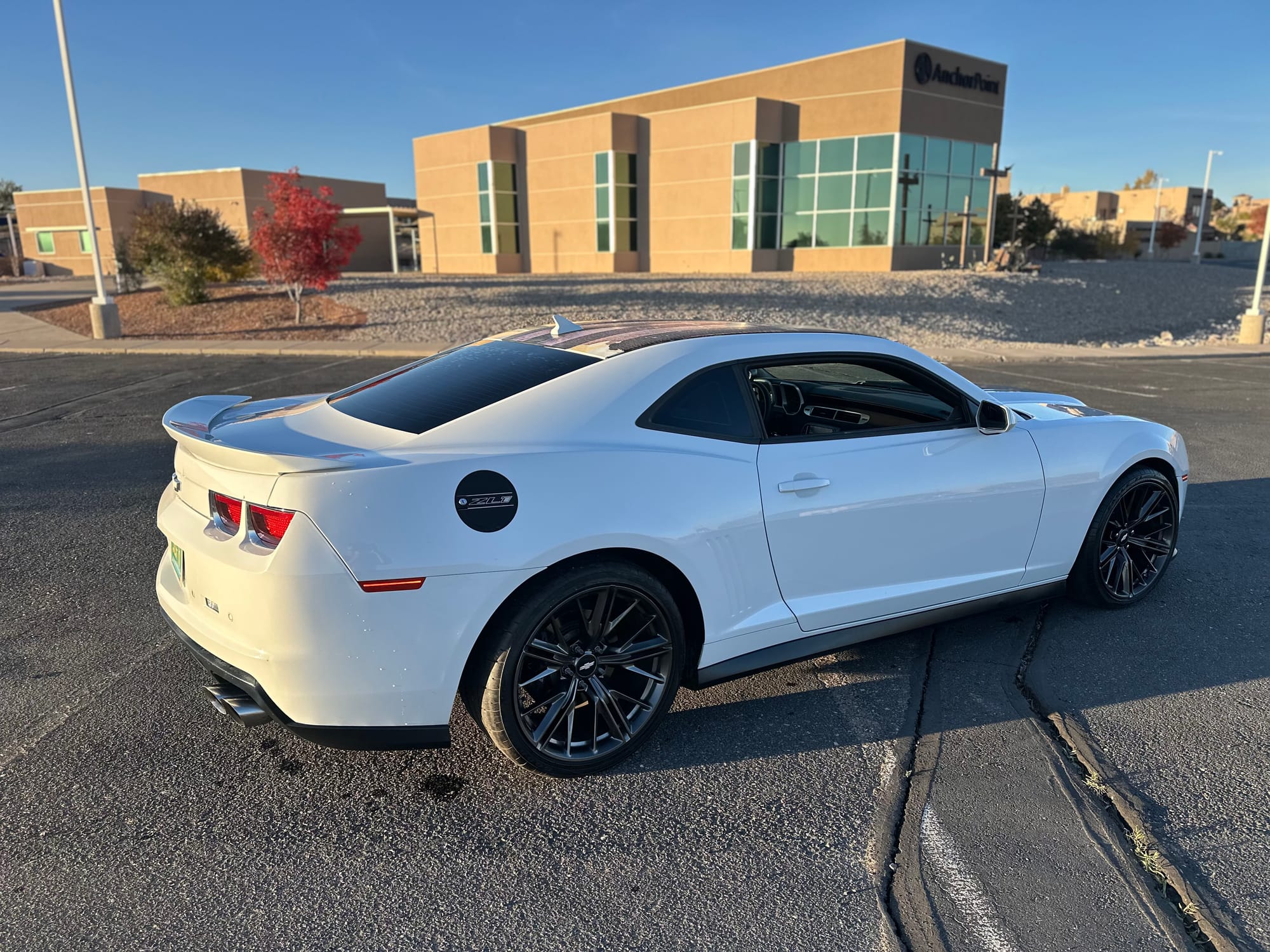 973whp 2013 Chevrolet Camaro ZL1 in Summit White with 81,000 (Chassis) miles for sale! This is a fast street car that’s just shy of 4-digit power, retaining its full interior (zero weight reduction), and all factory amenities (cold A/C, cruise control, navigation, Bluetooth, heated seats, etc.). Personally owned by the owner of Southwest Speed, this ZL1 was used for product development and testing over the past 9 years. The heart of the build revolves around an LY6 416ci that’s topped with a Kong 2650 supercharger, and linked to a 6L90E 6-speed automatic transmission. The engine build utilizes an LY6 block as its base, which now features a forged bottom end with Wiseco -20cc forged pistons, Lunati 6.125 forged h-beam rods, TSP 4” forged crankshaft, and King XPS bearings. The top end was fitted with a pair of PRC ported GM LSA heads, ARP hardware, and an SWS custom grind camshaft with all supporting valvetrain components. The fuel system was upgraded as well with the installation of an SWS auxiliary fuel system, FIC 1600cc fuel injectors, and a DSX flex fuel kit. Additional key components include an SWS reinforced brick, Synergy custom trunk tank, EMP500 pump, BMR rear suspension drag kit, Strange coilovers, Carlyle 15” conversion, WELD Racing drag pack, RPM 6-point roll cage, and more. Tuning was completed by Southwest Speed as well with an output of 973whp/1022wtq on 16Ibs of boost. There are currently no track times as the car hasn’t been to the track with this configuration yet. Only 1,420 miles on the build with documentation for all of the work performed by the shop. Clean title, no accidents!