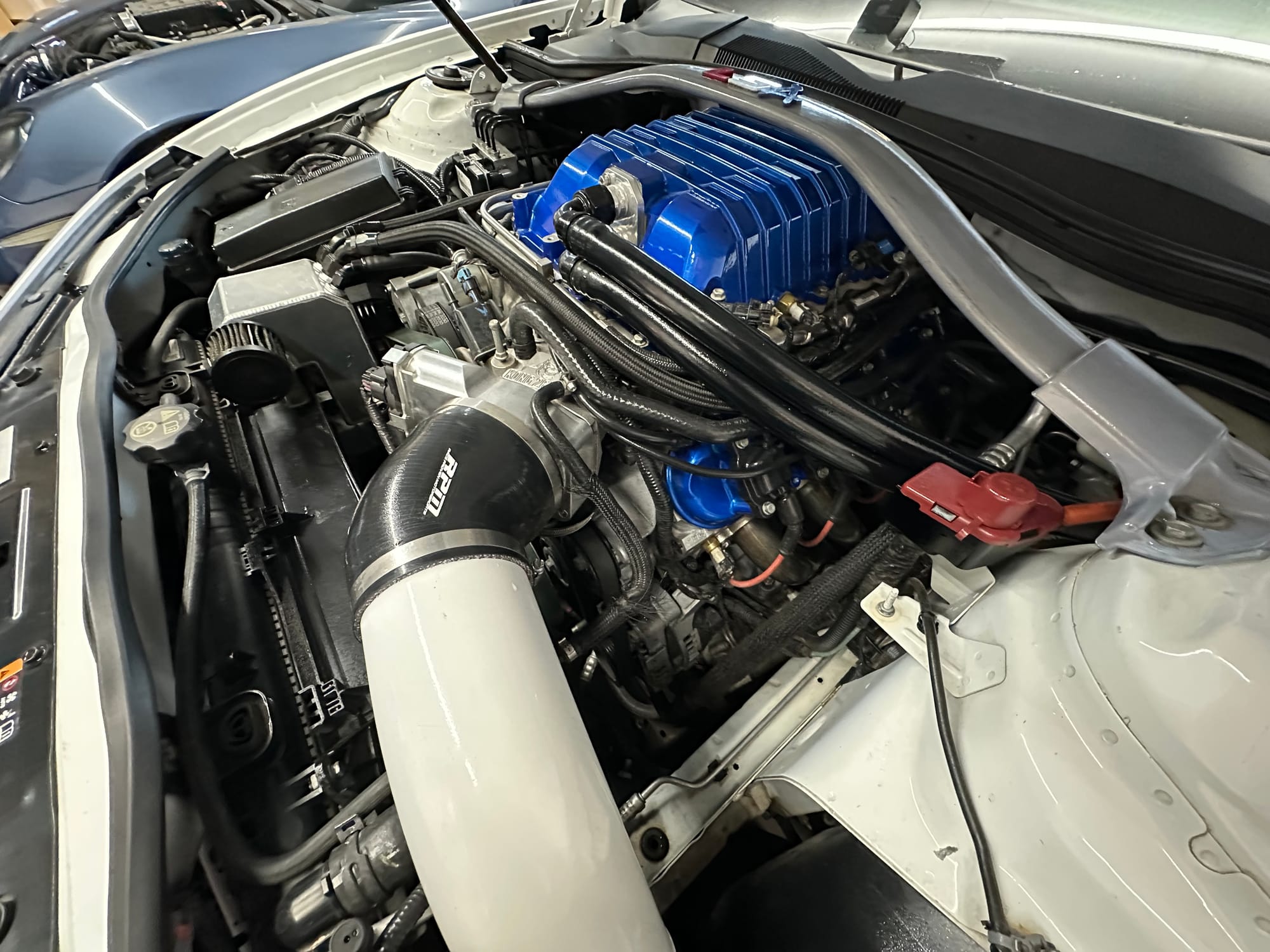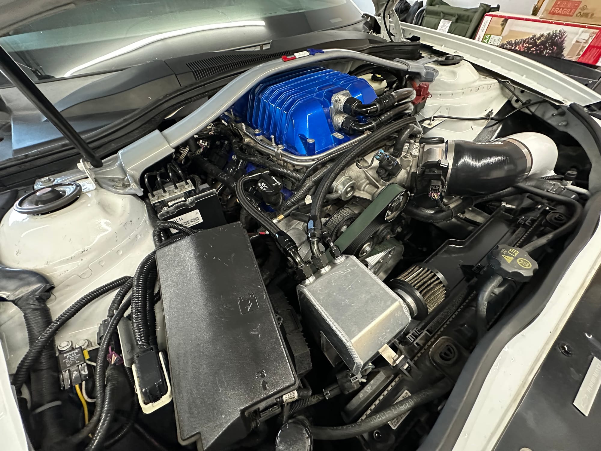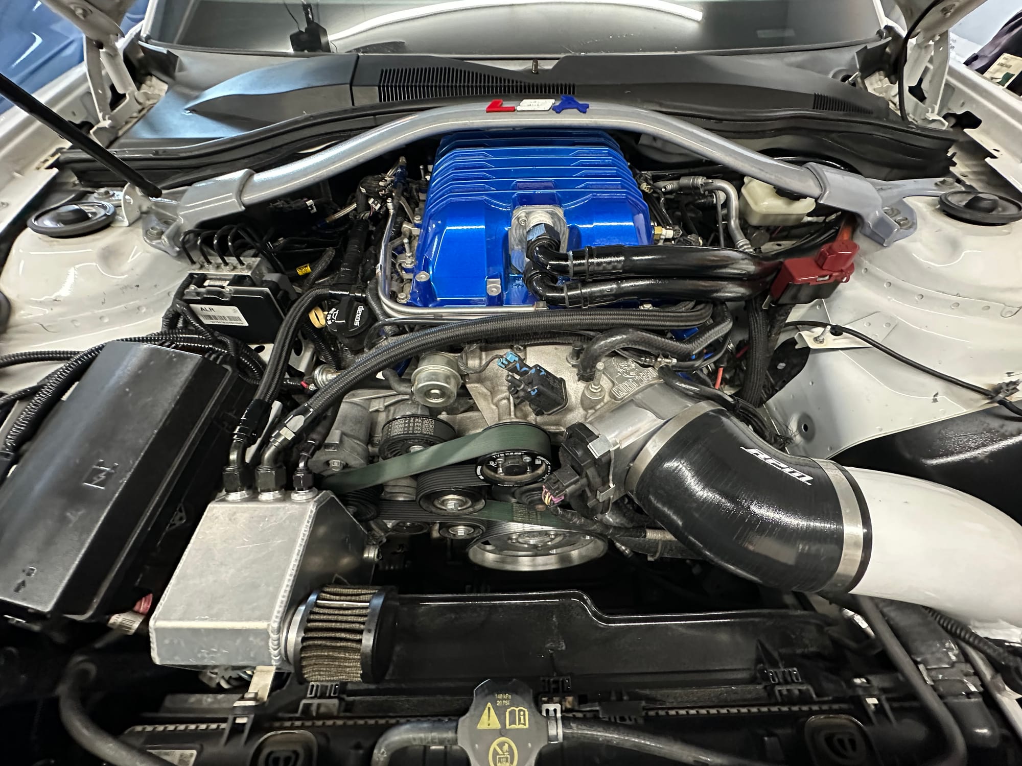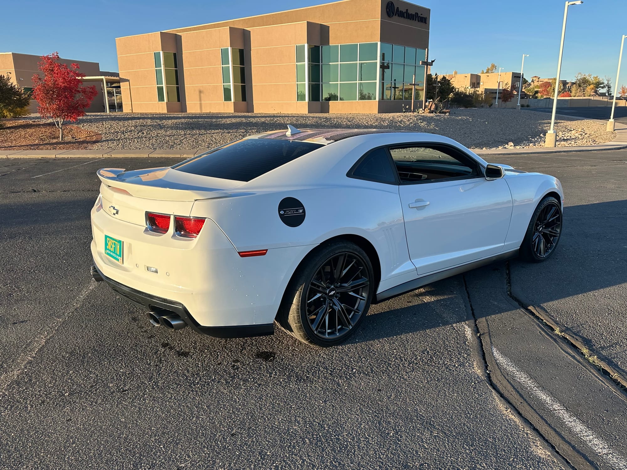 973whp 2013 Chevrolet Camaro ZL1 in Summit White with 81,000 (Chassis) miles for sale! This is a fast street car that’s just shy of 4-digit power, retaining its full interior (zero weight reduction), and all factory amenities (cold A/C, cruise control, navigation, Bluetooth, heated seats, etc.). Personally owned by the owner of Southwest Speed, this ZL1 was used for product development and testing over the past 9 years. The heart of the build revolves around an LY6 416ci that’s topped with a Kong 2650 supercharger, and linked to a 6L90E 6-speed automatic transmission. The engine build utilizes an LY6 block as its base, which now features a forged bottom end with Wiseco -20cc forged pistons, Lunati 6.125 forged h-beam rods, TSP 4” forged crankshaft, and King XPS bearings. The top end was fitted with a pair of PRC ported GM LSA heads, ARP hardware, and an SWS custom grind camshaft with all supporting valvetrain components. The fuel system was upgraded as well with the installation of an SWS auxiliary fuel system, FIC 1600cc fuel injectors, and a DSX flex fuel kit. Additional key components include an SWS reinforced brick, Synergy custom trunk tank, EMP500 pump, BMR rear suspension drag kit, Strange coilovers, Carlyle 15” conversion, WELD Racing drag pack, RPM 6-point roll cage, and more. Tuning was completed by Southwest Speed as well with an output of 973whp/1022wtq on 16Ibs of boost. There are currently no track times as the car hasn’t been to the track with this configuration yet. Only 1,420 miles on the build with documentation for all of the work performed by the shop. Clean title, no accidents!