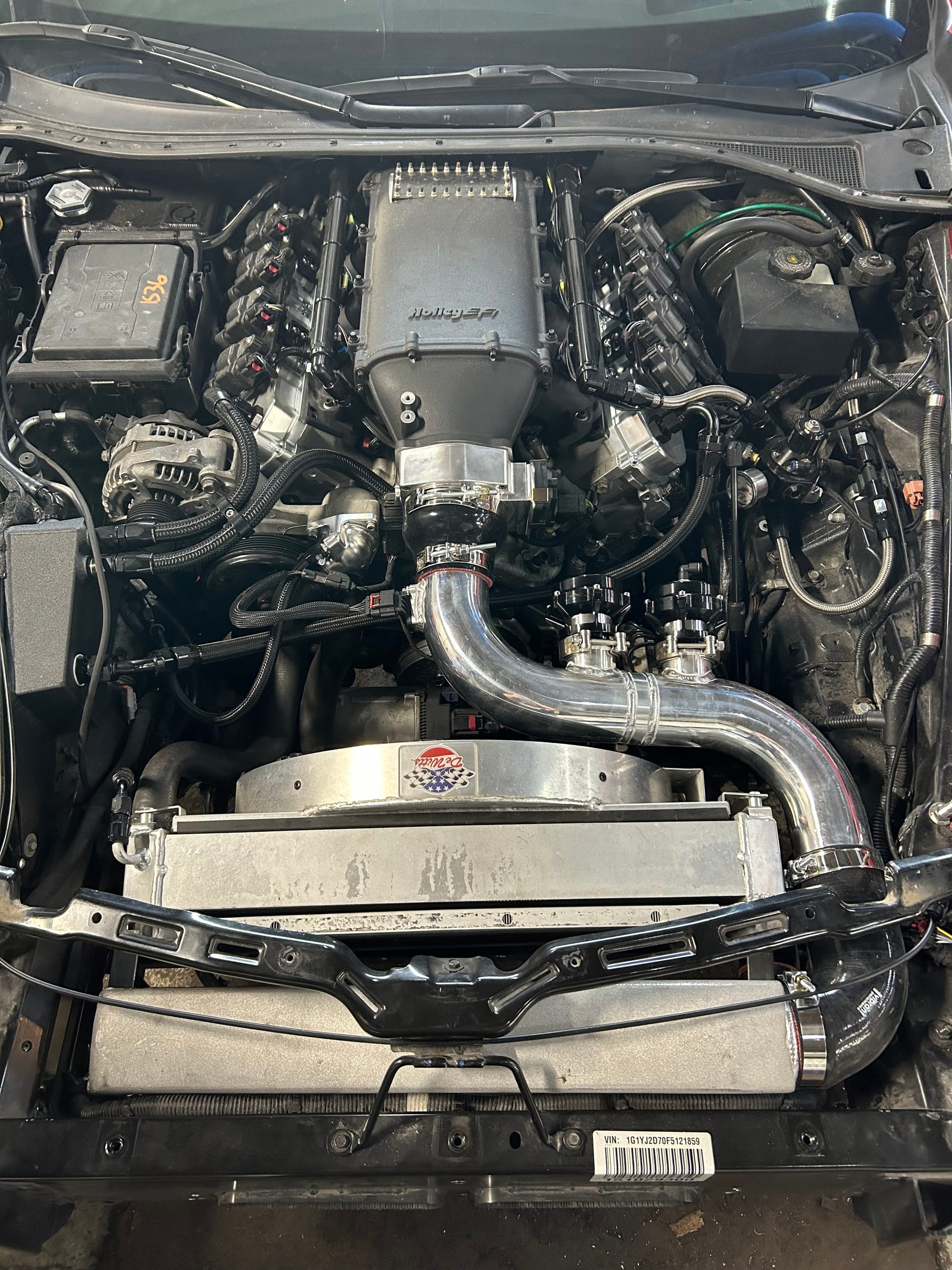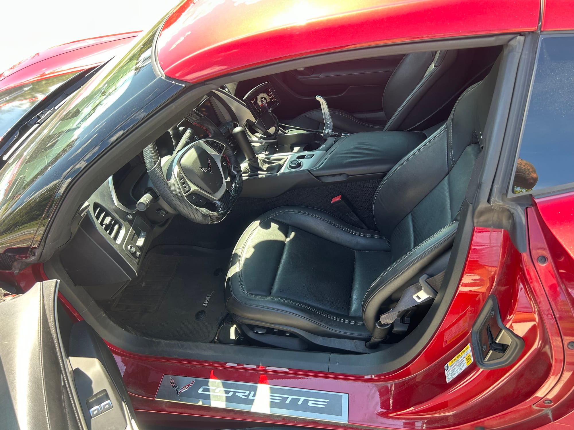 1000+whp 2015 Chevrolet Corvette Stingray Z51 in Crystal Red with 32,065 (Chassis) miles for sale! This twin turbo C7 features a solid build with several top-quality components, all of which were installed by the owner. Power is derived from a Late Model Engines (LME) 416ci stroker that’s topped with a pair of LME CID heads, and a Holley EFI intake manifold. This beast of an engine was armed with a custom twin turbo kit, which utilizes a pair of Comp 68/71 1.06 turbos, Turbosmart Hypergate 45mm wastegates, and the turbo manifolds were wrapped with HeaderShield. The fuel system was upgraded to a Fore Innovations in-tank triple pump fuel system. Power generated from the aforementioned setup is sent to an RPM built differential through an RPM built TR-6070 7-speed manual transmission that’s matched with a Monster triple disc clutch. Additional key components include a DeWitts fan/radiator, Viking Crusader 3-way adjustable coilovers all around, and a 15” conversion with a WELD Racing drag pack to assist with traction. Tuning was completed via MoTeC standalone ECU by Steve Rankins, the car was street tuned, so there are currently no dyno numbers, however it should be pushing over 1000whp with this setup. There are currently only 8K miles on the modifications!