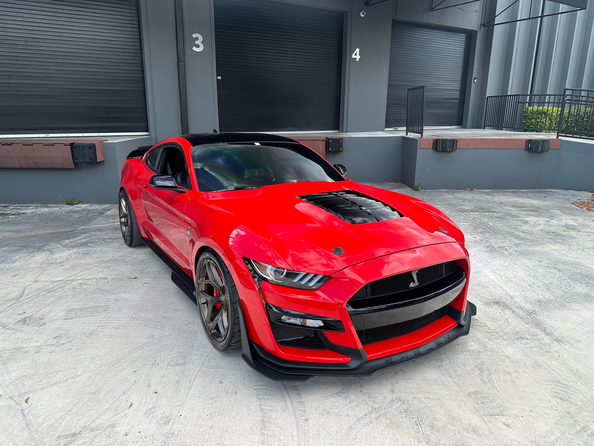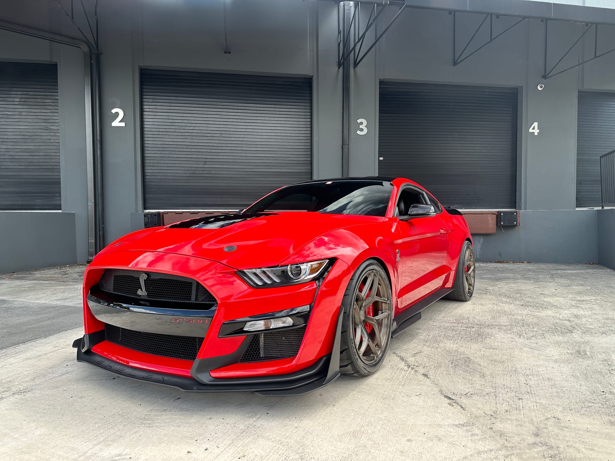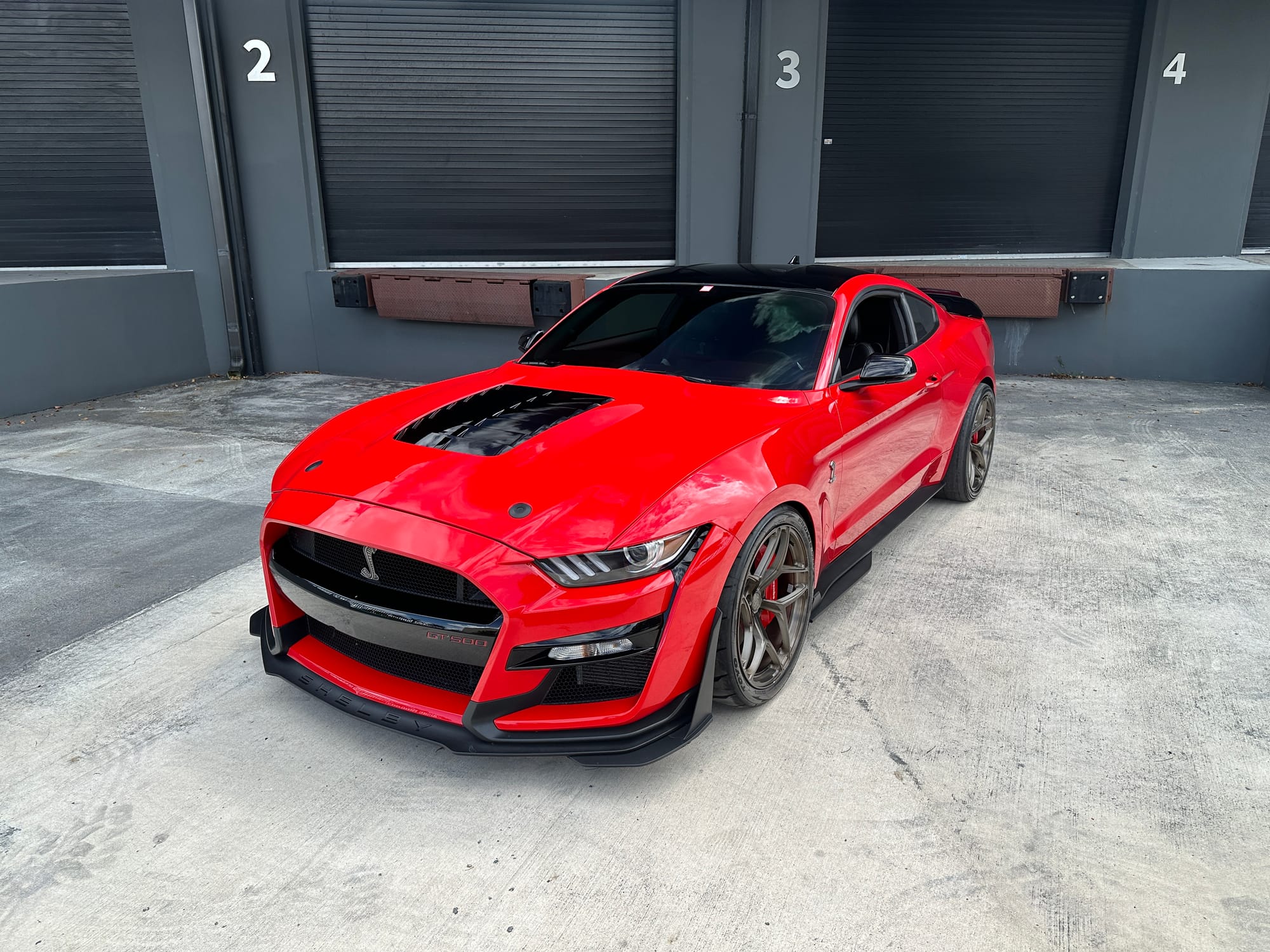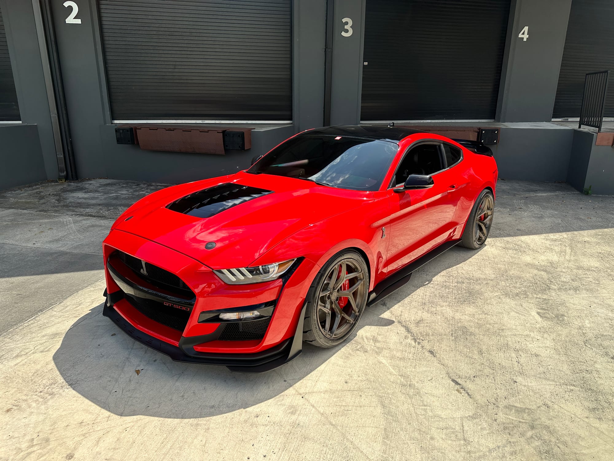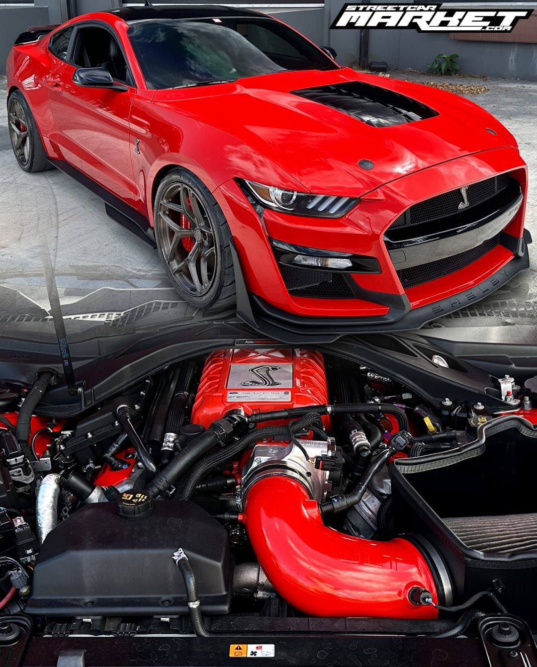 1000hp 2020 Ford Mustang Shelby GT500 in Race Red with 15,200 miles for sale! This incredibly clean GT500 was modified by The Performance Lab in Detroit, armed with a small quantity of quality modifications, resulting in a strikingly fast street car. Power stems from a 5.2L Predator V8 with a Kong race ported supercharger, and delivered to the rear through a Tremec TR-9070 7-speed dual-clutch transmission. The supercharger system also features a 2.3” Griptec pulley along with a Kong throttle body, and JLT air intake. Additional performance upgrades include a JLT catch can, Injector Dynamics ID1300 fuel injectors, and Whipple auxiliary intercooler pump. Modifications were installed by The Performance Lab in Detroit, and tuning was handled by Lund Racing on E85. The car is sitting on a complete set of nicely spec’d 20” Signature SV107 wheels finished in Brushed Bronze, and wrapped in brand new Toyo Proxes R888R tires to assist with traction. The Race Red paint shows incredibly well, and Paint Protection Film (PPF) was applied to the front end. Clean title!