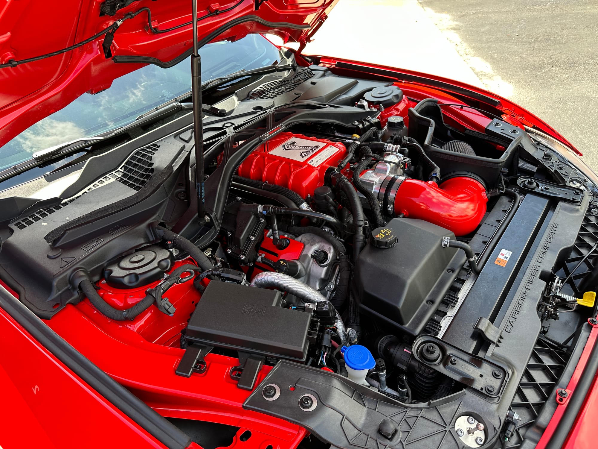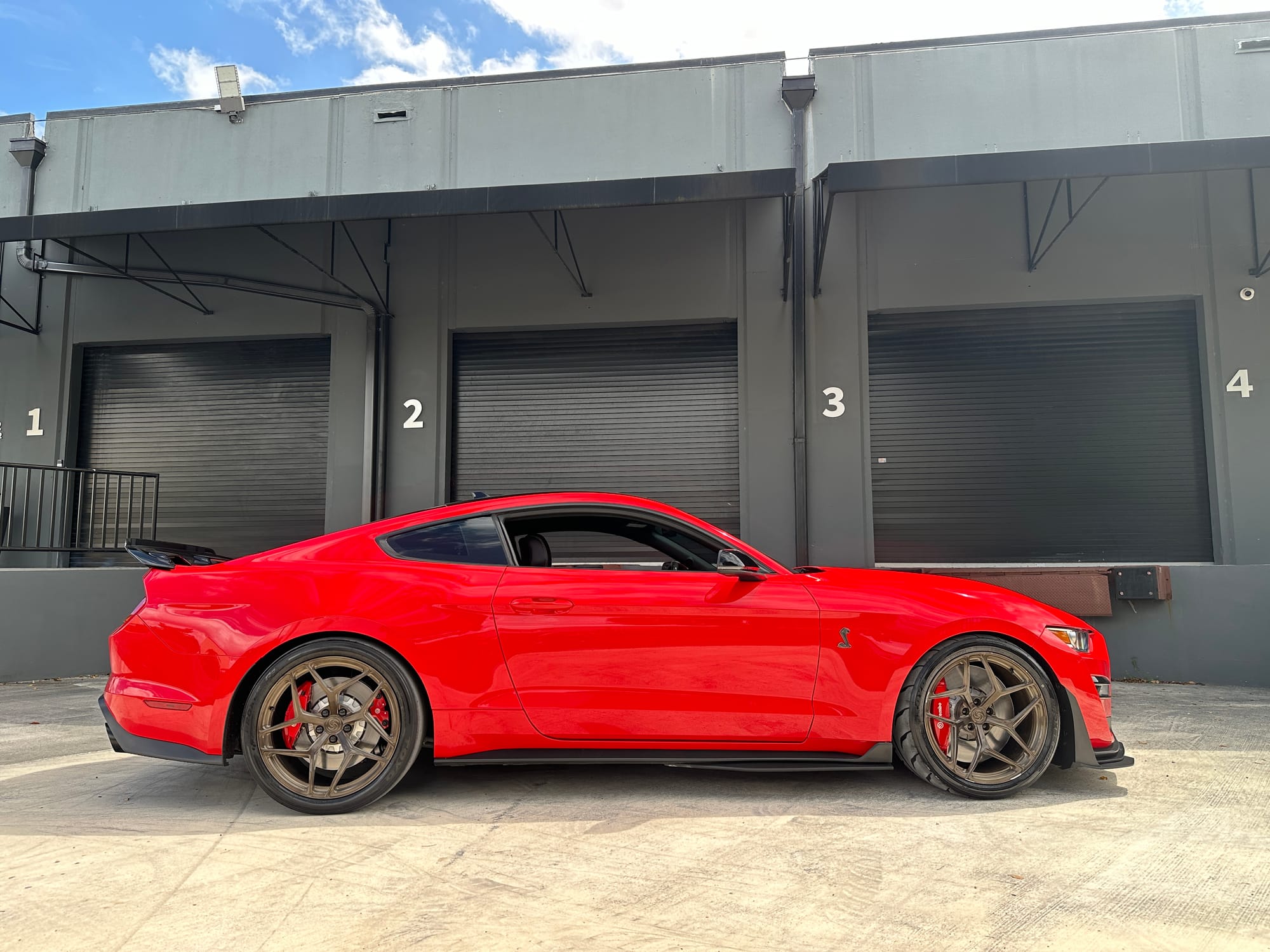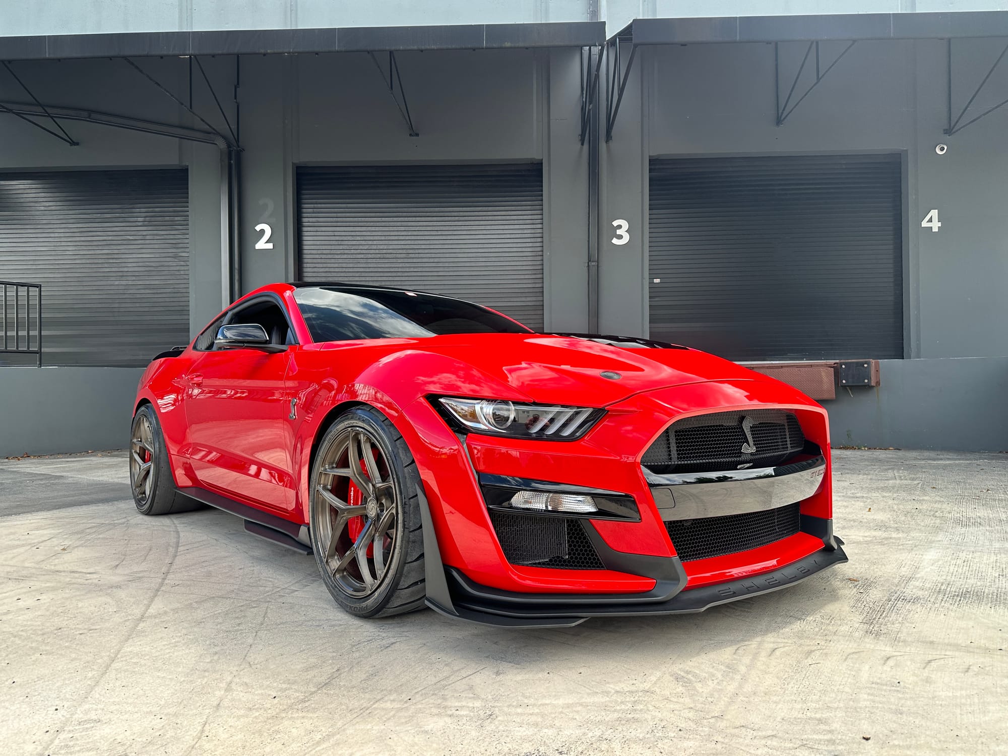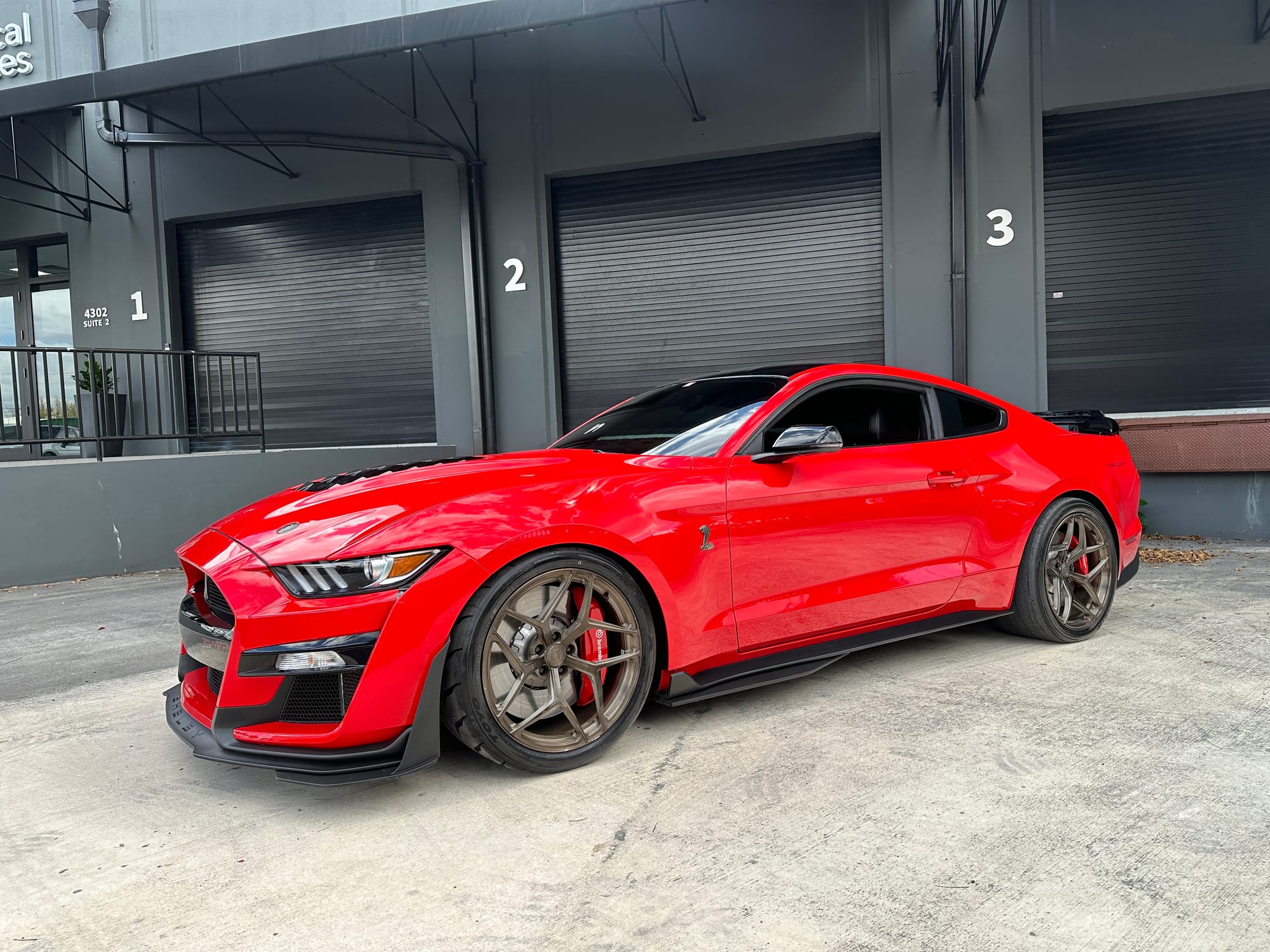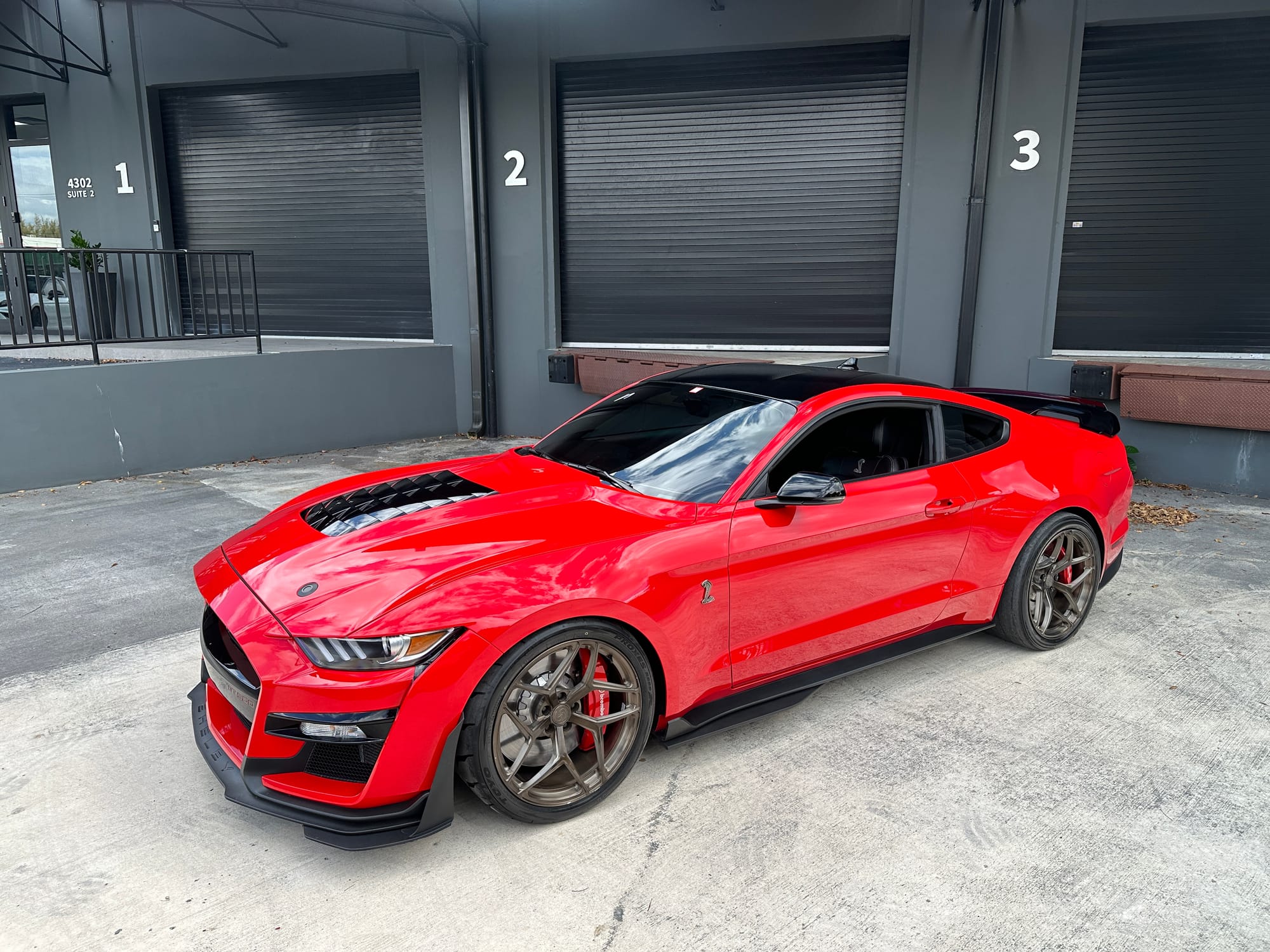 1000hp 2020 Ford Mustang Shelby GT500 in Race Red with 15,200 miles for sale! This incredibly clean GT500 was modified by The Performance Lab in Detroit, armed with a small quantity of quality modifications, resulting in a strikingly fast street car. Power stems from a 5.2L Predator V8 with a Kong race ported supercharger, and delivered to the rear through a Tremec TR-9070 7-speed dual-clutch transmission. The supercharger system also features a 2.3” Griptec pulley along with a Kong throttle body, and JLT air intake. Additional performance upgrades include a JLT catch can, Injector Dynamics ID1300 fuel injectors, and Whipple auxiliary intercooler pump. Modifications were installed by The Performance Lab in Detroit, and tuning was handled by Lund Racing on E85. The car is sitting on a complete set of nicely spec’d 20” Signature SV107 wheels finished in Brushed Bronze, and wrapped in brand new Toyo Proxes R888R tires to assist with traction. The Race Red paint shows incredibly well, and Paint Protection Film (PPF) was applied to the front end. Clean title!