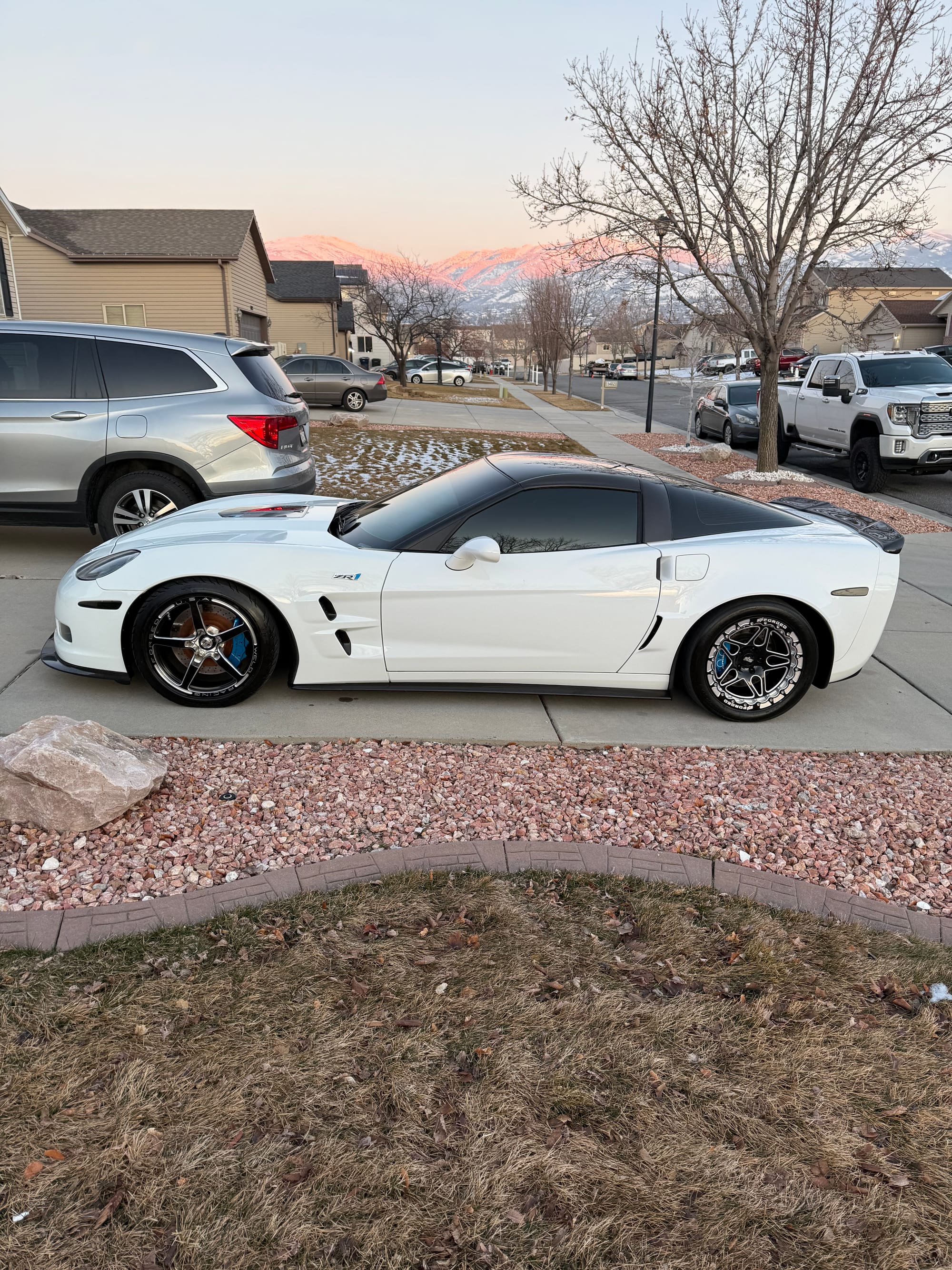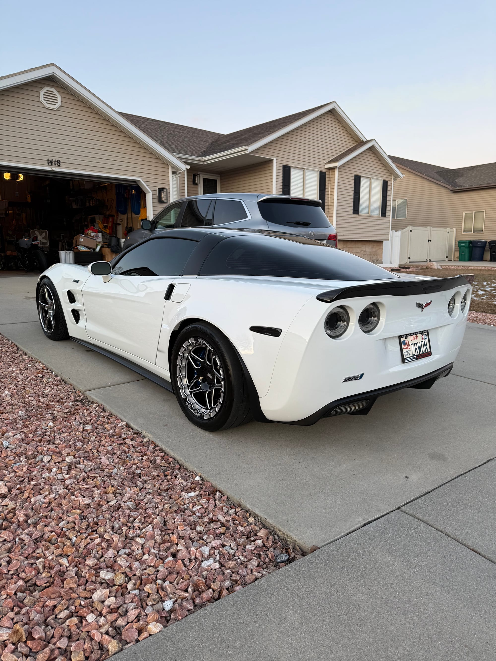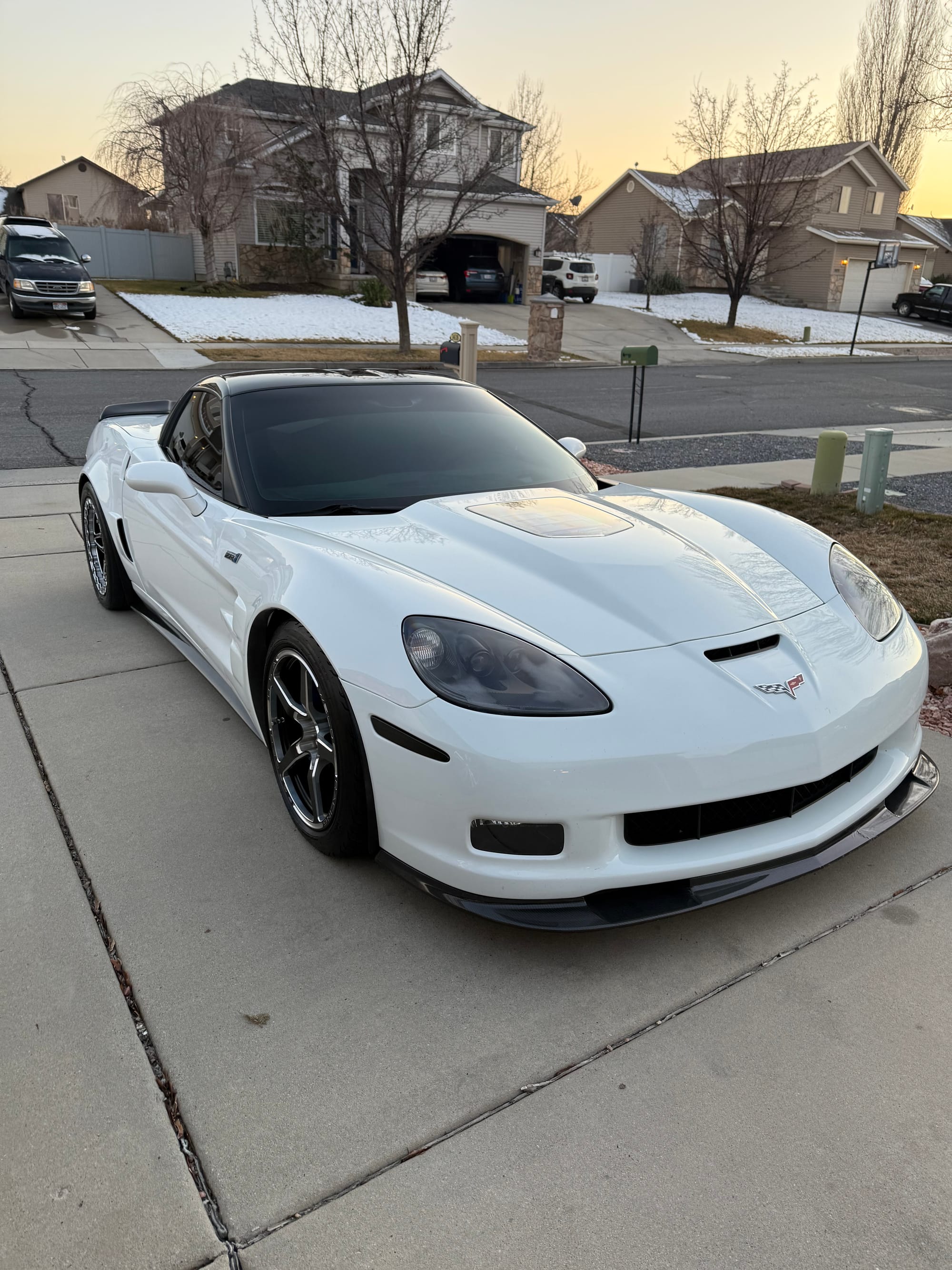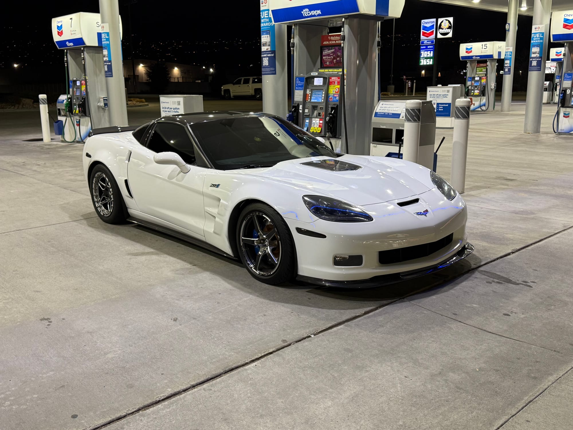 1052whp 2010 Chevrolet Corvette ZR1 3ZR in Arctic White with 25,250 (Chassis) miles for sale! This incredible C6 ZR1 features brutally raw, beastly power as a result of its well spec’d build, which revolves around an aluminum/sleeved 428ci stroker with a Kong Stage X ported 2300 supercharger. The engine was recently refreshed with a full set of Darton sleeves, re-polished crankshaft, new BTR V2 rocker arms, new main bearings, and a new Katech oil pump. This beast of a setup is fueled by a Fore Innovations triple pump fuel system along with a set of brand new FIC 1650 fuel injectors. Power is transferred to the rear through a newer GM crate transmission, which was matched with a Monster triple disc clutch, and trailed by a brand new RPM Stage 4 differential. Further equipped with a custom fabricated intake, Southways 108mm throttle body, ice tank, 2” American Racing Headers, Motion Control 3-way adjustable coilovers, full drag setup, and more. A majority of the modifications were installed by AAS, and tuning was completed by Premier Performance with an output of 1052whp. The stunning factory Arctic White paint shows incredibly well as the exterior recently received a full paint correction. There are currently only 1K miles on the refreshed engine (invoice available), 4K miles on the supercharger, 2K miles on the differential, and roughly 10K miles on the rest of the build! Clean title!