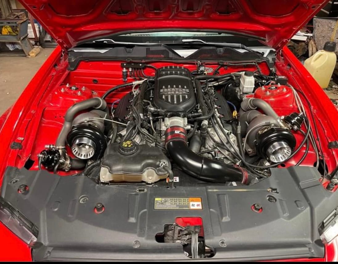 1100whp 2012 Ford Mustang GT Premium in Race Red with 89,000 (Chassis) miles for sale! This is a proven 8-second street car that retains several factory amenities (heat/AC/radio/etc), and cleans up incredibly well. The heart of the build consists of a built gen-I Coyote that’s matched with On3 twin 67mm turbos. The engine build uses a stock gen-I block as its base with K1 h-beam rods and JE pistons, followed by Boss cams/tensioners, gen-II heads, PAC 1234X springs, and 2020+ GT500 valve covers. Fuel demands are met with the installation of a Fore Innovations triple pump system with 285TI pumps, and Injector Dynamics 1700cc fuel injectors. Mated to the engine is a 6R80 6-speed automatic transmission with PBH clutches/intermediate shaft along with a Circle D converter 258mm 3B, 6R stager, and a bump box/transbrake. Additional build highlights include a built rear end with 3.15’s, welded axle tubes/31 spline axles, Aerospace brakes all around, 6” intercooler, exhaust dumped under the car, Snow Performance methanol kit, and more. Modifications were installed by PMP Performance, and tuning was handled by Lund Racing with an output of 1100whp. As for track times, this twin turbo Mustang ran a 5.35 @ 131mph in the 1/8-mile, and an 8.34 @ 163mph in the 1/4-mile. The car does have a few rock chips/handful of dings, however it’s nothing major. The dash ABS light is on due to the brakes, and the airbag light is on because of the seats. Only 10K miles on the build! Clean title!