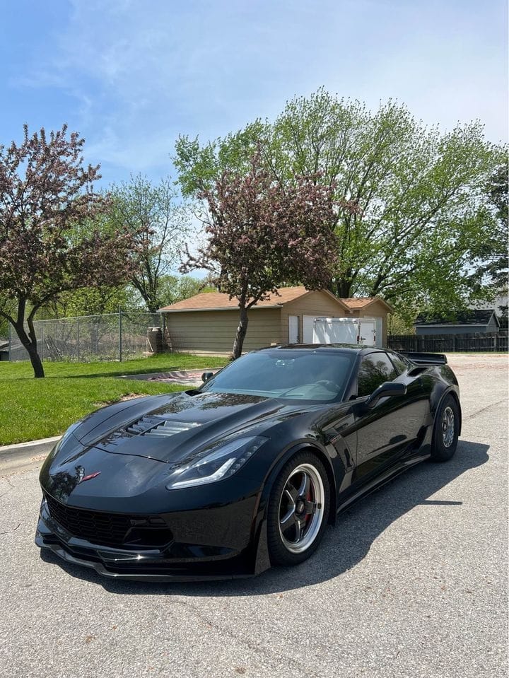 1140whp 2016 Chevrolet Corvette Z06 2LZ in Black with 17,000 (Chassis) miles for sale! This menacing C7Z generated a hefty 1140whp/1080wtq on a Dynojet, coming from a built L8T that was bored/stroked to 427ci, and topped with a Magnuson 2650 supercharger that’s currently running 19Ibs. A few engine build highlights include a Callies crank, Callies rods, Diamond pistons, Katech oil pump, Johnson link bar lifters, LME ported heads, and much more. The fuel system consists of a big bore high pressure fuel pump (HPFP) along with a set of XDI 65% fuel injectors, and DSX low side fuel pump. Power is delivered to the rear through a Tremec TR-6070 7-speed manual transmission that’s paired with a Mantic triple disc clutch, followed by a Driveshaft Shop driveshaft/axles. Additional upgrades include a 10-rib conversion kit, C&R radiator, C&R intercooler, DeWitts big fan, Carlyle Racing 15” conversion kit, JRI coilovers, and more. The build was done by AR Fabrication (Darton East), and tuning was completed by Joe Schneberger. The car has never been to the track, and there are currently only 7K miles on the build. Clean title!