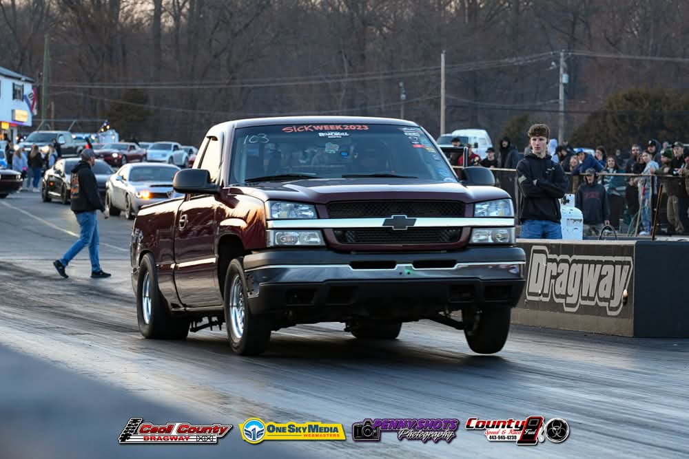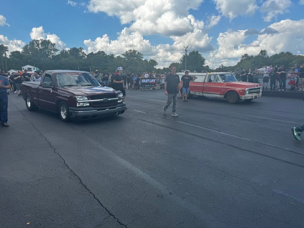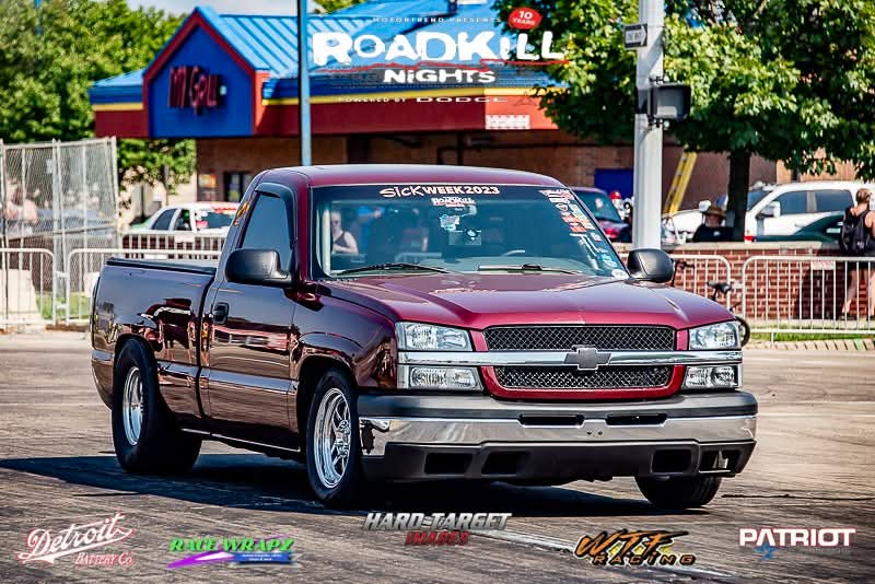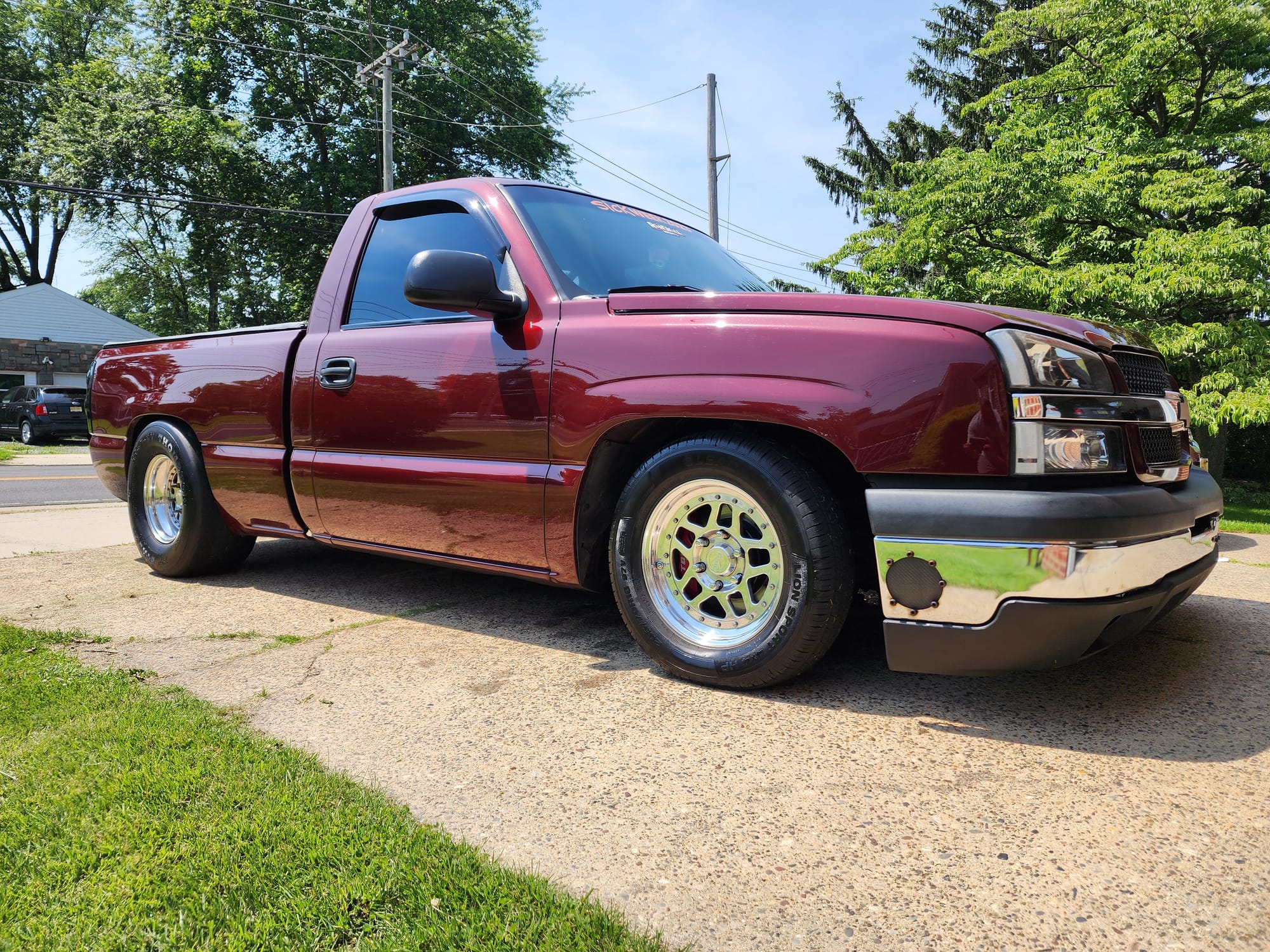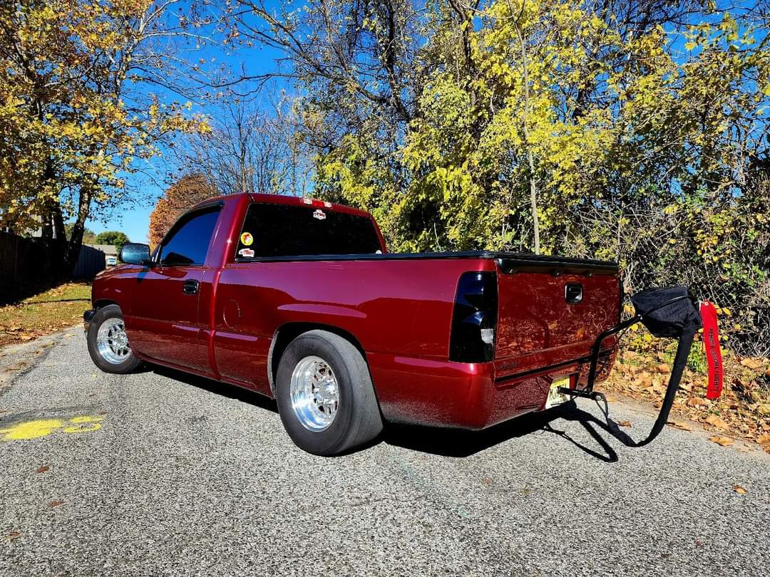 1190+whp 2003 Chevrolet Silverado 1500 in Dark Carmine Red with 110,000 (Chassis) miles for sale! This incredibly fast 8-second RCSB Silverado was built by Kasper’s Korner Automotive, outfitted with an arsenal of high quality components. Power is derived from a 402CI stroker that’s coupled with an FIS GTR S450 94/104 turbo, and linked to a fully built TH400 transmission. The engine build makes use of a 6.0 iron block as its base, which was stroked to a 402CI with a Callies Compstar CCW crankshaft, Wiseco Boostline rods, and LS2K pistons with ARP hardware throughout. The top end of the engine features a custom grind camshaft along with a set of PRC 220 heads, and a Holley hi-ram intake manifold. The fuel system features 2 Magnafuel 4303 pumps with -10 lines, 20 gallon fuel cell, flex fuel sensor, and a set of Bosch 220Ib fuel injectors. As for the drivetrain, the built transmission is trailed by a 9” from Got Torque Differential with 40 spline axles and ARP wheel studs, pro center section with spool and 3.73 gears, and the rear was braced as well. Additional upgrades include a full exhaust system with a muffler, aluminum radiator, several suspension components, Bogart D10 drag pack, TBM XS3 brakes, 8.50 cert cage, and more. Tuning was completed via Holley Terminator X by Ricky Everly, the truck hasn’t been on the dyno with the new setup, however it laid down 1190whp before the new turbo and camshaft were installed. As for the track times, the truck previously ran an 8.95 @ 153mph in the 1/4-mile before the new turbo, rear end, and camshaft. There are currently only 2K miles on the build with invoices for the work performed! Clean title!