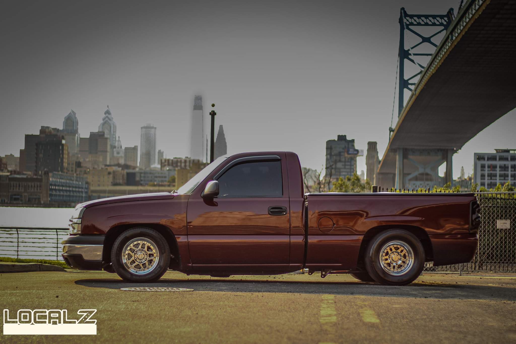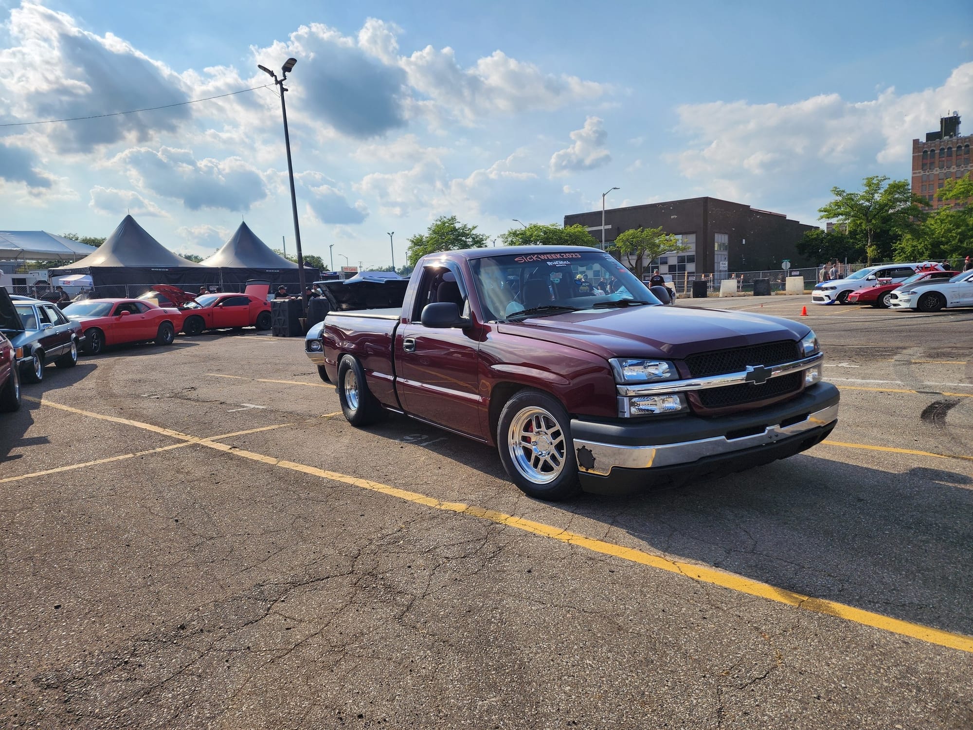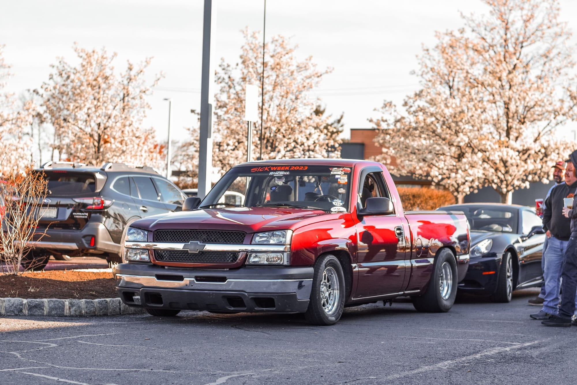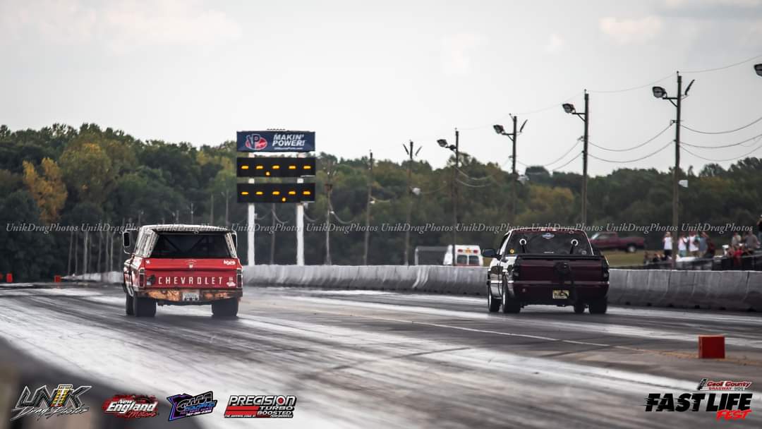 1190+whp 2003 Chevrolet Silverado 1500 in Dark Carmine Red with 110,000 (Chassis) miles for sale! This incredibly fast 8-second RCSB Silverado was built by Kasper’s Korner Automotive, outfitted with an arsenal of high quality components. Power is derived from a 402CI stroker that’s coupled with an FIS GTR S450 94/104 turbo, and linked to a fully built TH400 transmission. The engine build makes use of a 6.0 iron block as its base, which was stroked to a 402CI with a Callies Compstar CCW crankshaft, Wiseco Boostline rods, and LS2K pistons with ARP hardware throughout. The top end of the engine features a custom grind camshaft along with a set of PRC 220 heads, and a Holley hi-ram intake manifold. The fuel system features 2 Magnafuel 4303 pumps with -10 lines, 20 gallon fuel cell, flex fuel sensor, and a set of Bosch 220Ib fuel injectors. As for the drivetrain, the built transmission is trailed by a 9” from Got Torque Differential with 40 spline axles and ARP wheel studs, pro center section with spool and 3.73 gears, and the rear was braced as well. Additional upgrades include a full exhaust system with a muffler, aluminum radiator, several suspension components, Bogart D10 drag pack, TBM XS3 brakes, 8.50 cert cage, and more. Tuning was completed via Holley Terminator X by Ricky Everly, the truck hasn’t been on the dyno with the new setup, however it laid down 1190whp before the new turbo and camshaft were installed. As for the track times, the truck previously ran an 8.95 @ 153mph in the 1/4-mile before the new turbo, rear end, and camshaft. There are currently only 2K miles on the build with invoices for the work performed! Clean title!