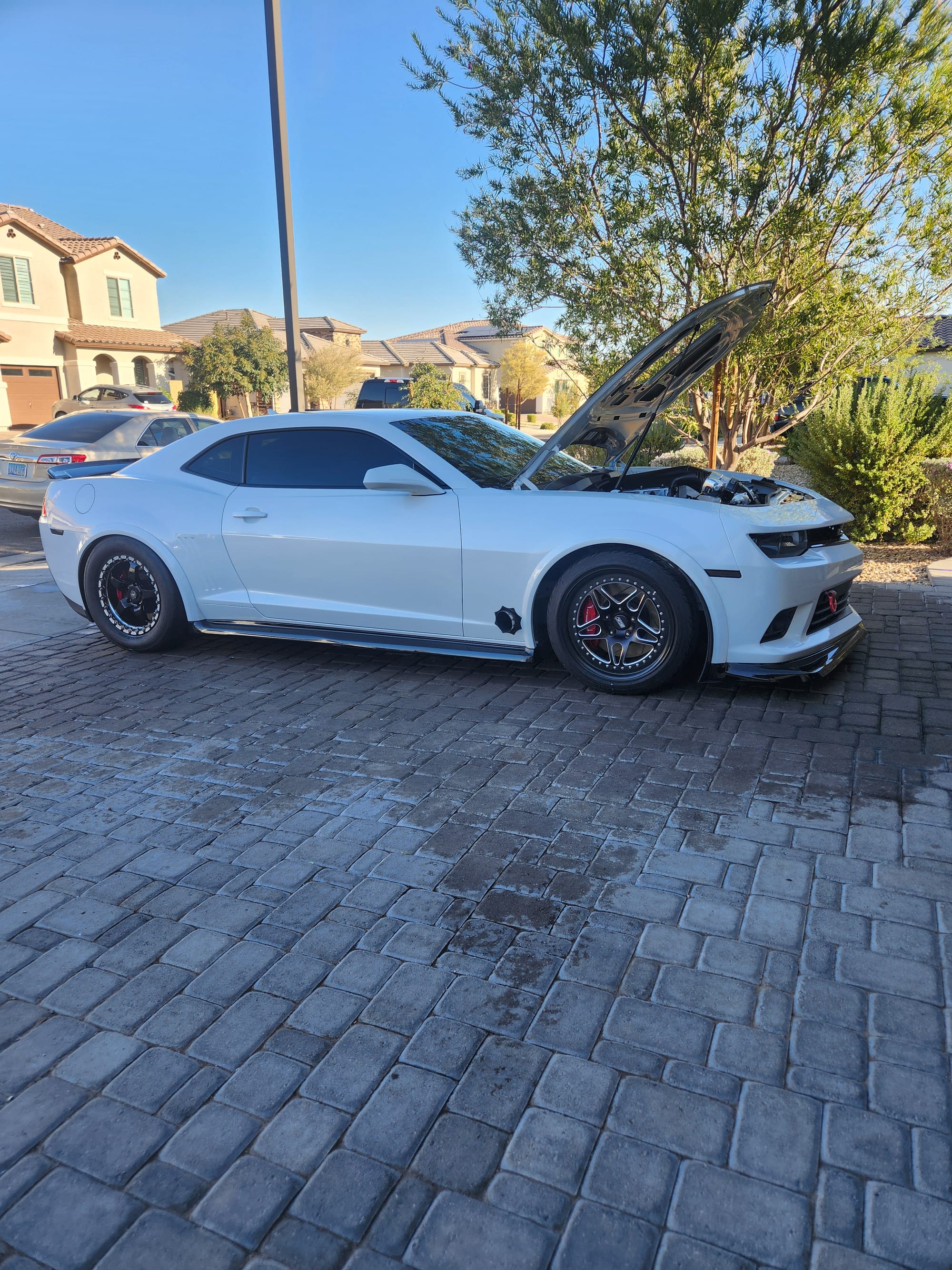 1200+whp 2014 Chevrolet Camaro 1SS/1LE in Abalone White Pearl (WA140X custom paint job) with 32,456 (Chassis) miles for sale! The owner has spared no expense in making this what he feels to be the best example of a 5th generation Camaro during his 6 years of ownership. The car began life as a 2014 1SS/1LE, and it was modified by the owner in every way possible with a multitude of quality components and incredible attention to detail during the installation process. Powered by a DART LSNext iron 427ci with a Forced Performance GT5598 T6 turbo, a powerful combination that’s transferring power to the rear through a built TH400 transmission. Tuning was completed via ProEFI 112 Race ECU by Mikha Motorsports with an output of 1200+whp at around 22-24psi and an 8.9-second pass at 154mph in the 1/4-mile. The only cons of this car is no A/C or heat due to the fuse box relocation. The owner does not need to sell, and will only sell to someone that can appreciate the level of quality this vehicle displays, you must see the vehicle in person to really appreciate the countless hours that went into the build. Open to trading for a 2019+ ZL1 or 2016+ CTS-V. Only 400 miles on the build! Clean title in hand!